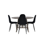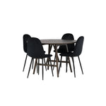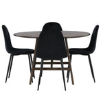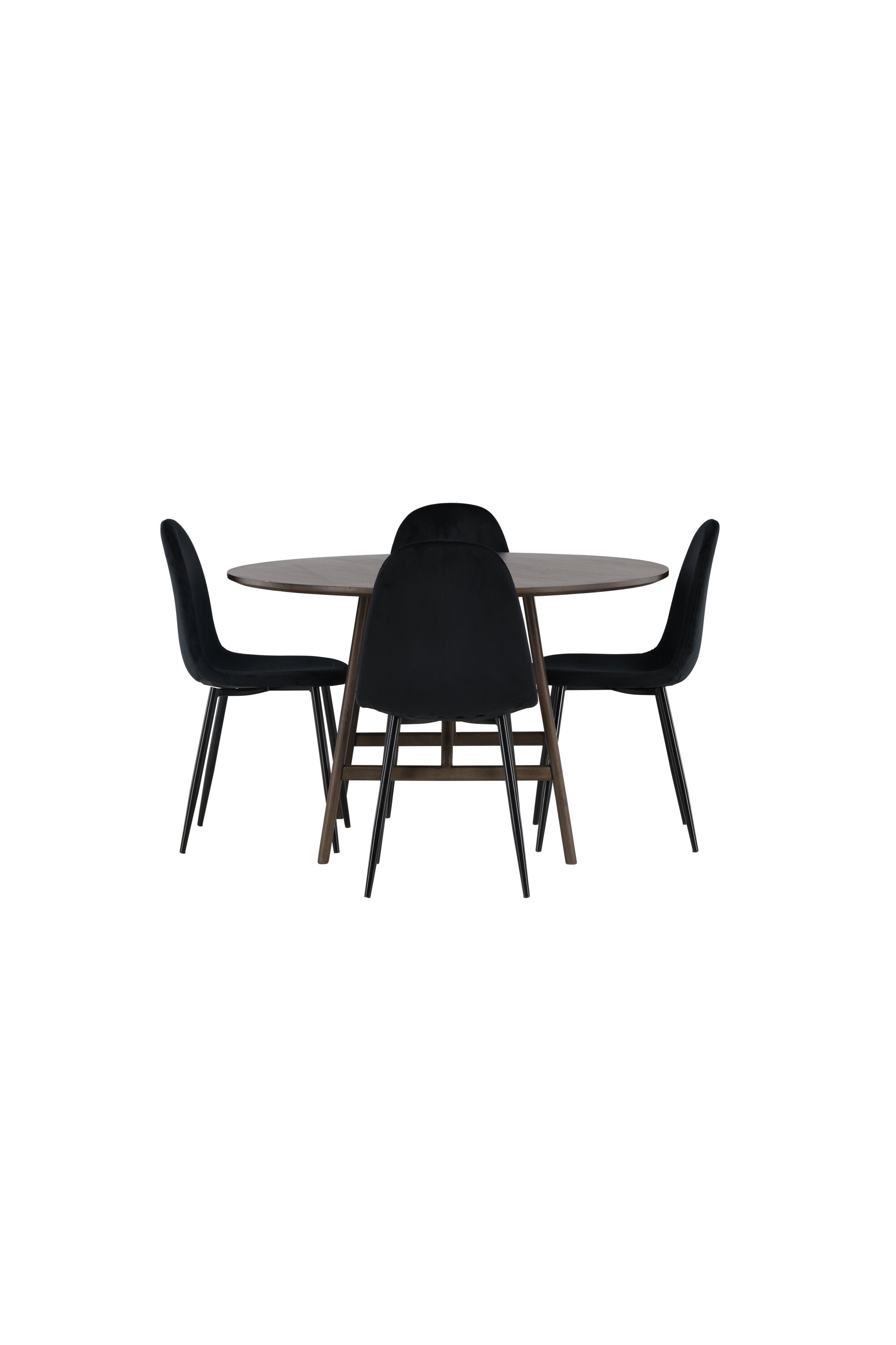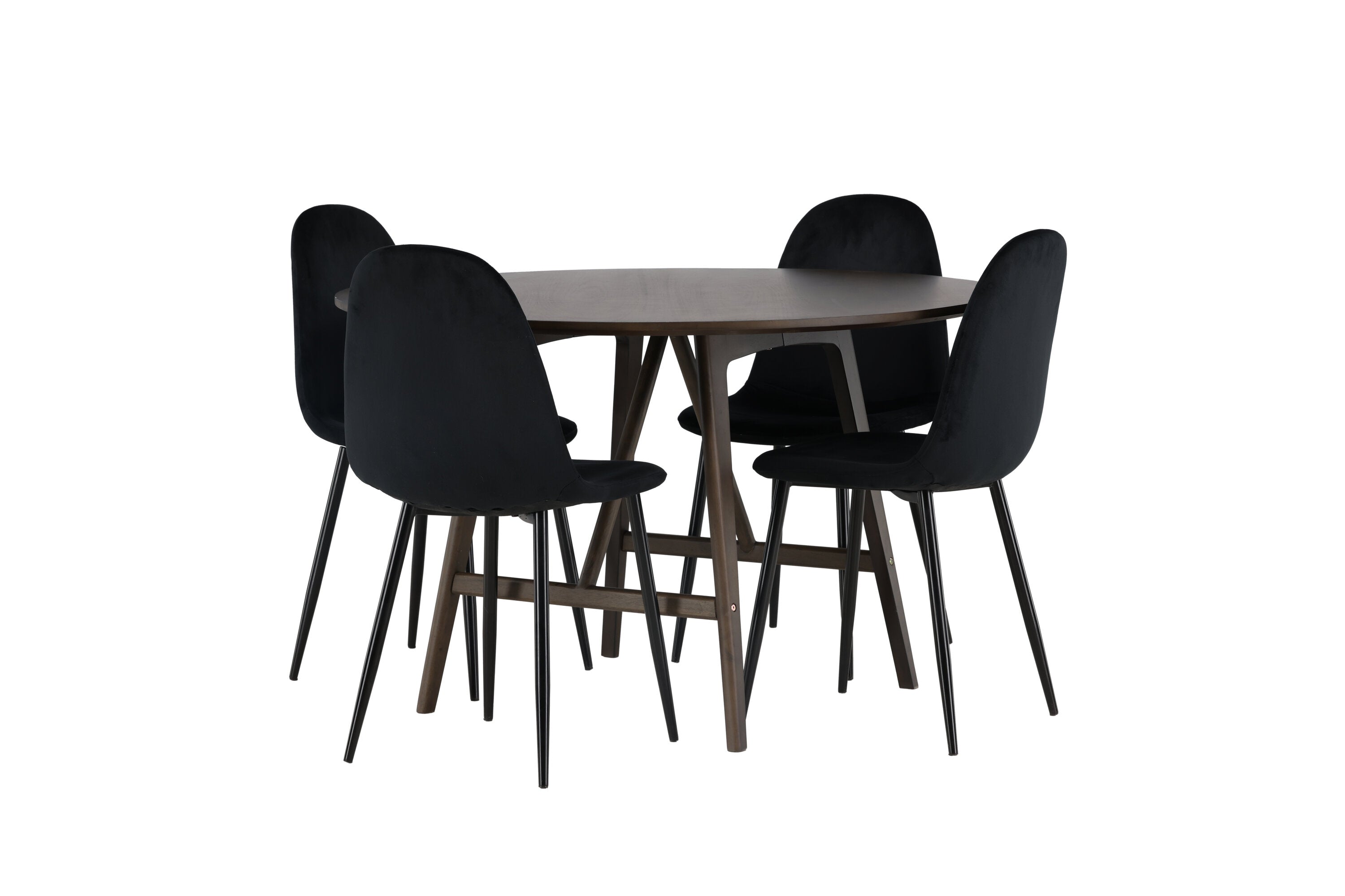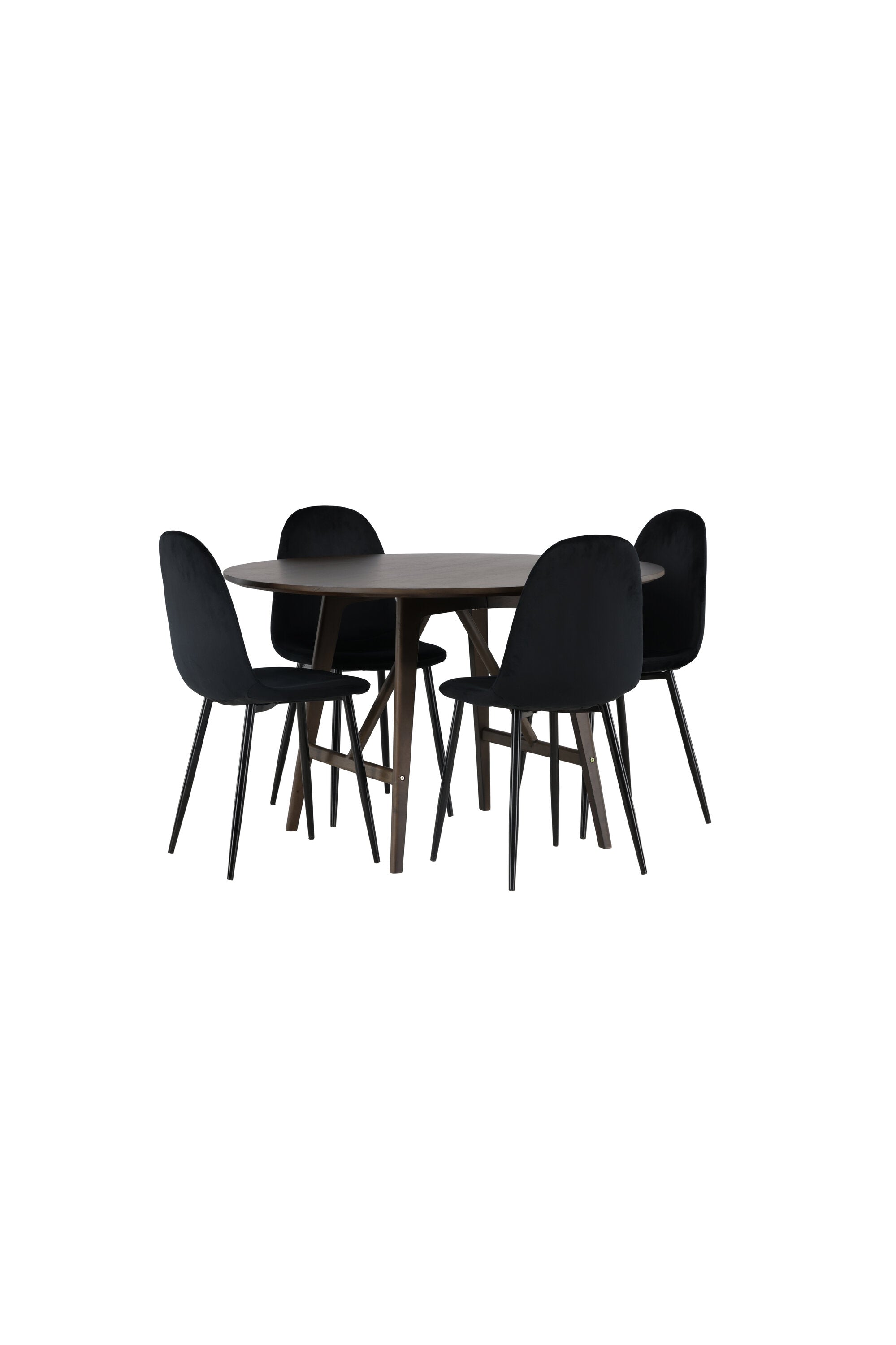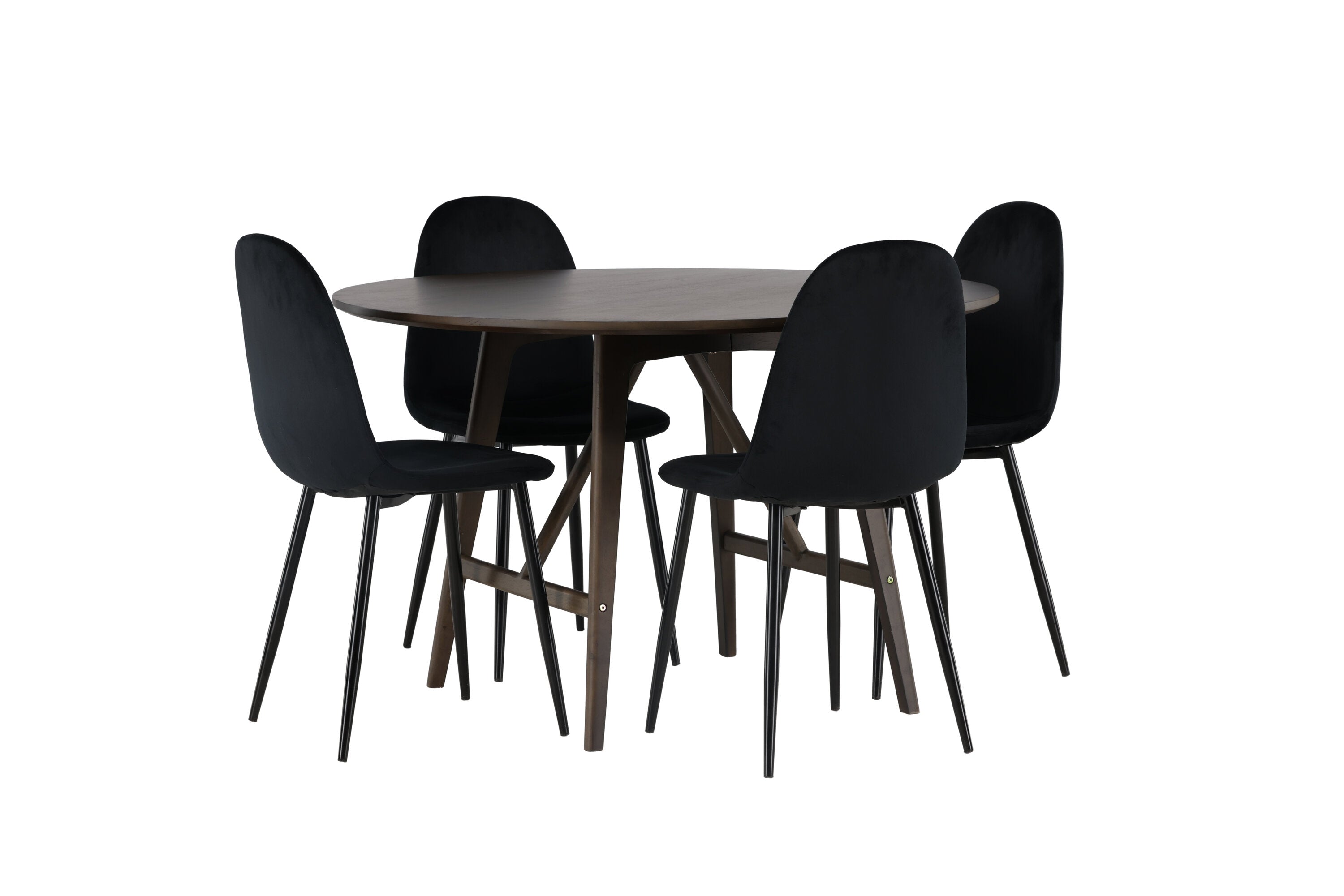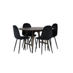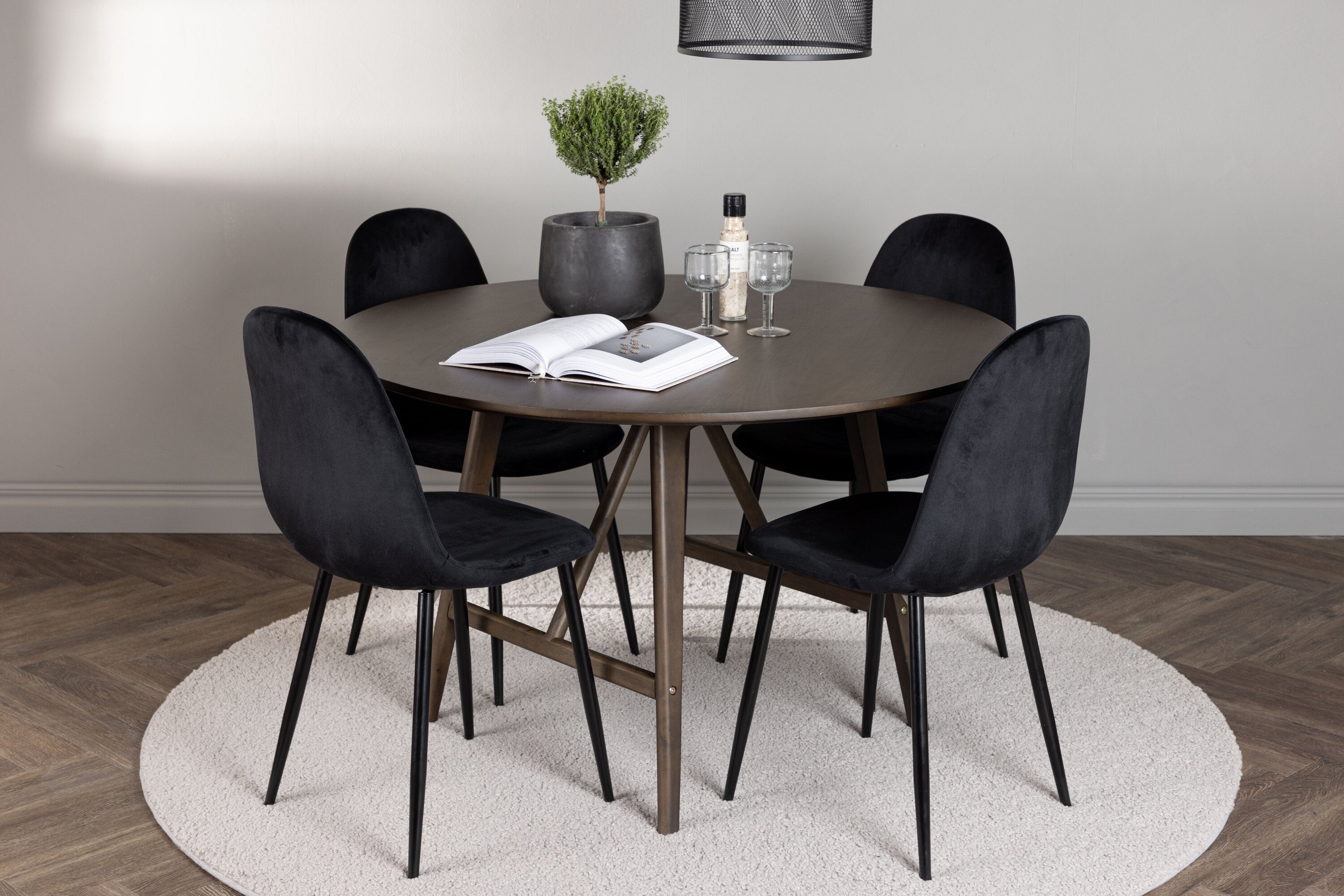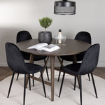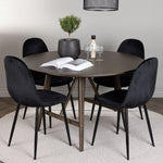 Jídelní stůl Kaseidon - kulatý - kaučukové dřevo / tmavě hnědá MDF + jídelní židle Polar - černé nohy / černý samet _4