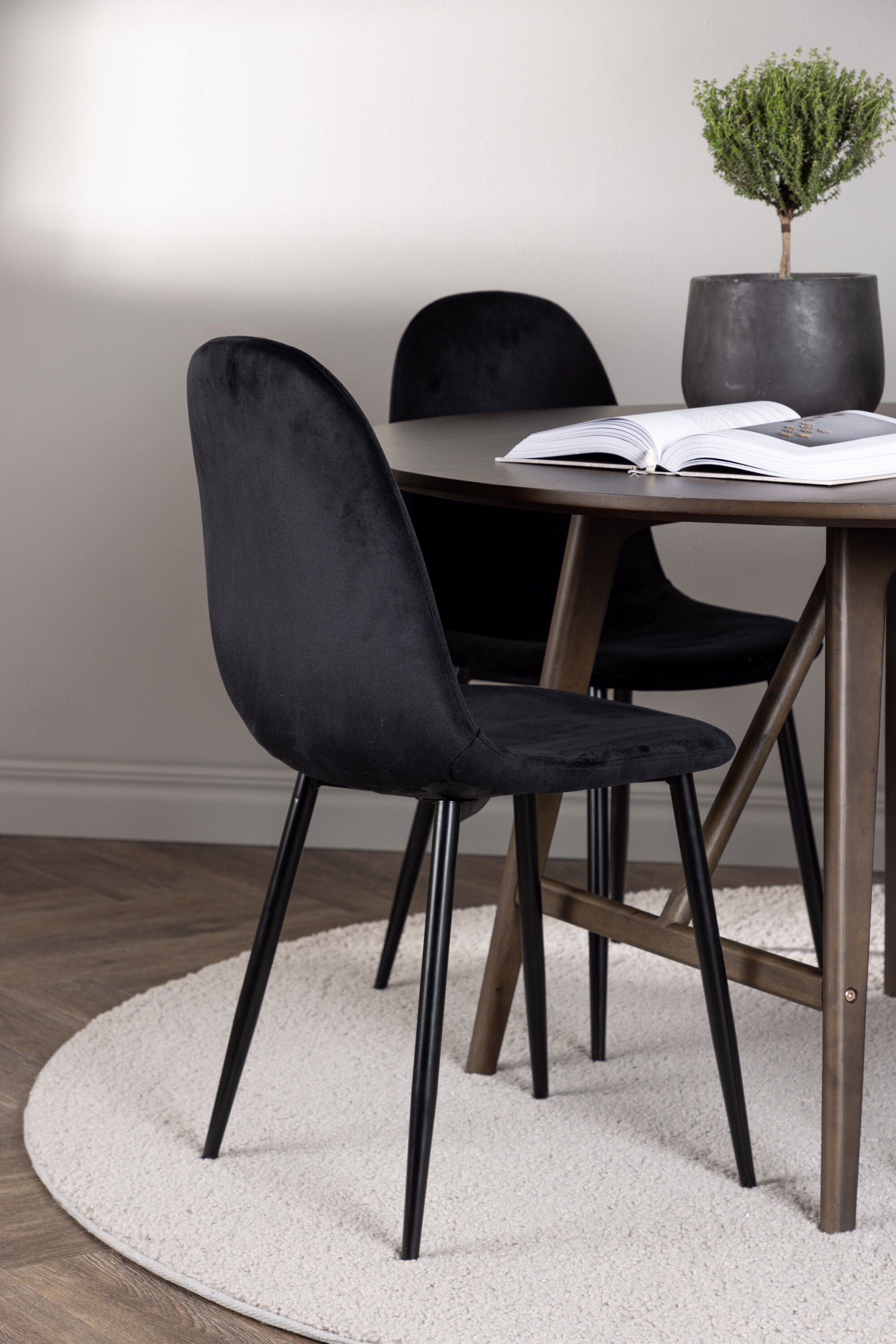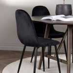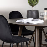 Elegantní židle Polar skvěle doplňují náš tmavě hnědý jídelní stůl. Židle mají celočalouněný design se zaobleným opěradlem a sedákem z černé sametové látky, což poskytuje luxusní pocit. Měkké polstrování nabízí komfortní zážitek, díky kterému budete chtít prodlévat ještě dlouho po večeři.