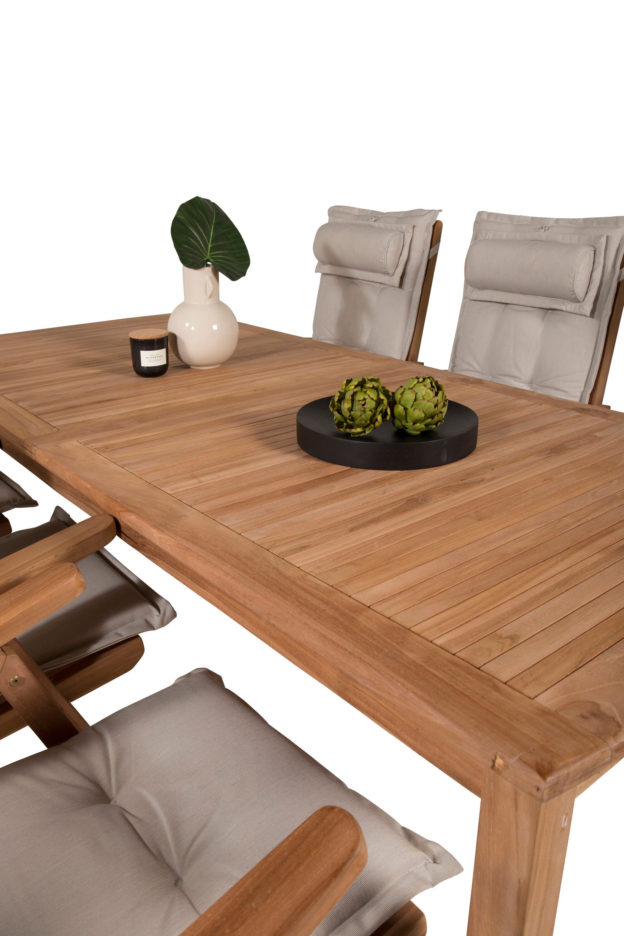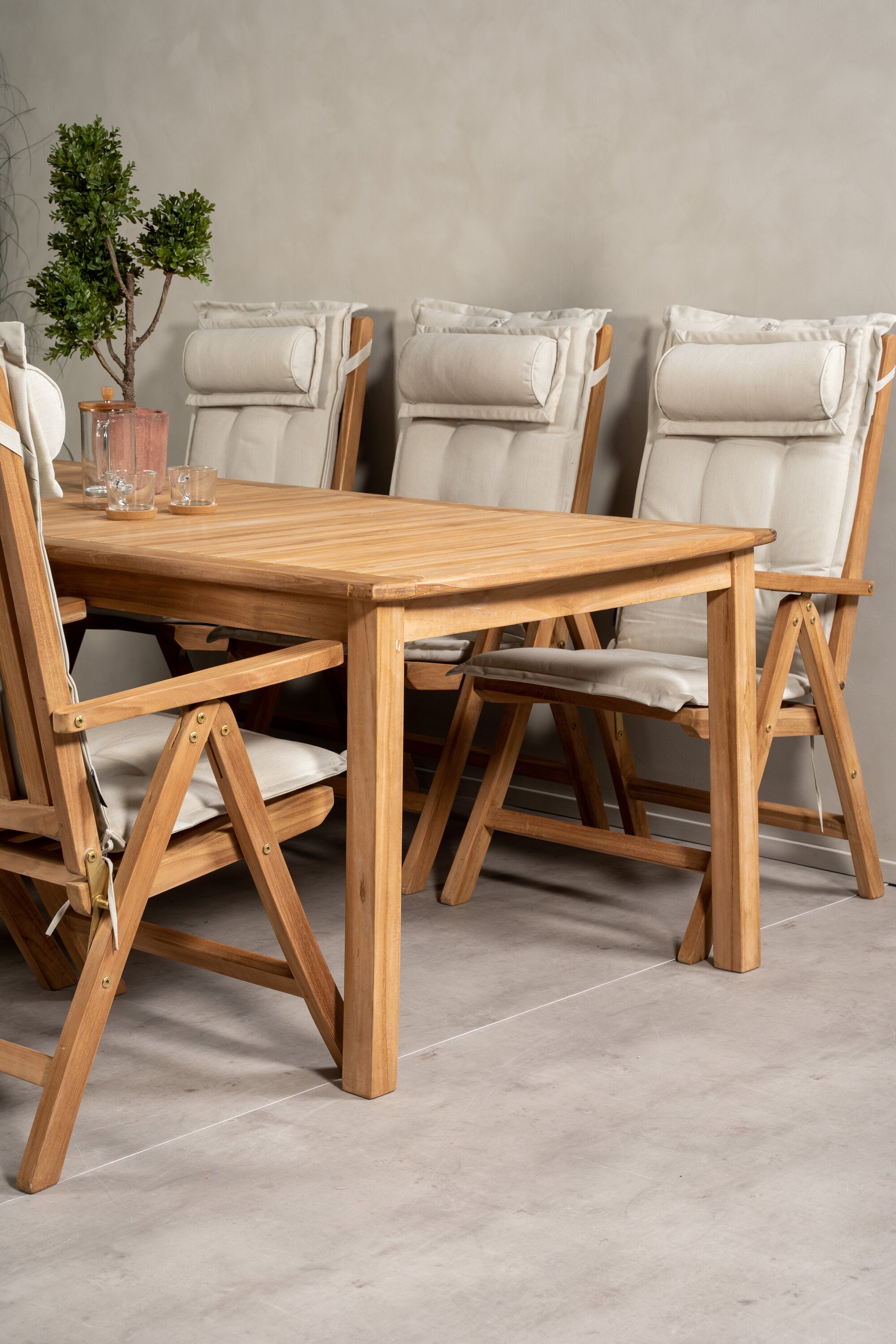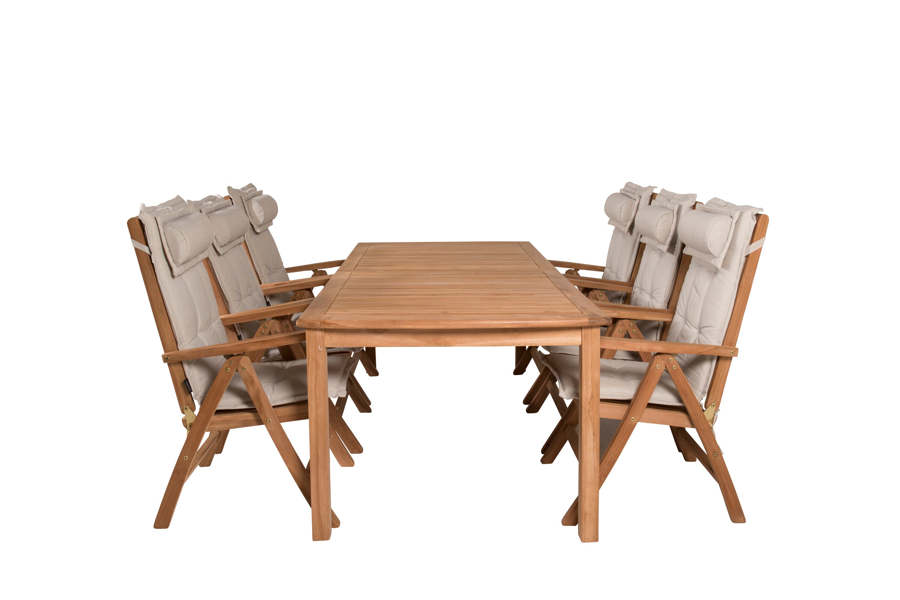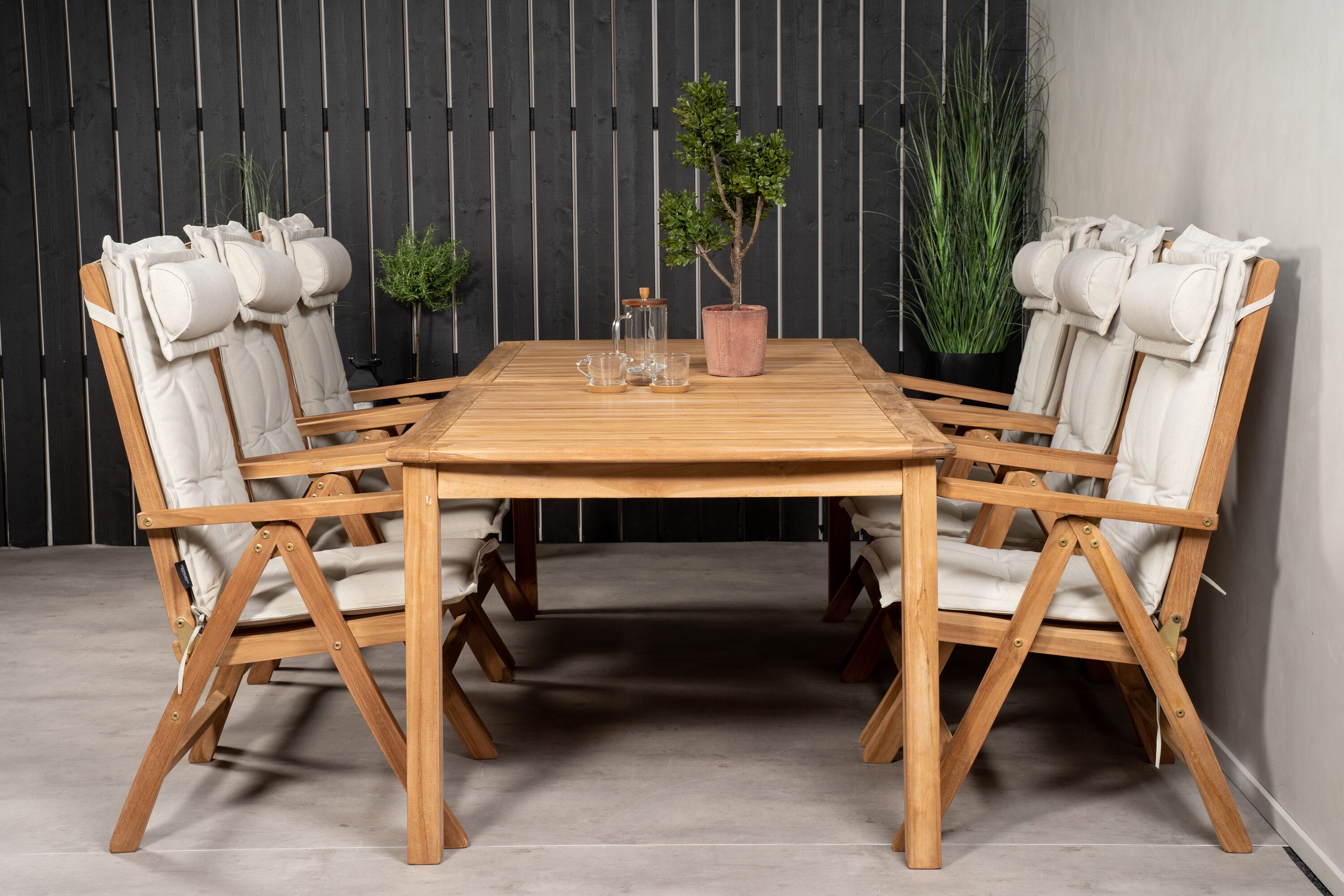 Jídelní stůl Kenya 220*100*H76 - Teak+Keňa 5-polohová skládací židle - Teak_6