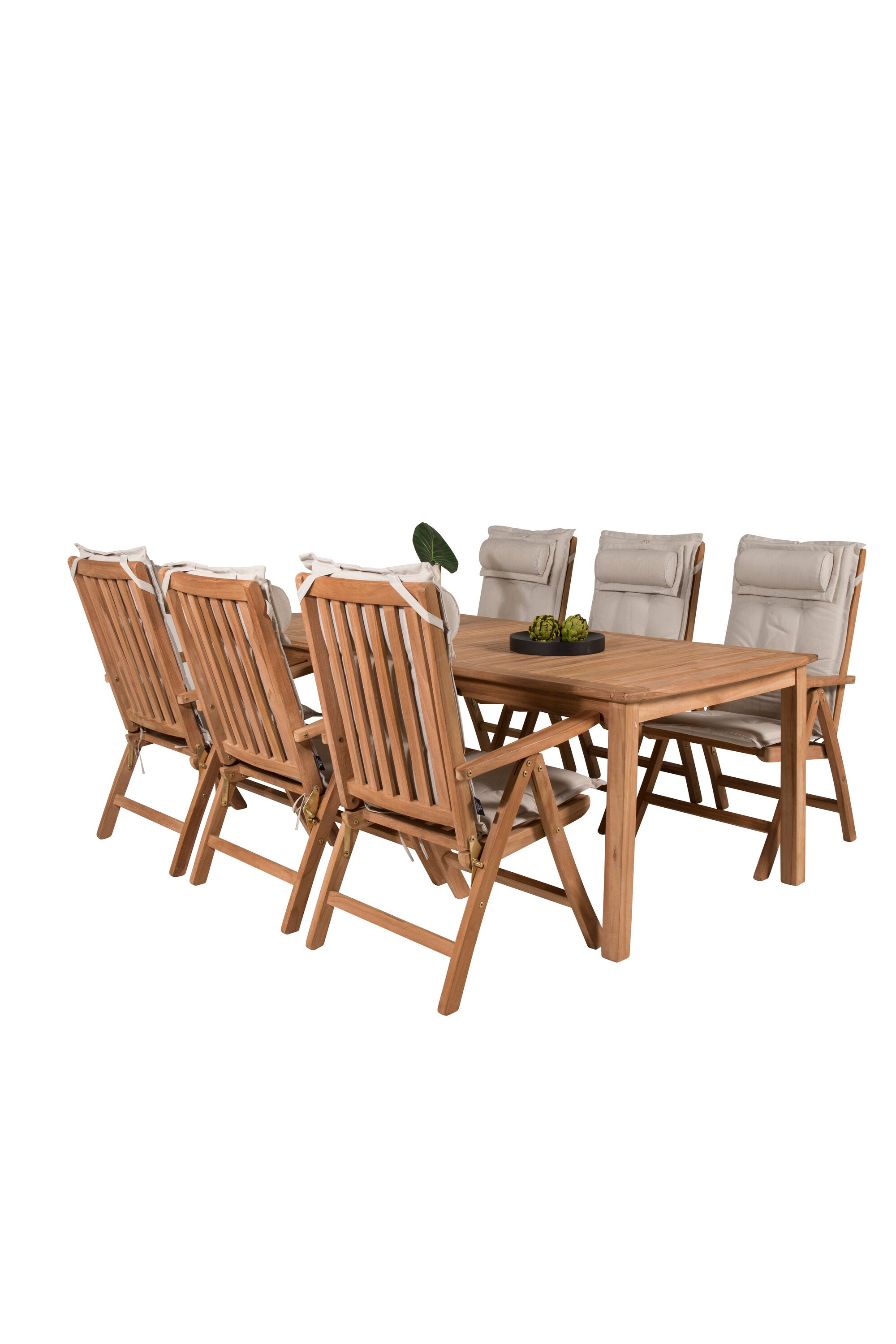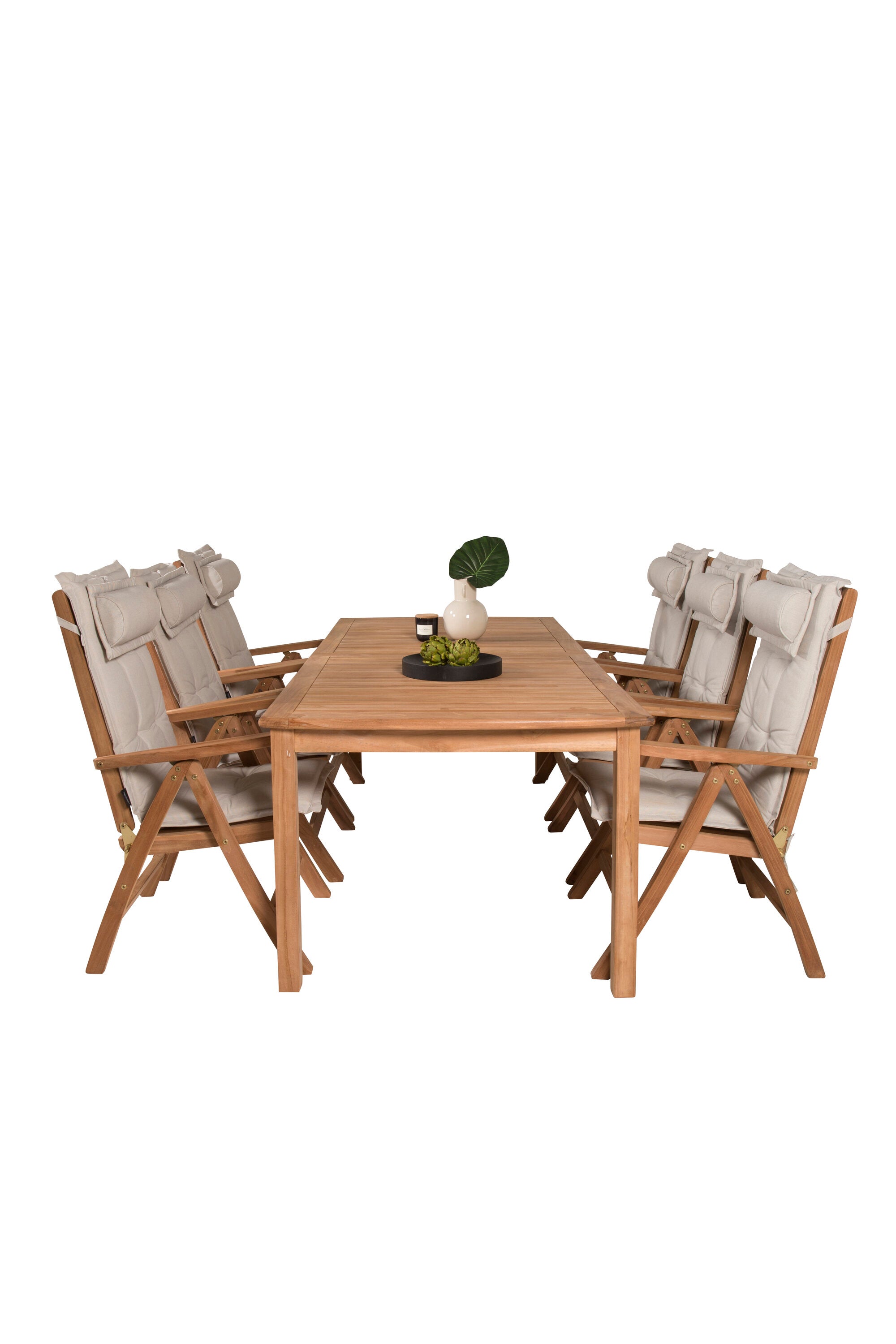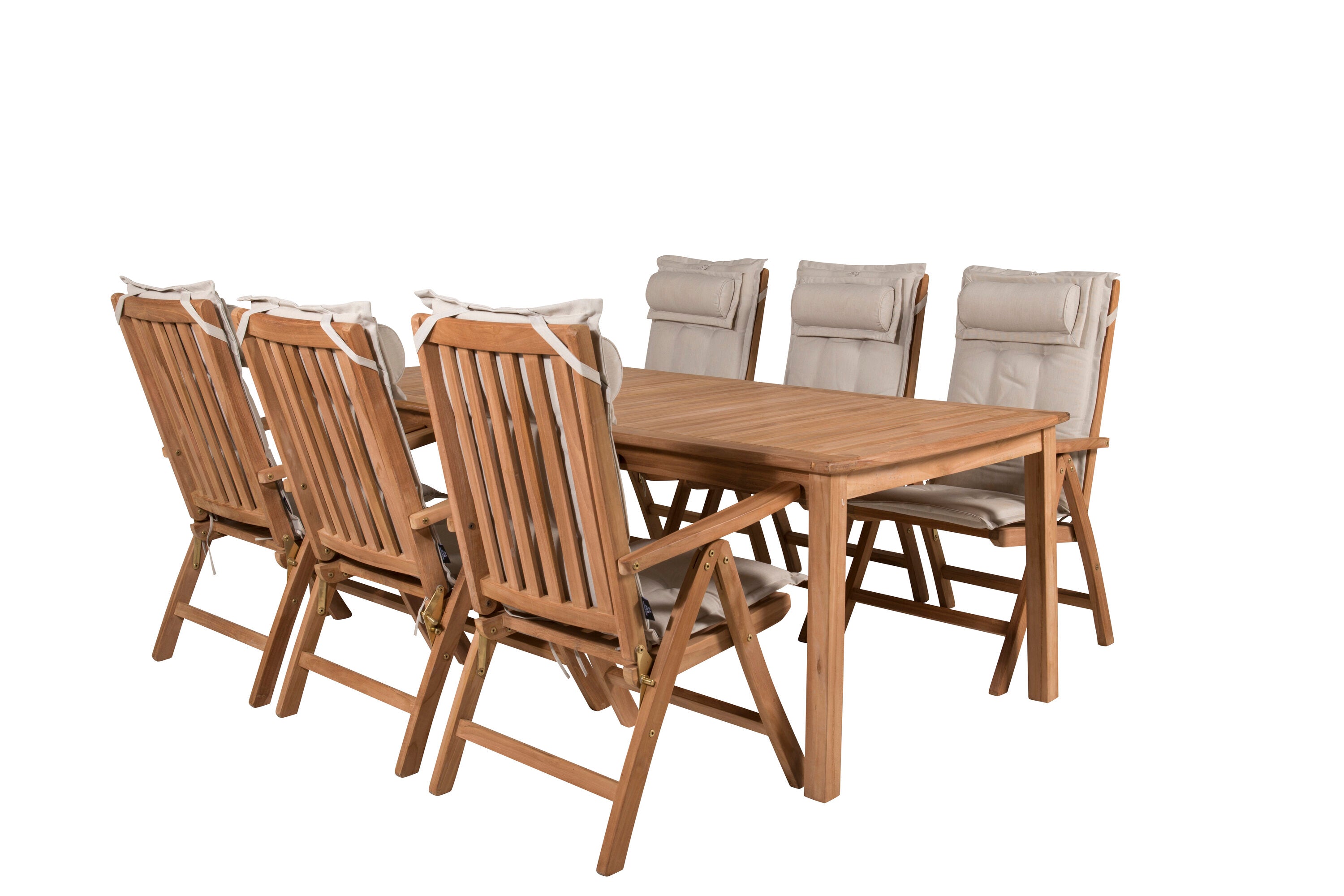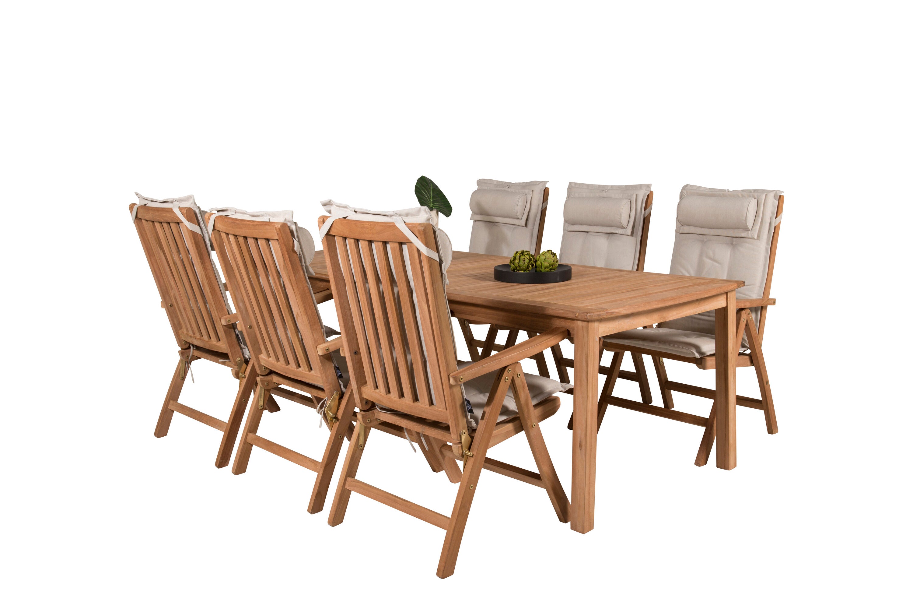 Jídelní stůl Kenya 220*100*H76 - Teak+Keňa 5-polohová skládací židle - Teak_6