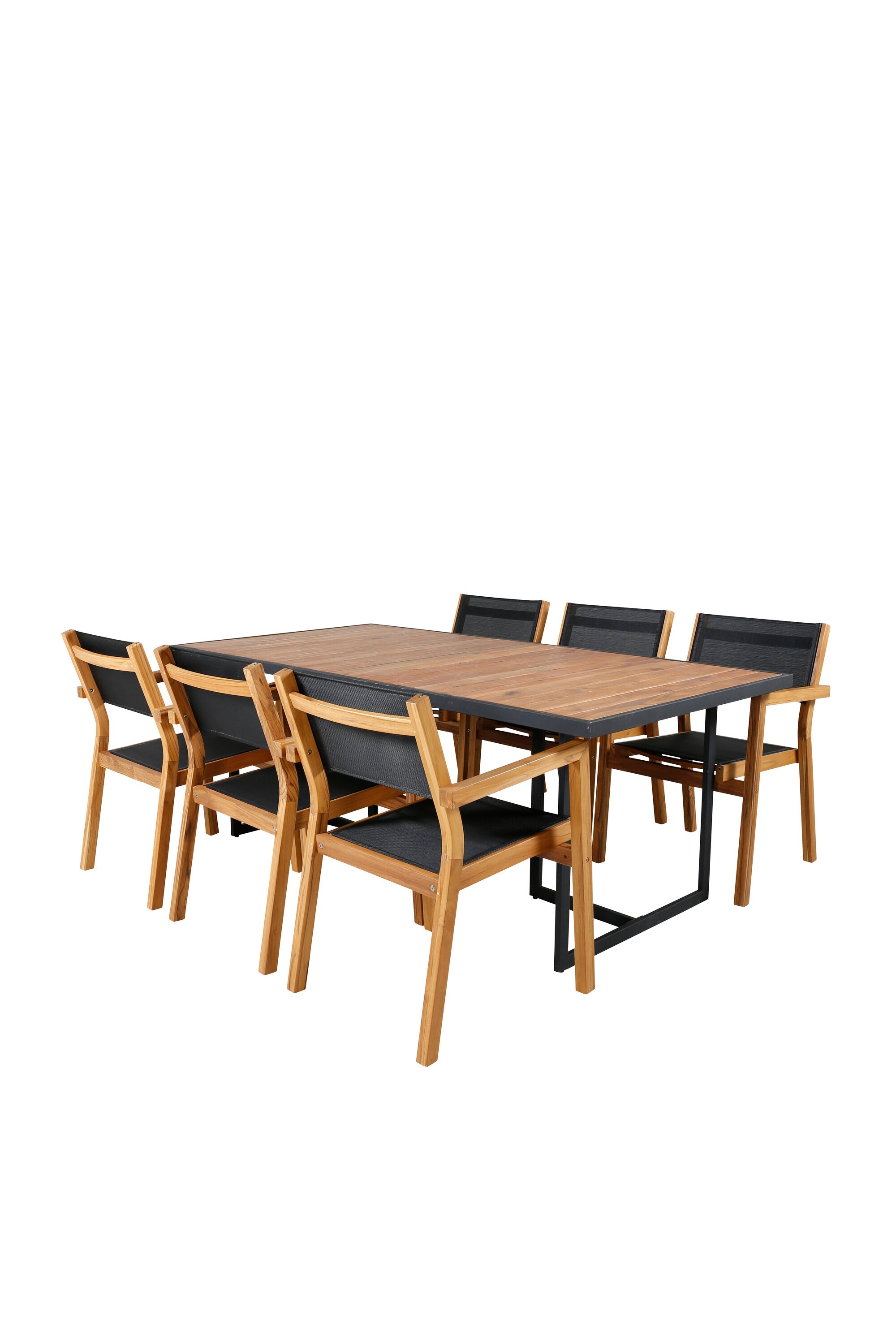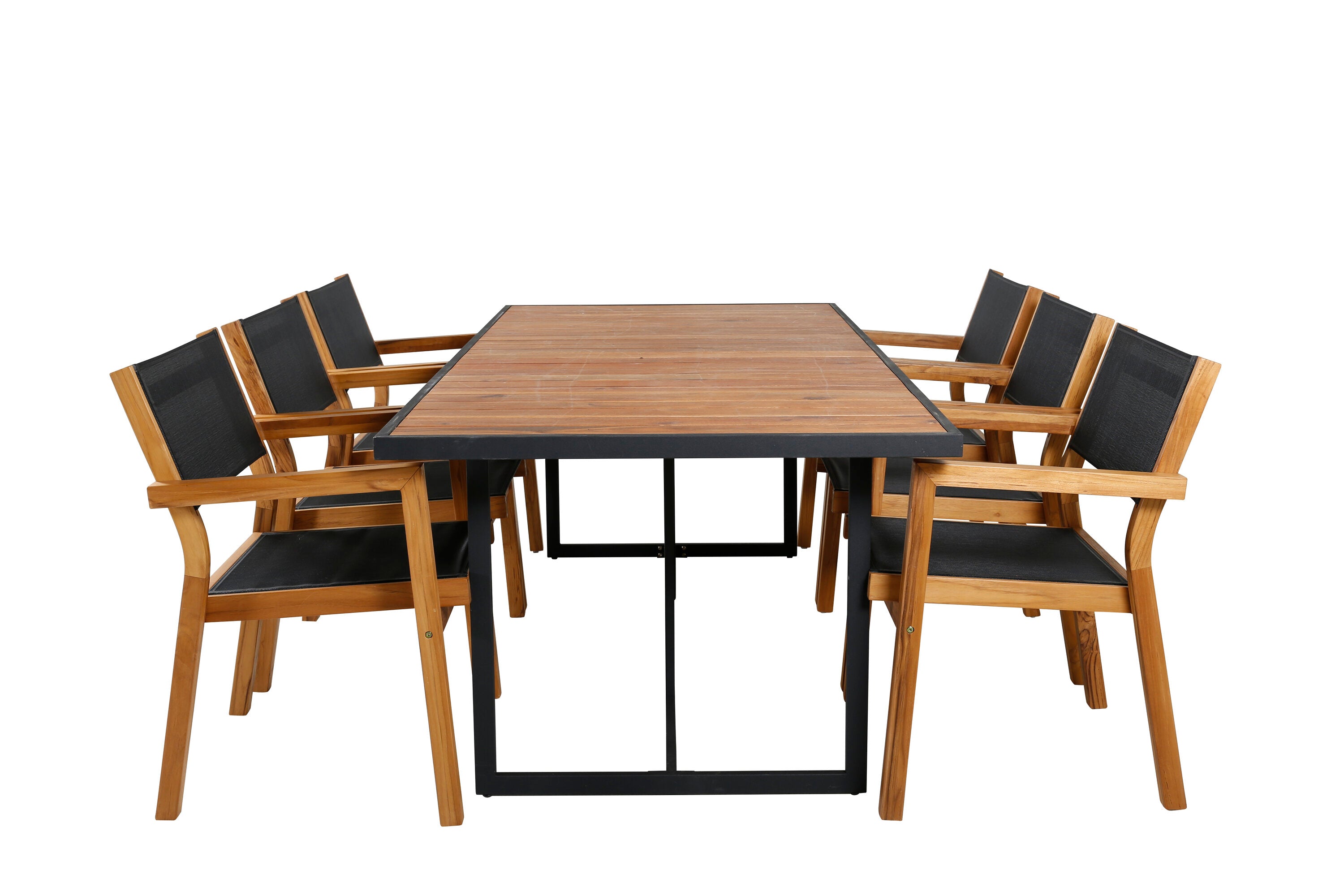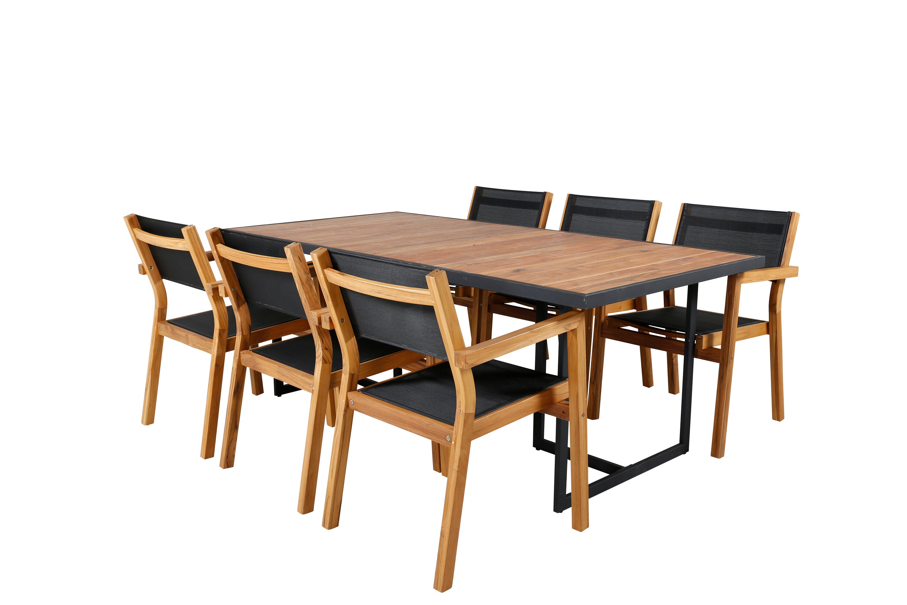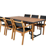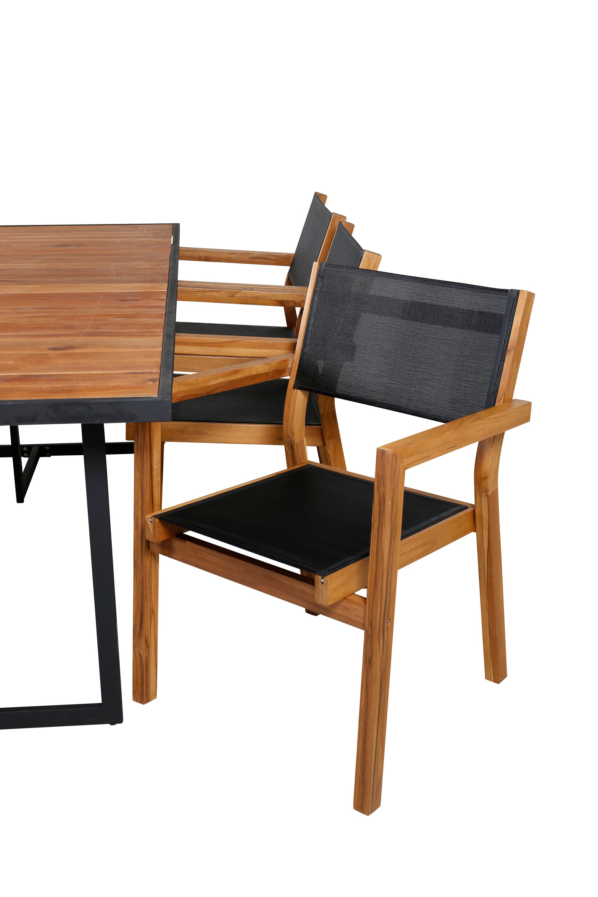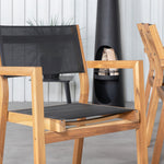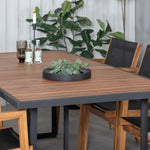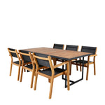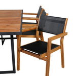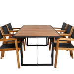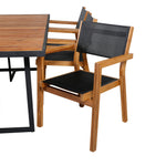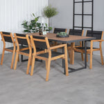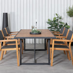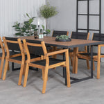 Jídelní stůl Khung - černá ocel / akácie (teklook) - 200*100 cm + stohovací židle Venice - teak / černá textilne_6