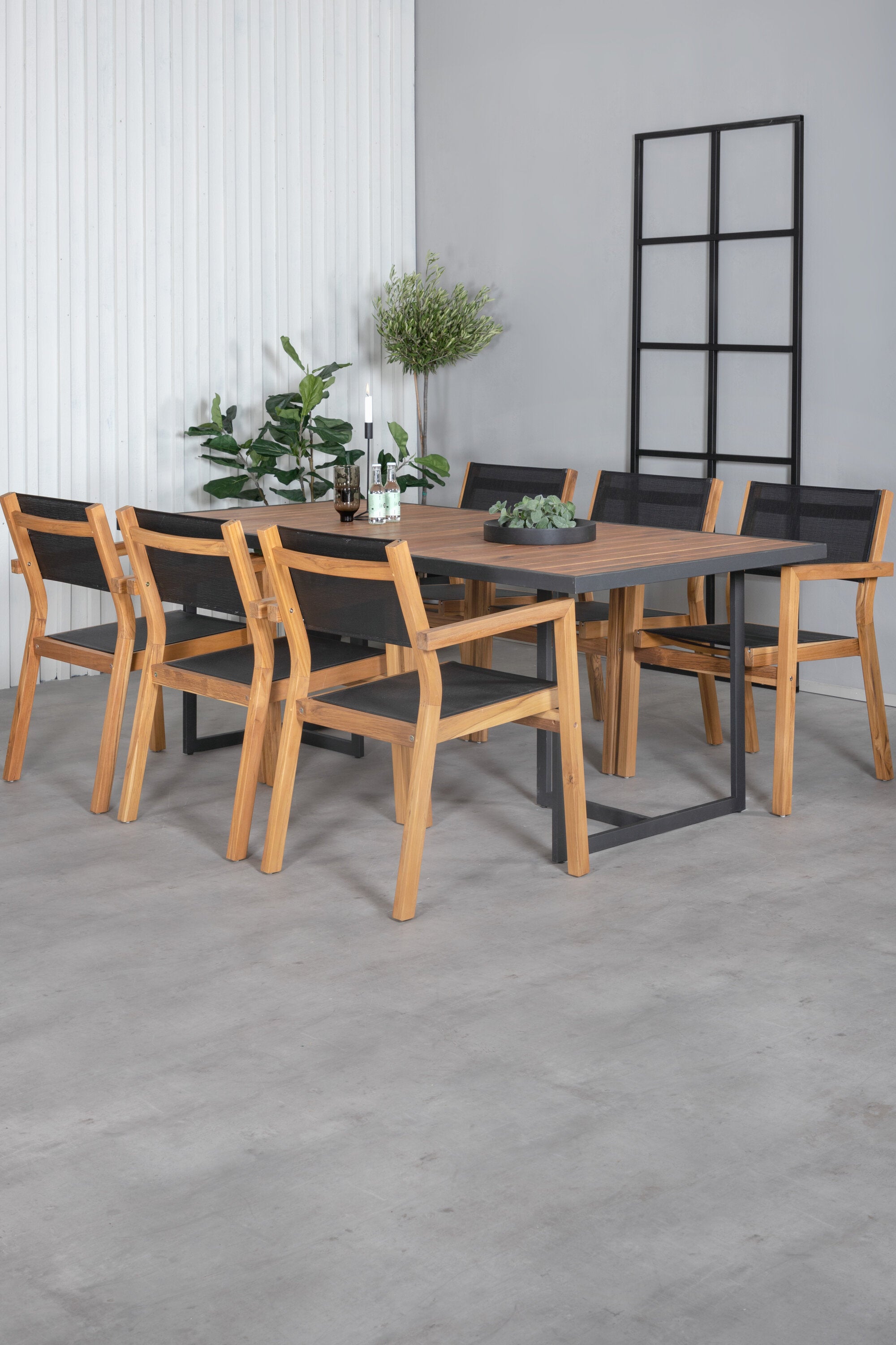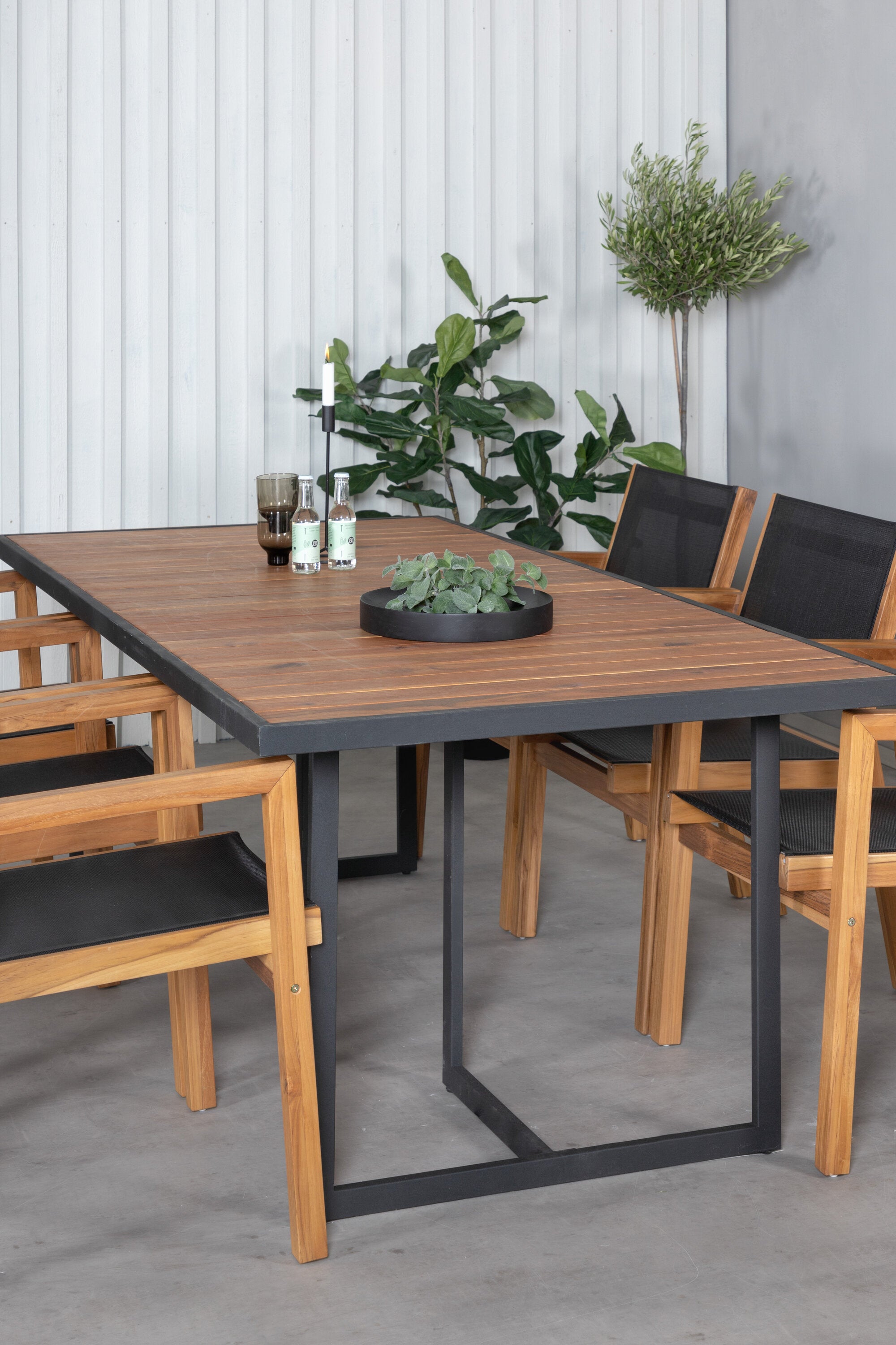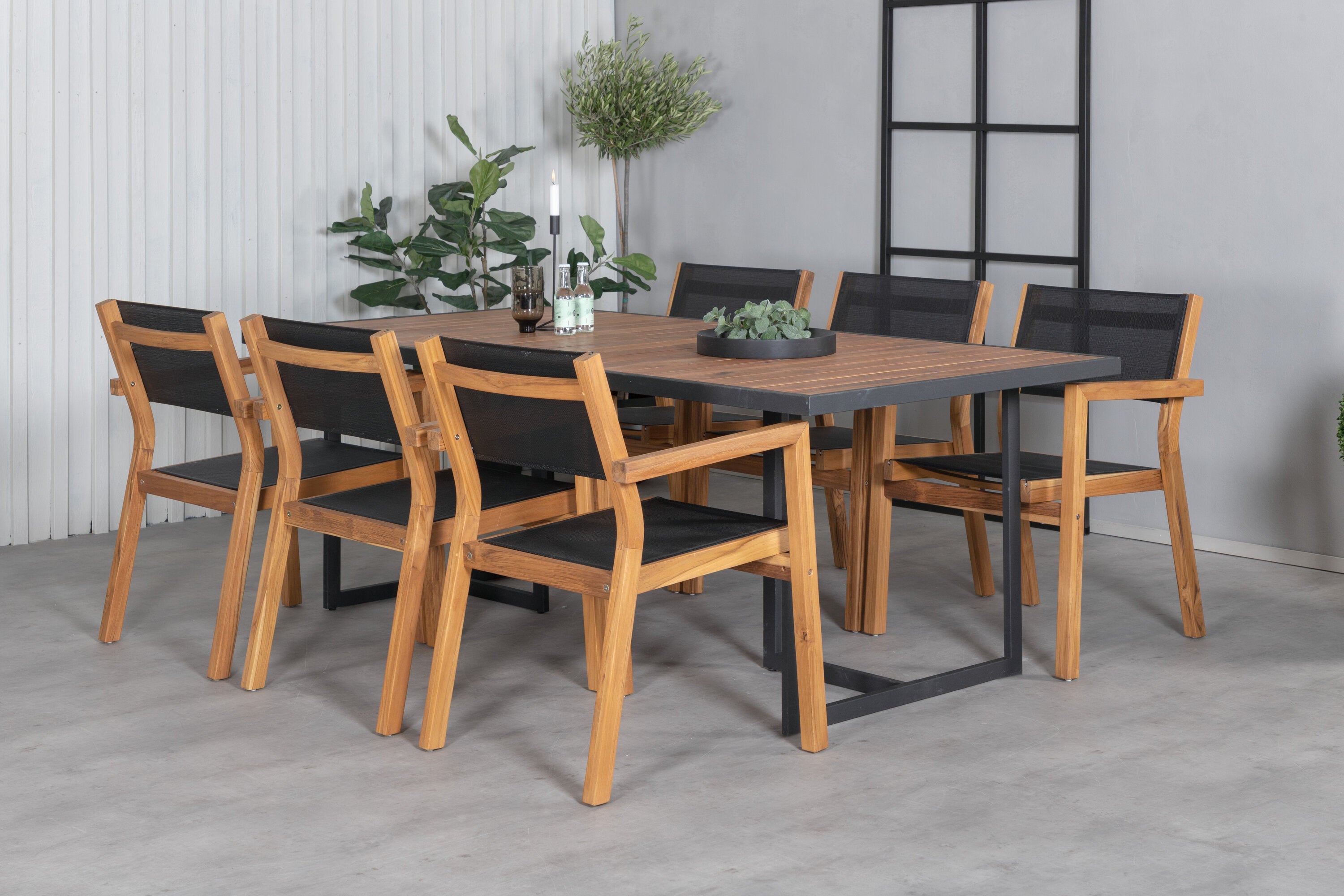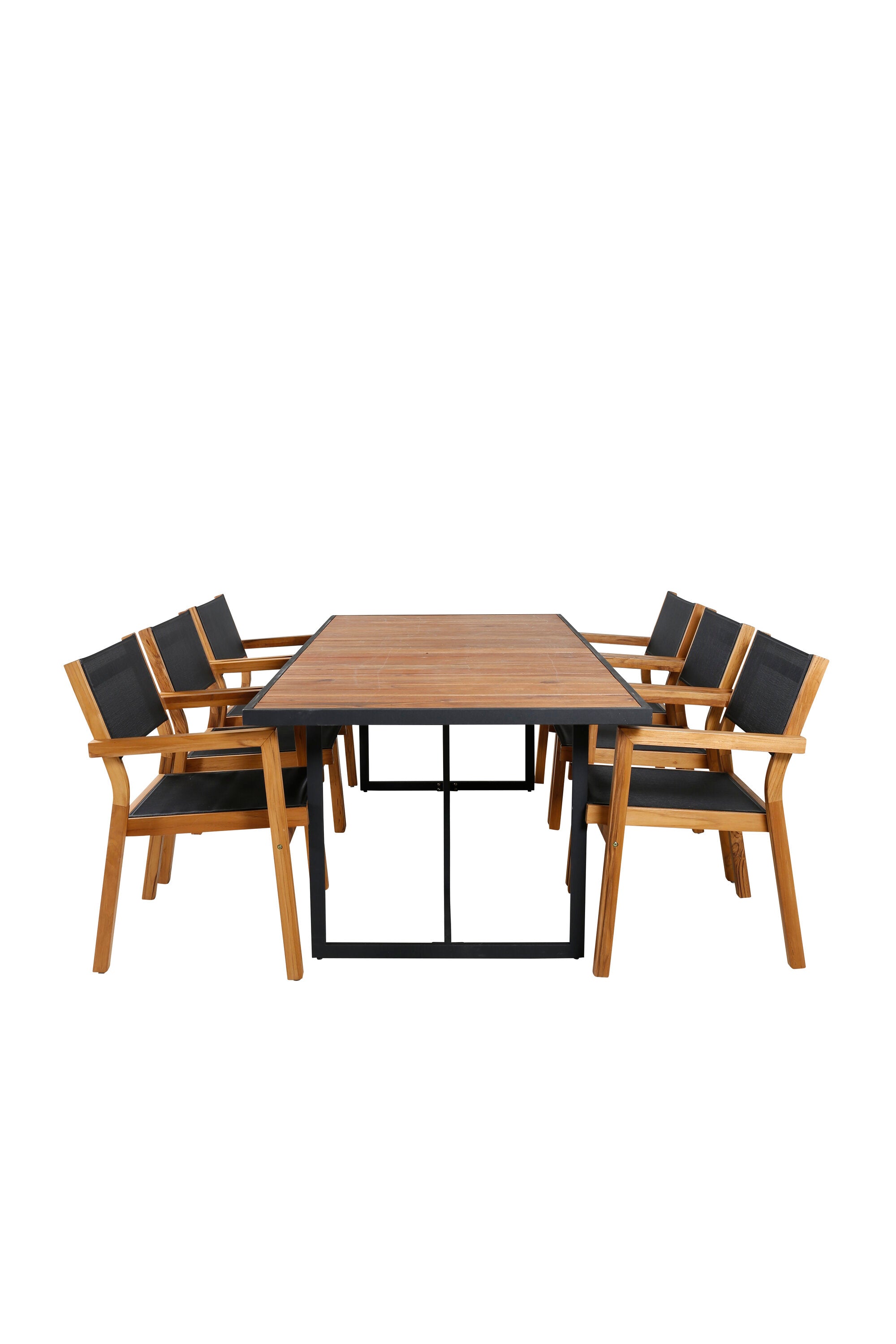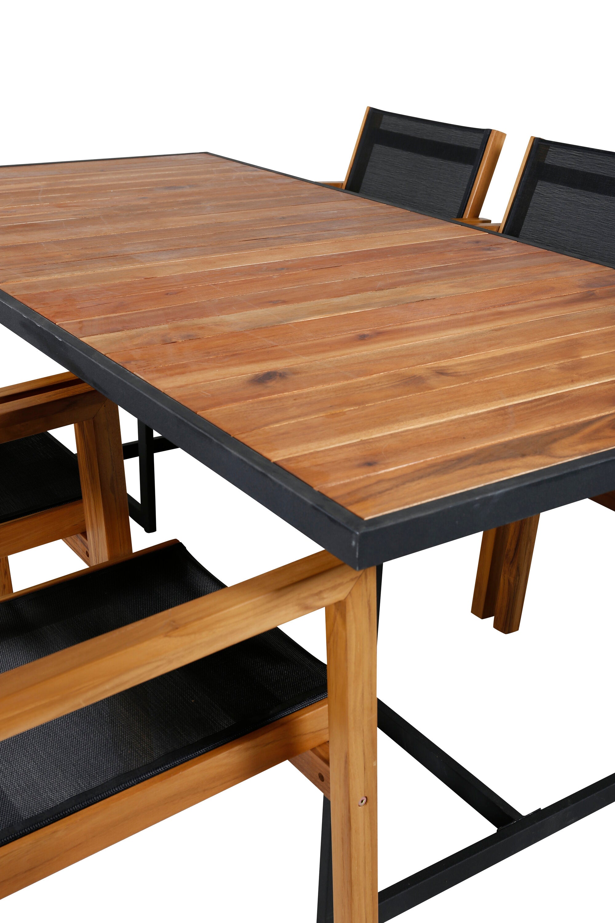 Jídelní stůl Khung - černá ocel / akácie (teklook) - 200*100 cm + stohovací židle Venice - teak / černá textilne_6
