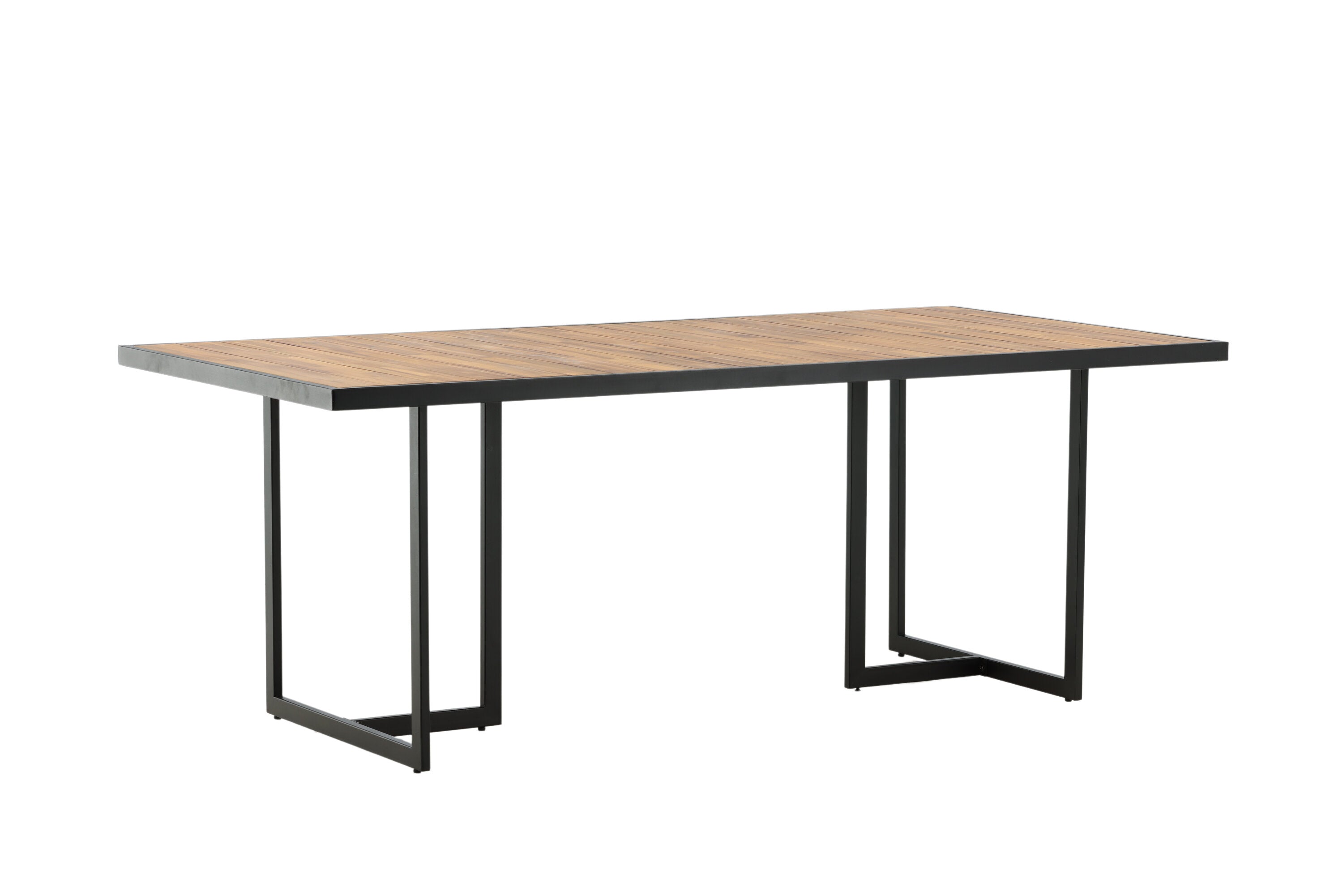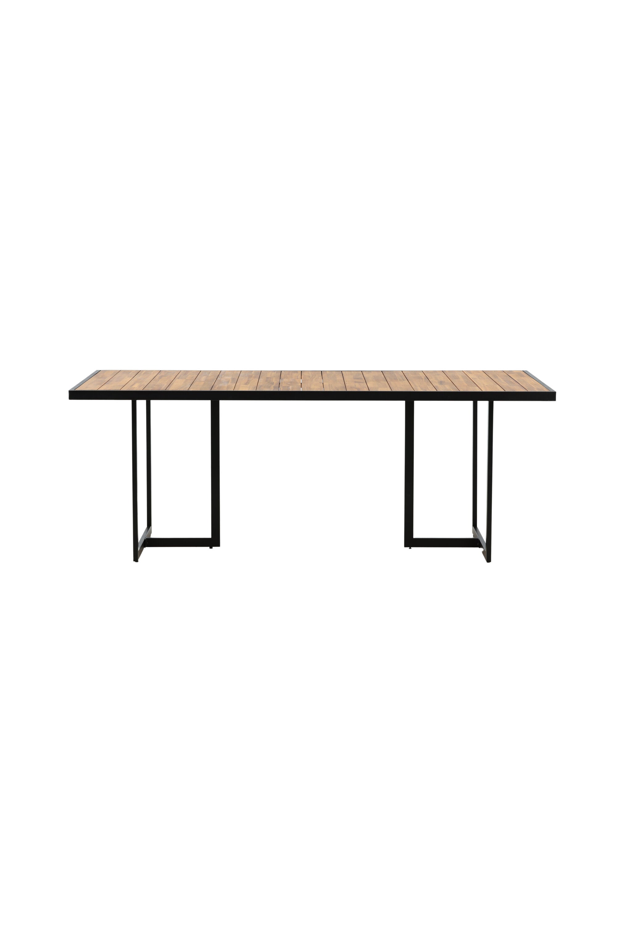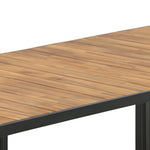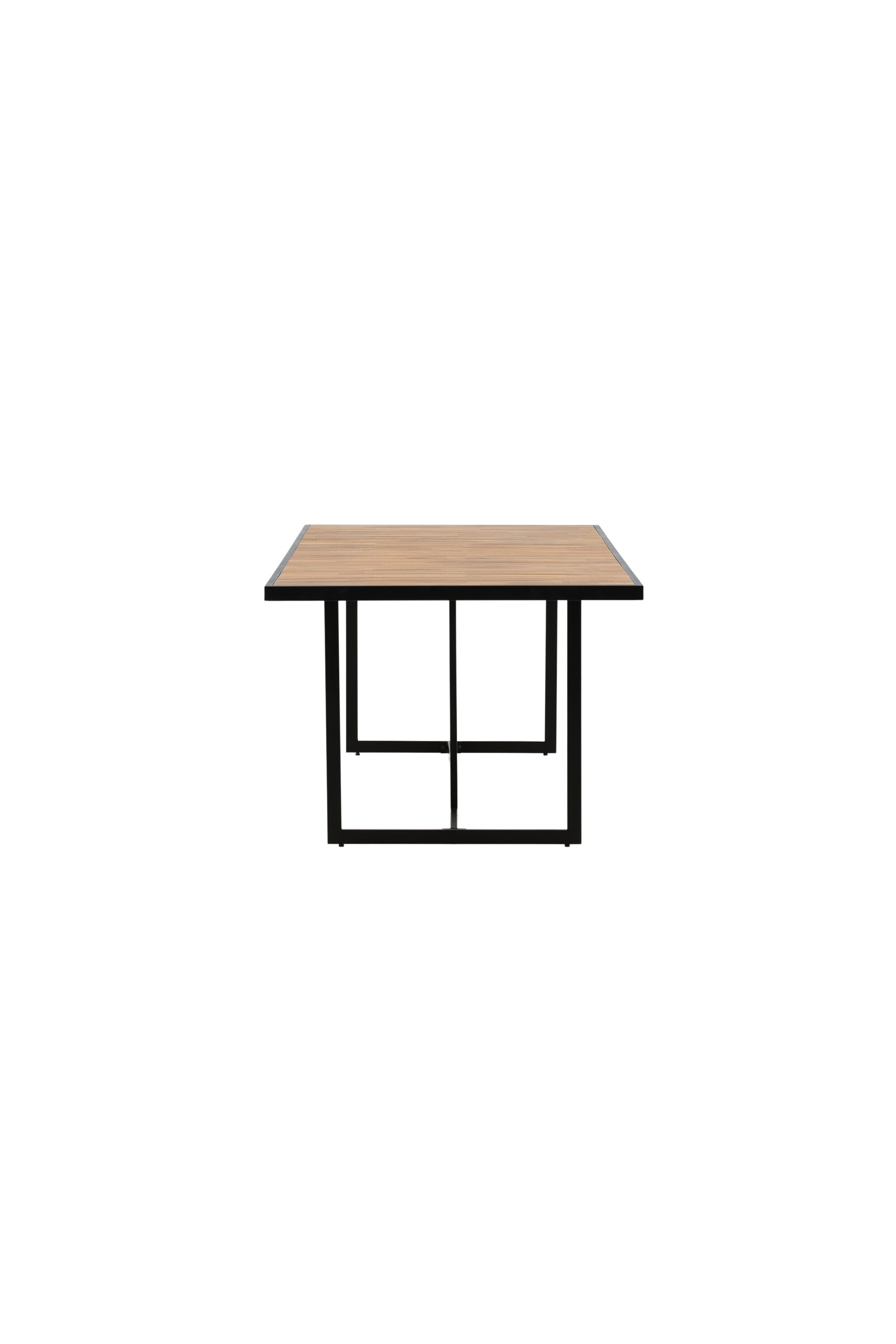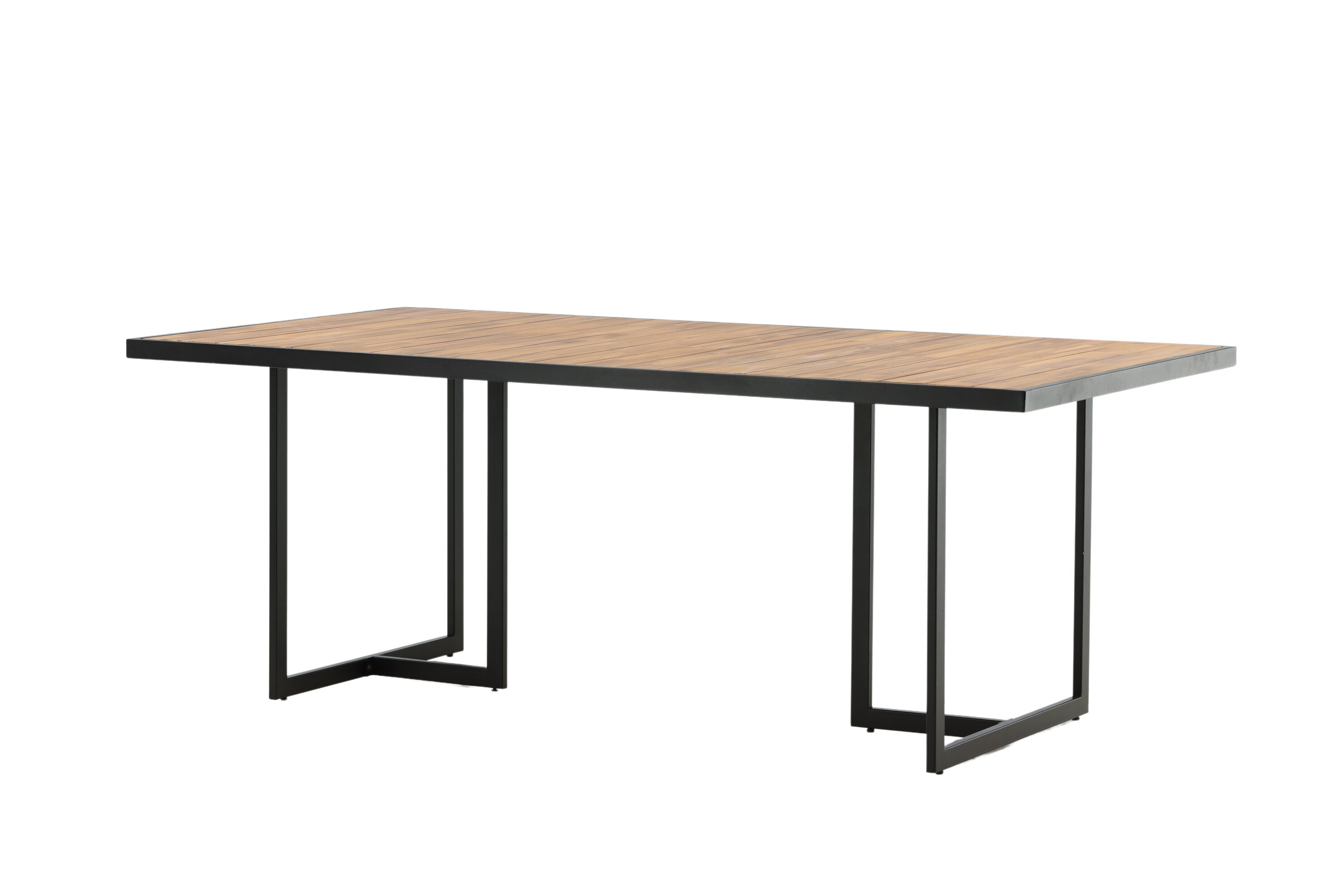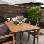 Jídelní stůl khung z hnědé akácie s ozdobným rámem a podvozkem z černé oceli. Jídelní stůl, který se hodí stejně dobře na zahradu jako na terasu. Užijte si společně krásné letní chvíle! Přečtěte si více v našich radách pro údržbu, jak se o svůj stůl co nejlépe starat.