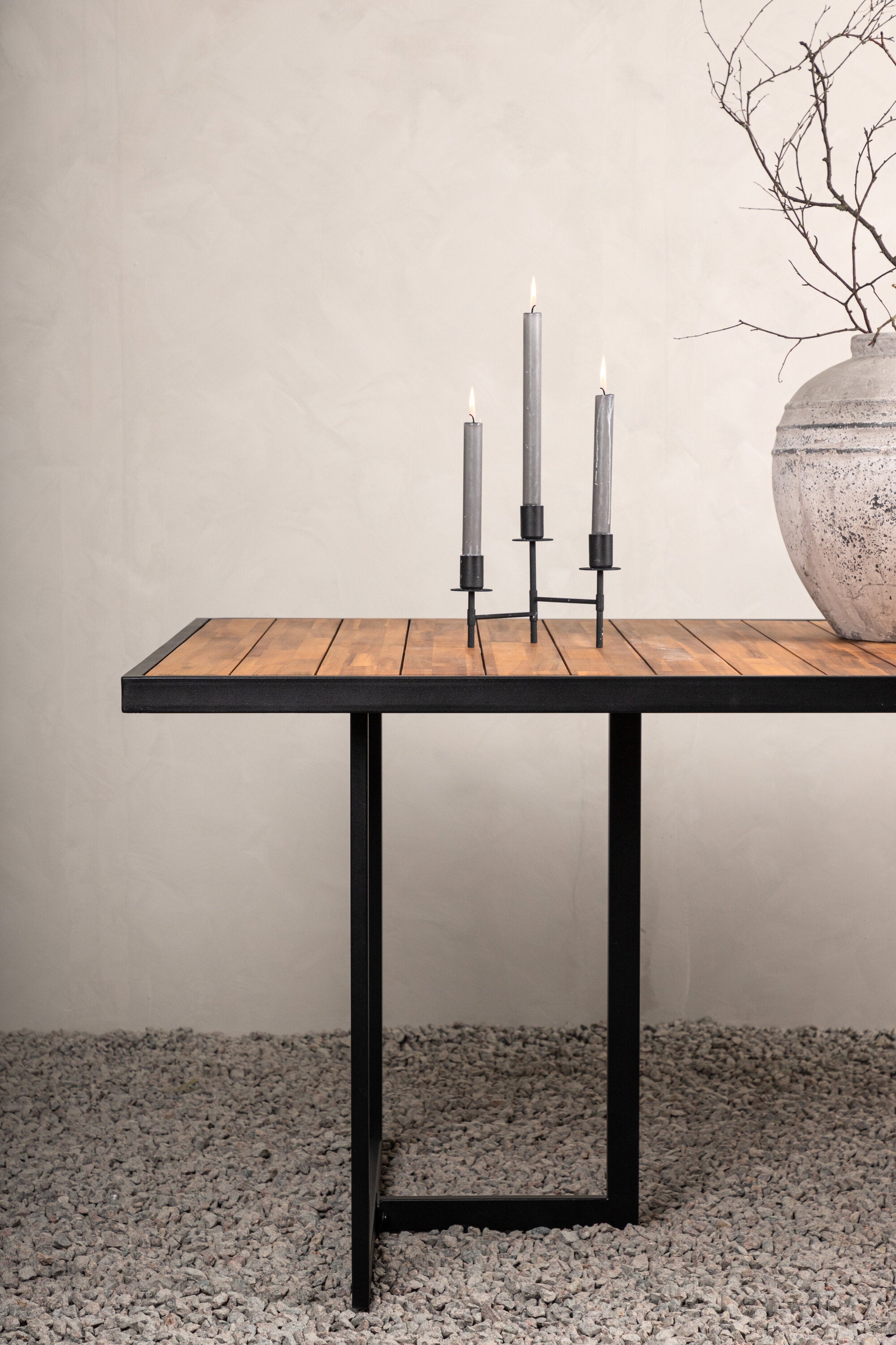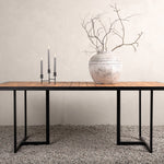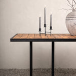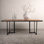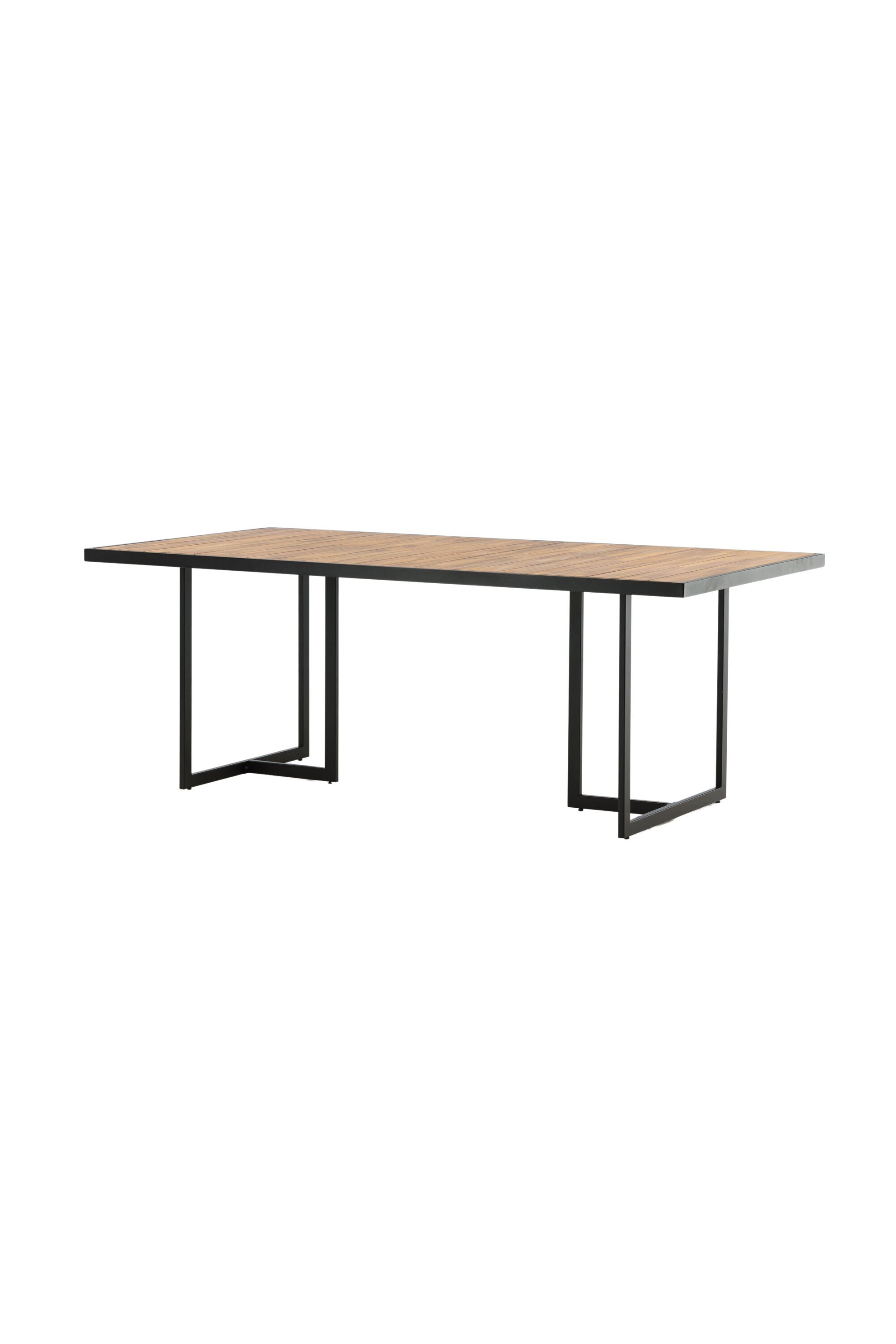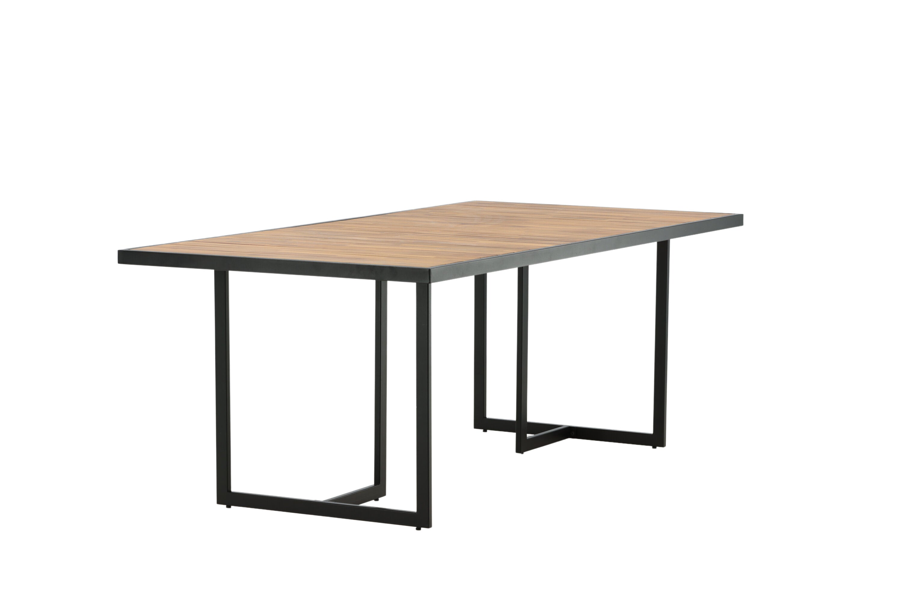 Jídelní stůl khung z hnědé akácie s ozdobným rámem a podvozkem z černé oceli. Jídelní stůl, který se hodí stejně dobře na zahradu jako na terasu. Užijte si společně krásné letní chvíle! Přečtěte si více v našich radách pro údržbu, jak se o svůj stůl co nejlépe starat.