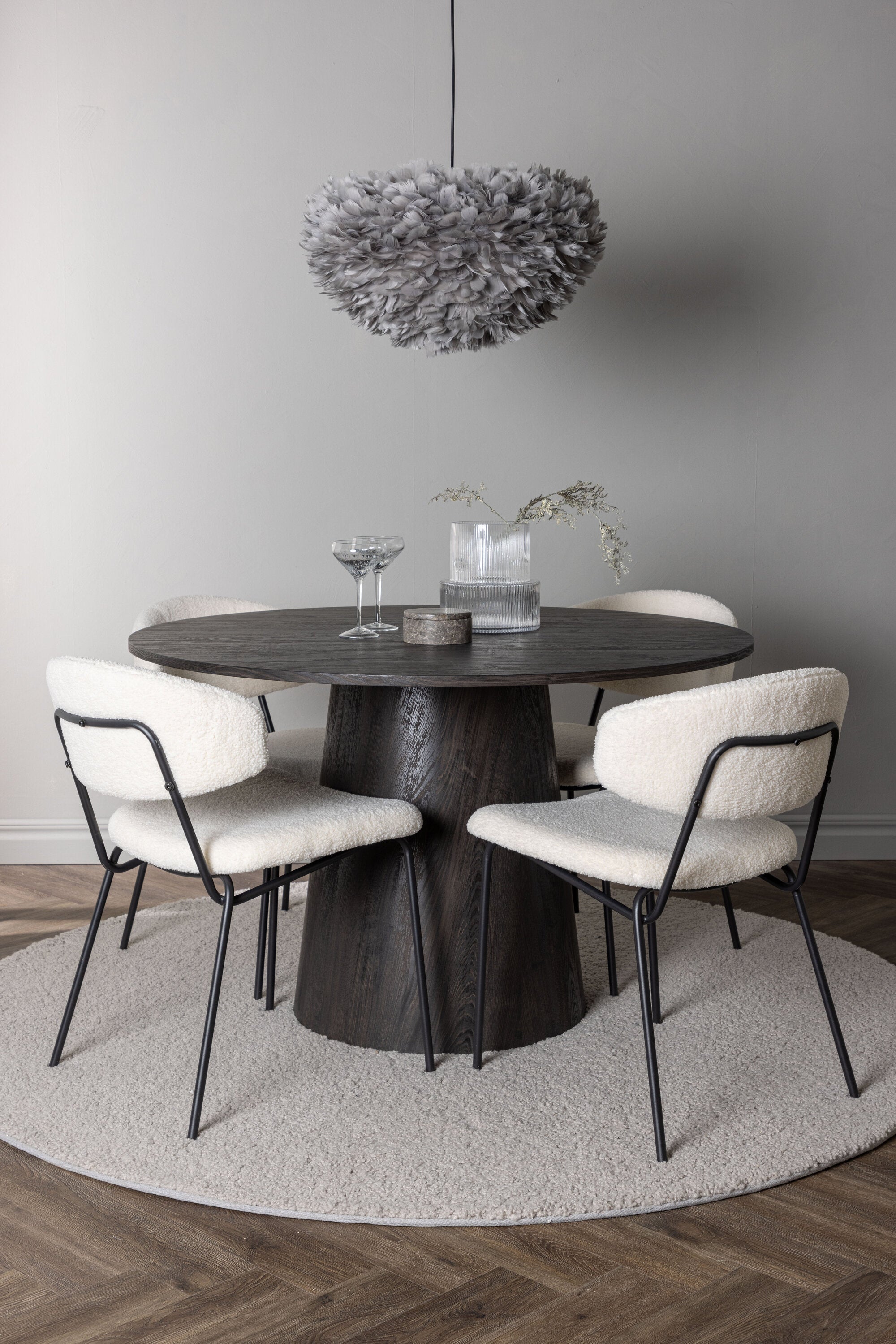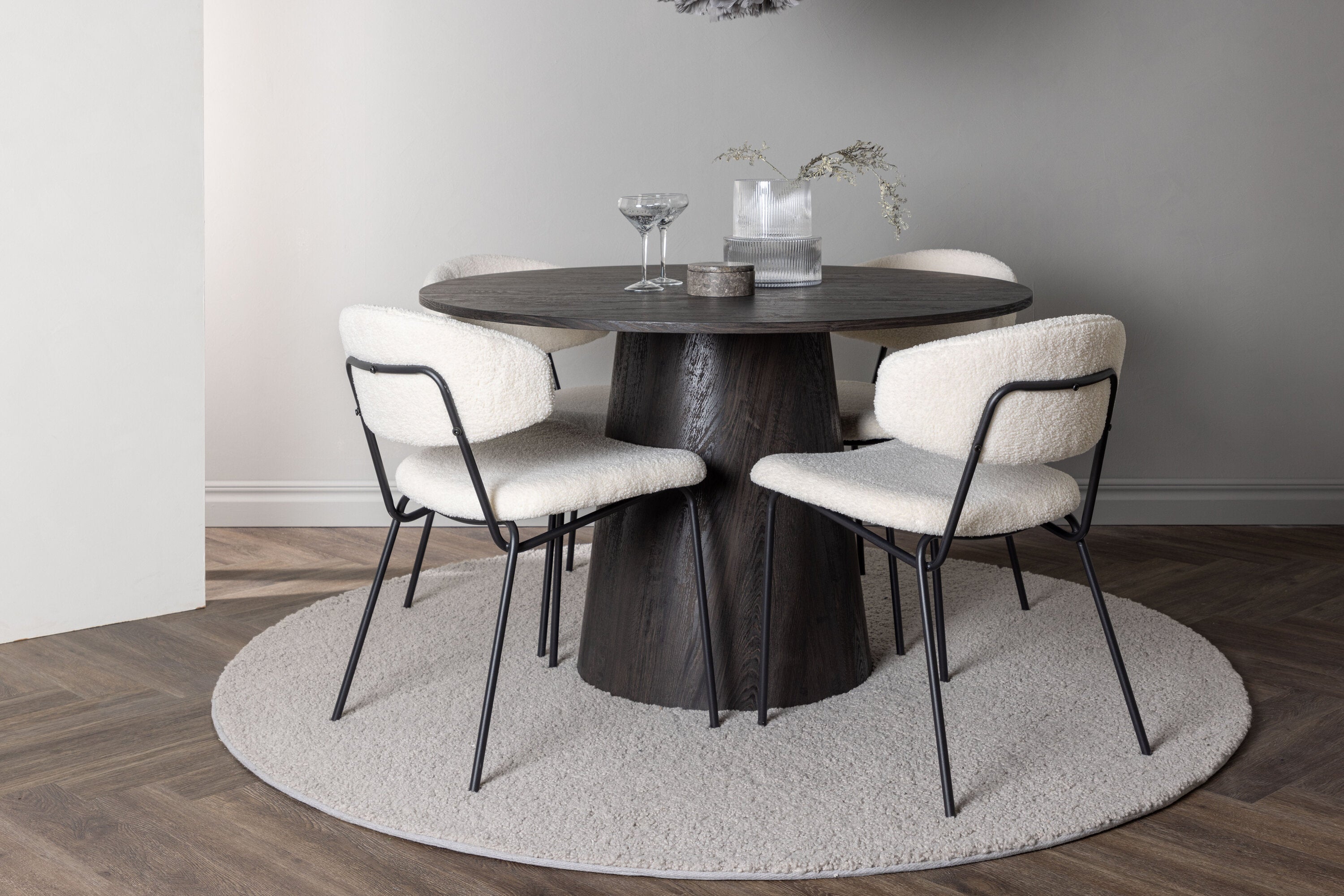 Jídelní stůl Lanzo φ120 - Mocca/Mocca +Chico jídelní židle - Černá / Bílá Boucle _4