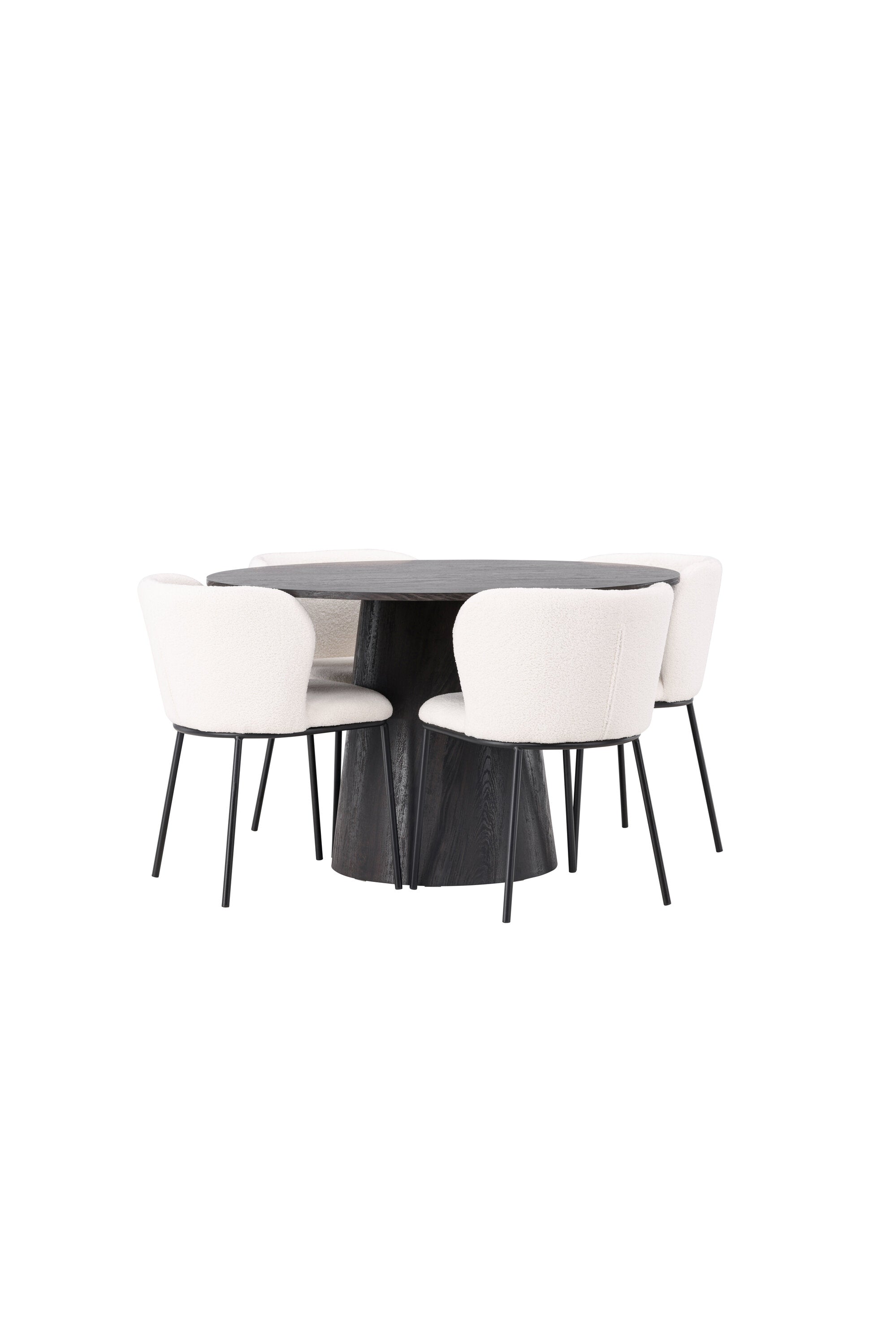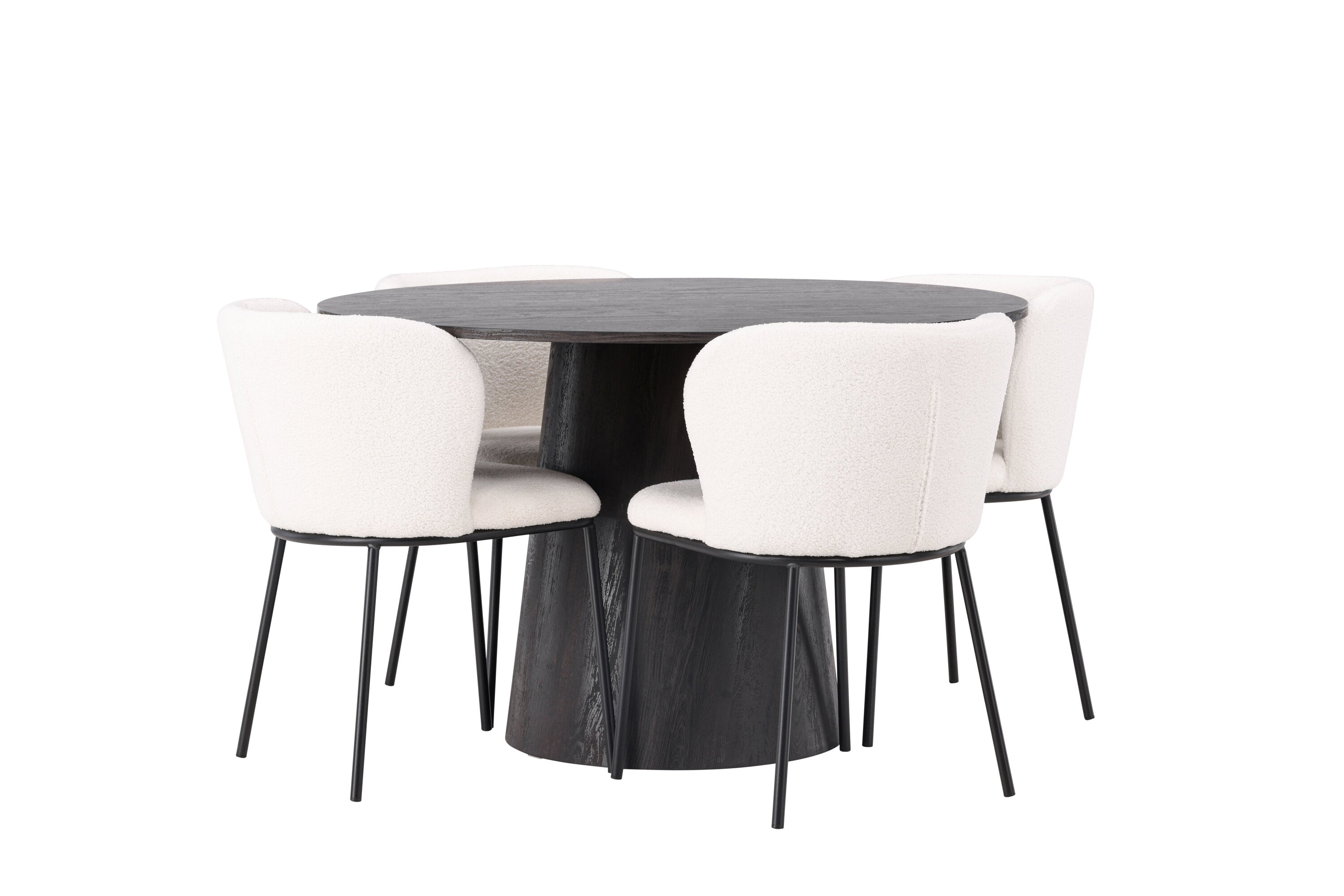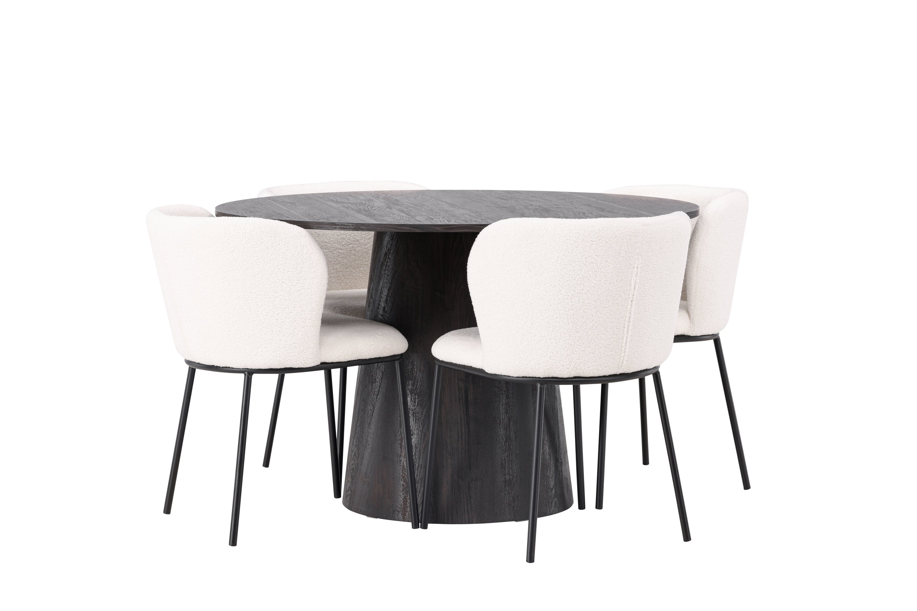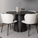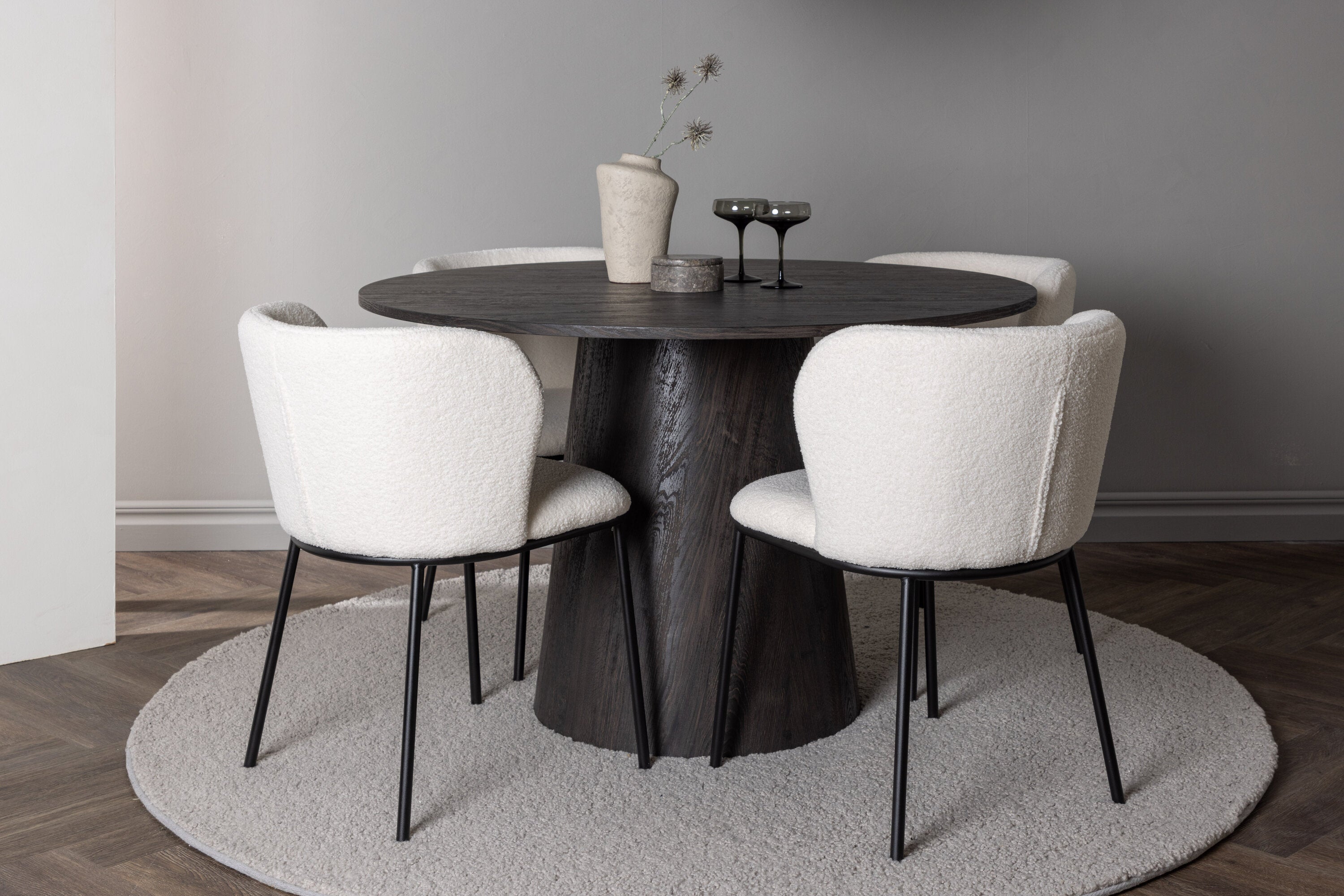 Jídelní stůl Lanzo φ120 - Mocca/Mocca +Jídelní židle Edina - Černá / Bílá Boucle _4