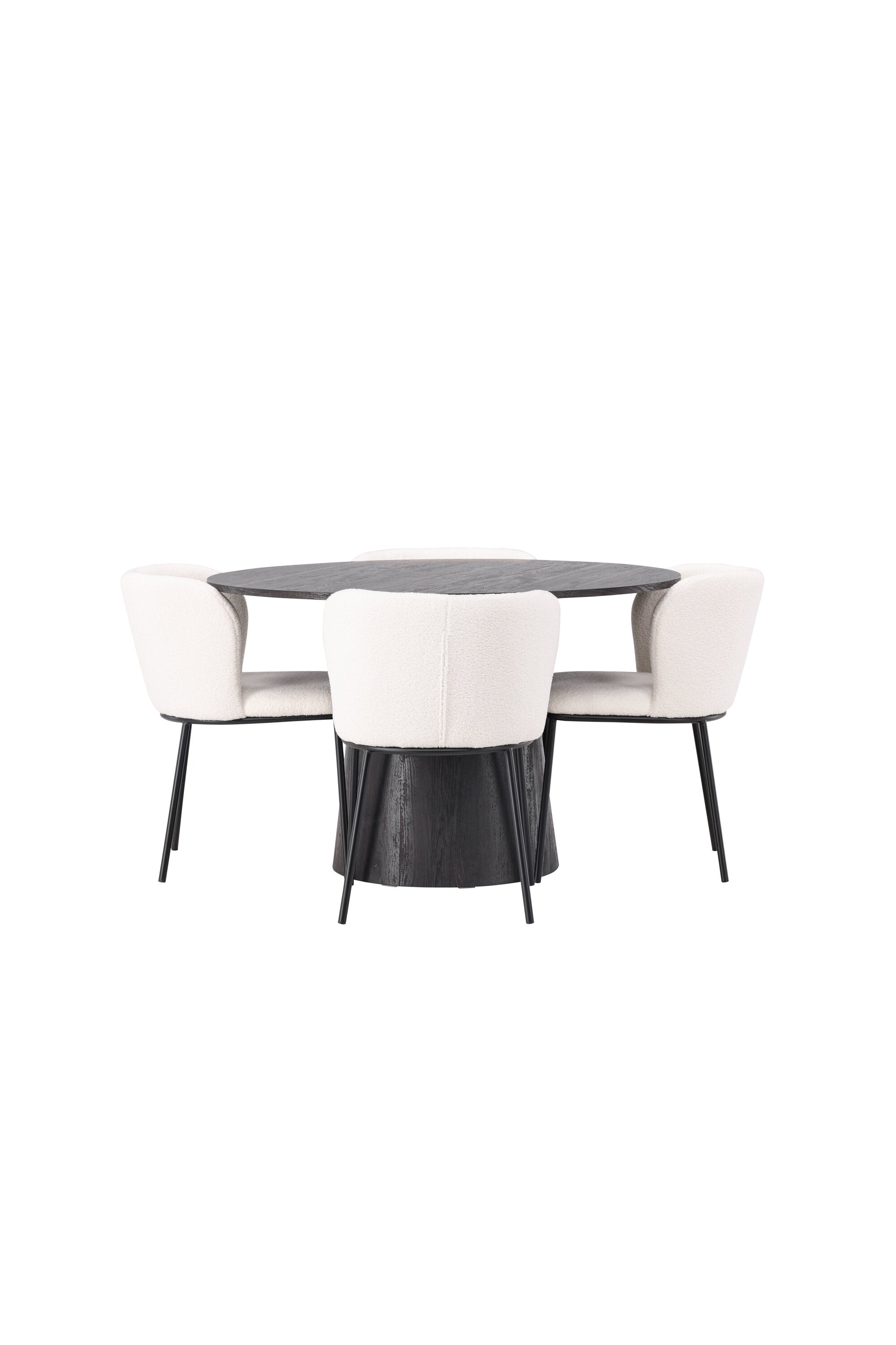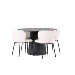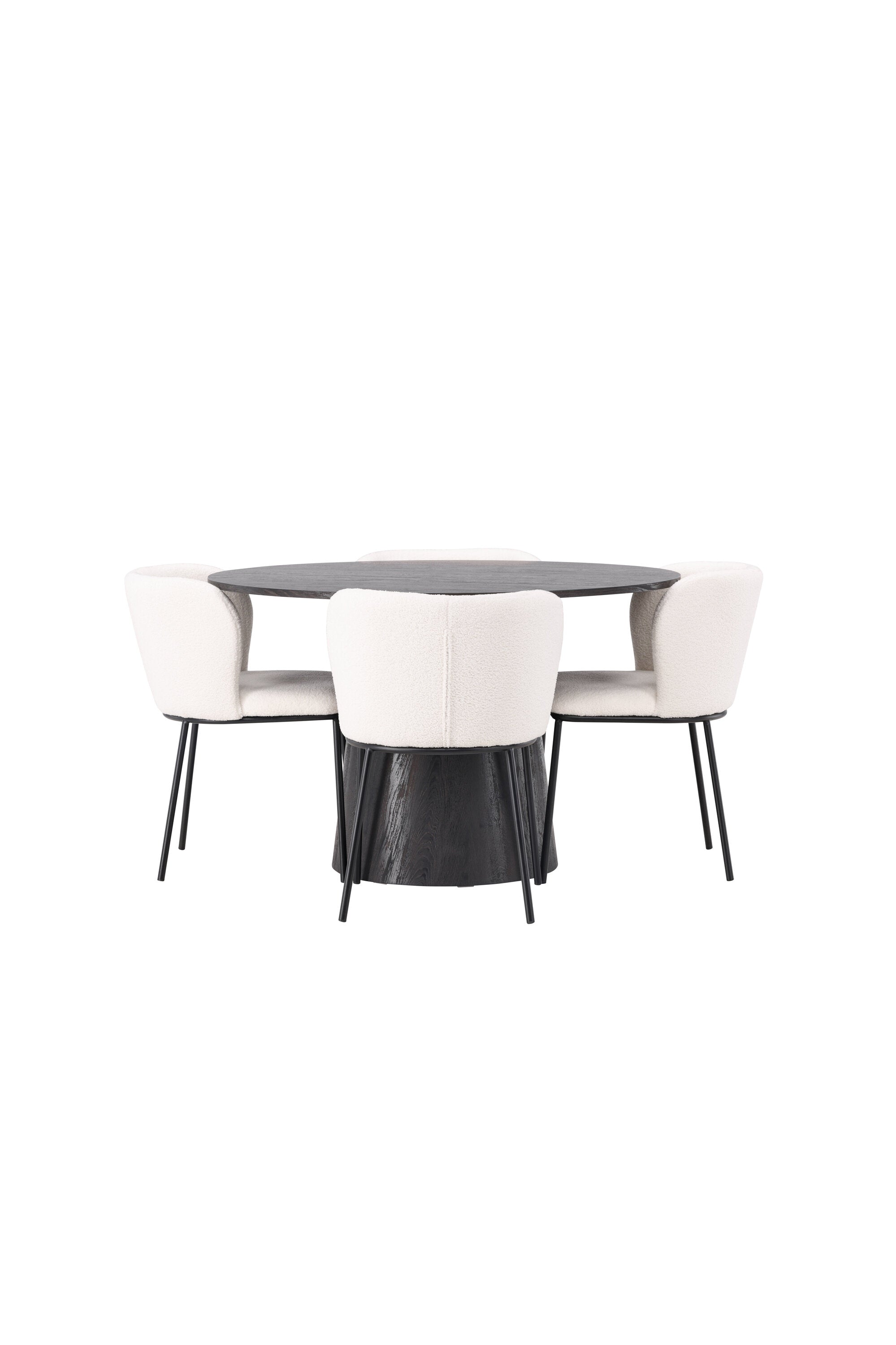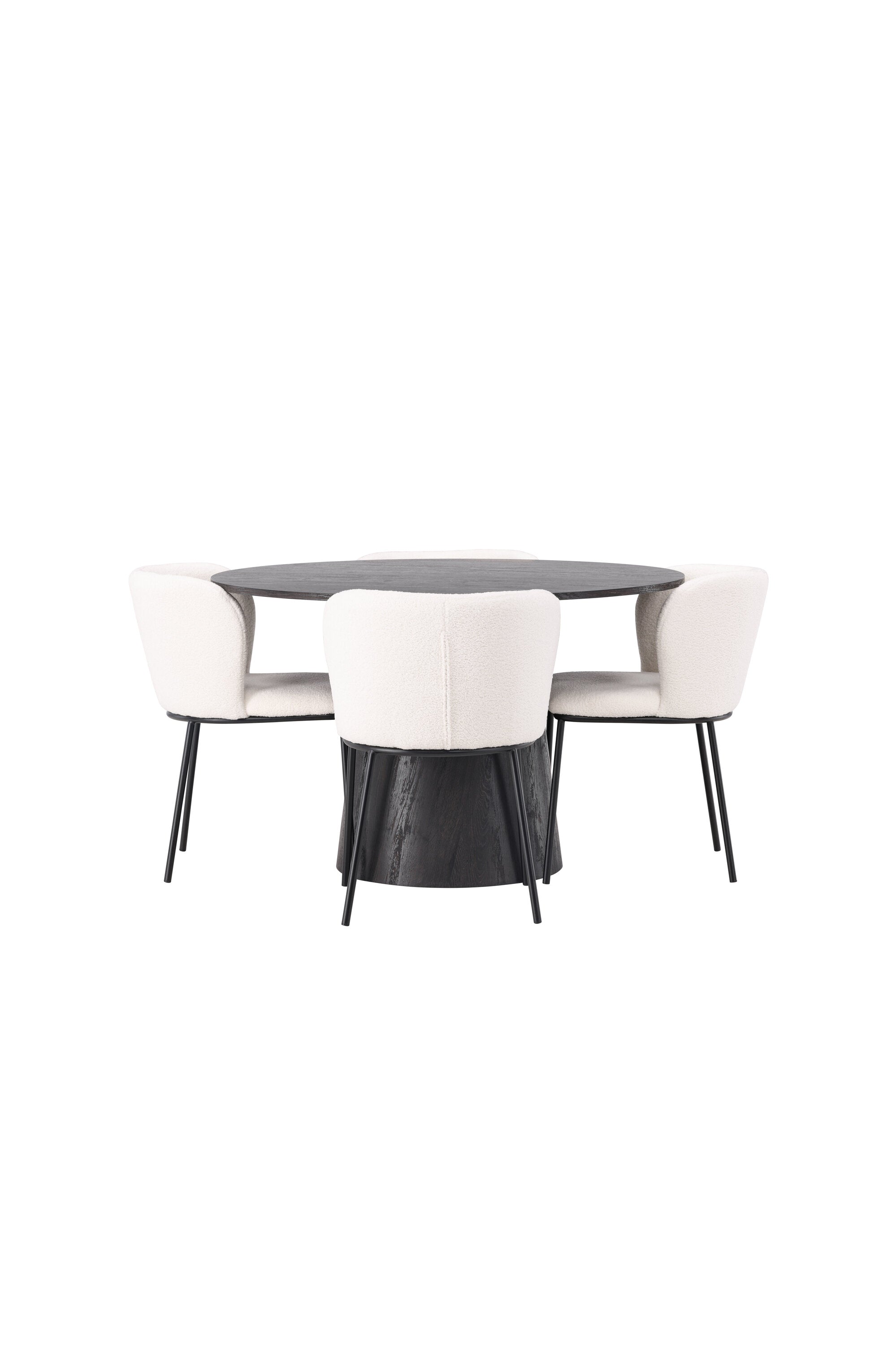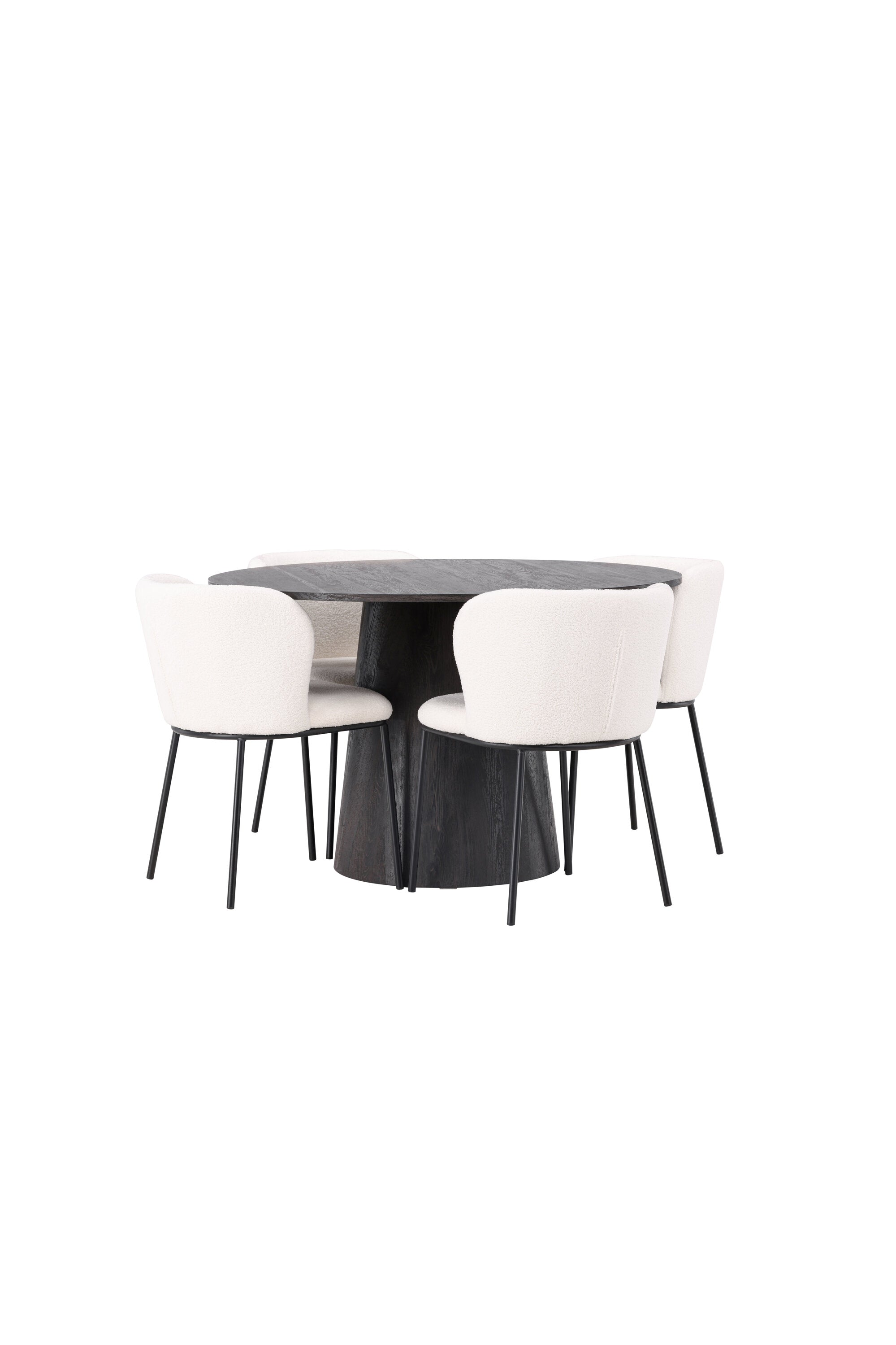 Jídelní stůl Lanzo φ120 - Mocca/Mocca +Jídelní židle Edina - Černá / Bílá Boucle _4