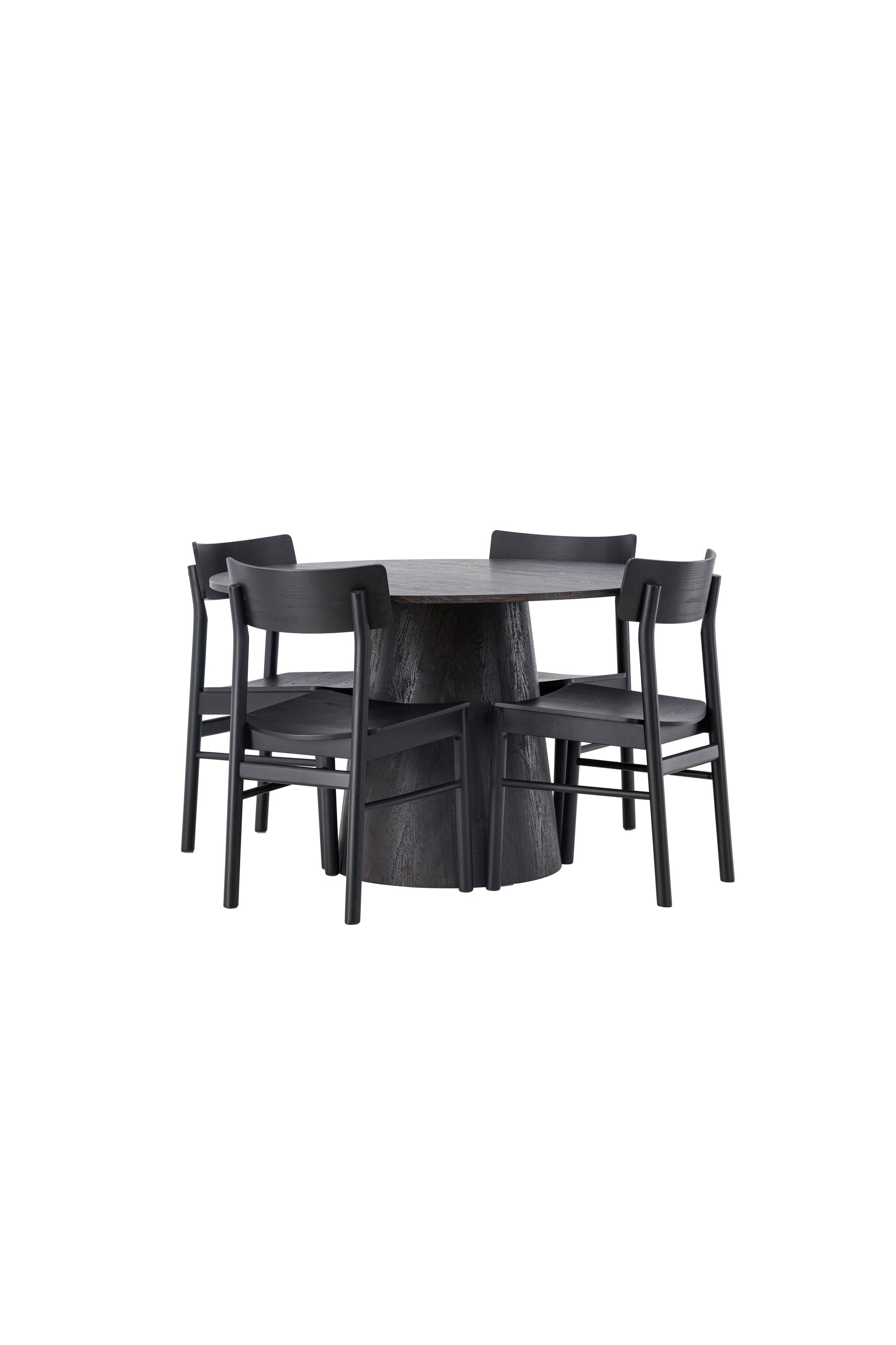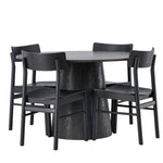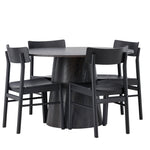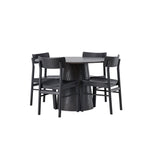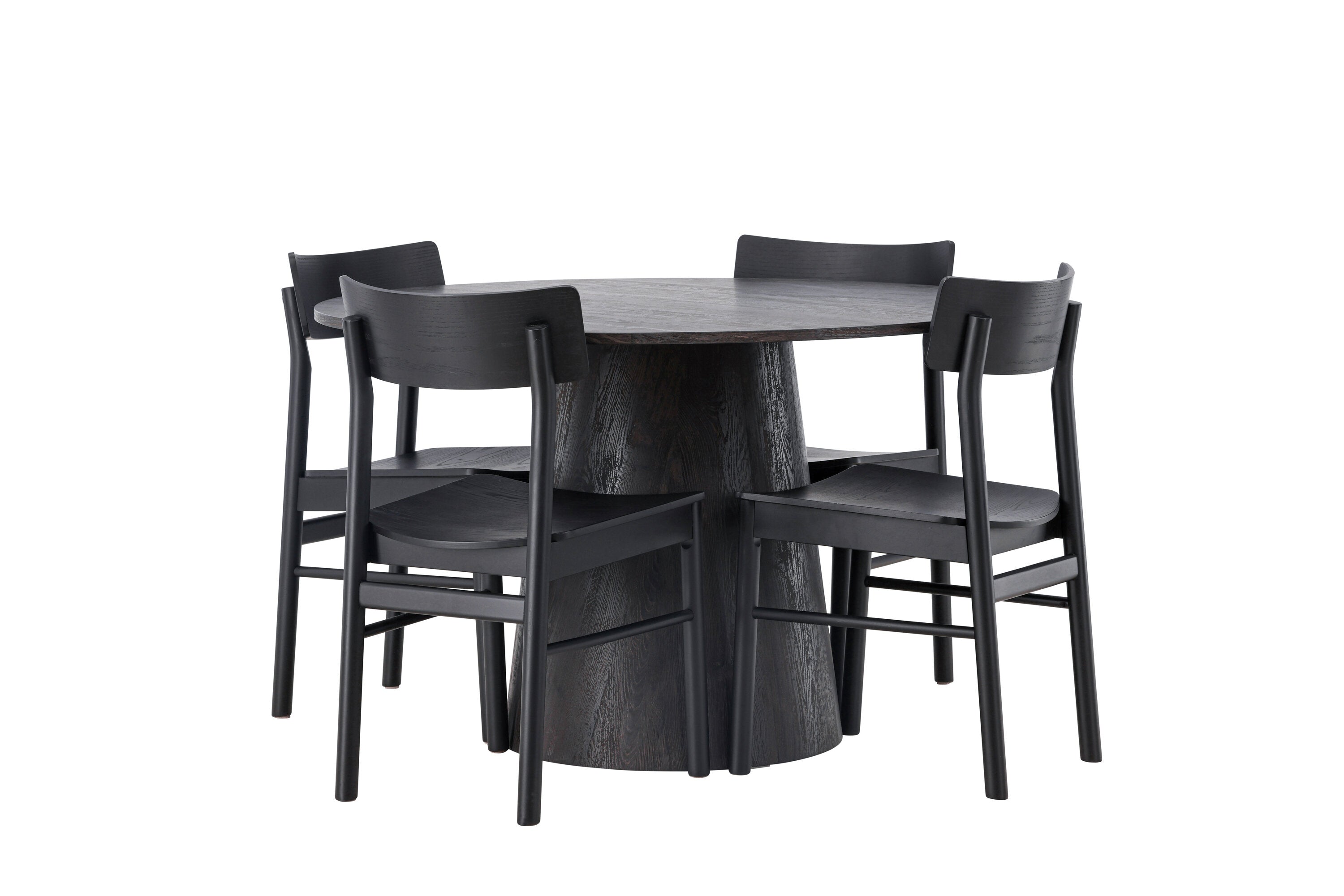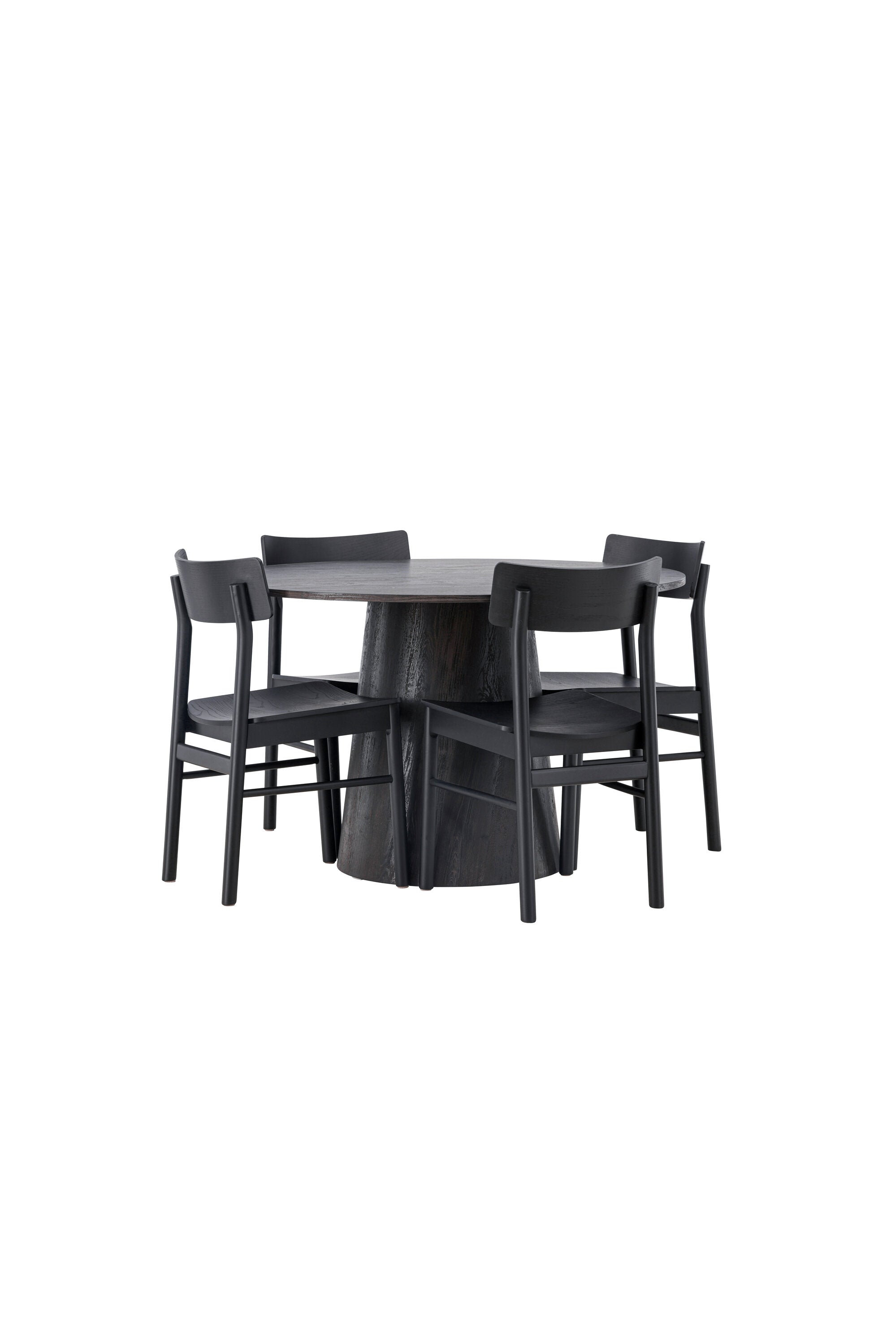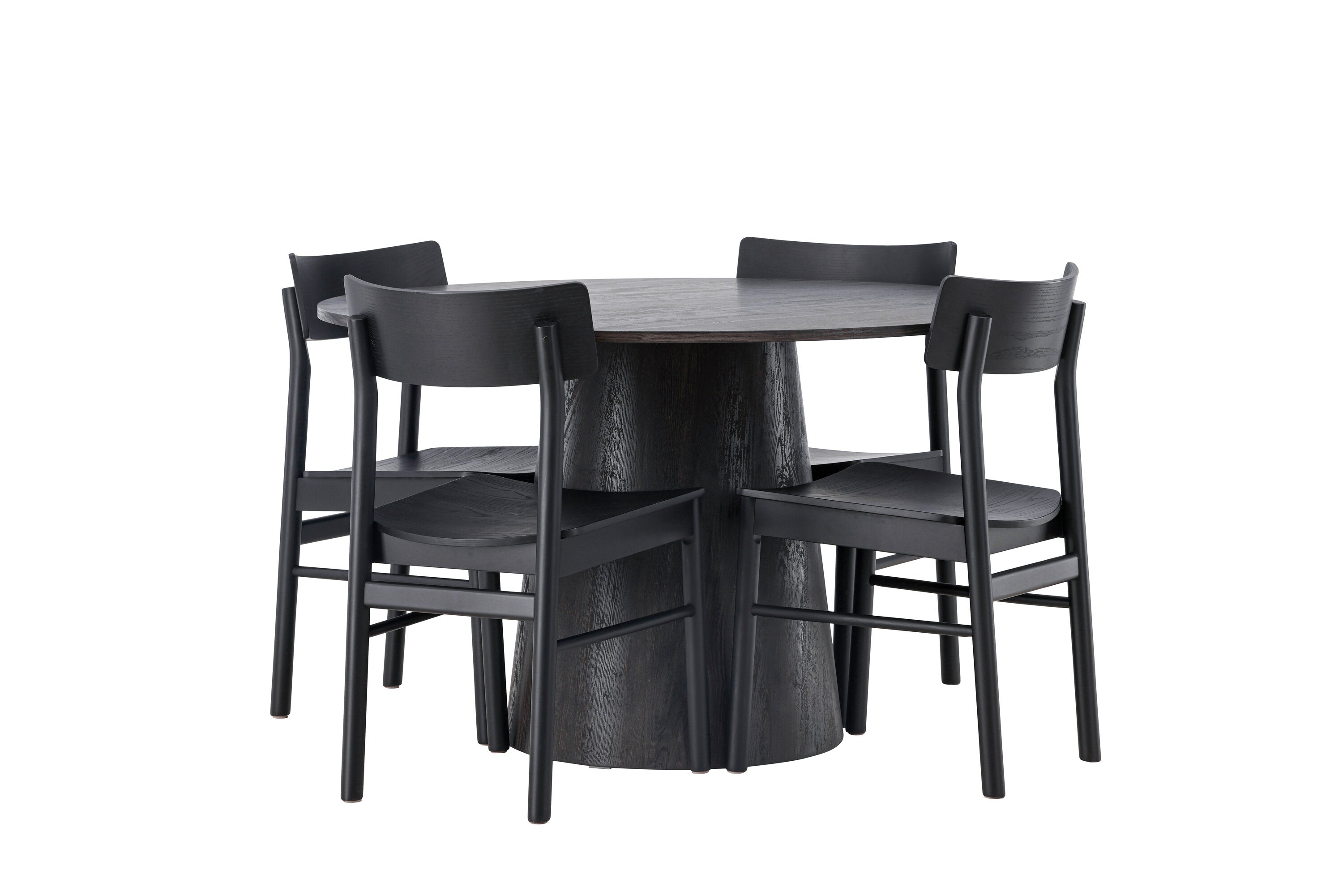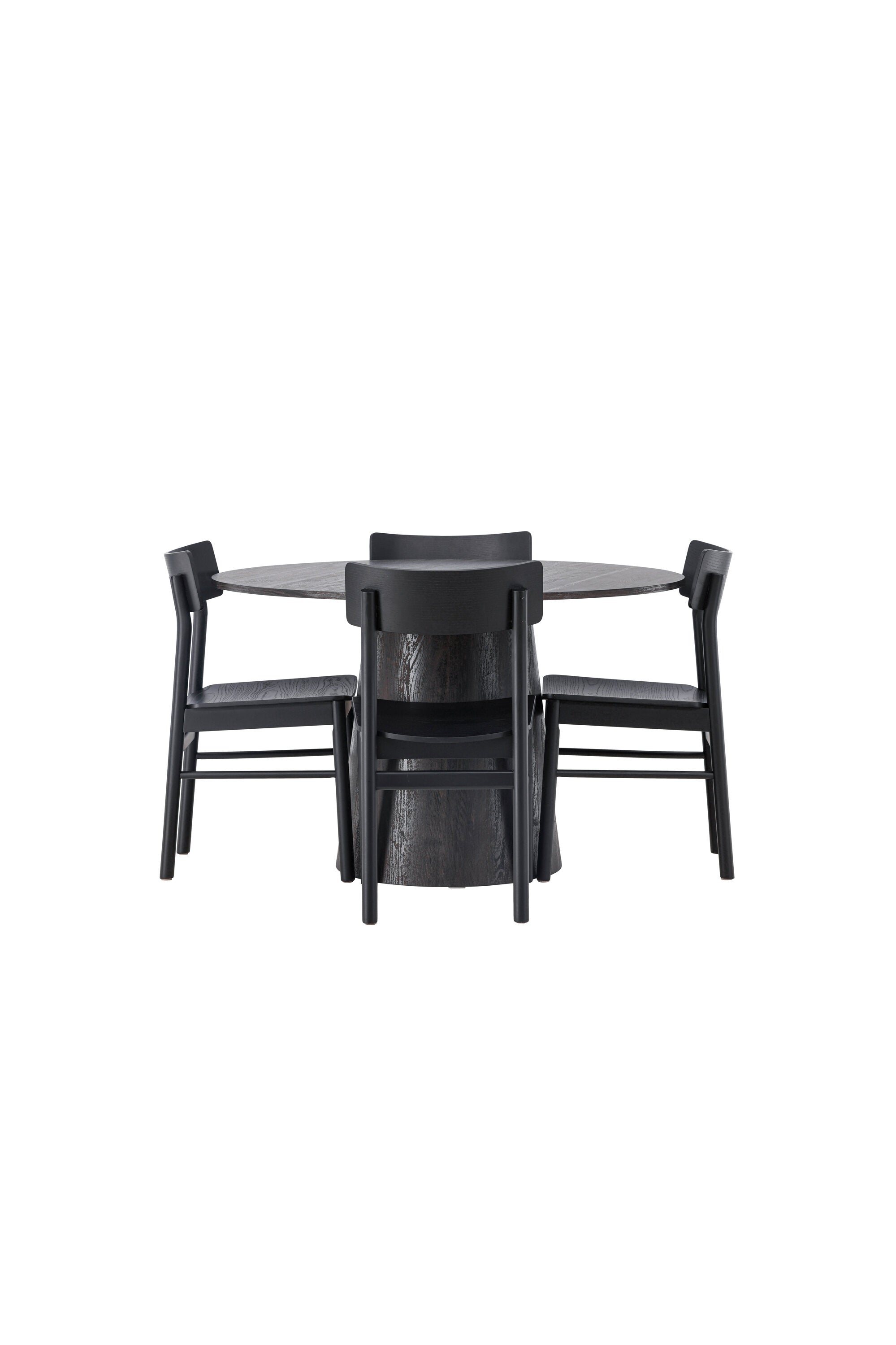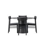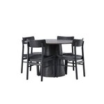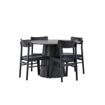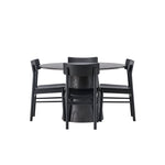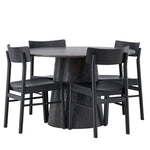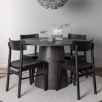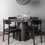 Skandinávský design v celé své kráse! Náš nádherný kulatý jídelní stůl Lanzo má celkový design z hnědé MDF s tenkou deskou a krouceným válcovým rámem, který je vycentrován pod stolem. Zde ve vkusné kombinaci s moderními jídelními židlemi ze série Montros. Židle má klasický a nostalgický design s rovnými severskými tvary, celoplošně vyrobena z černého kaučukovníku. Jednoduše, dokonalá shoda! Průměr stolu: 120 cm.