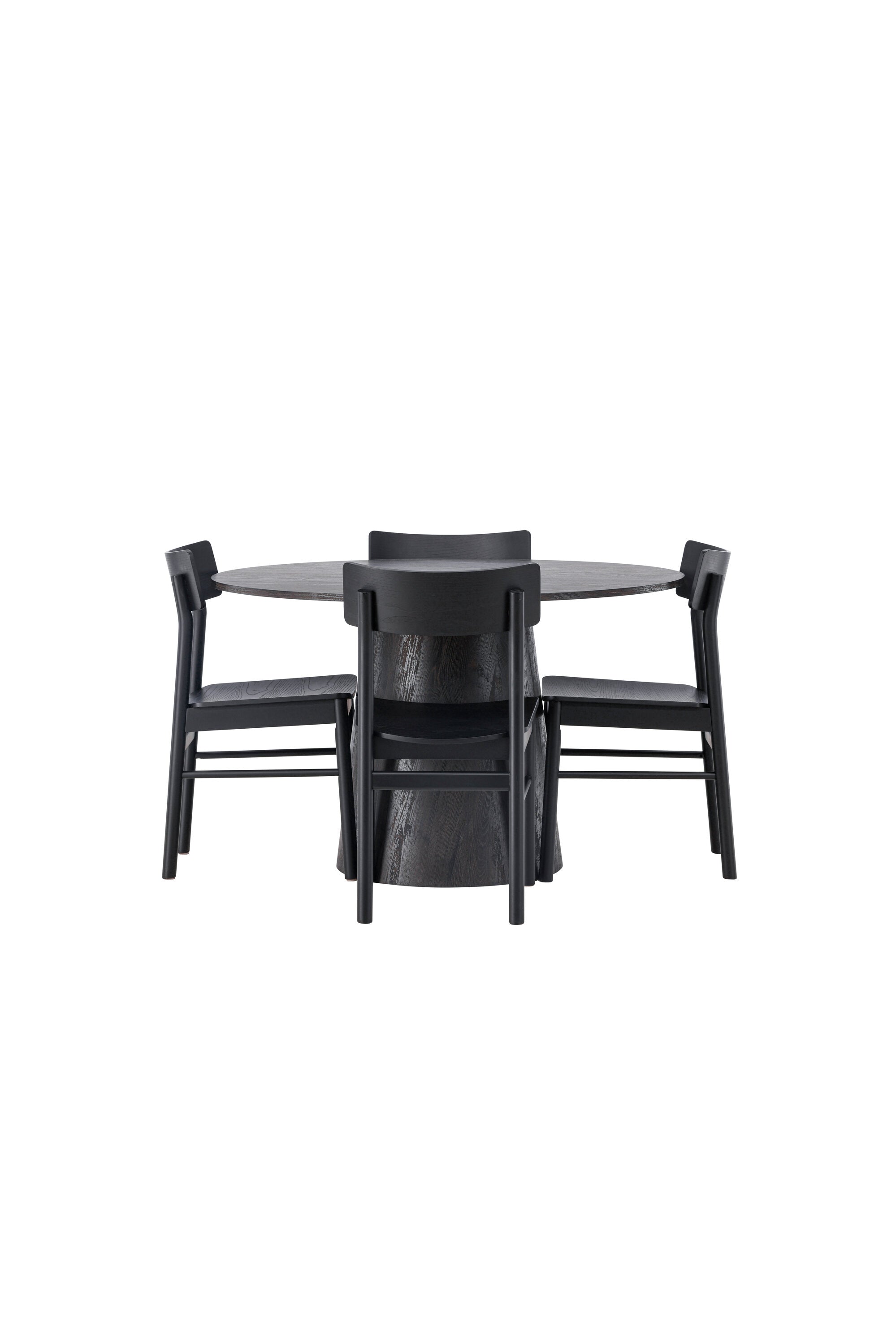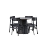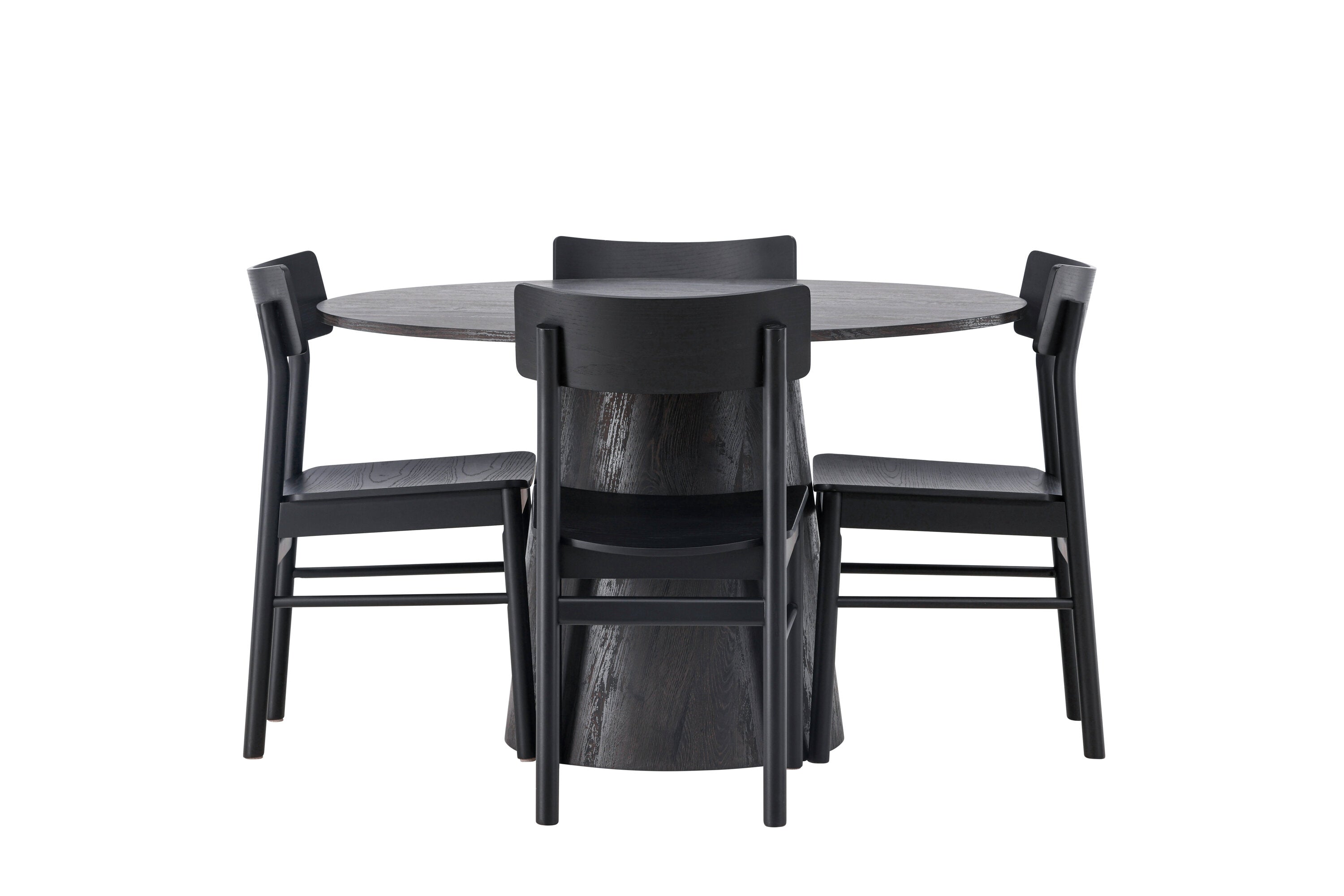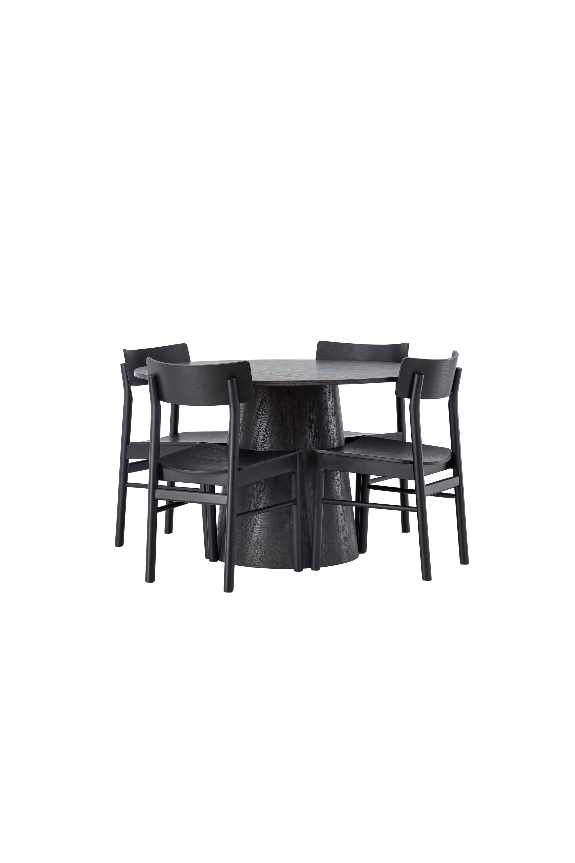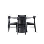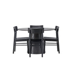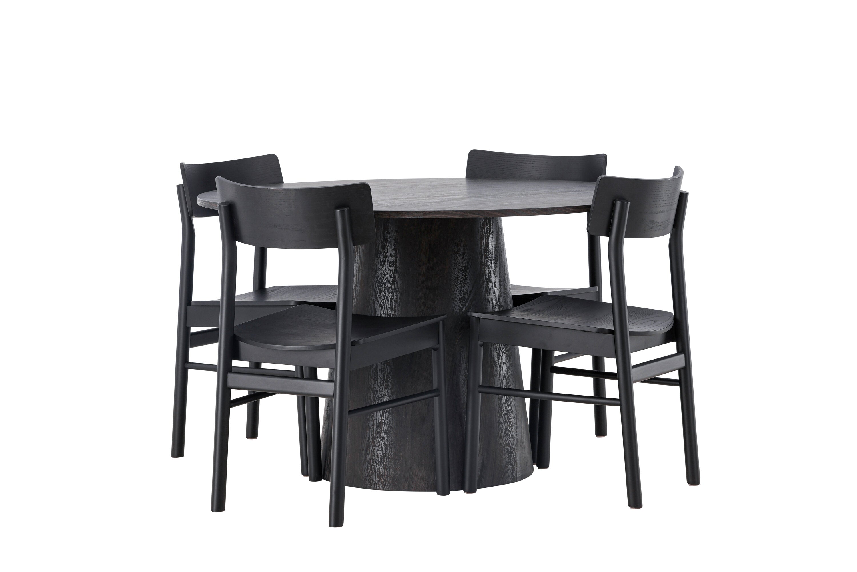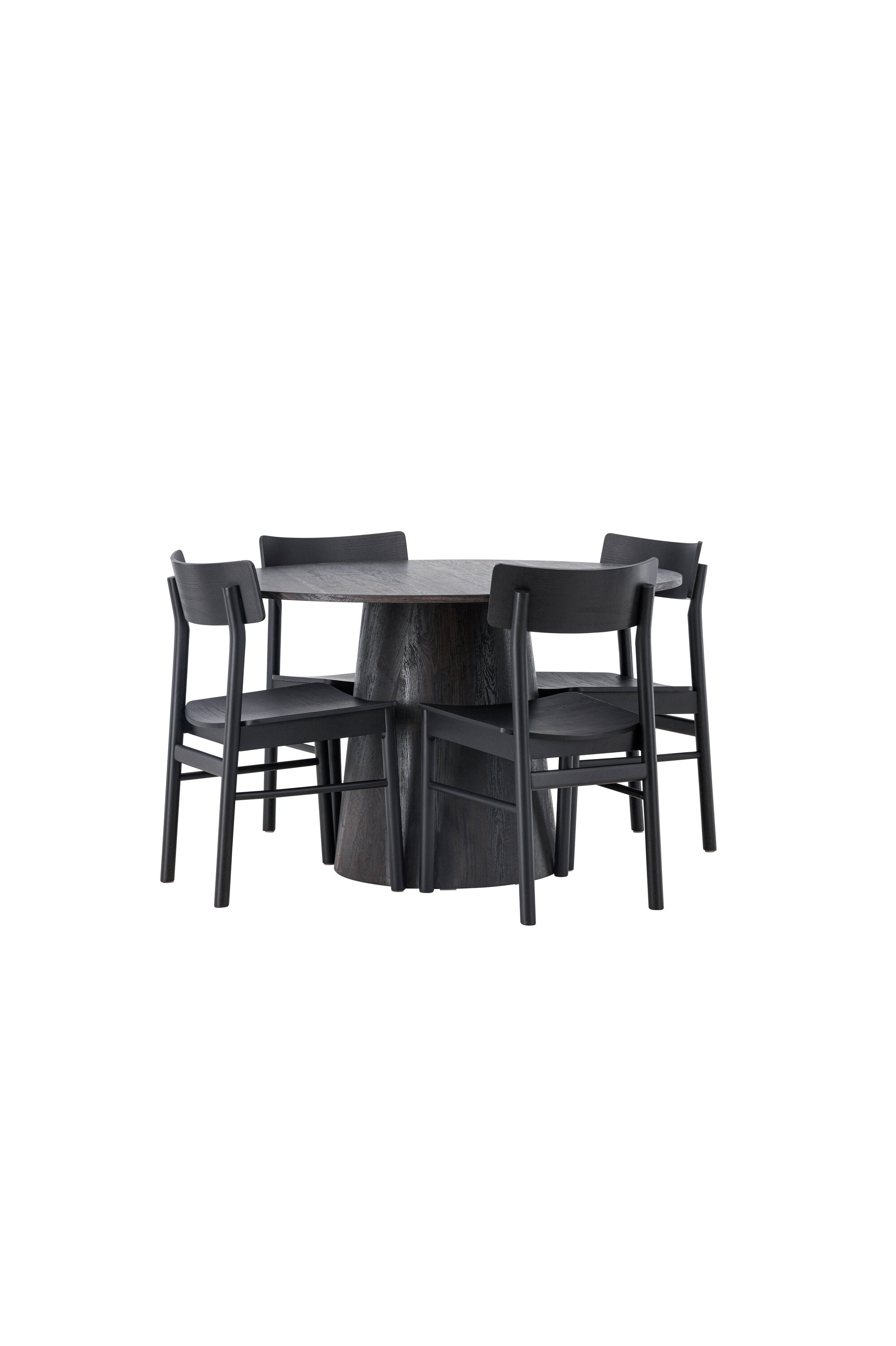 Skandinávský design v celé své kráse! Náš nádherný kulatý jídelní stůl Lanzo má celkový design z hnědé MDF s tenkou deskou a krouceným válcovým rámem, který je vycentrován pod stolem. Zde ve vkusné kombinaci s moderními jídelními židlemi ze série Montros. Židle má klasický a nostalgický design s rovnými severskými tvary, celoplošně vyrobena z černého kaučukovníku. Jednoduše, dokonalá shoda! Průměr stolu: 120 cm.