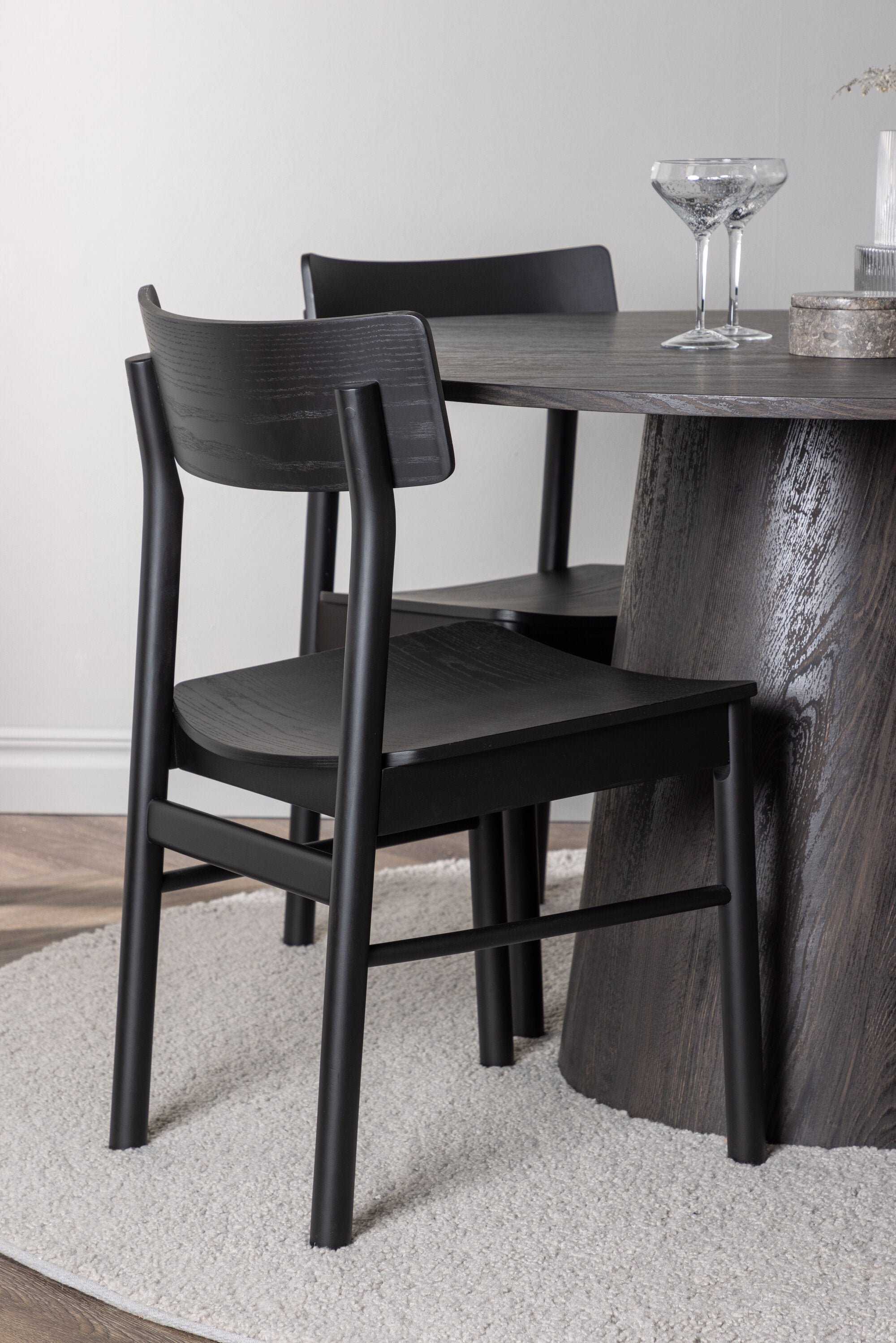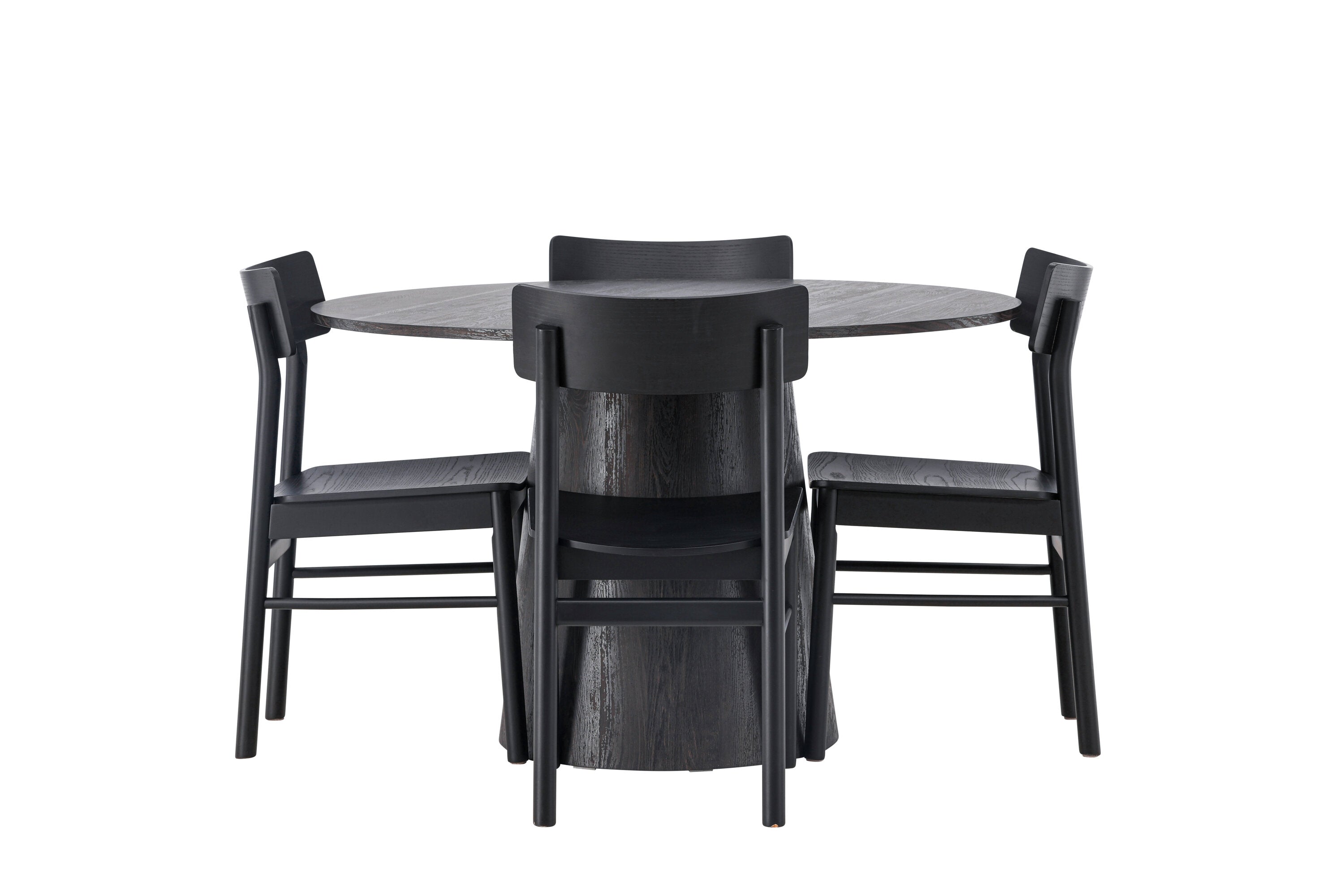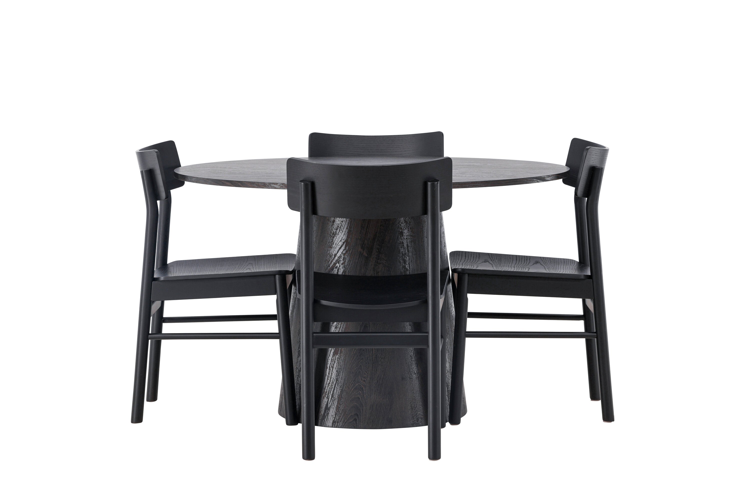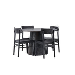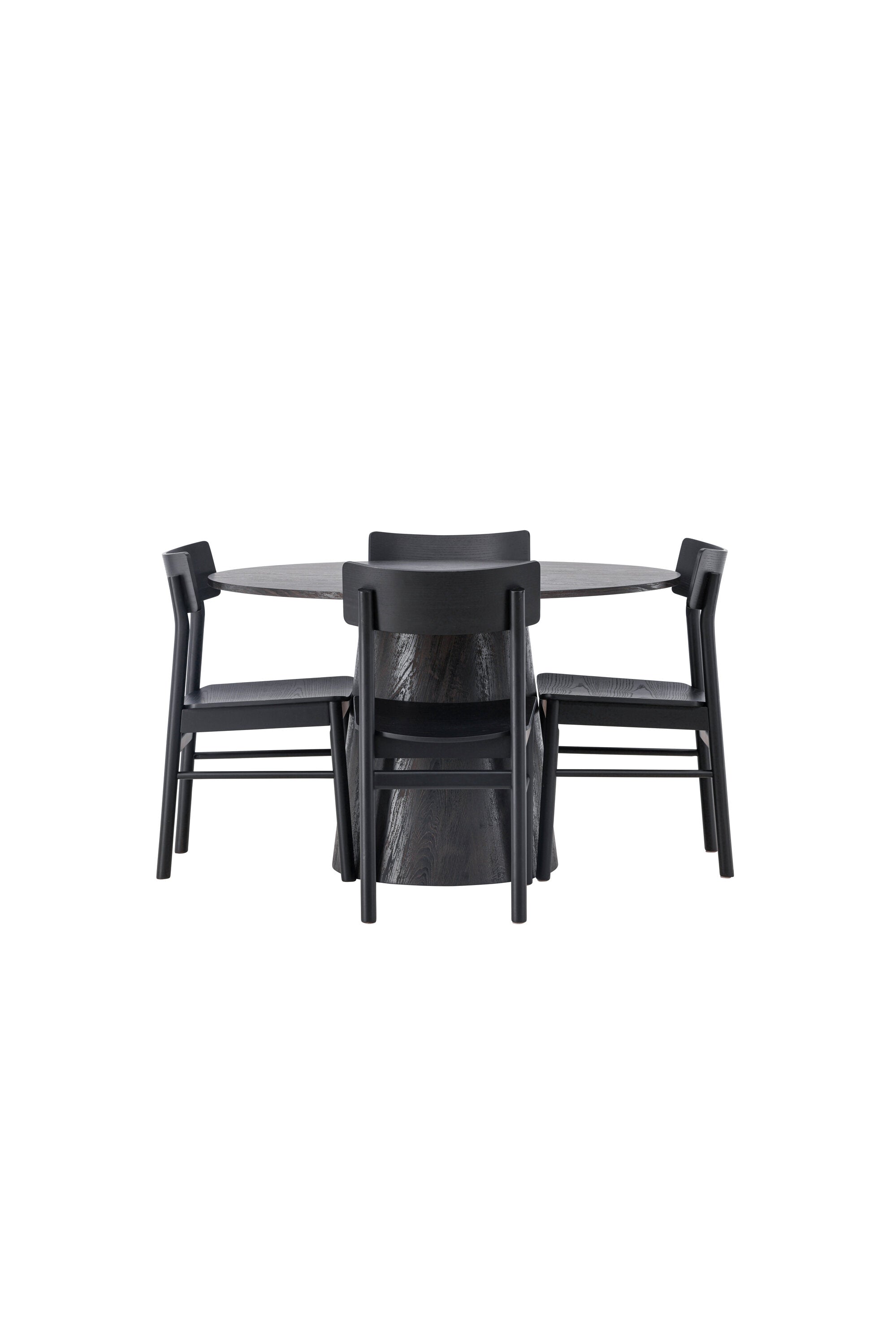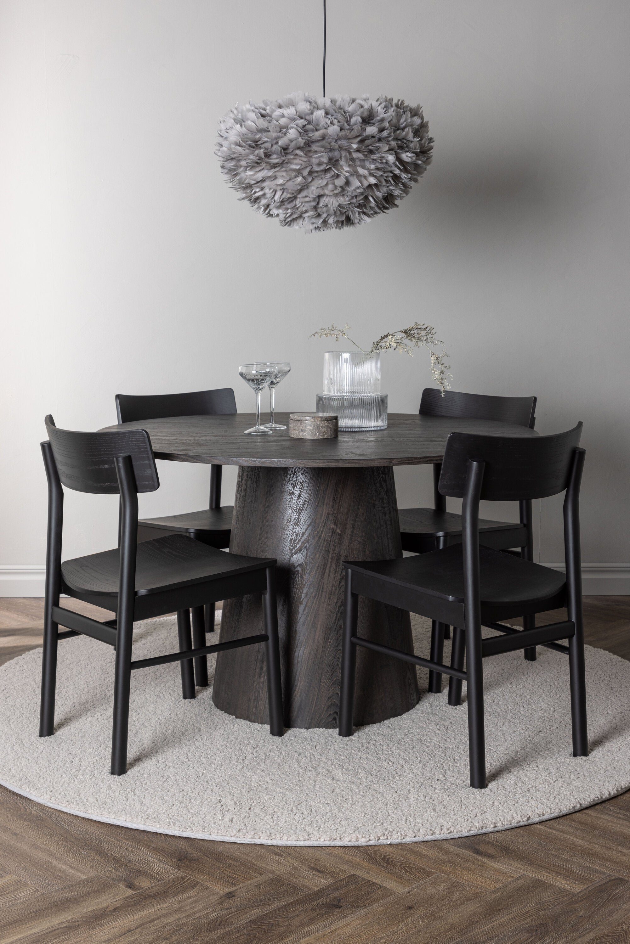 Skandinávský design v celé své kráse! Náš nádherný kulatý jídelní stůl Lanzo má celkový design z hnědé MDF s tenkou deskou a krouceným válcovým rámem, který je vycentrován pod stolem. Zde ve vkusné kombinaci s moderními jídelními židlemi ze série Montros. Židle má klasický a nostalgický design s rovnými severskými tvary, celoplošně vyrobena z černého kaučukovníku. Jednoduše, dokonalá shoda! Průměr stolu: 120 cm.