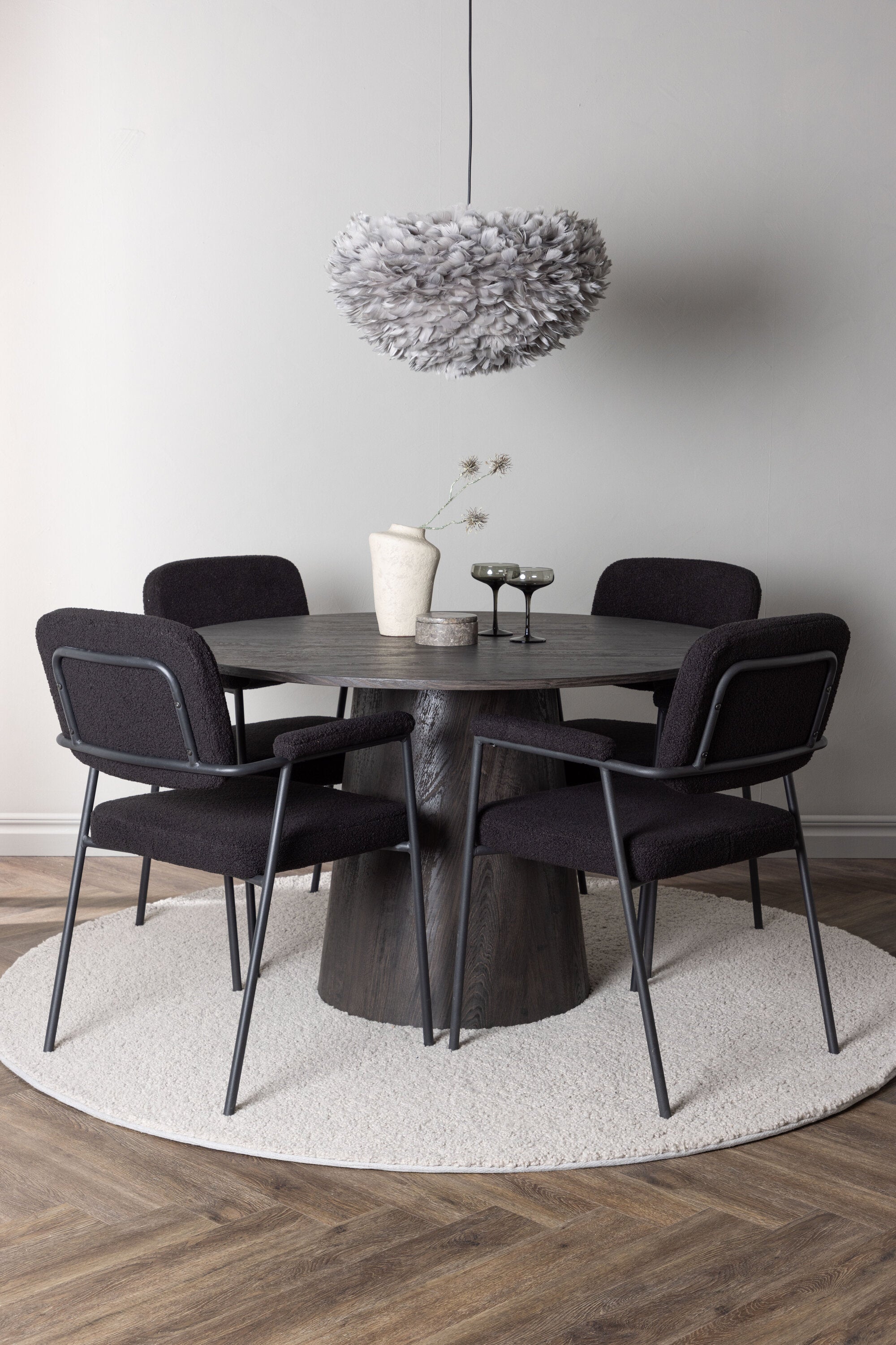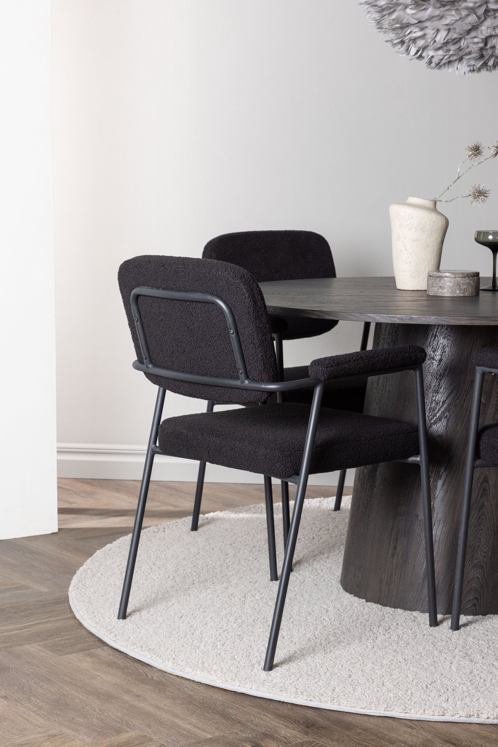 Jídelní stůl Lanzo φ120 - Mocca/Mocca + Jídelní židle Yesterday - Černá / Černá Boucle _4