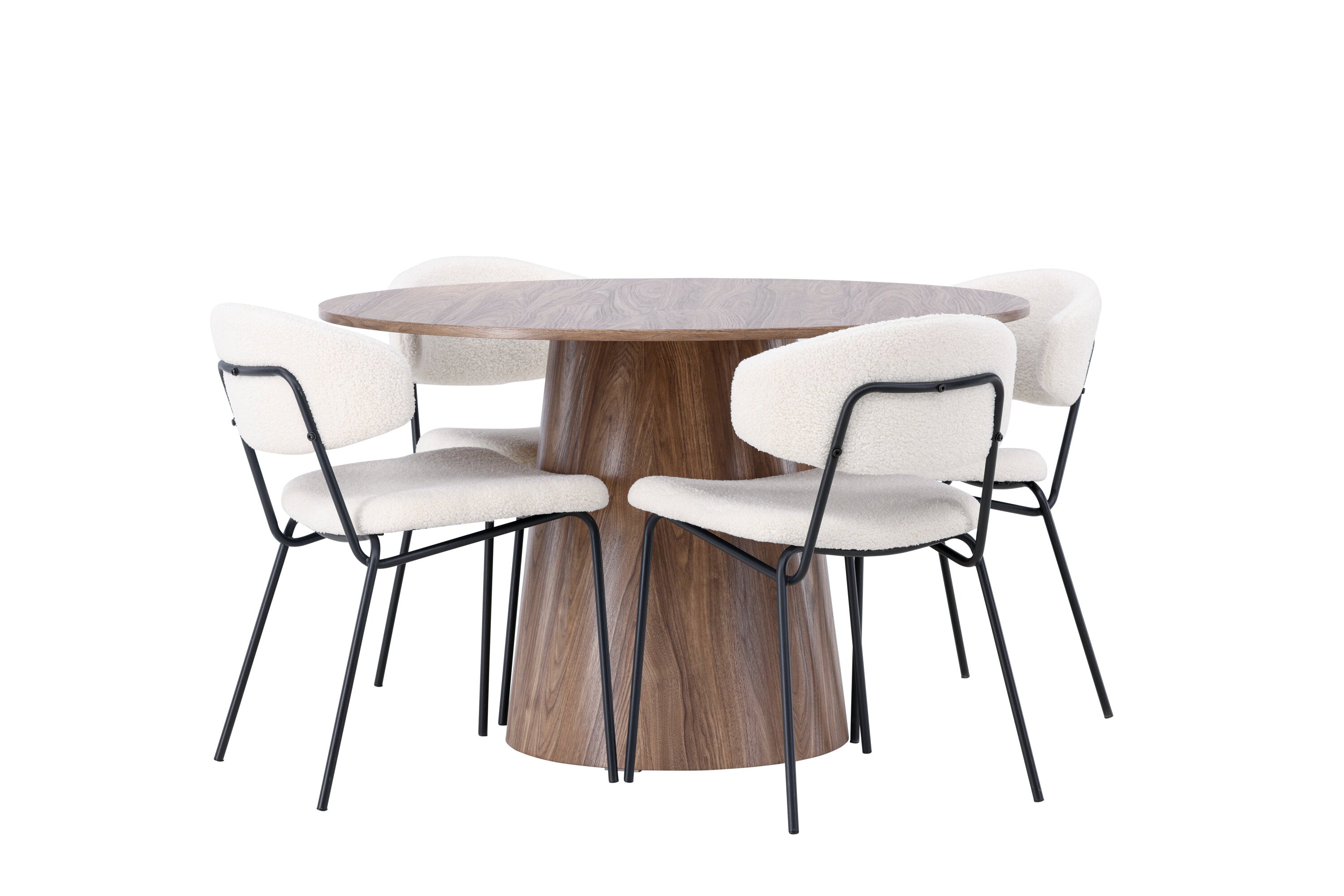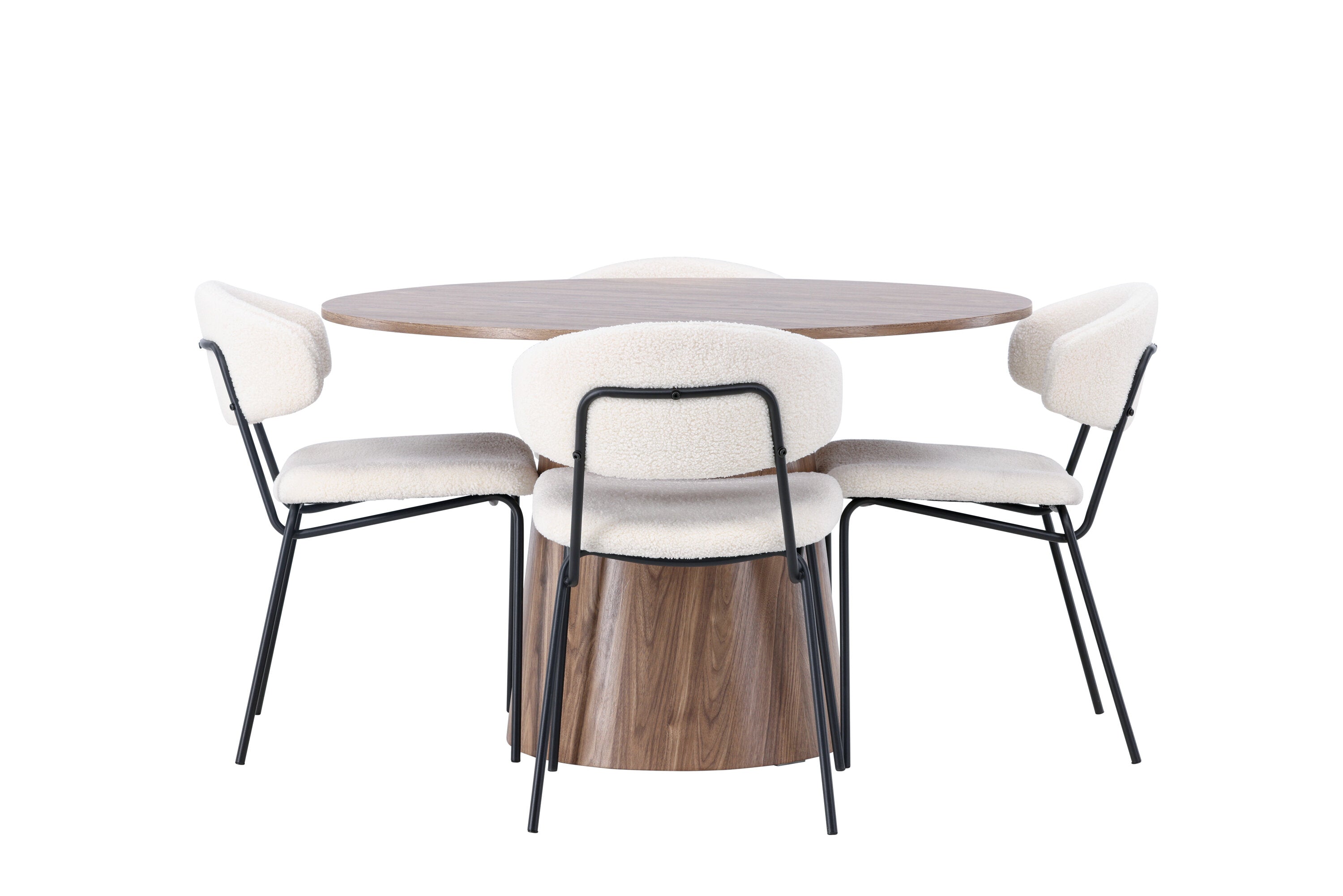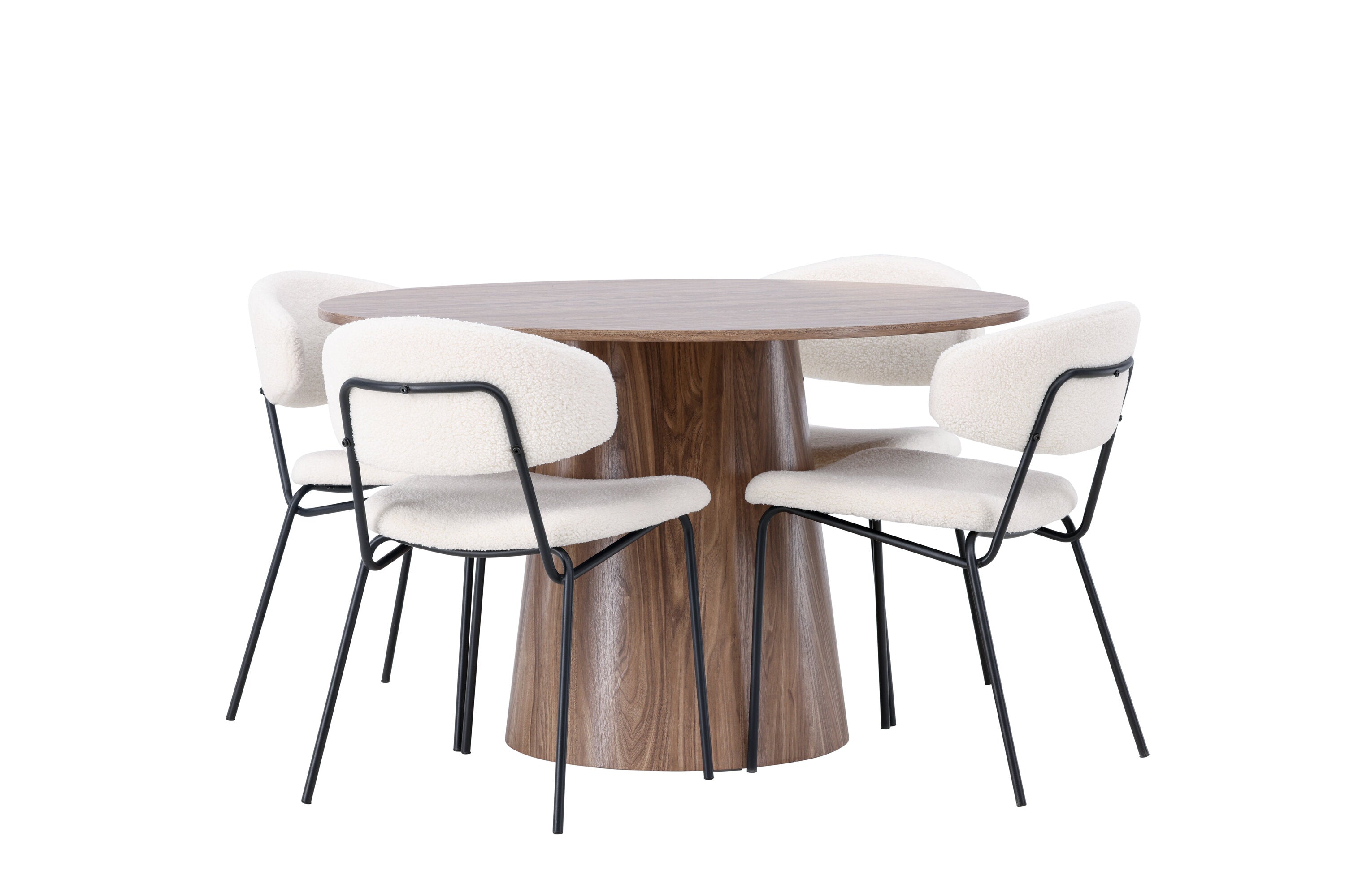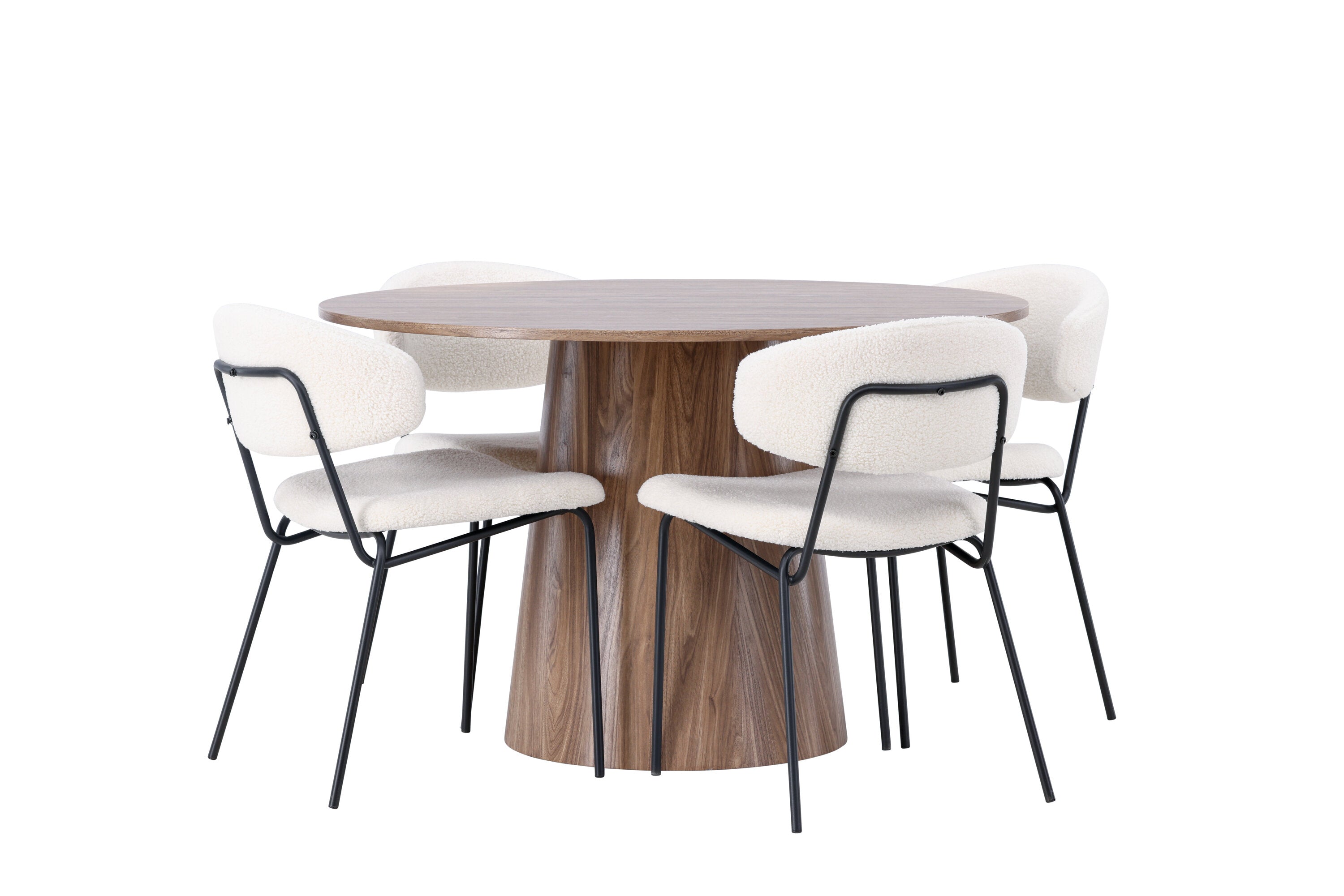 Jídelní stůl Lanzo φ120 - Natural / Natural MDF +Chico Jídelní židle - Black / White Boucle _4