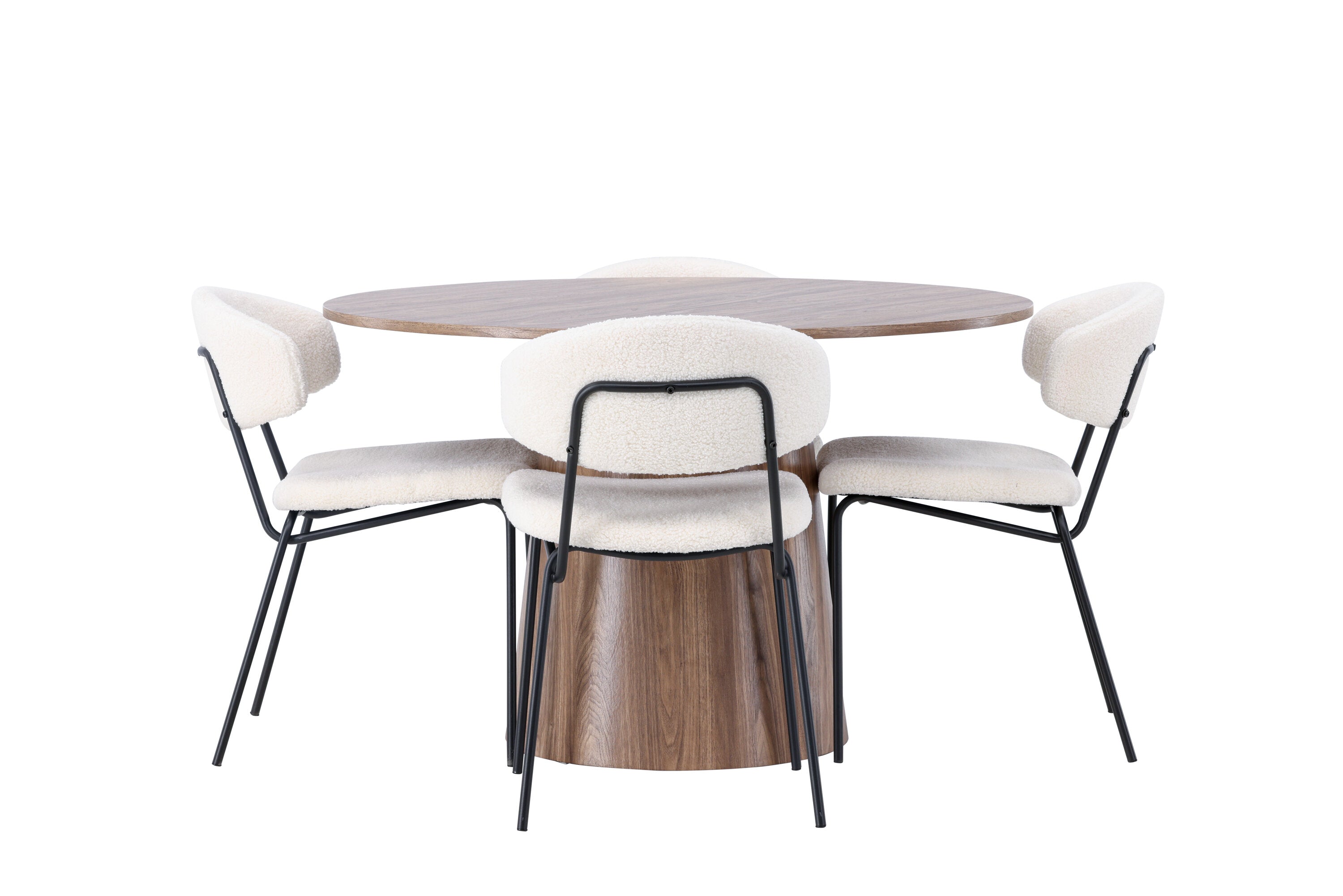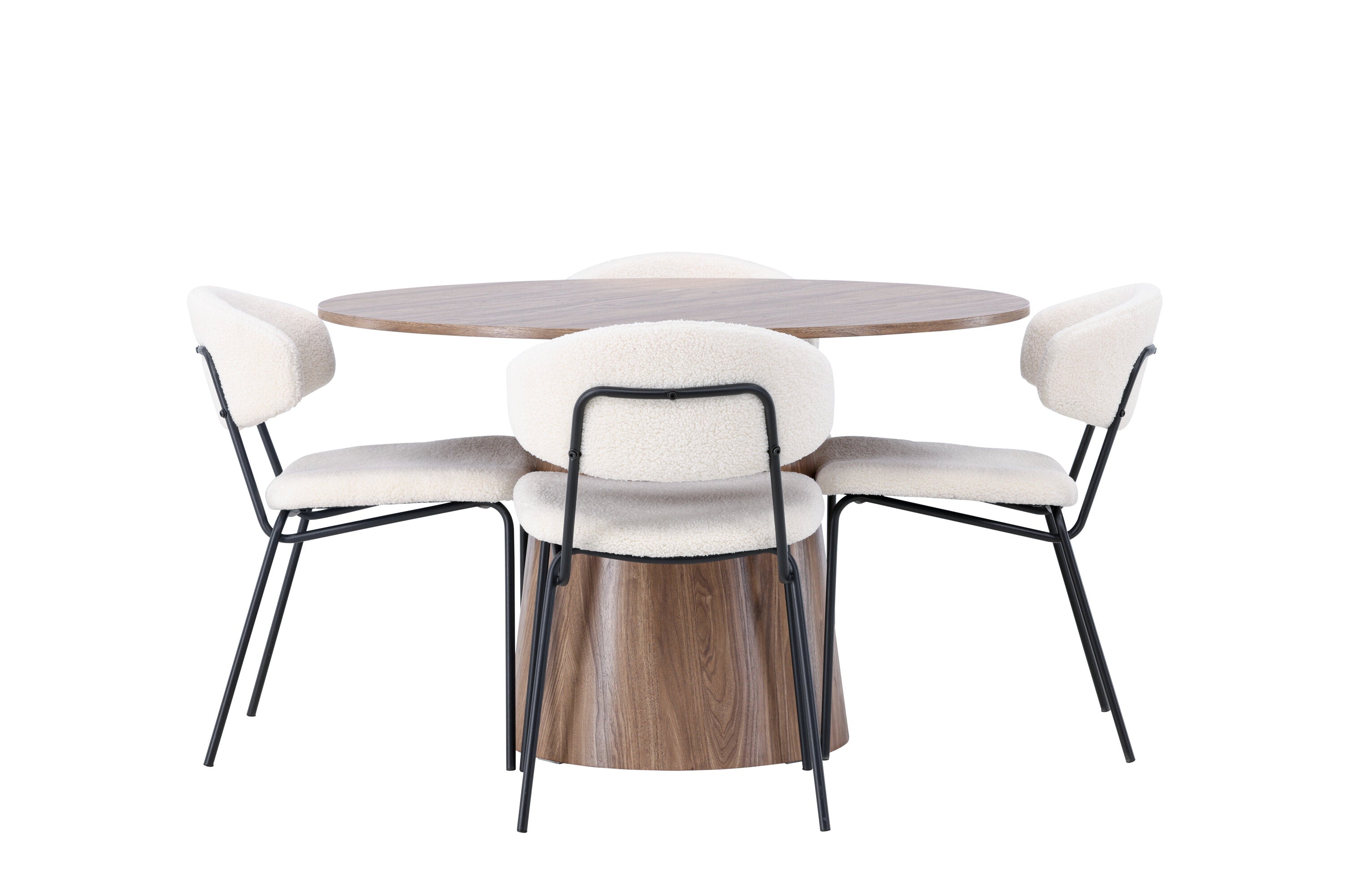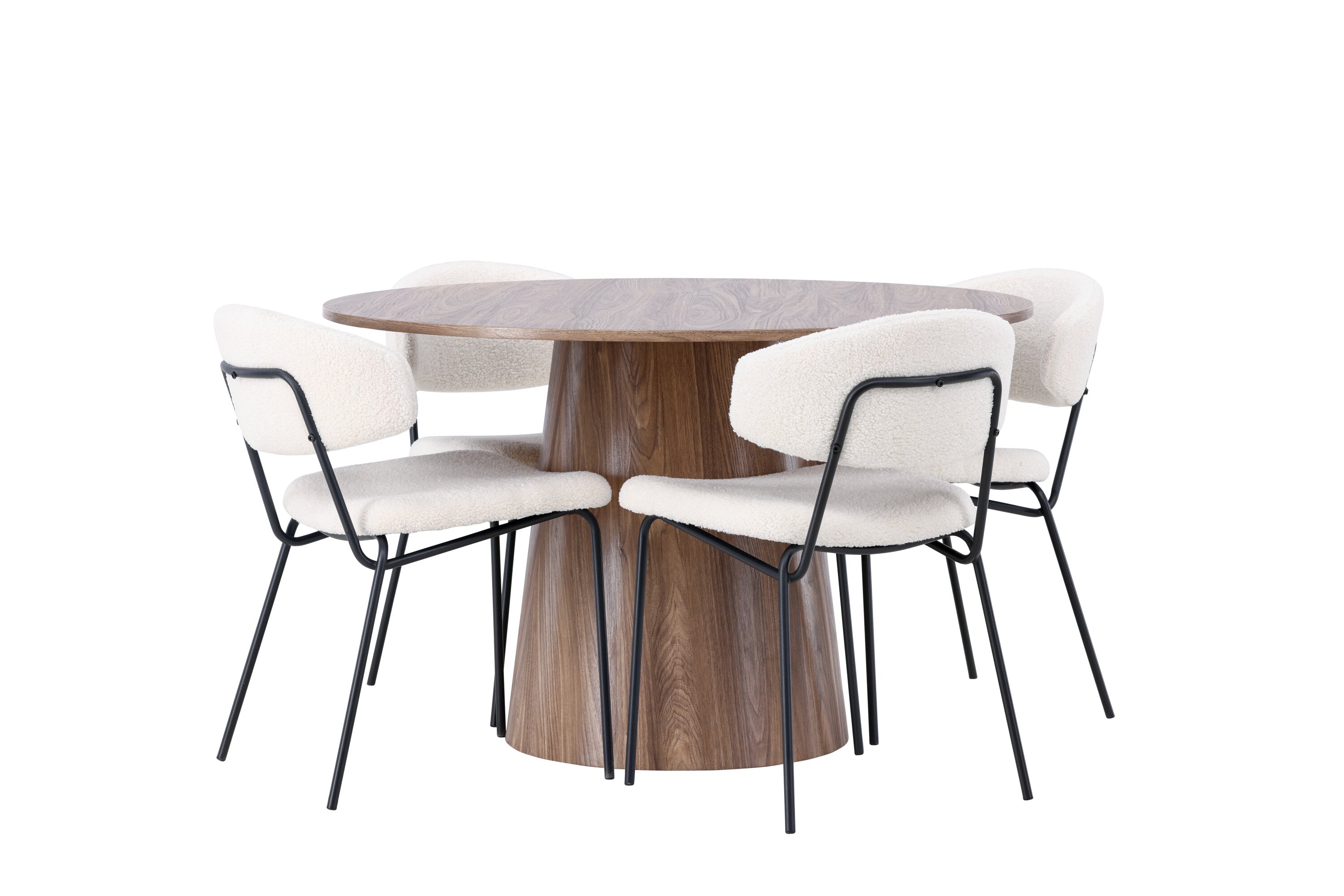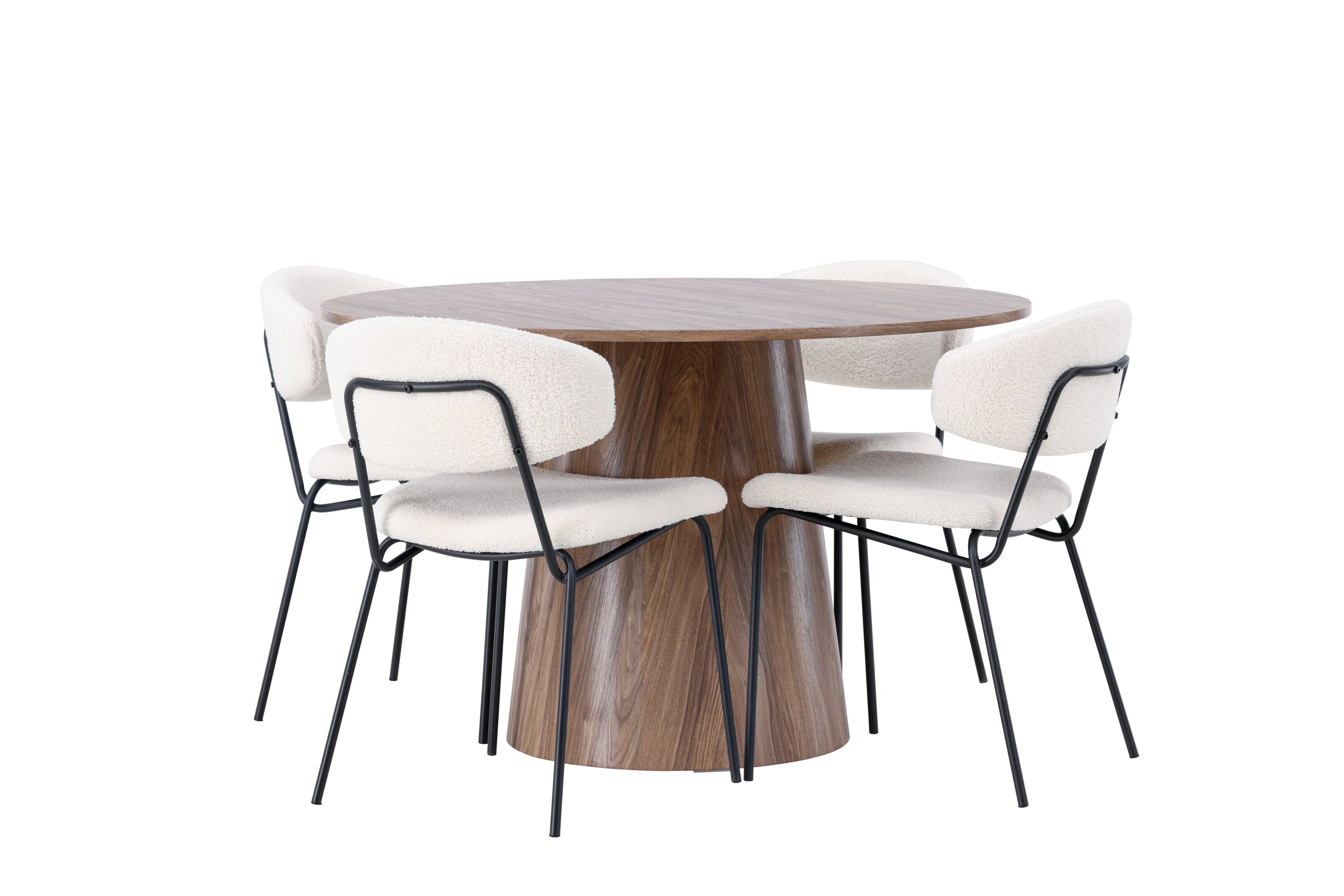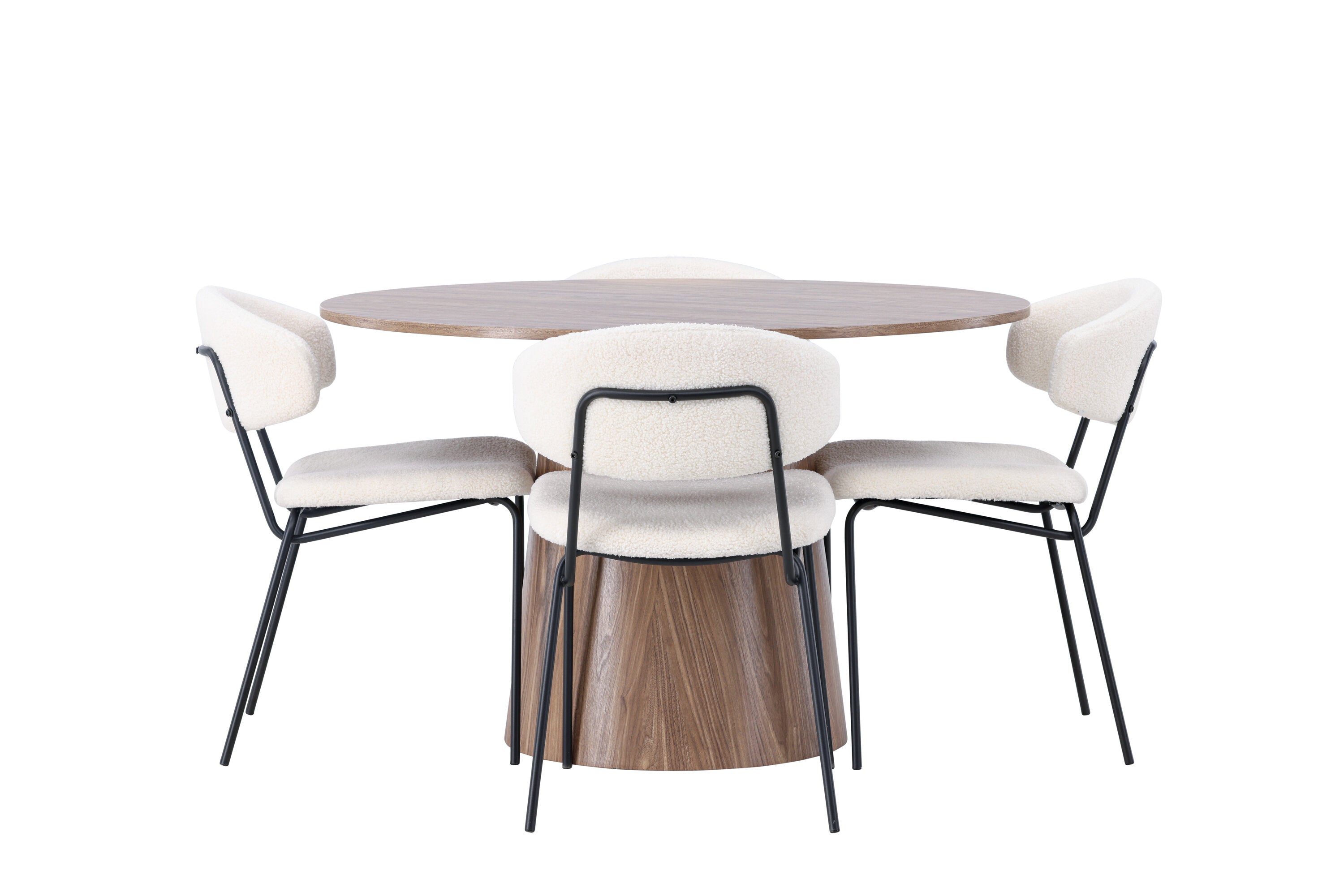 Jídelní stůl Lanzo φ120 - Natural / Natural MDF +Chico Jídelní židle - Black / White Boucle _4