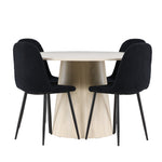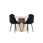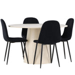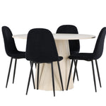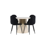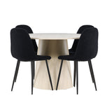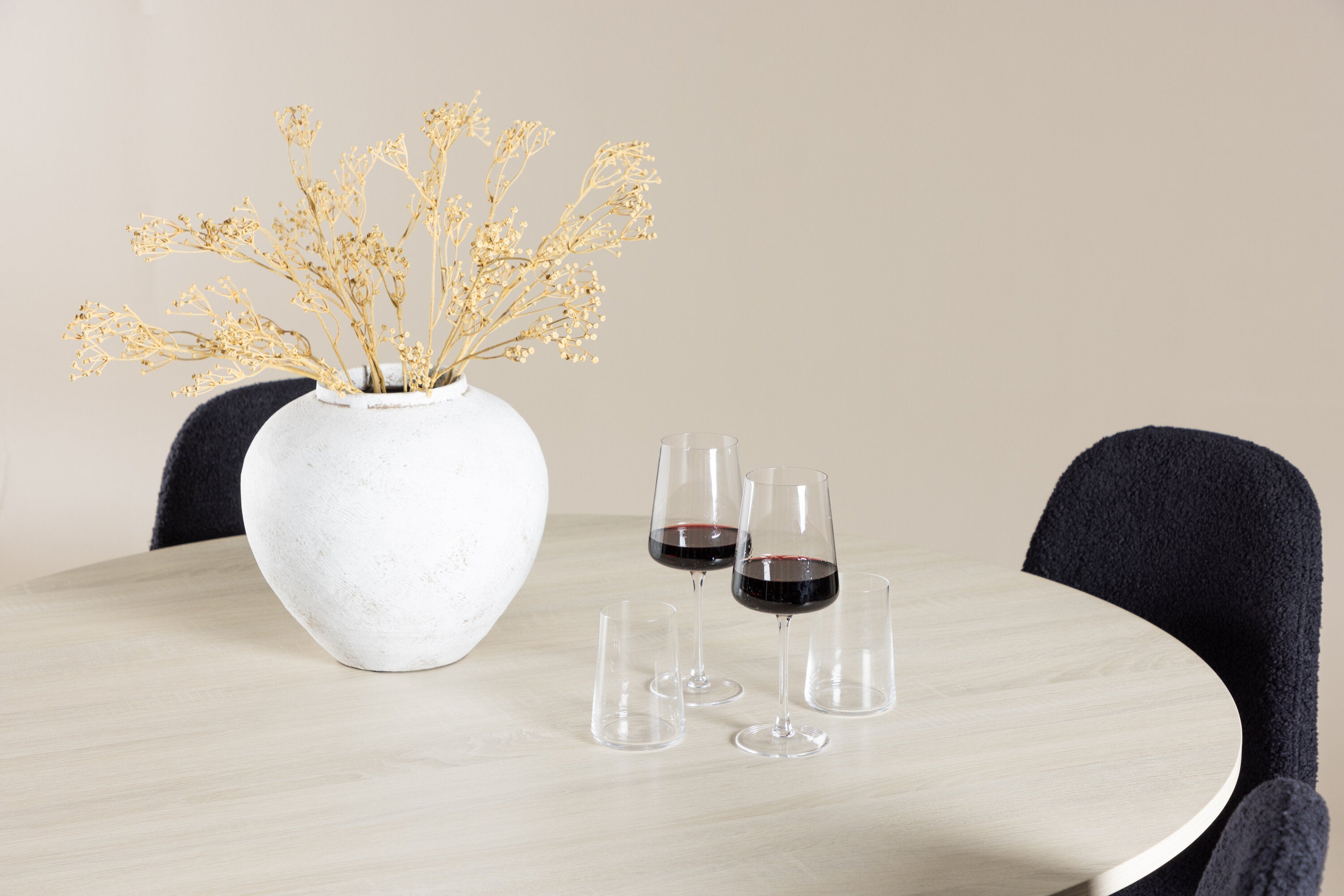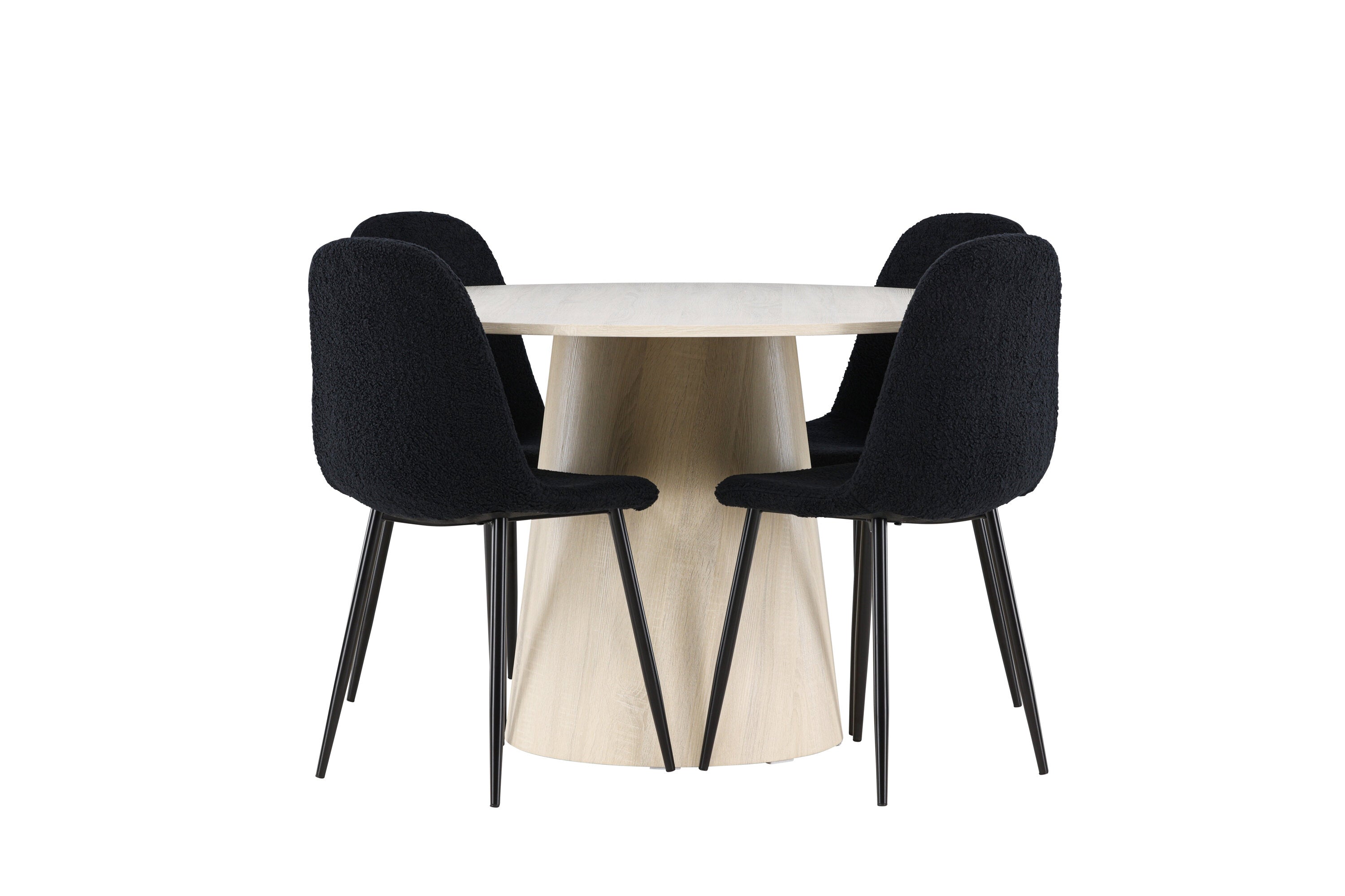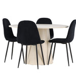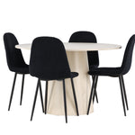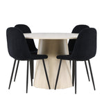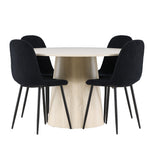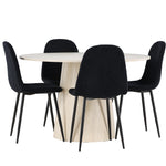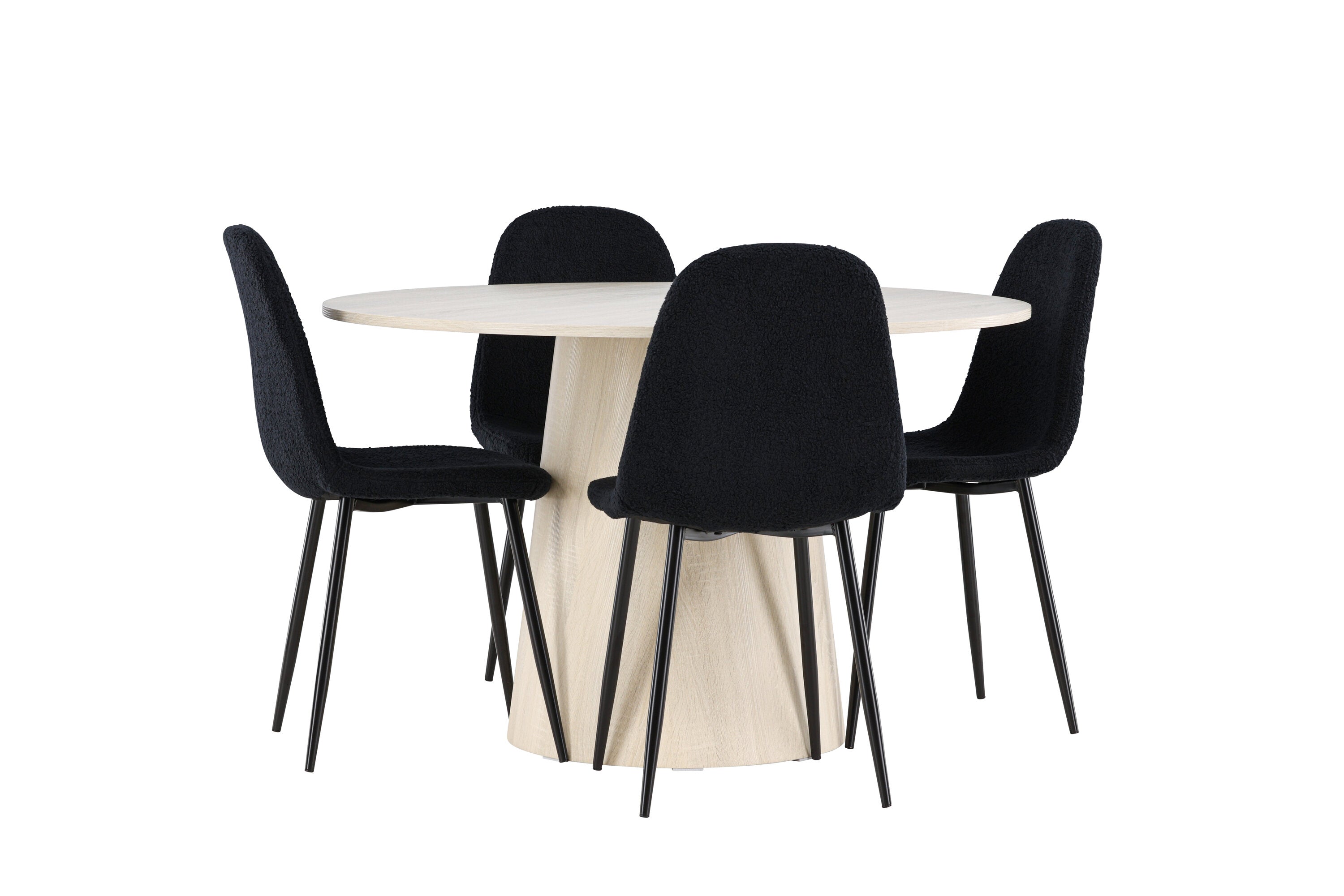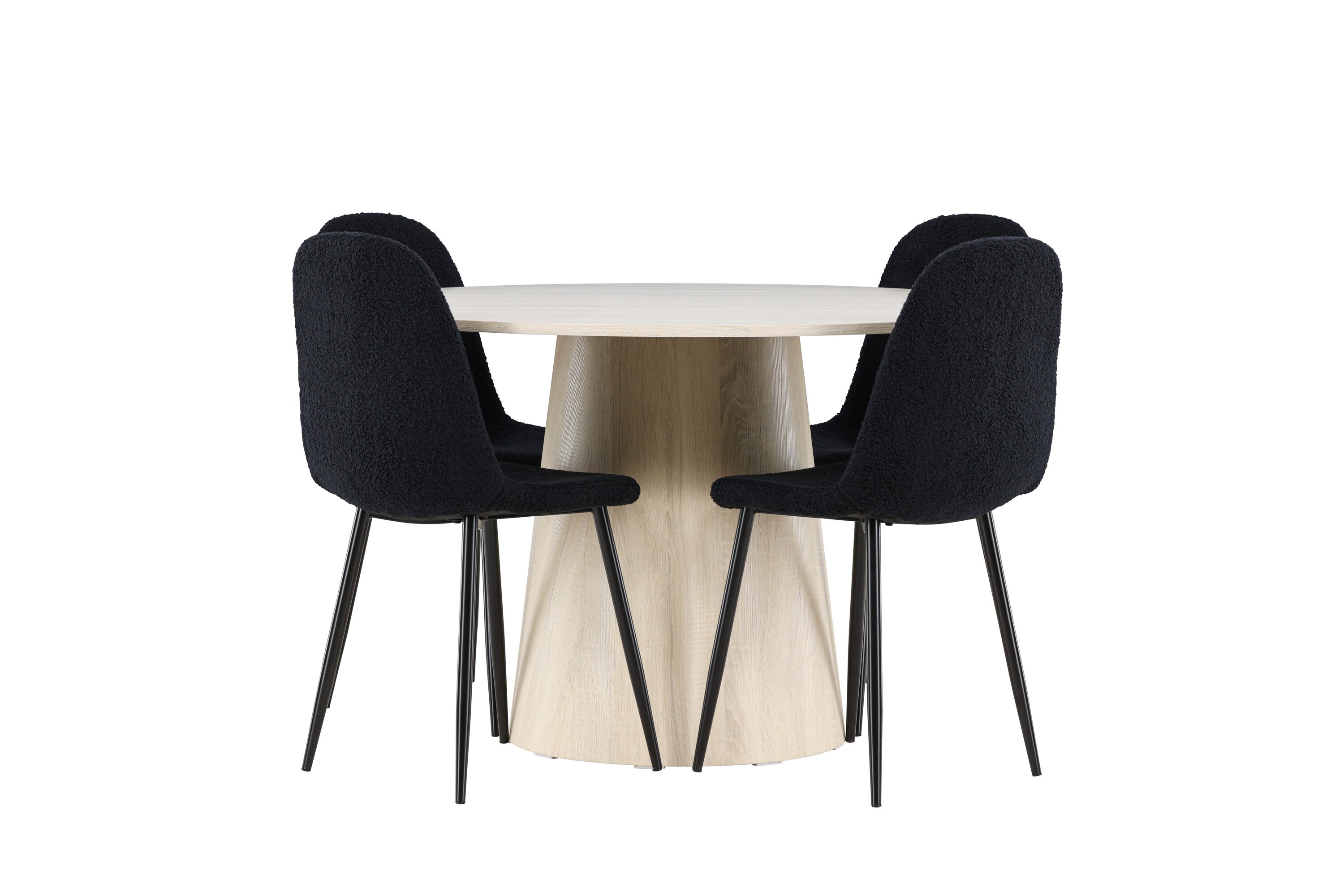 Vytvořte si stylový a příjemný jídelní kout s naší elegantní jídelní sadou, která kombinuje krásný stůl Lanzo s pohodlnými židlemi Polar. Tato jídelní souprava, která je ideální jak pro každodenní večeři, tak pro slavnostní příležitosti, dodá vaší jídelně moderní a sofistikovaný nádech. Stůl Lanzo, vyrobený z nabílené MDF, má světlou a svěží barvu, která dodá vaší jídelně čistou a harmonickou atmosféru. Stůl s velkorysým průměrem 120 cm nabízí dostatek prostoru pro jídlo a rozhovory, zatímco jeho kulatý tvar vytváří vyvážené a příjemné prostředí. Robustní konstrukce stolu zajišťuje dlouhodobé používání a stabilitu. Čtyři židle Polar skvěle doplňují stůl s elegantními černými polyesterovými plyšovými sedáky. Tyto židle nabízejí pohodlí i styl, takže jsou ideální pro dlouhé a příjemné večeře s rodinou a přáteli. Jejich moderní design s vysokými opěradly a měkkými sedáky dodá vaší jídelně sofistikovaný a moderní nádech. Tato jídelní souprava je dokonalou kombinací estetiky a funkčnosti, takže je vynikající volbou pro ty, kteří hledají elegantní a pohodlný jídelní kout. Vylepšete svou jídelnu kombinací stolu Lanzo a židlí Polar a vytvořte si místo, kde se budou sdílet vzpomínky a radost.