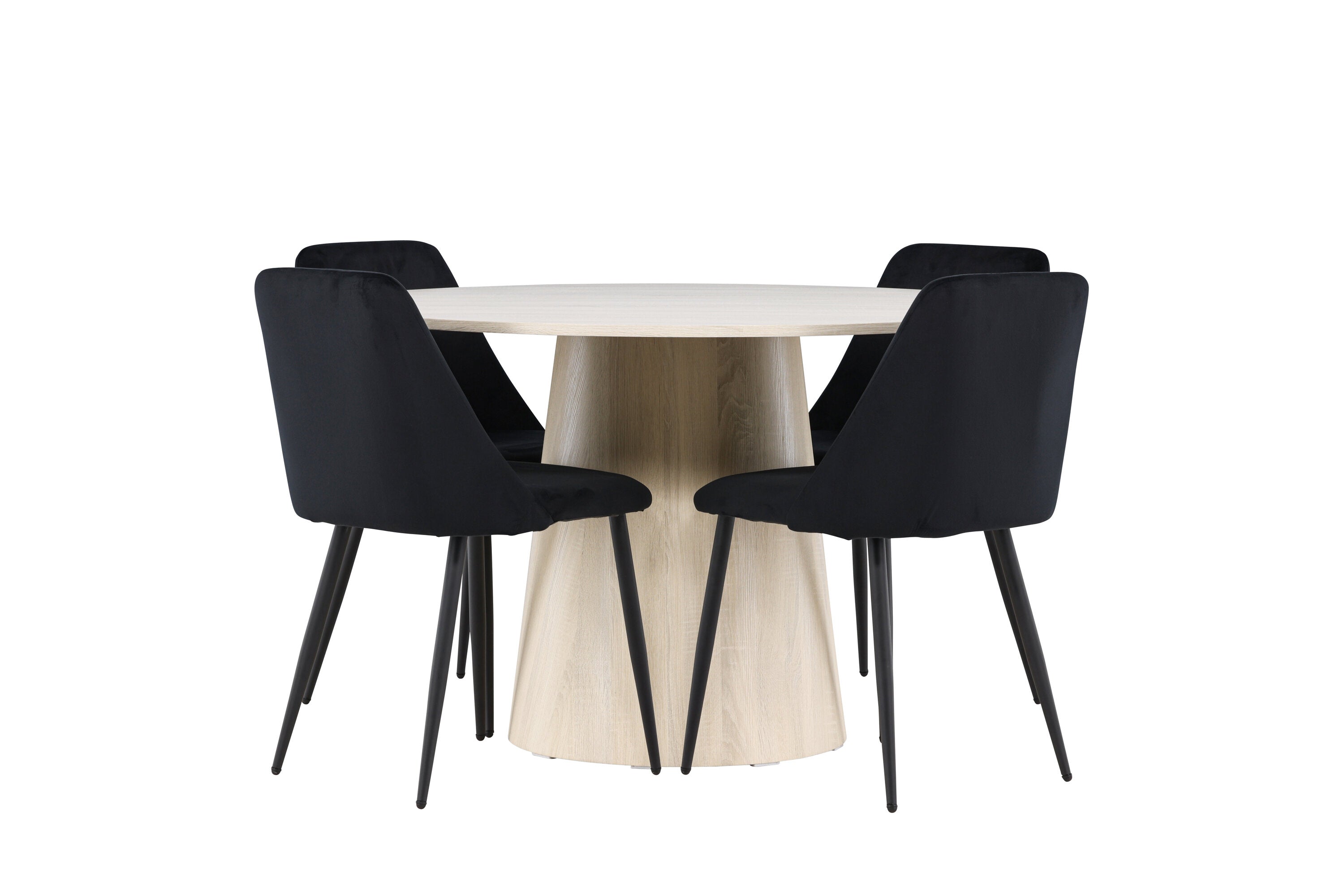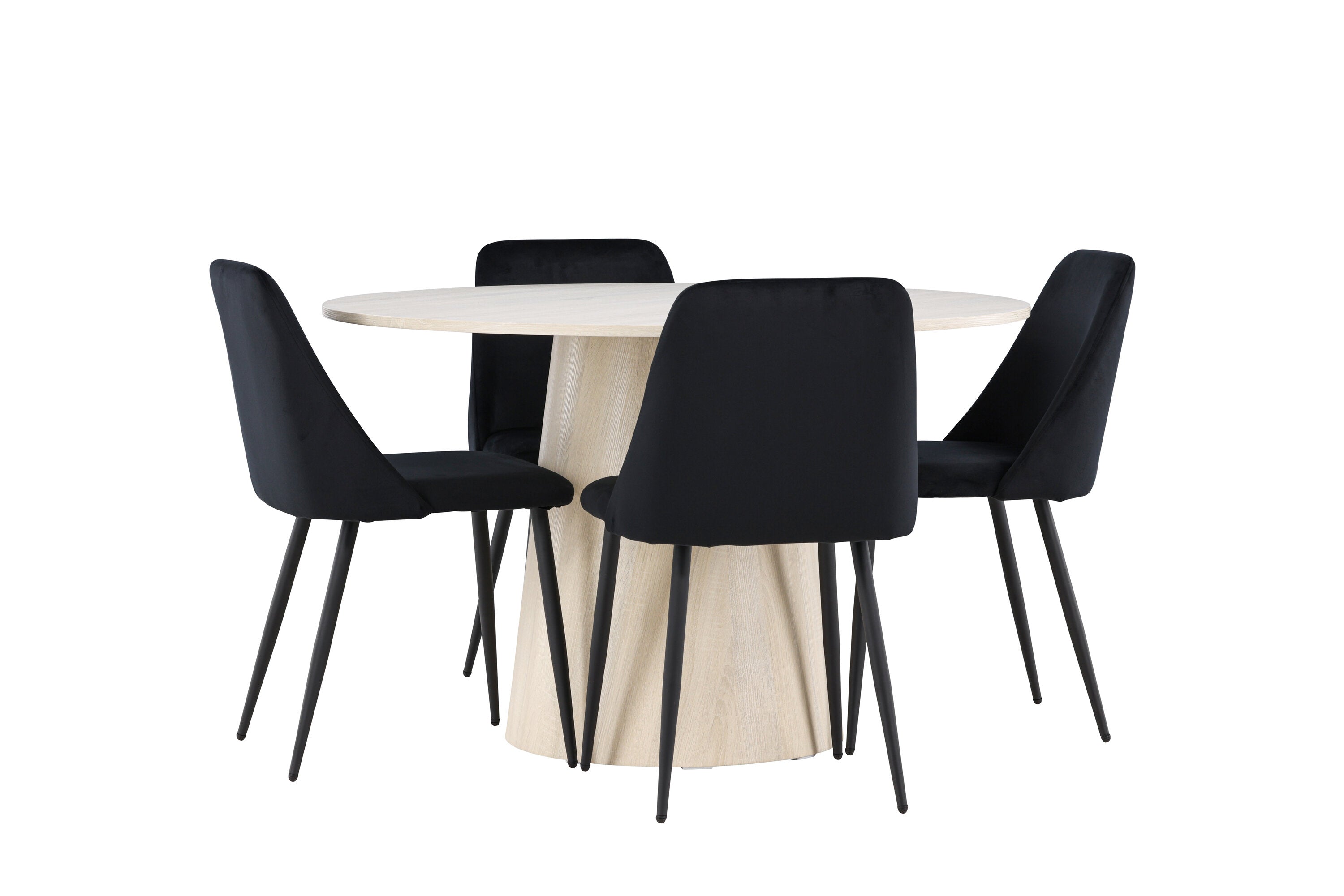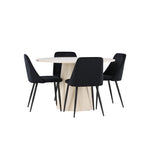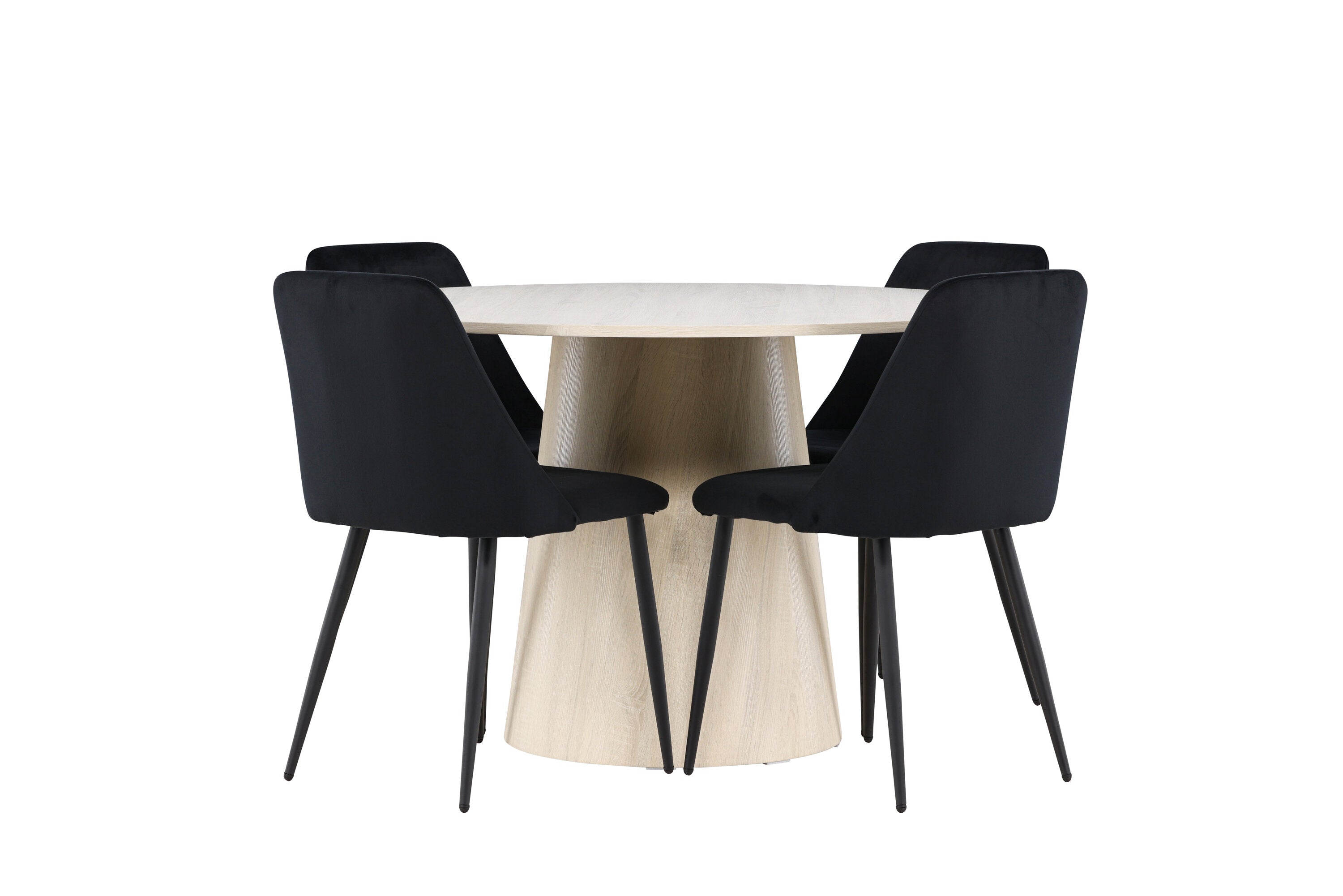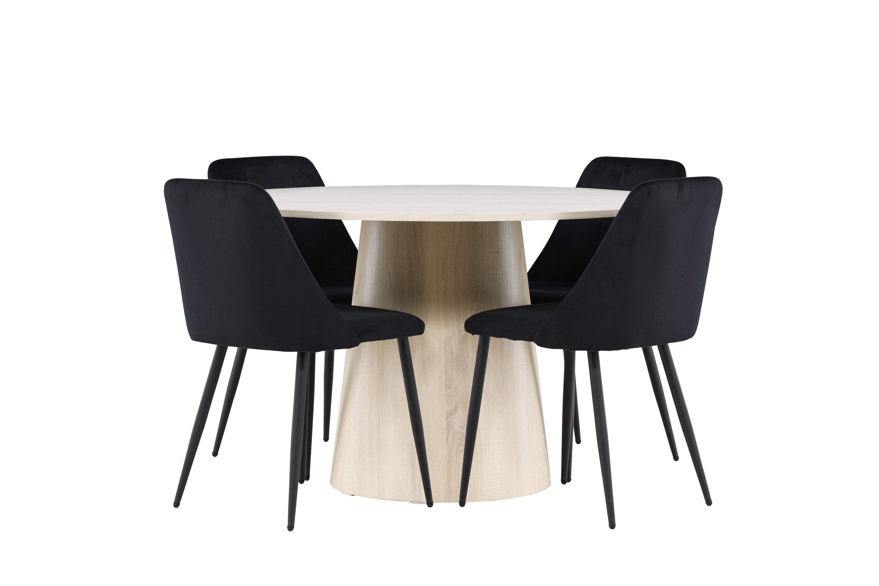 Vytvořte si elegantní a příjemný jídelní kout s naší sofistikovanou jídelní sadou, která kombinuje stylový stůl Lanzo s luxusními nočními židlemi. Tato jídelní sada je ideální pro každodenní večeři i slavnostní příležitosti a dodá vaší jídelně moderní a harmonickou atmosféru. Stůl Lanzo, vyrobený z nabílené MDF, má světlou a svěží barvu, která dodá vaší jídelně čistý a příjemný pocit. Stůl s velkorysým průměrem 120 cm nabízí dostatek prostoru pro jídlo a konverzaci, přičemž jeho kulatý tvar vytváří vyvážené a společenské prostředí. Robustní konstrukce stolu zajišťuje dlouhodobé používání a stabilitu. Čtyři noční křesla skvěle doplňují stůl svými elegantními sedáky čalouněnými černým sametem. Tyto židle nabízejí pohodlí i styl, takže jsou ideální pro dlouhé a příjemné večeře s rodinou a přáteli. Jejich moderní design s vysokými opěradly a měkkými sedáky dodá vaší jídelně sofistikovaný a moderní nádech. Tato jídelní souprava je dokonalou kombinací estetiky a funkčnosti, takže je vynikající volbou pro ty, kteří hledají elegantní a pohodlný jídelní kout. Vylepšete svou jídelnu kombinací stolu Lanzo a nočních židlí a vytvořte si místo, kde se budou sdílet vzpomínky a radost.