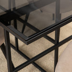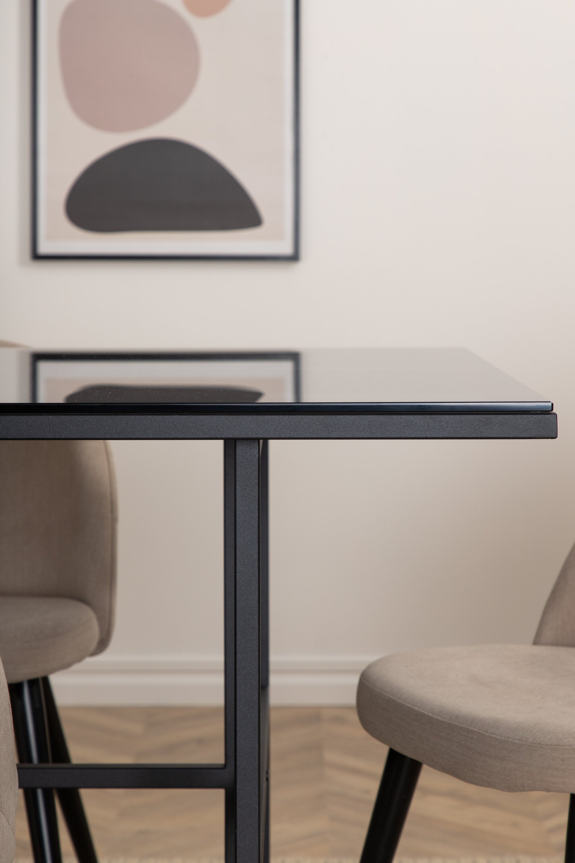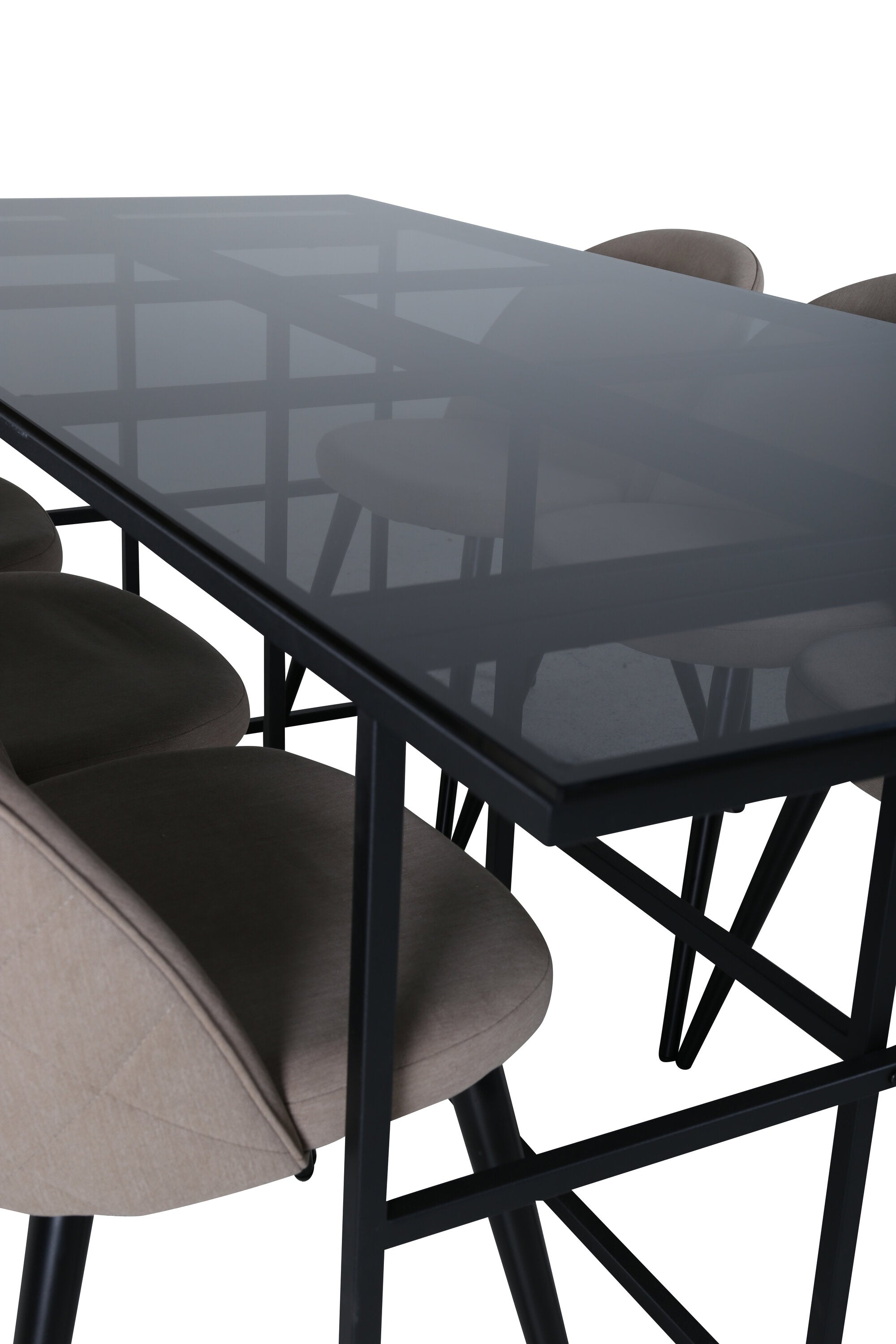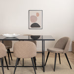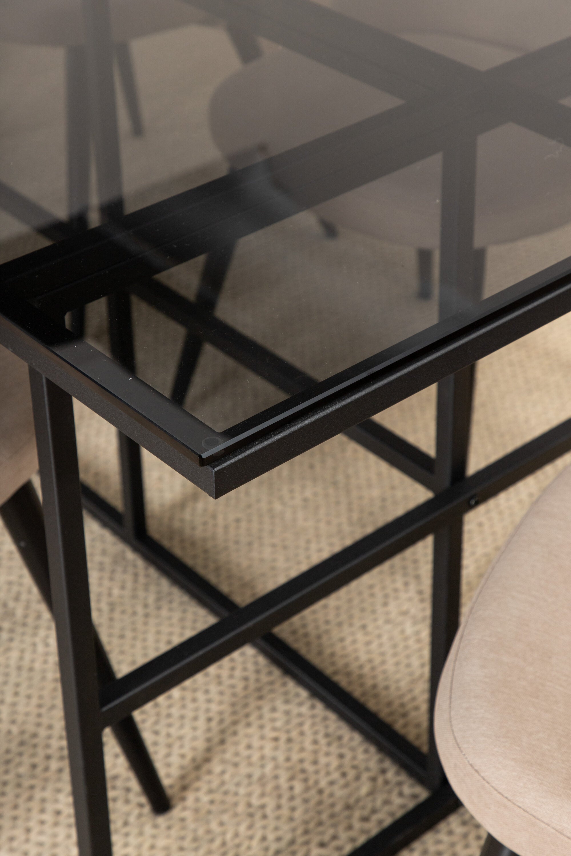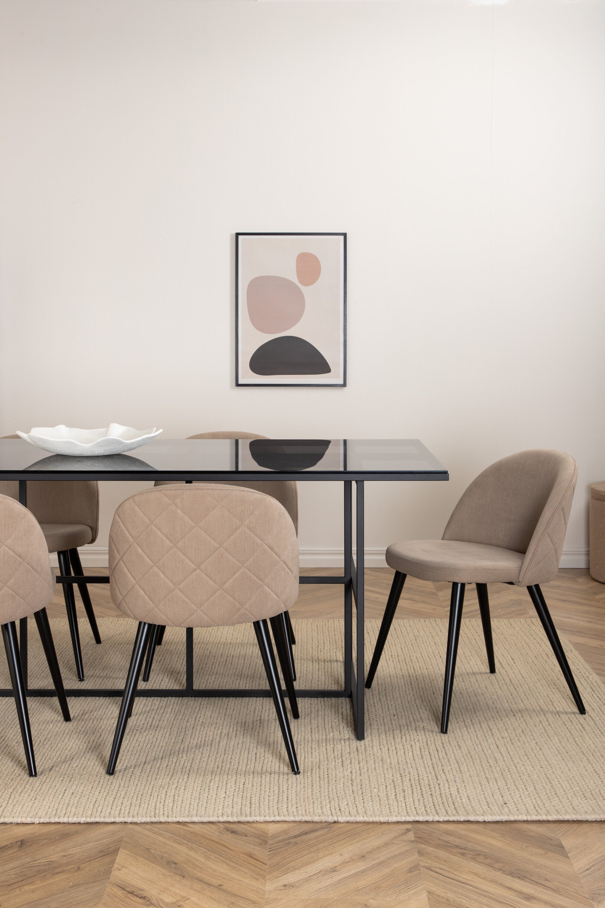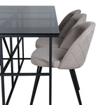 Jídelní stůl Leif , Černá Černé kouřové kouřové sklo + židle sametové stehy , Černá béžová látka (polyesterové prádlo)_6