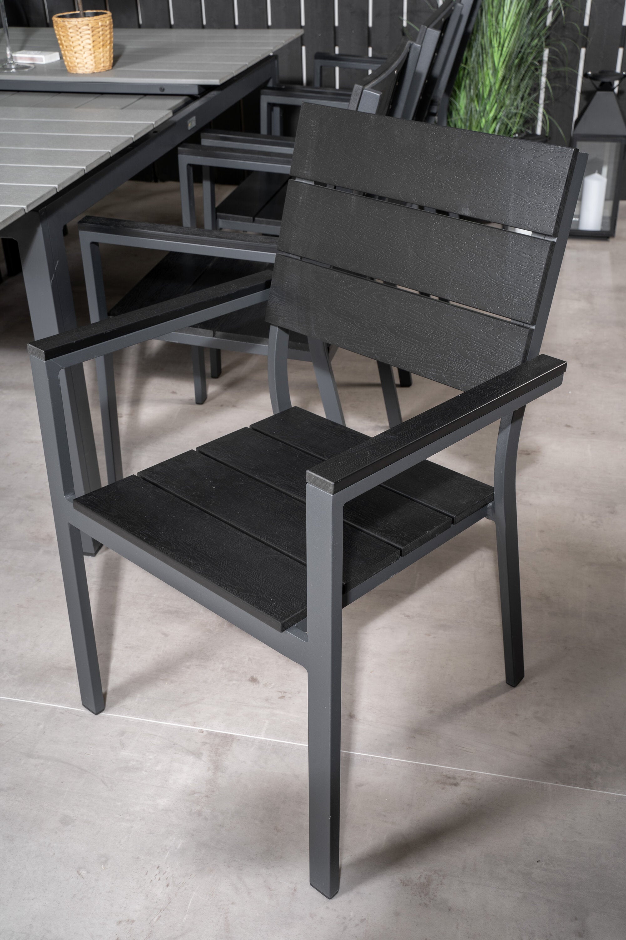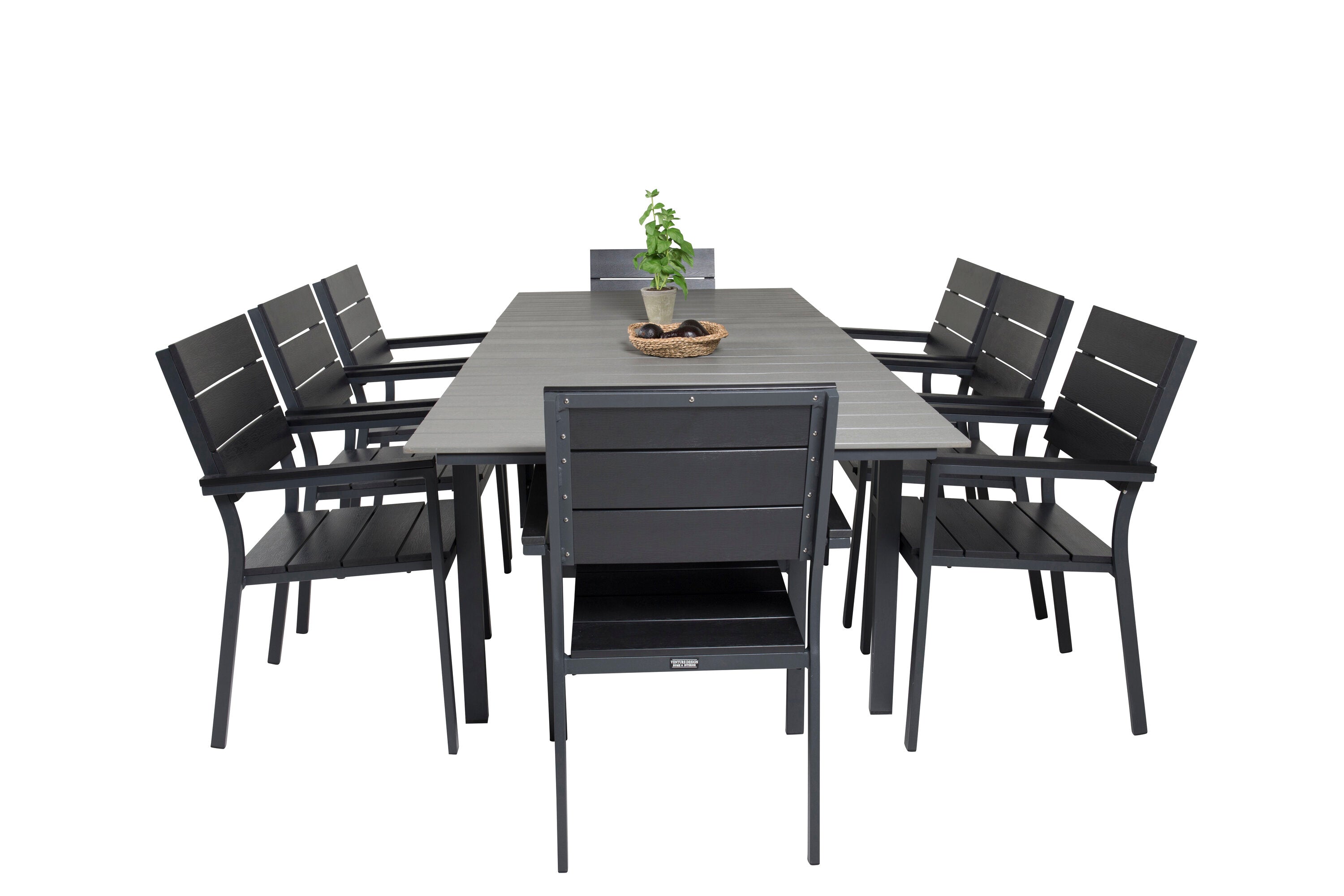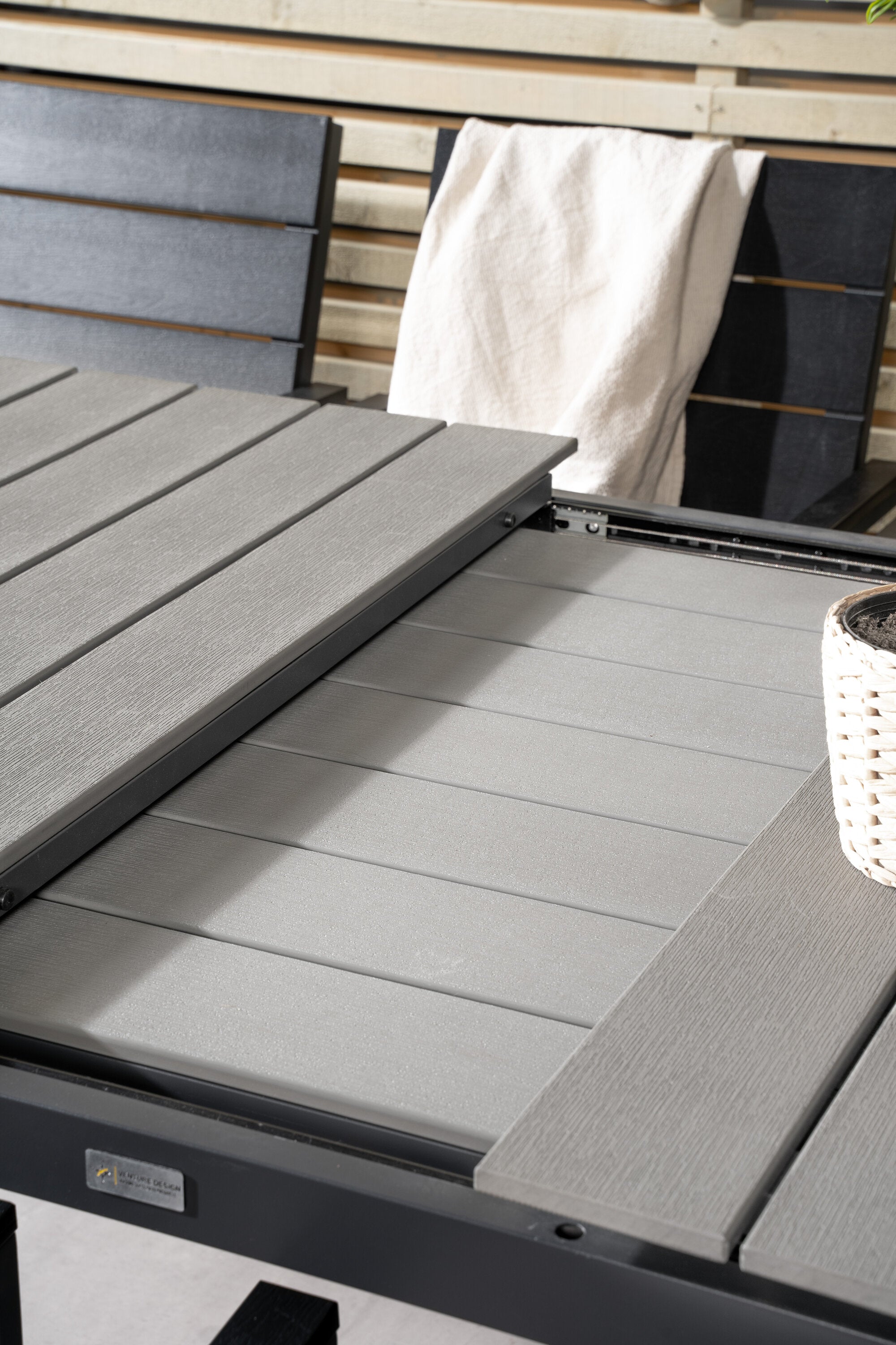 Jídelní stůl Levels 160/240*90 - černá Alu / šedá Aintwood + židle Levels (stacka