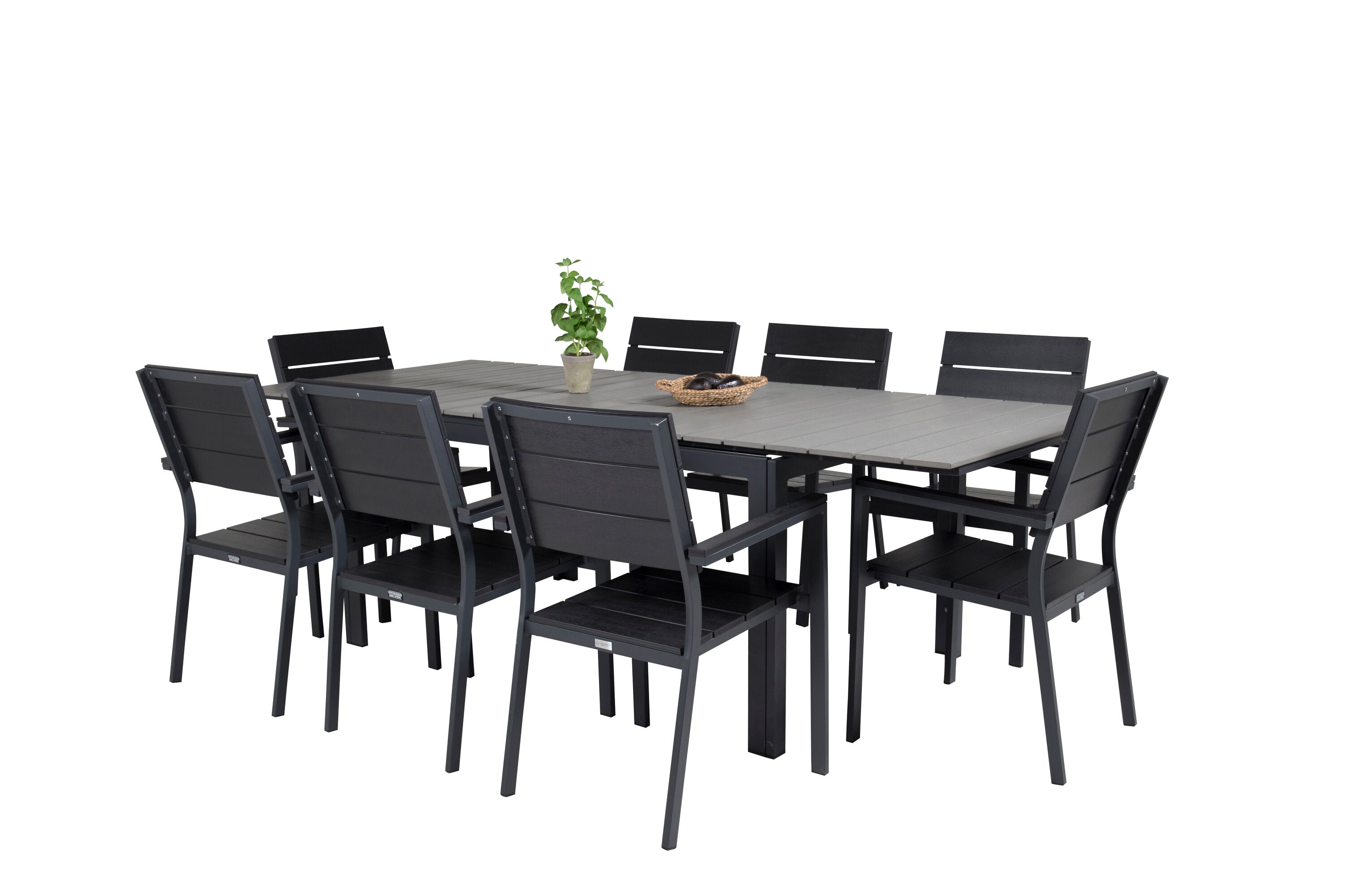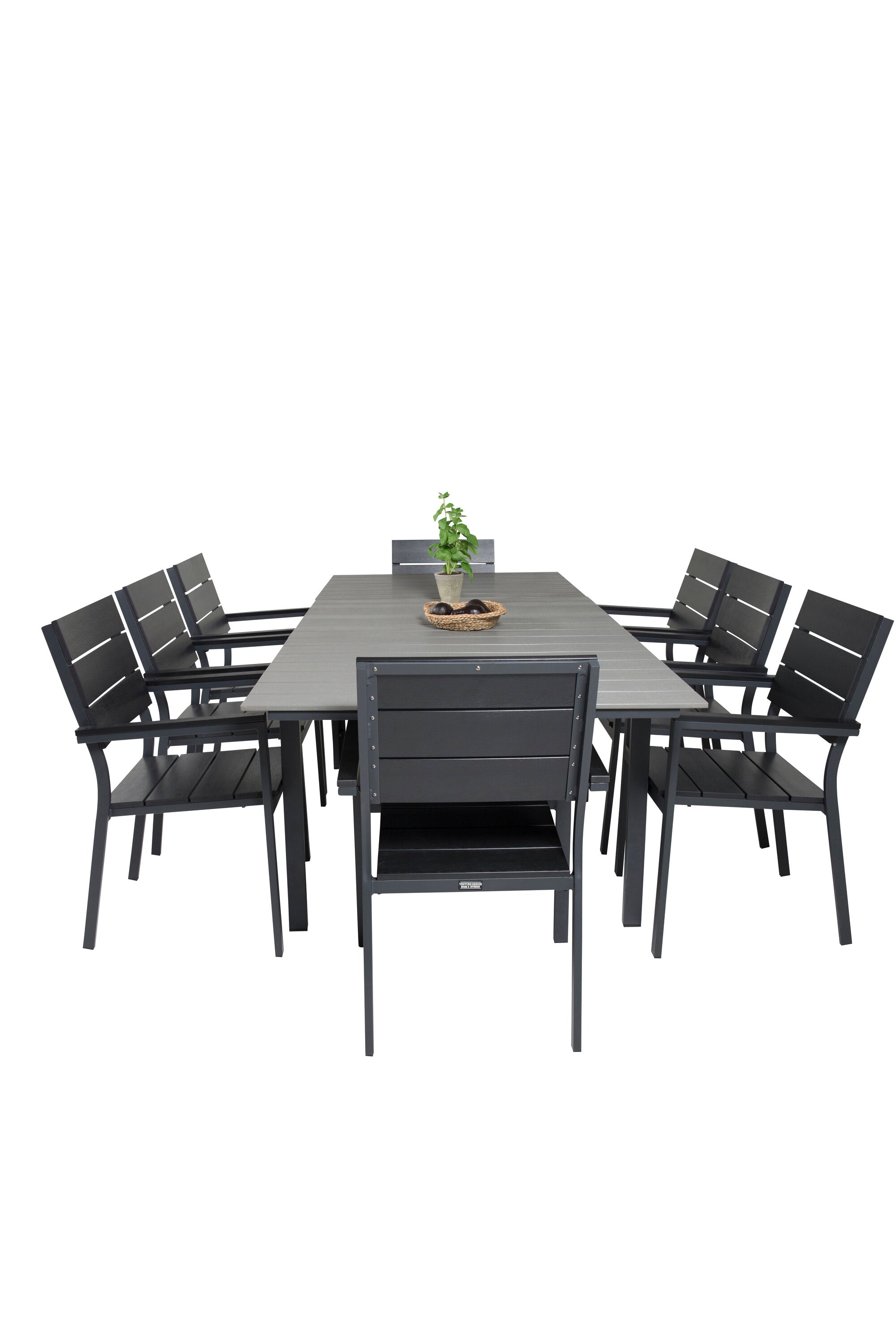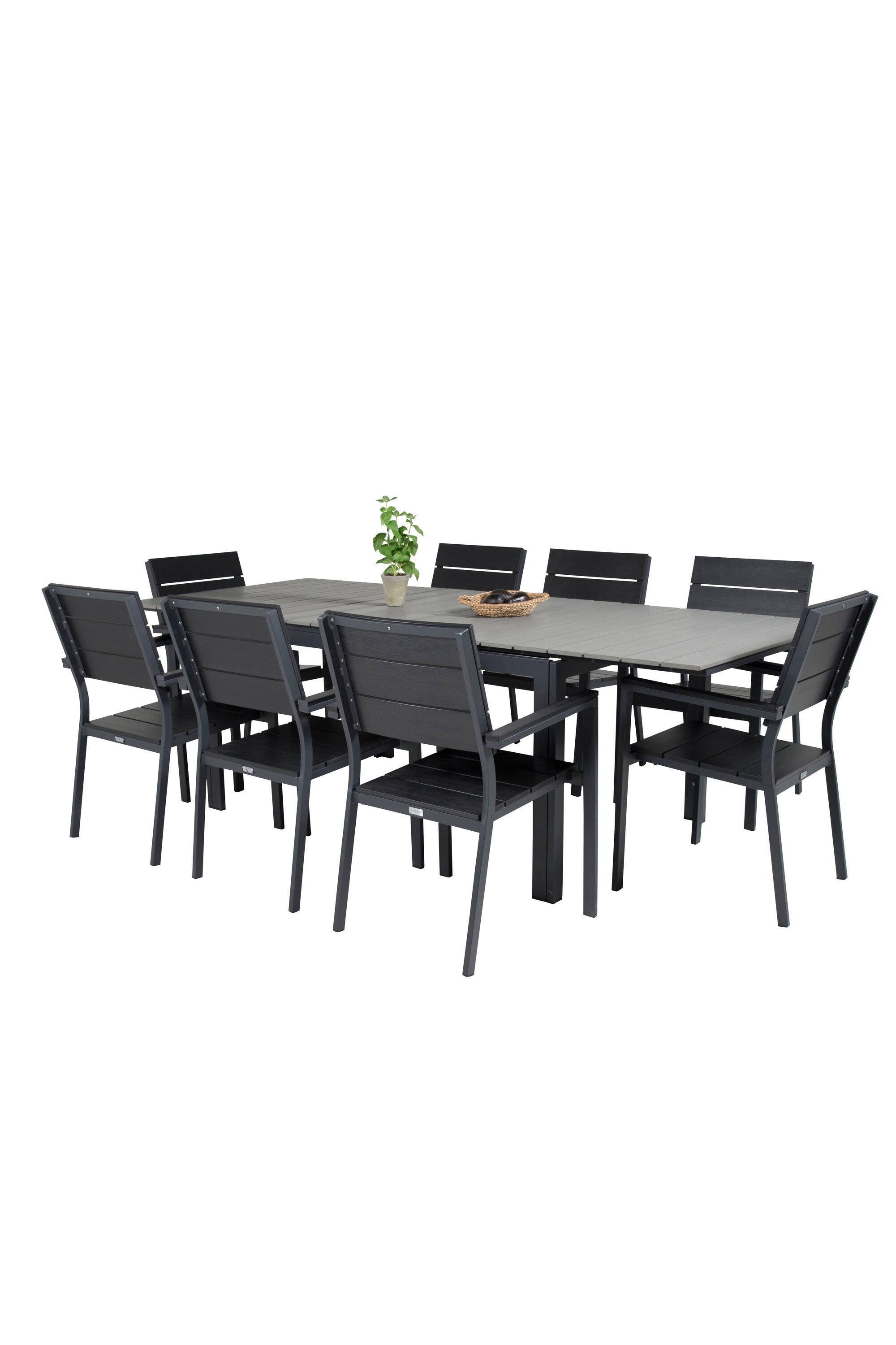 Jídelní stůl Levels 160/240*90 - černá Alu / šedá Aintwood + židle Levels (stacka