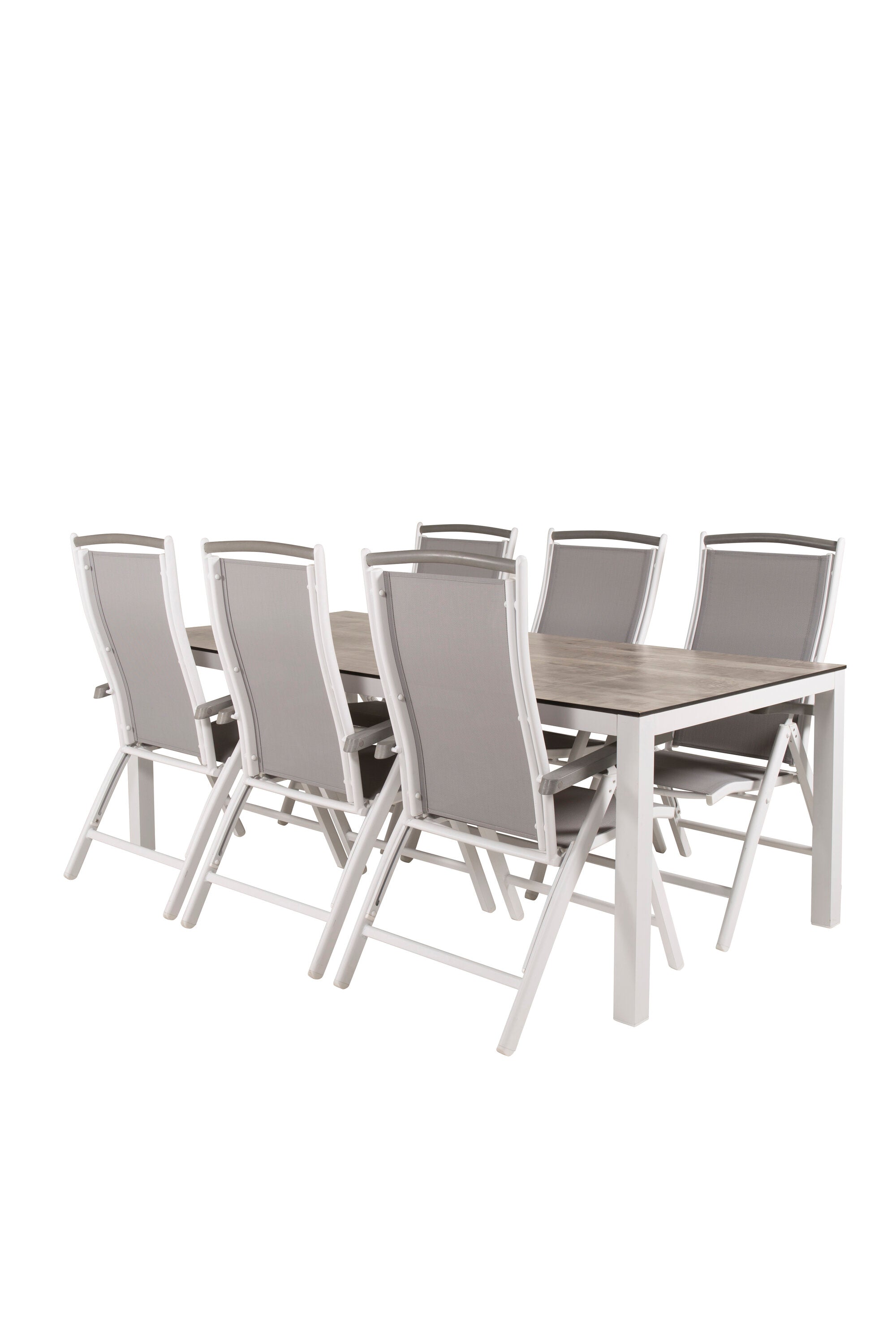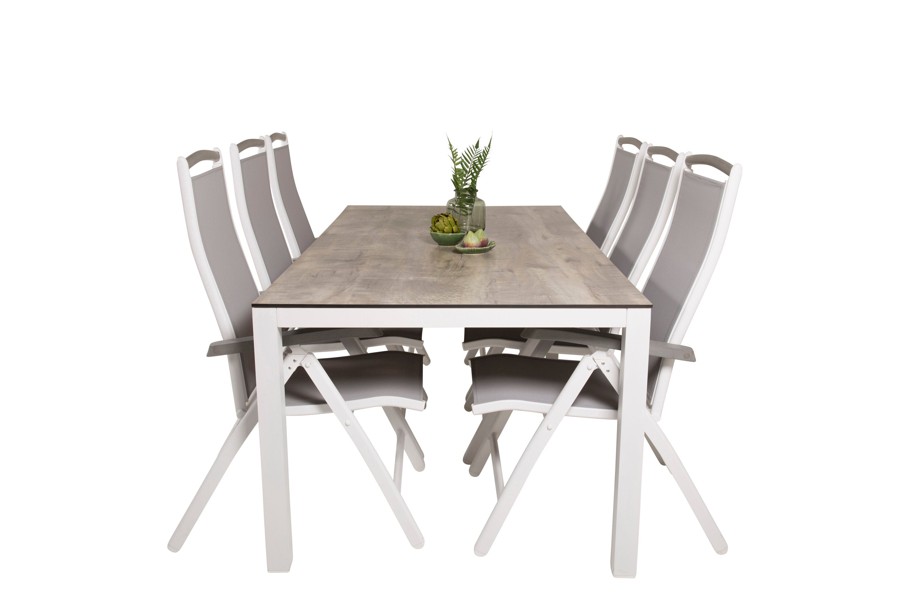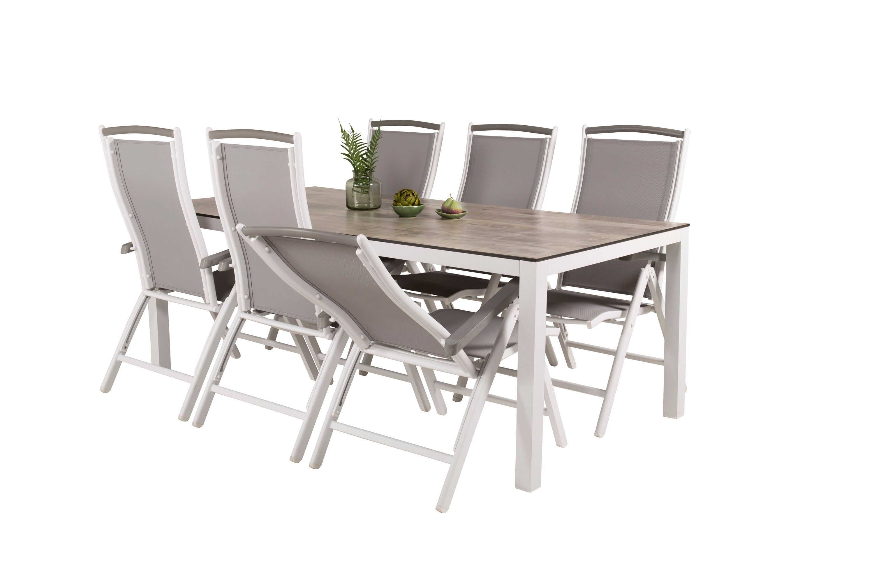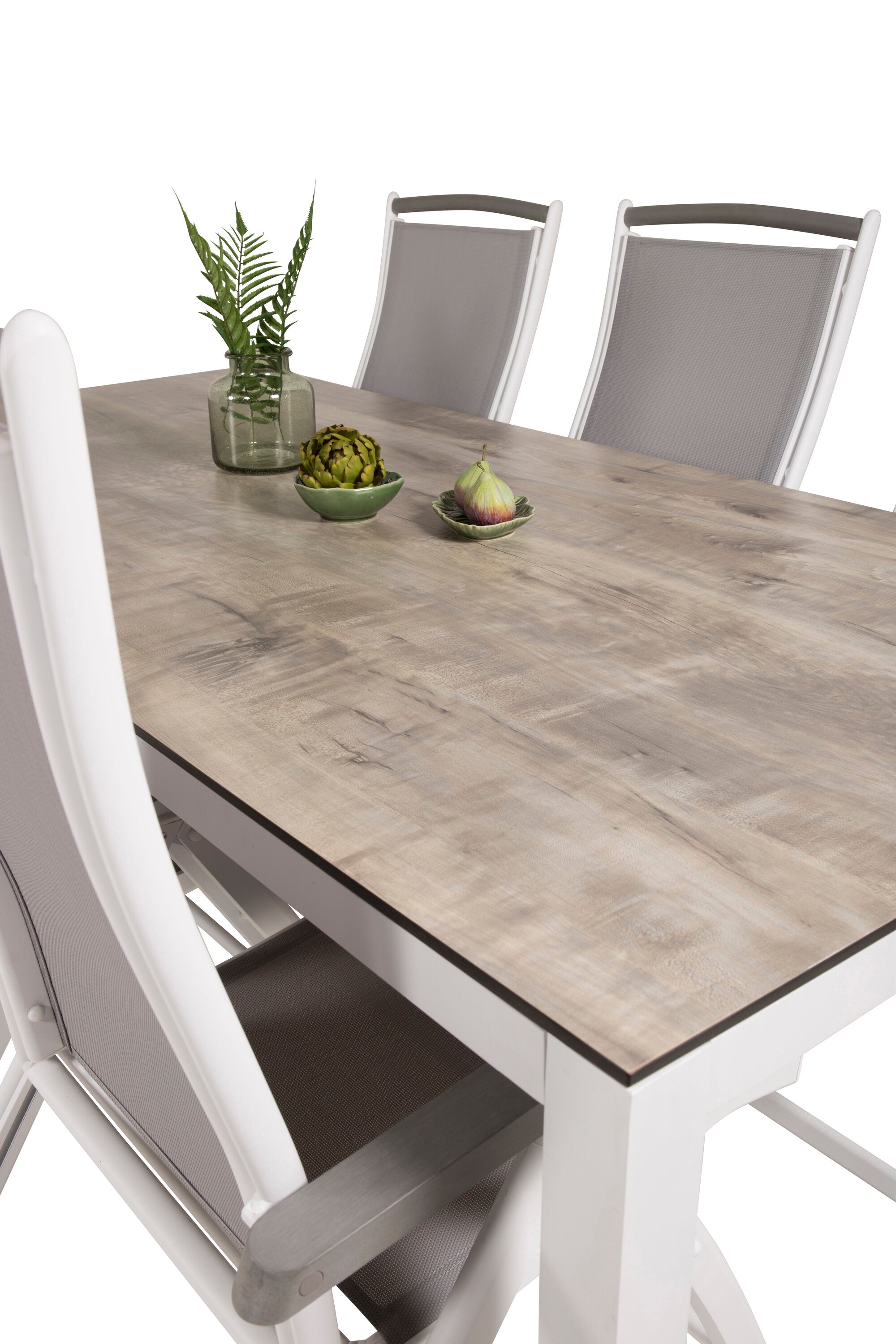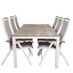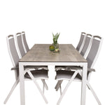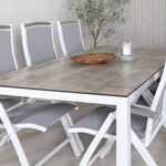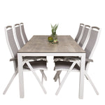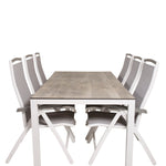 Jídelní stůl Llama 205*100 - Bílá Alu / Šedá HPL - Albany 5:pos Židle - Bílá/Šedá 6