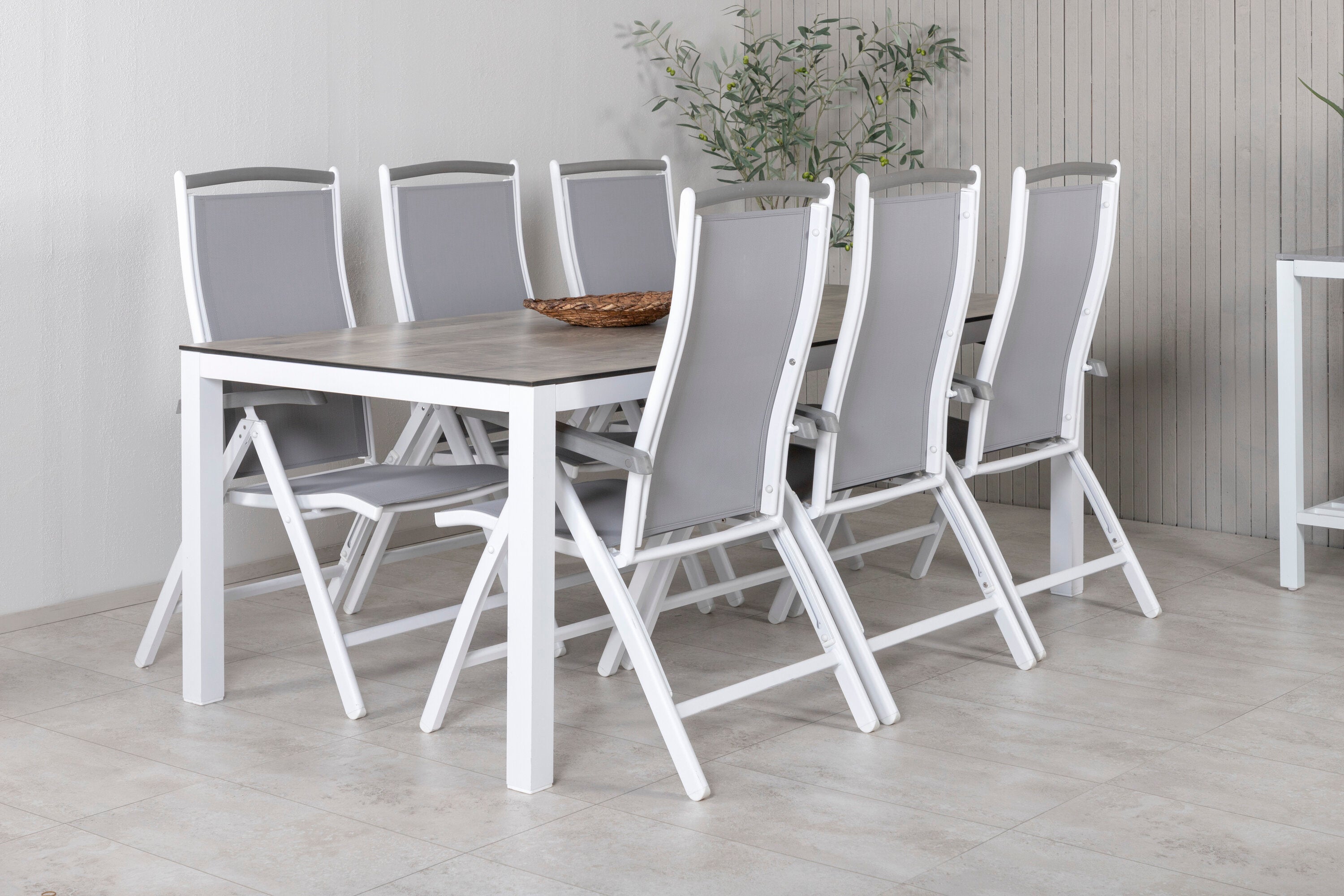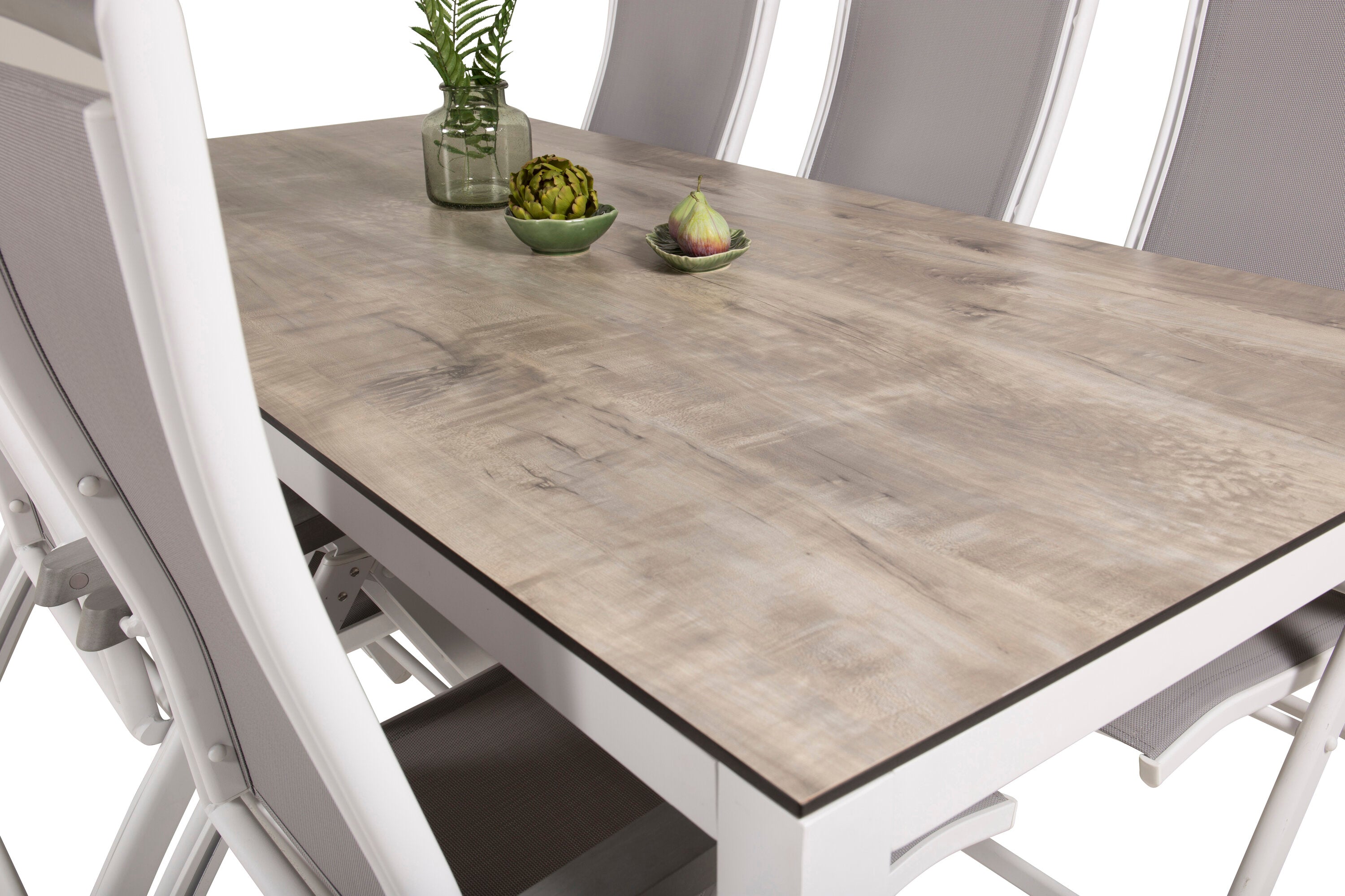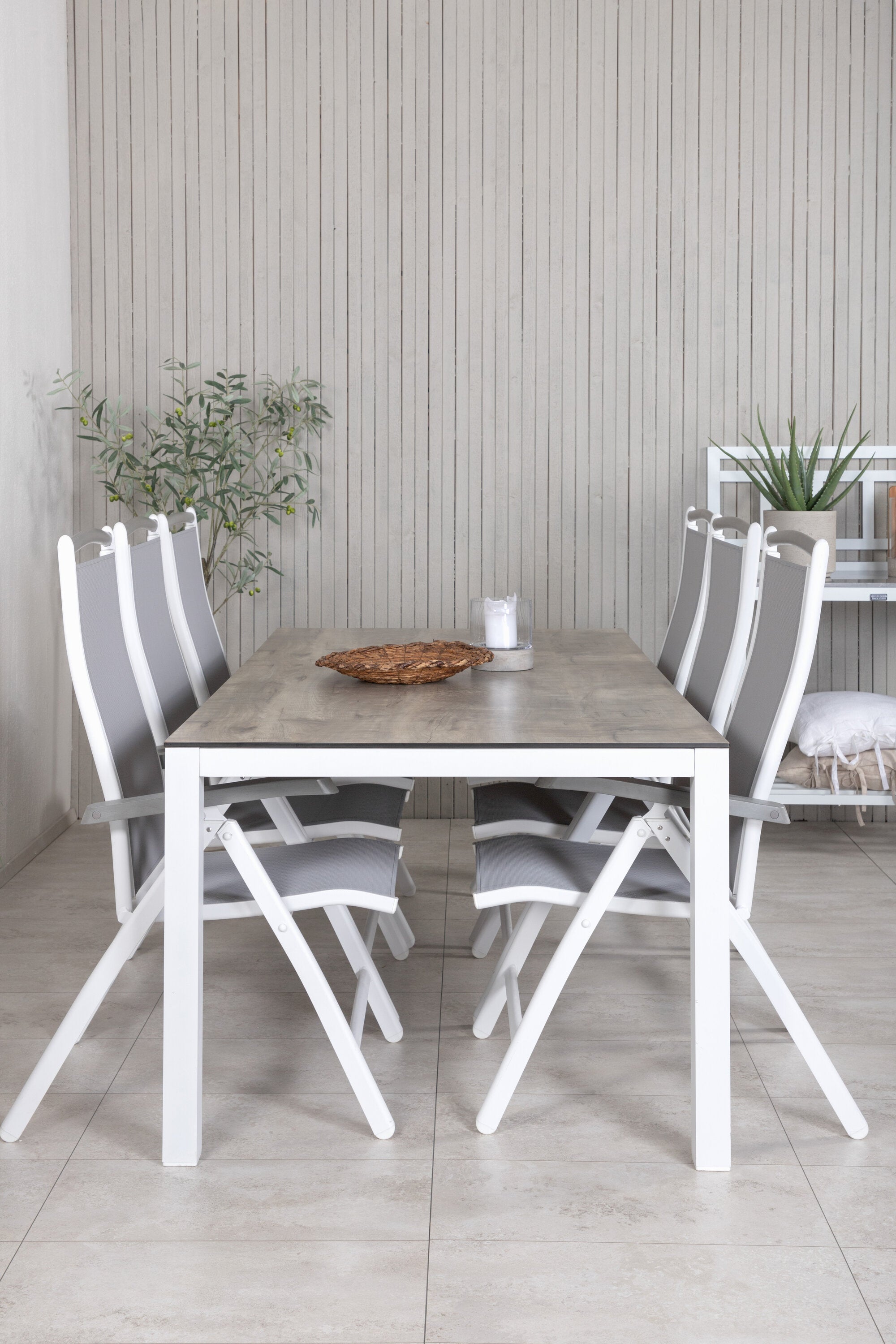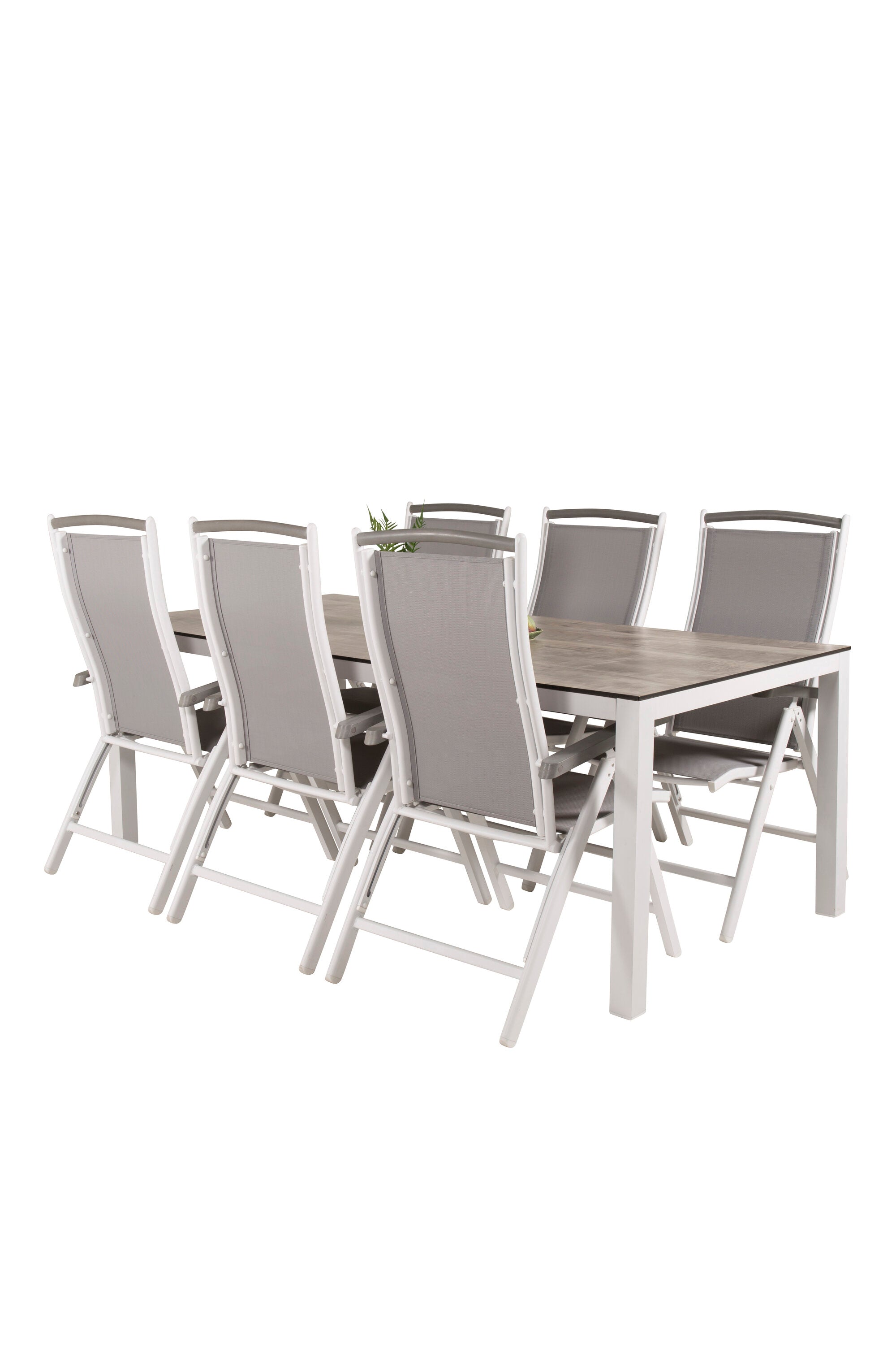 Jídelní stůl Llama 205*100 - Bílá Alu / Šedá HPL - Albany 5:pos Židle - Bílá/Šedá 6