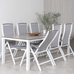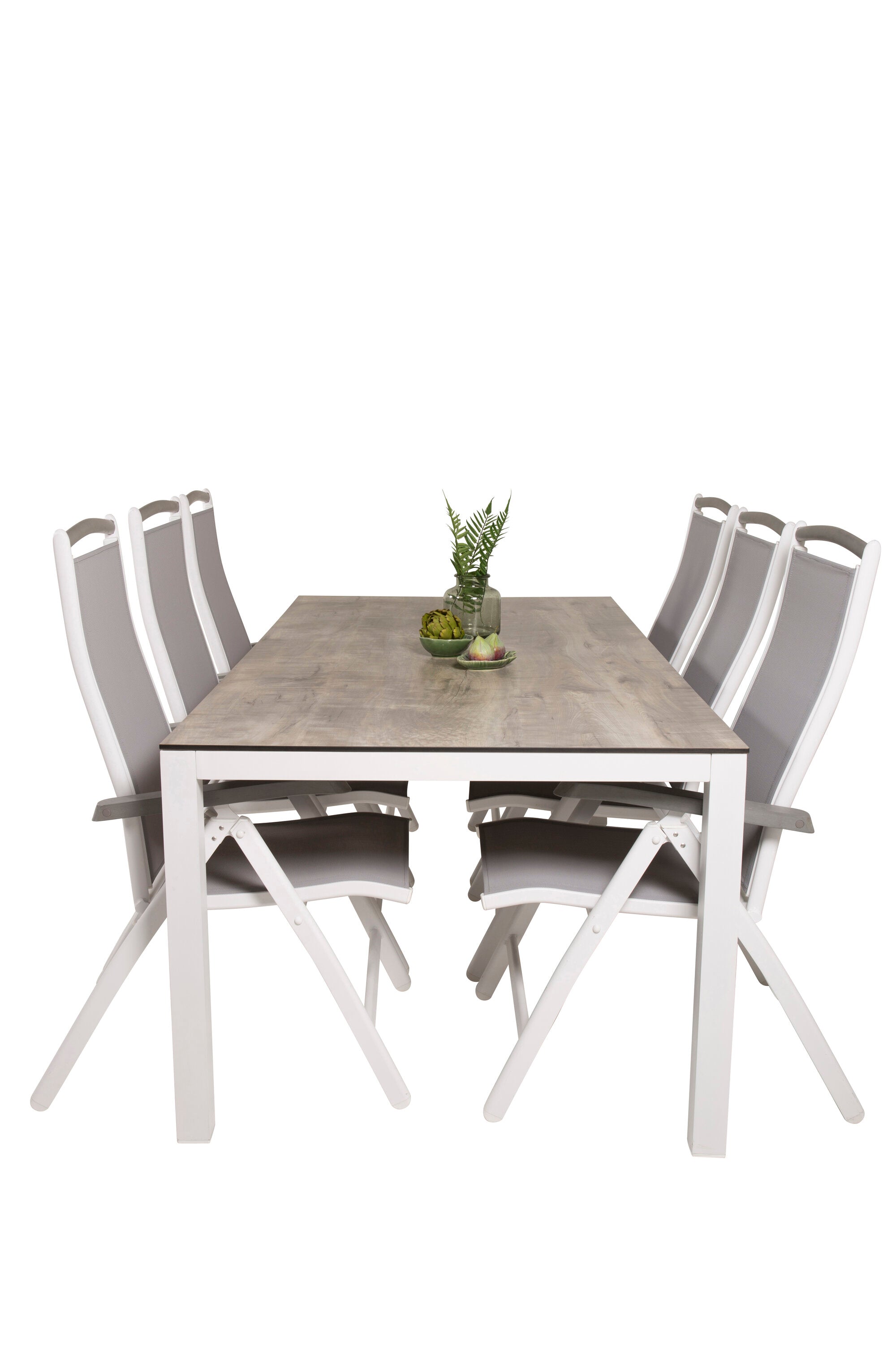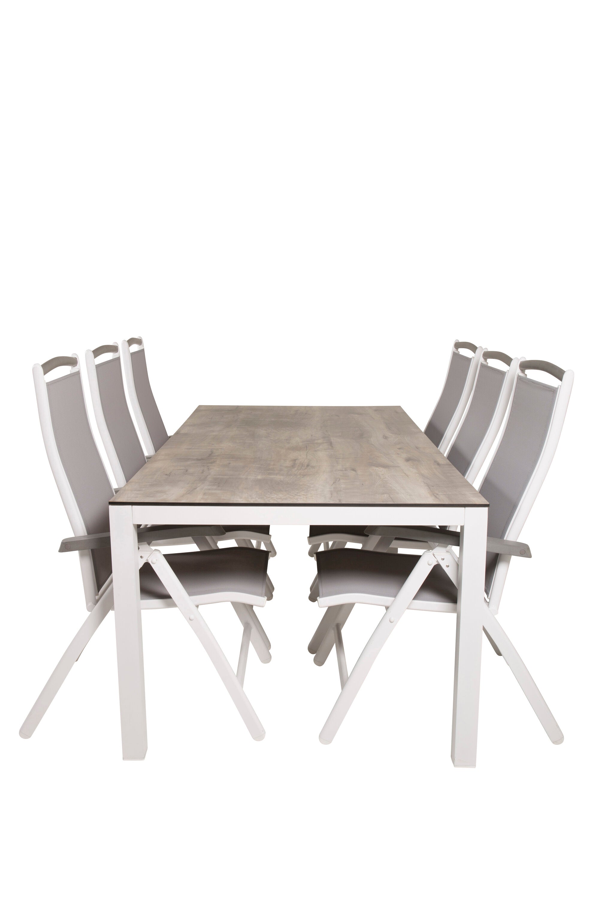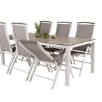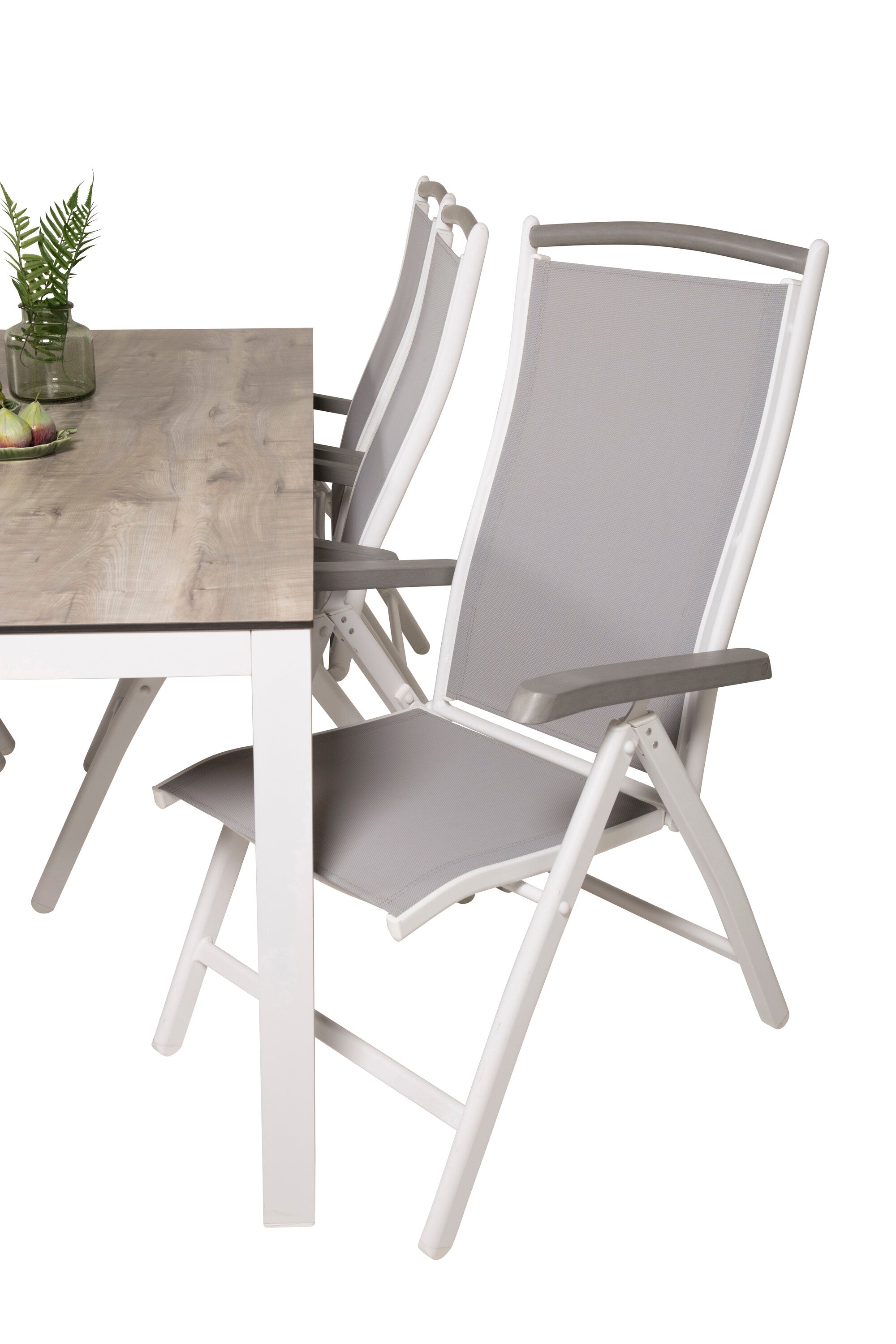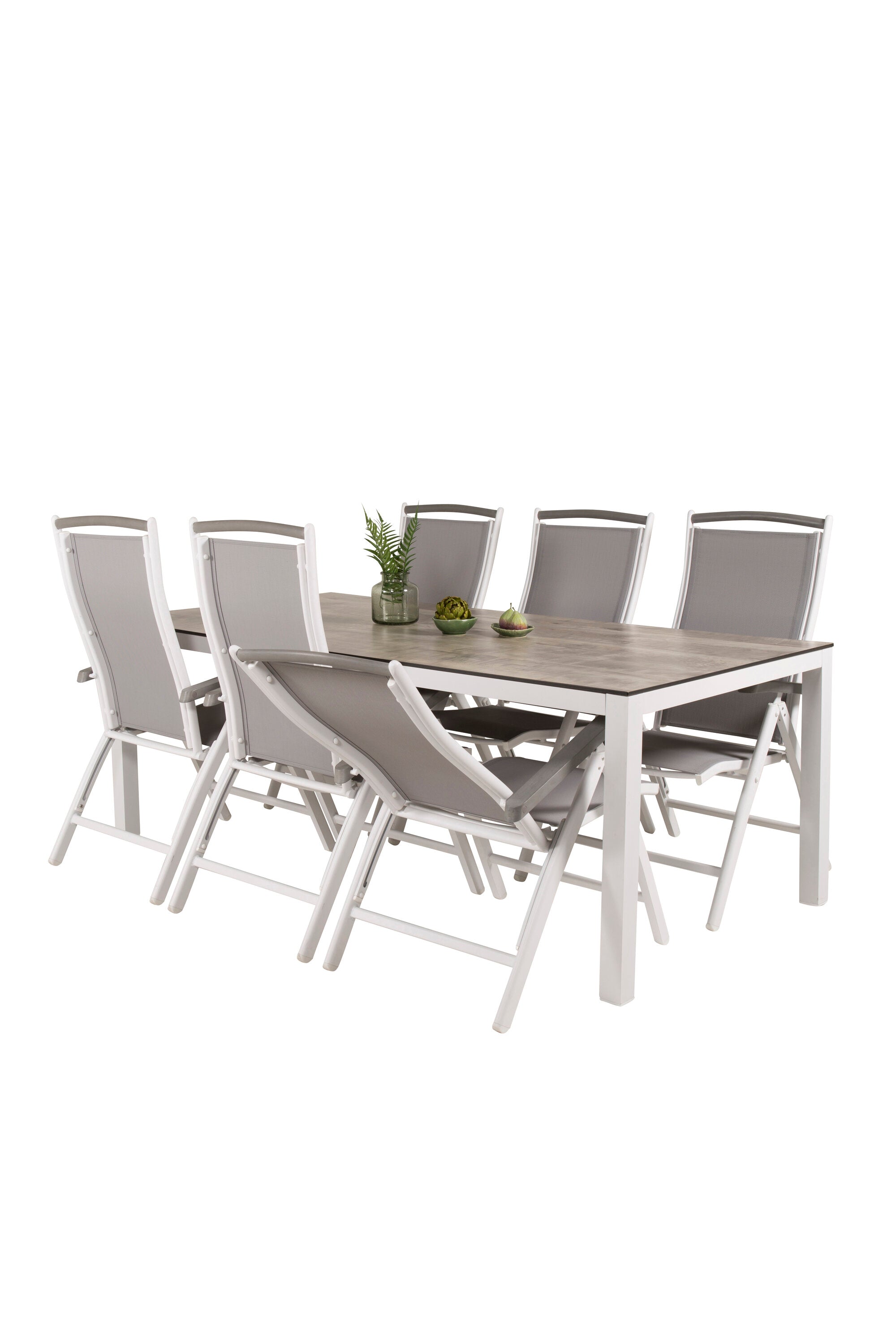 Jídelní stůl Llama 205*100 - Bílá Alu / Šedá HPL - Albany 5:pos Židle - Bílá/Šedá 6