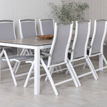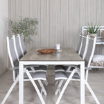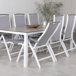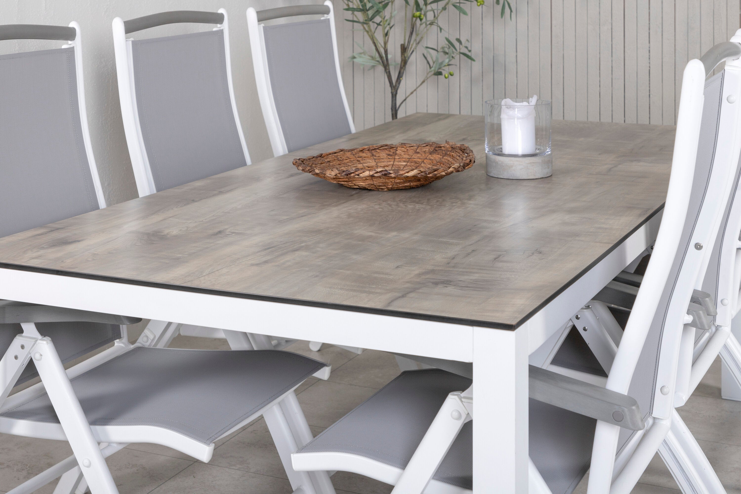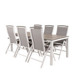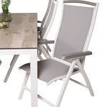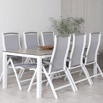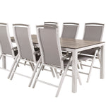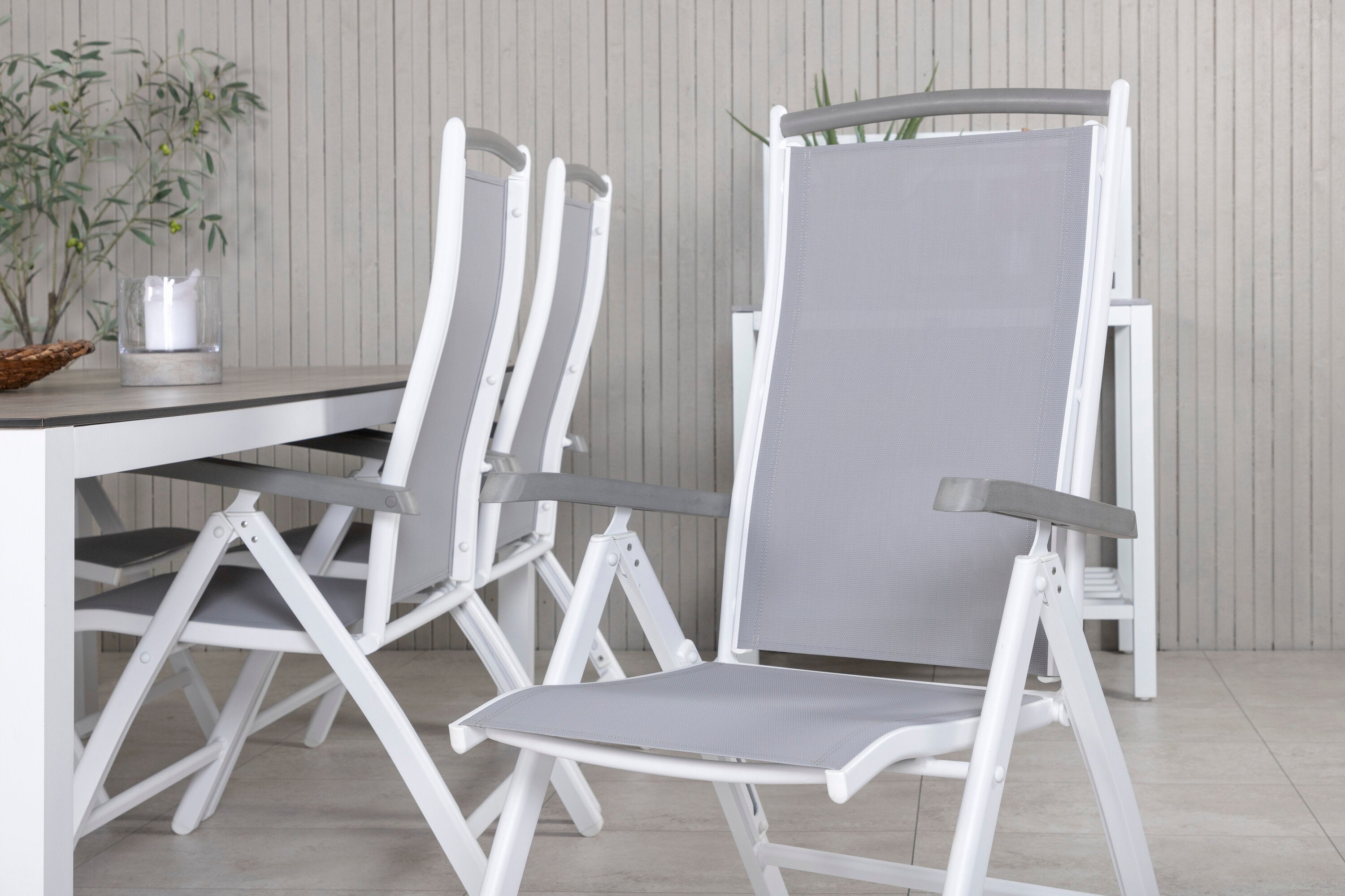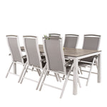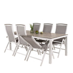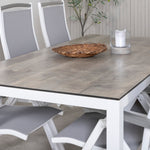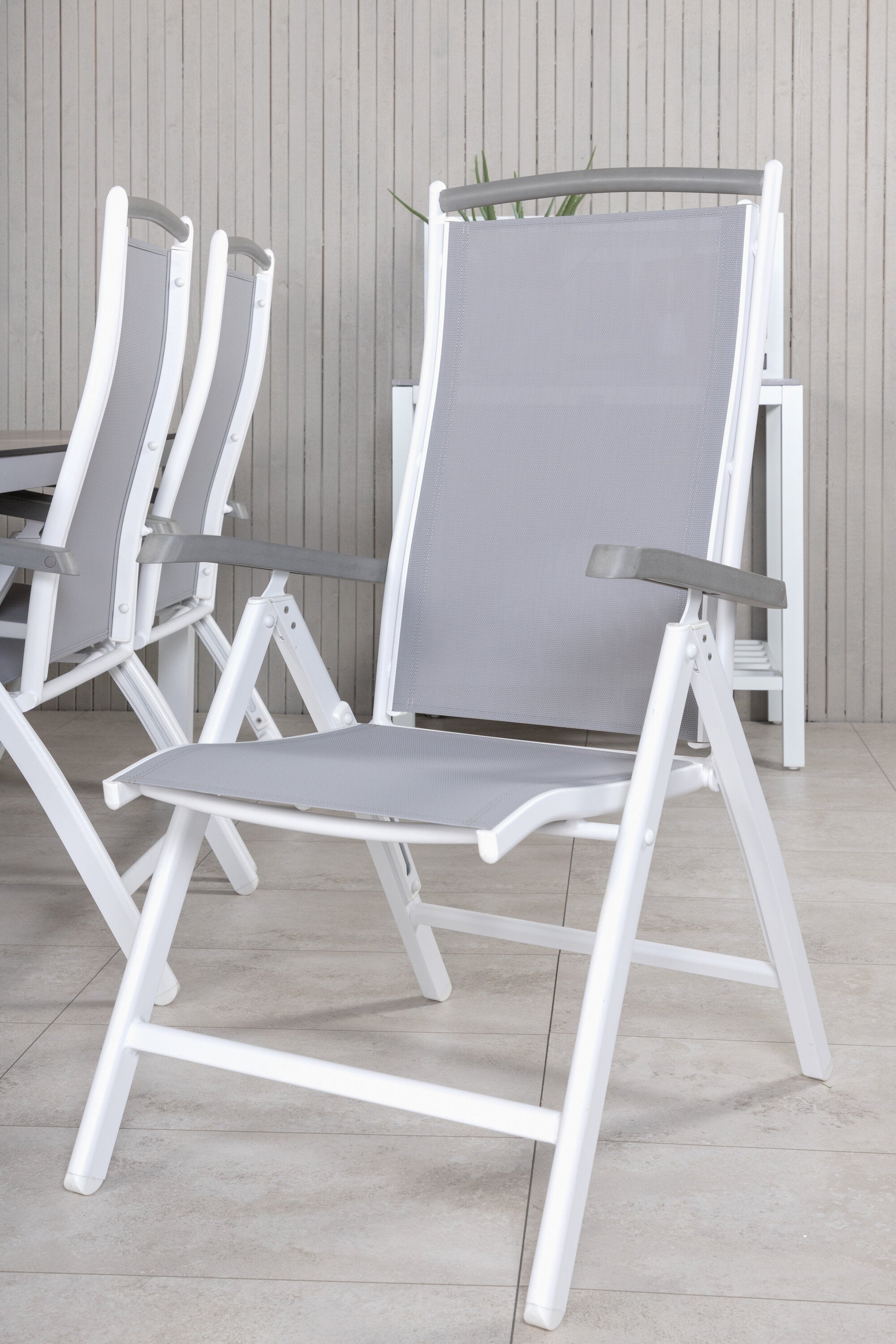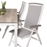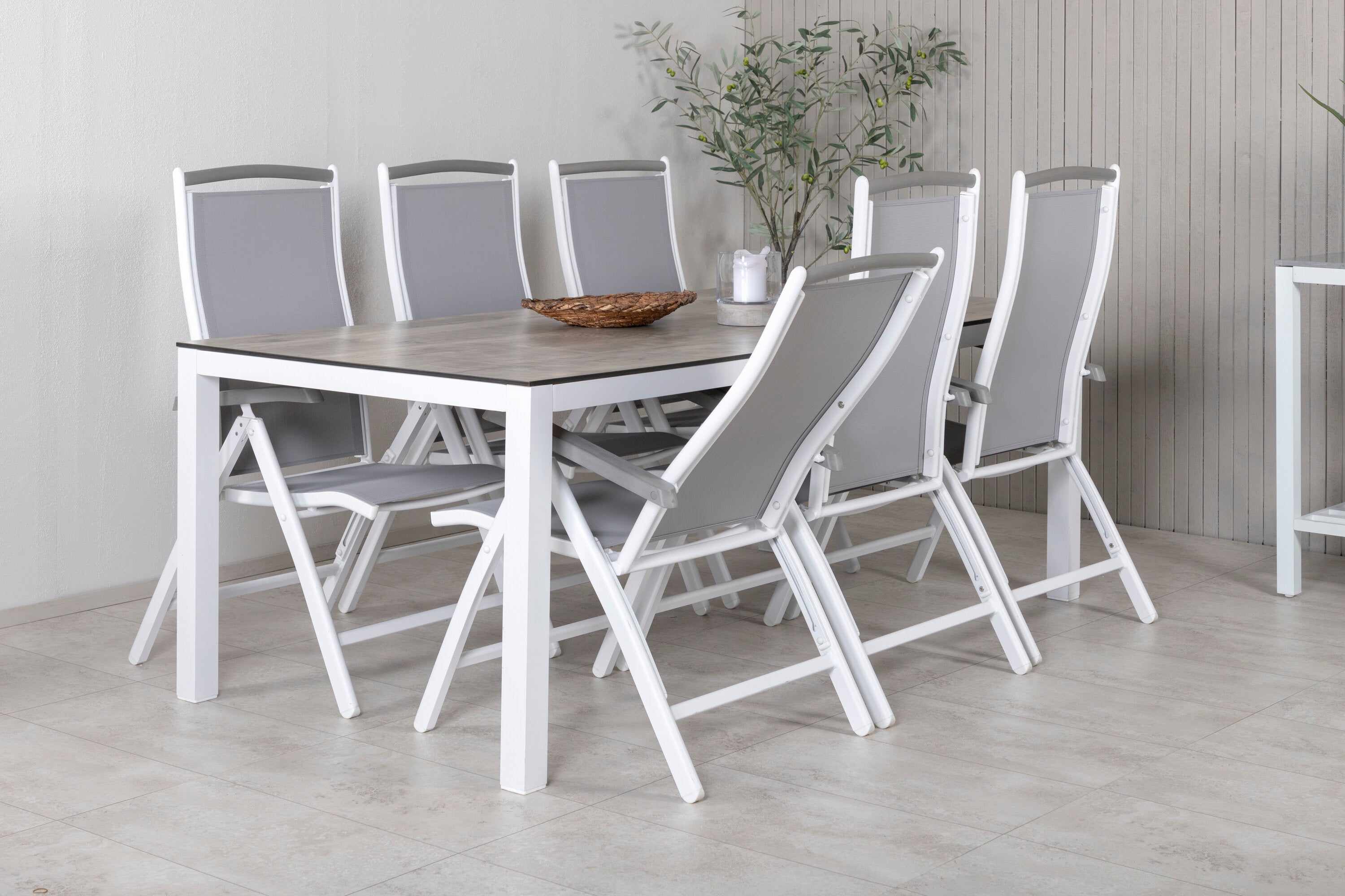 Jídelní stůl Llama 205*100 - Bílá Alu / Šedá HPL - Albany 5:pos Židle - Bílá/Šedá 6