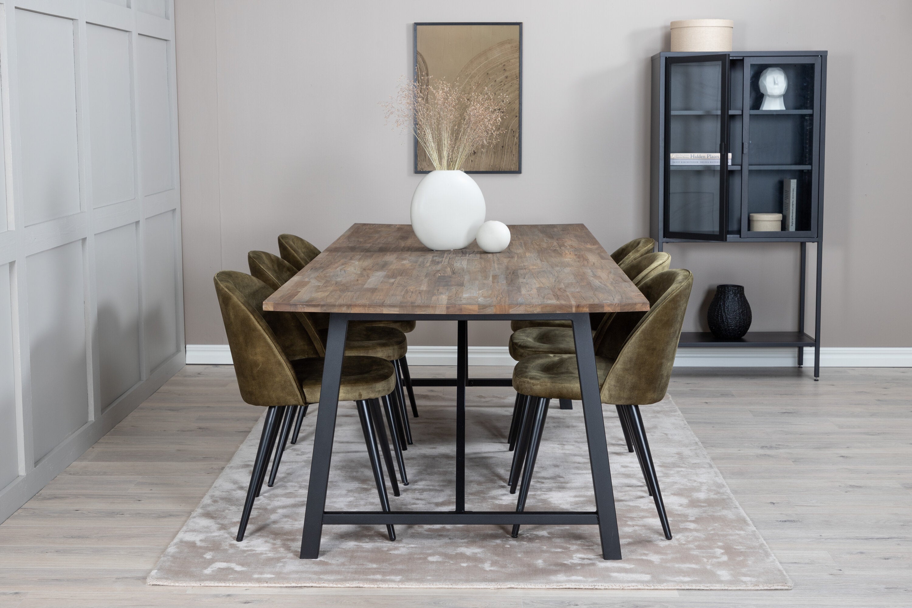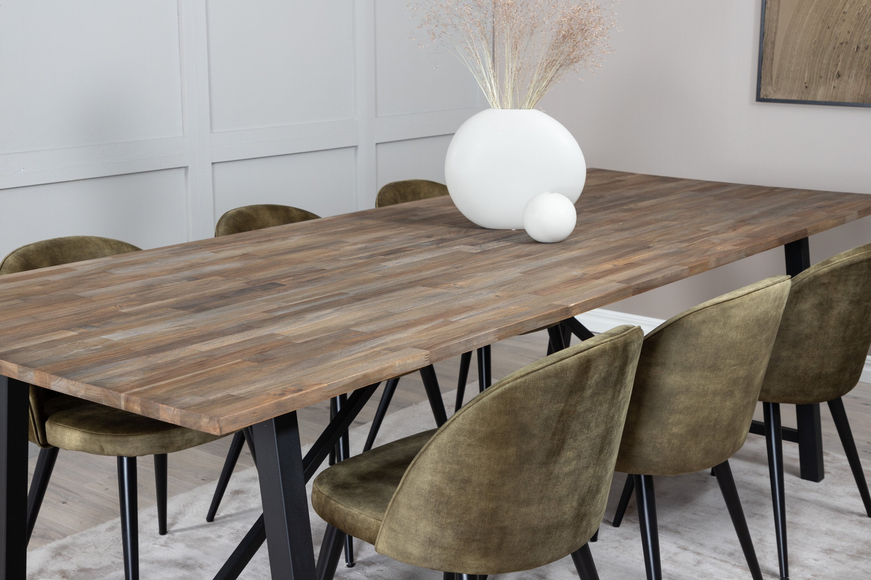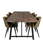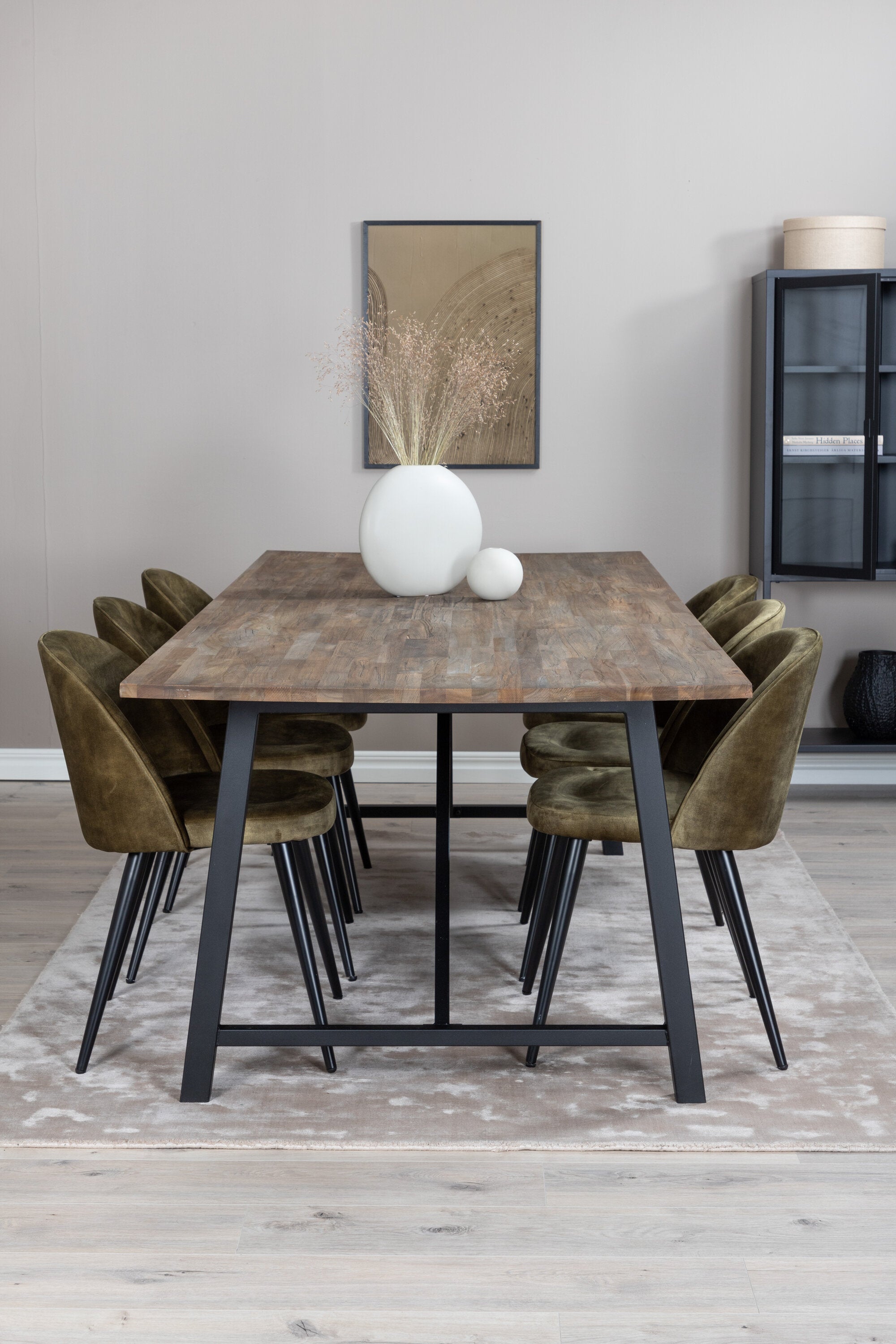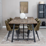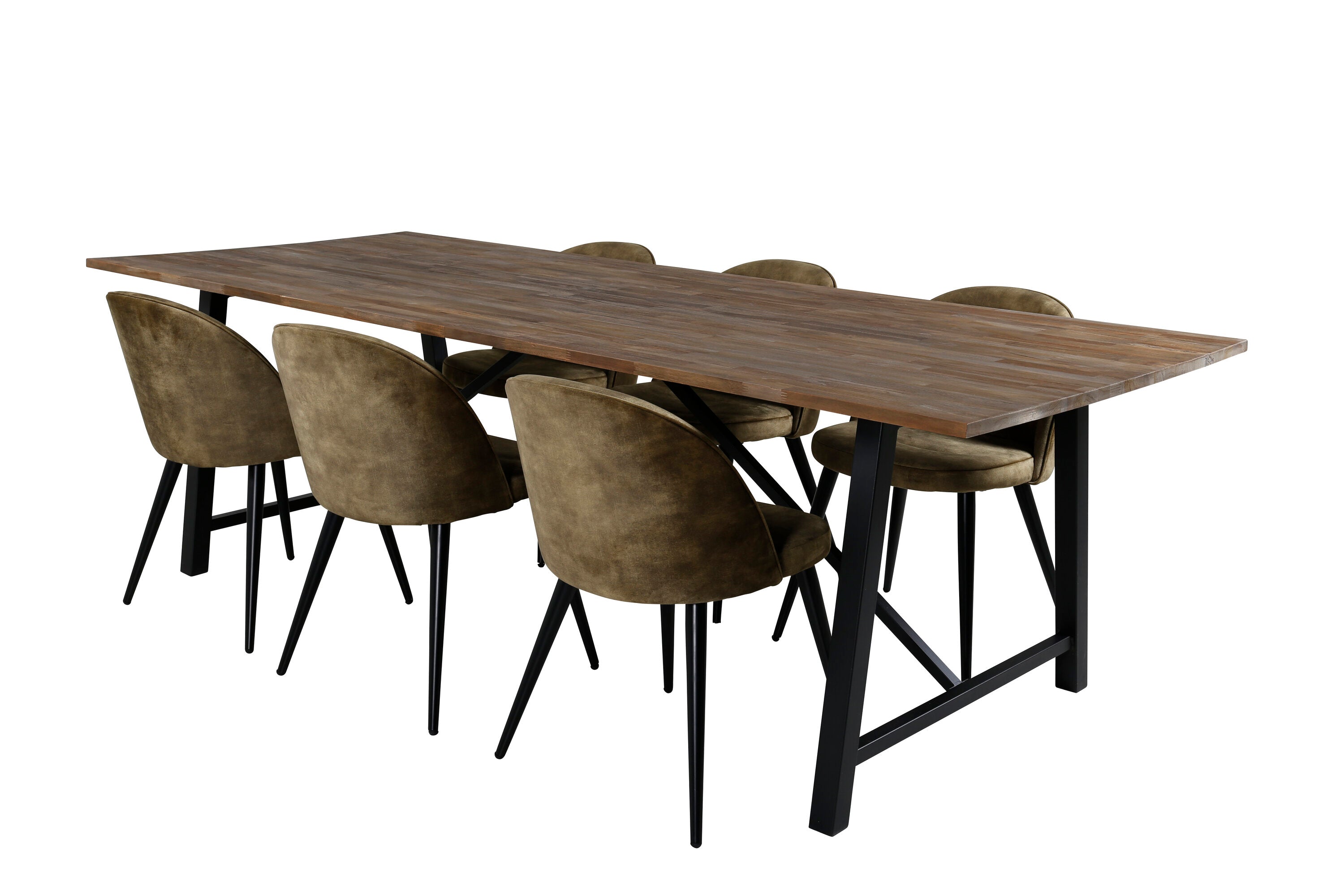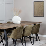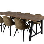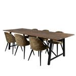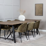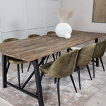 Jídelní stůl Malang - 250*100*H76 - Tmavý týk / Black+Velvet Jídelní křeslo - Černé nohy - Dusty Green Velvet_6