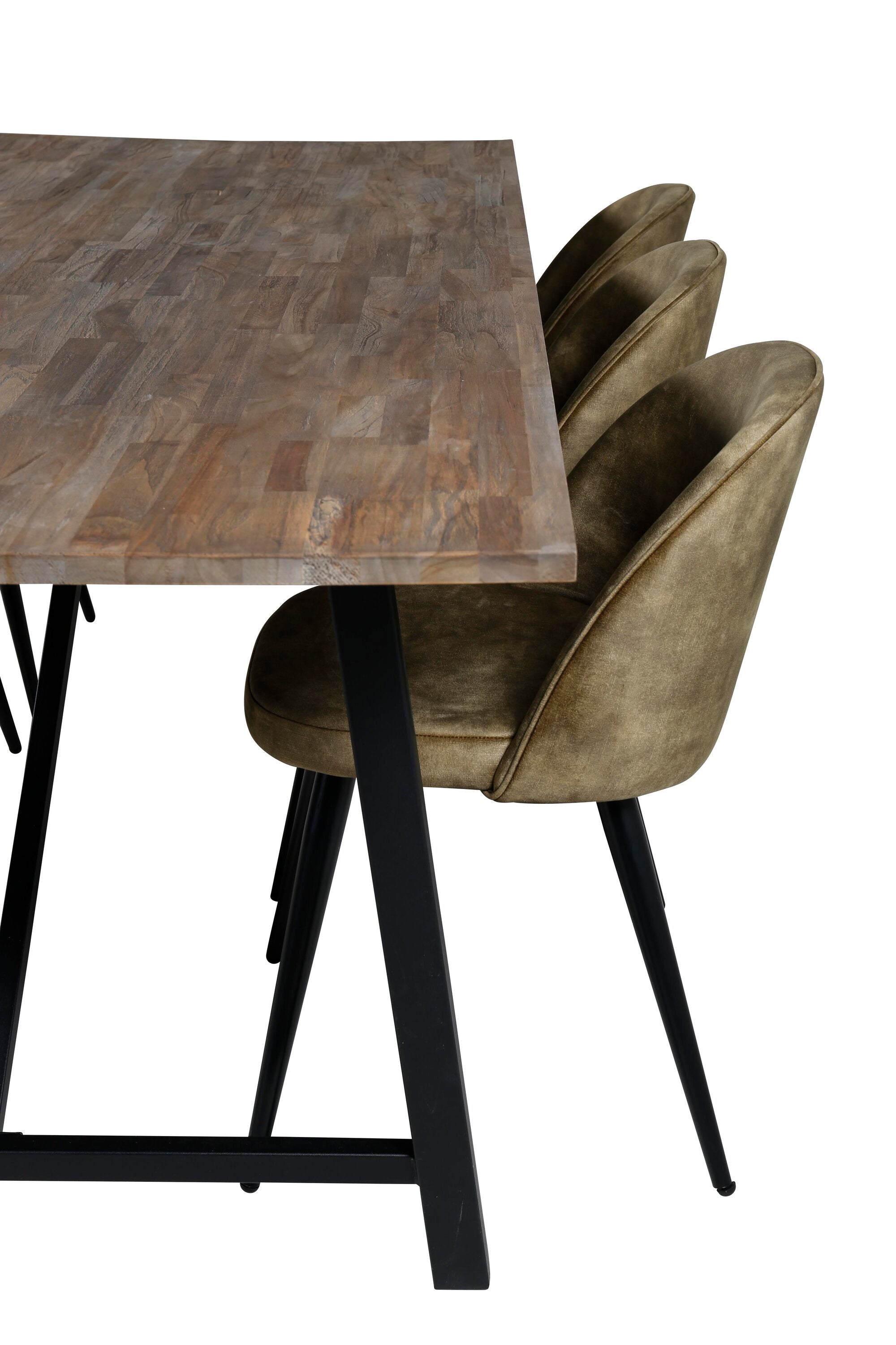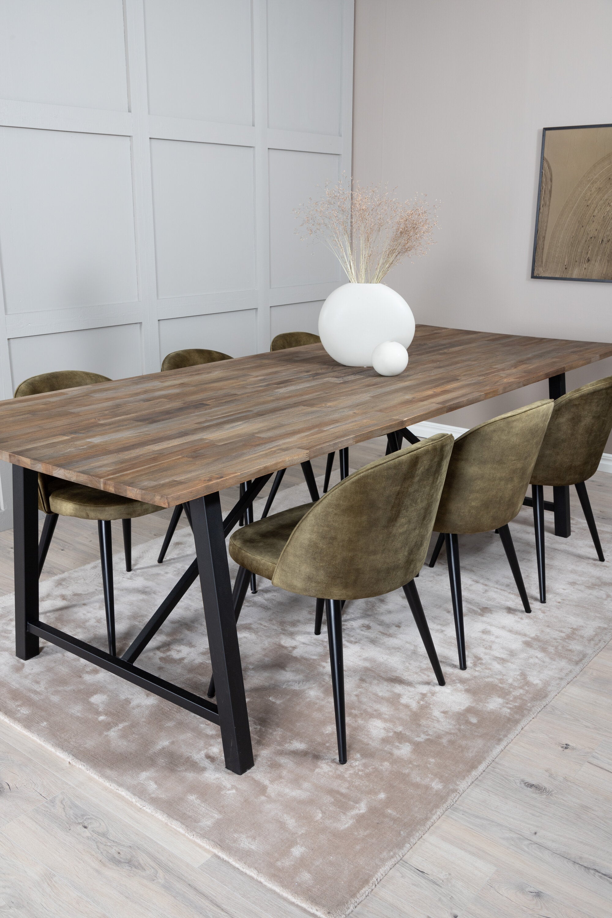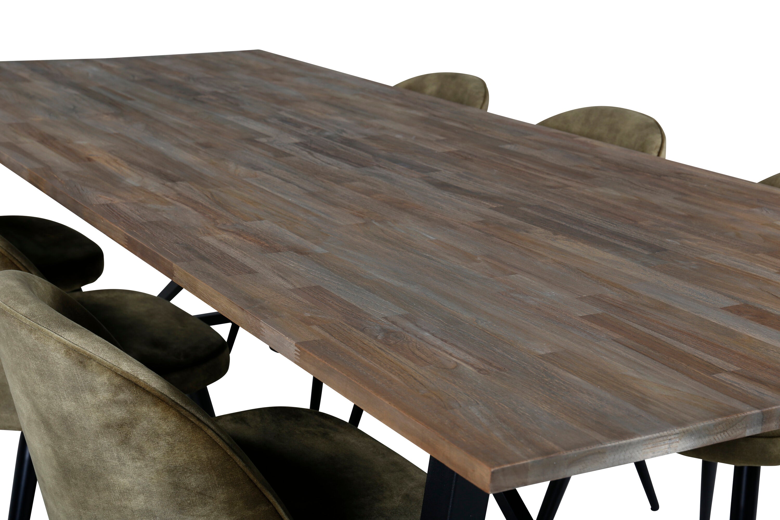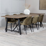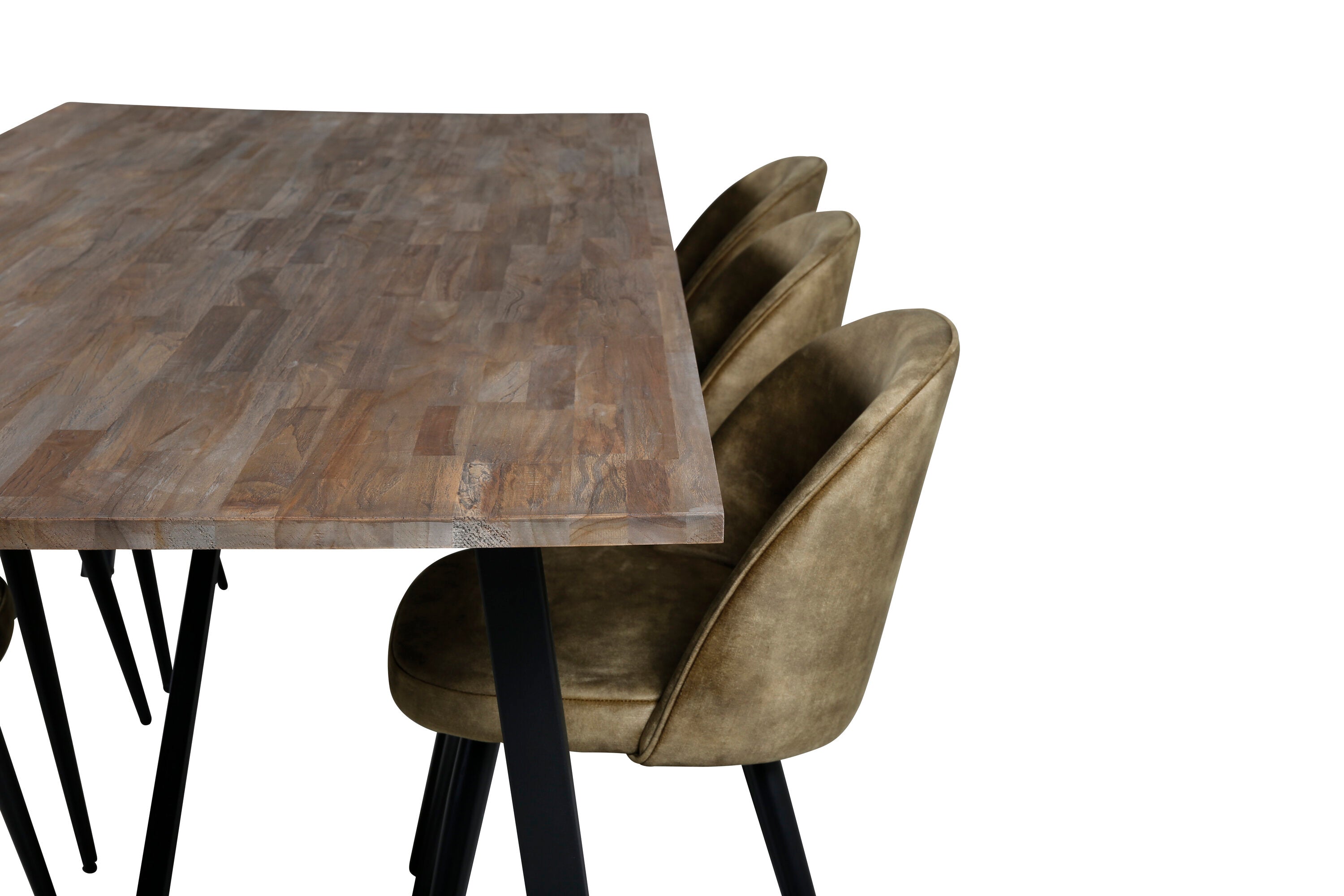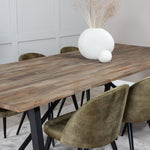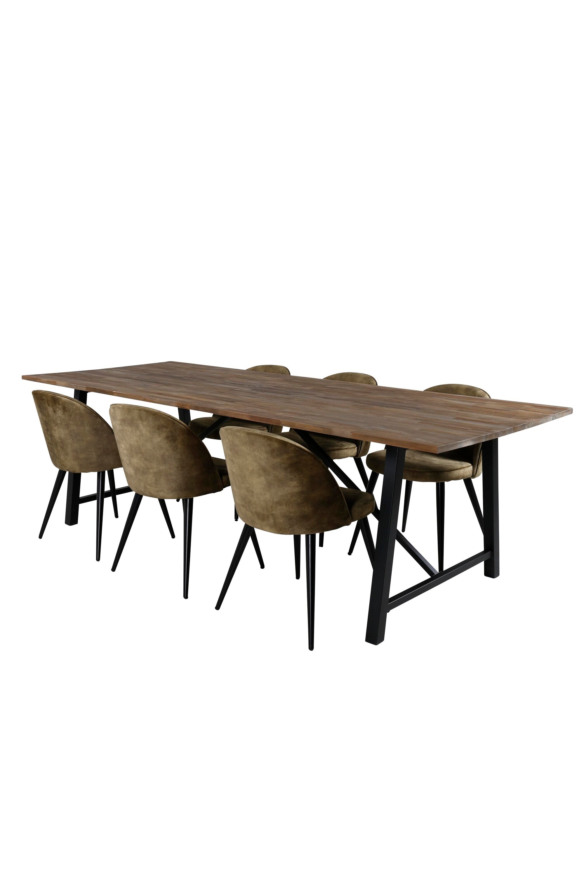 Jídelní stůl Malang - 250*100*H76 - Tmavý týk / Black+Velvet Jídelní křeslo - Černé nohy - Dusty Green Velvet_6