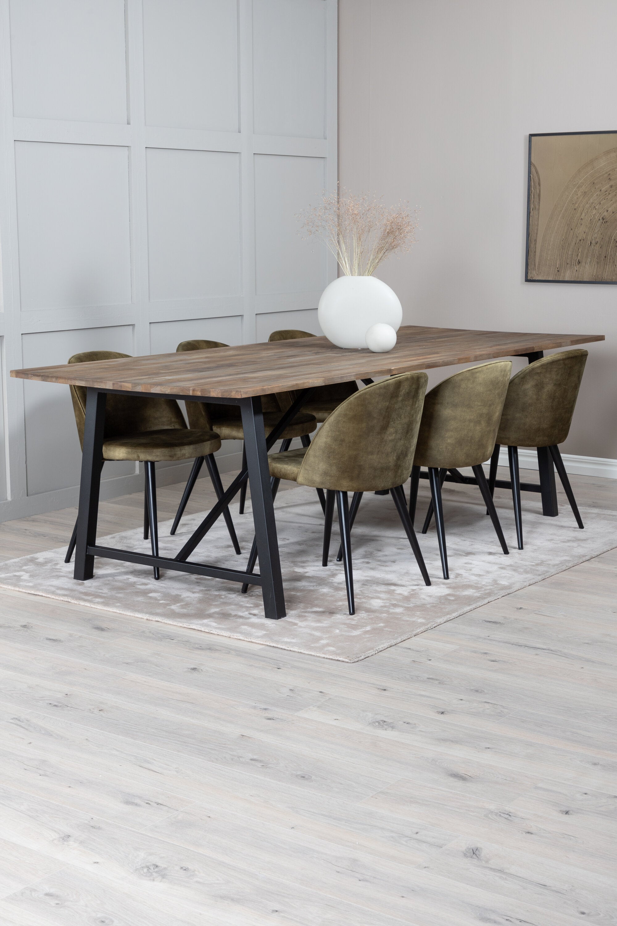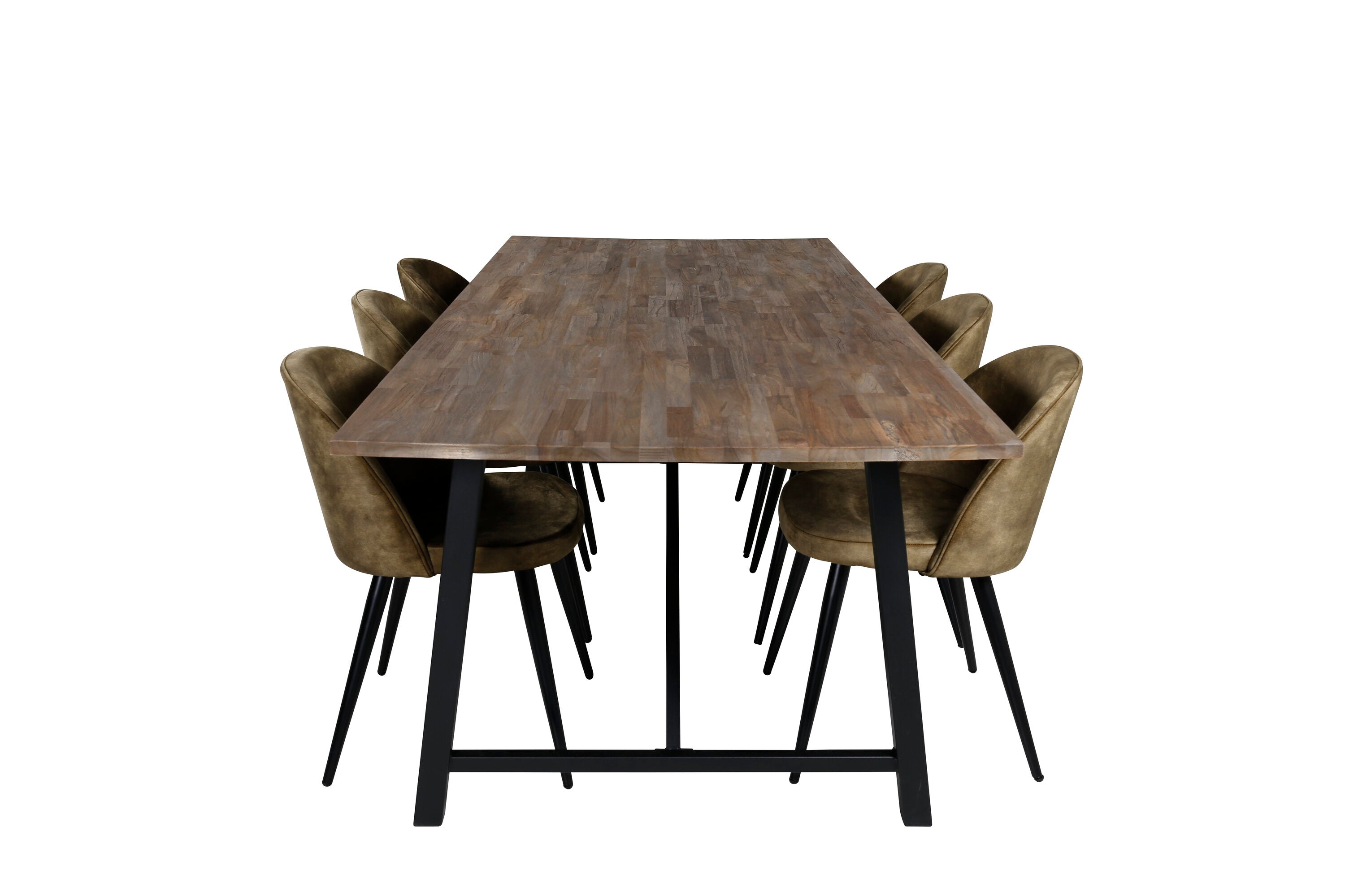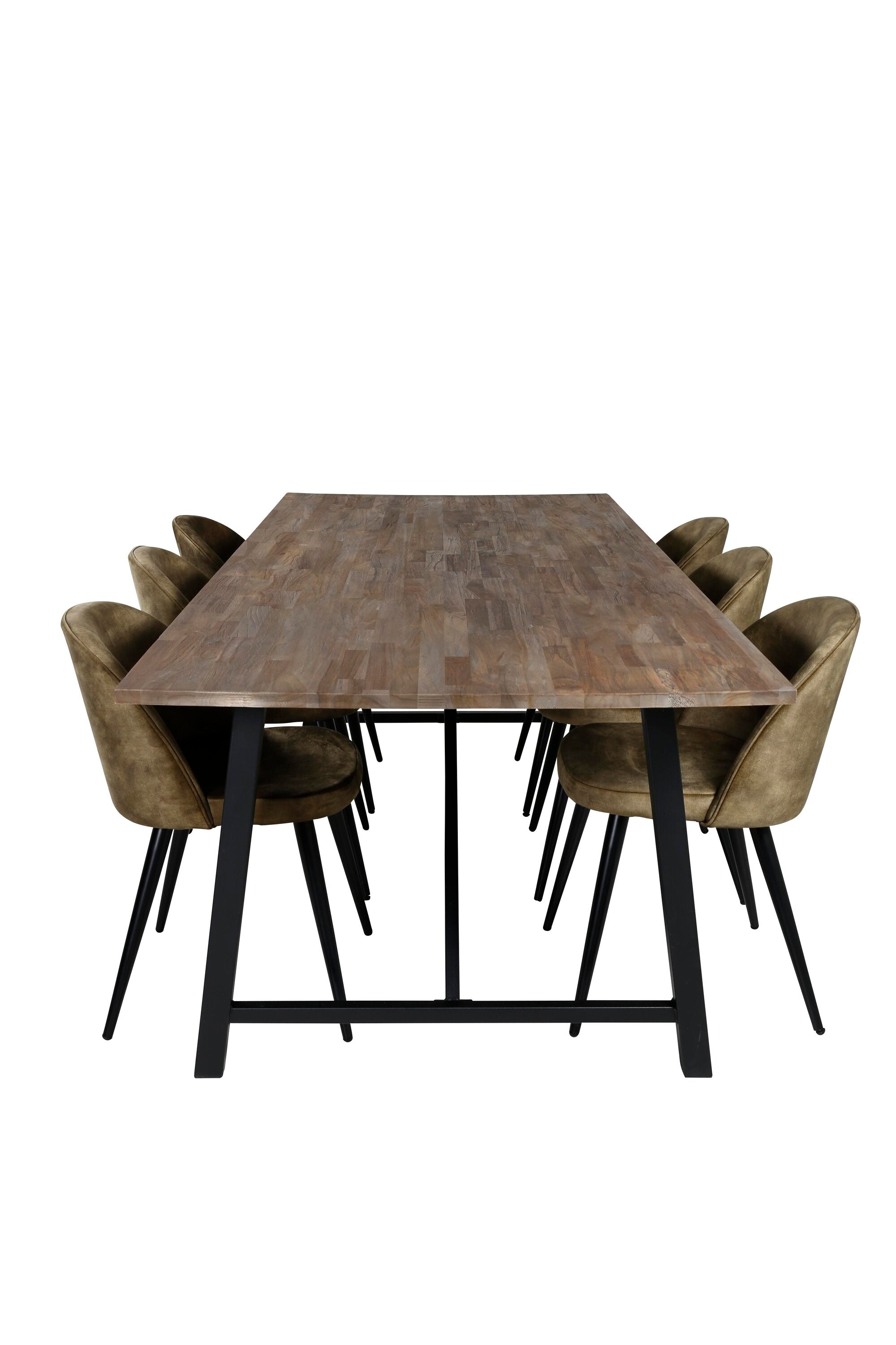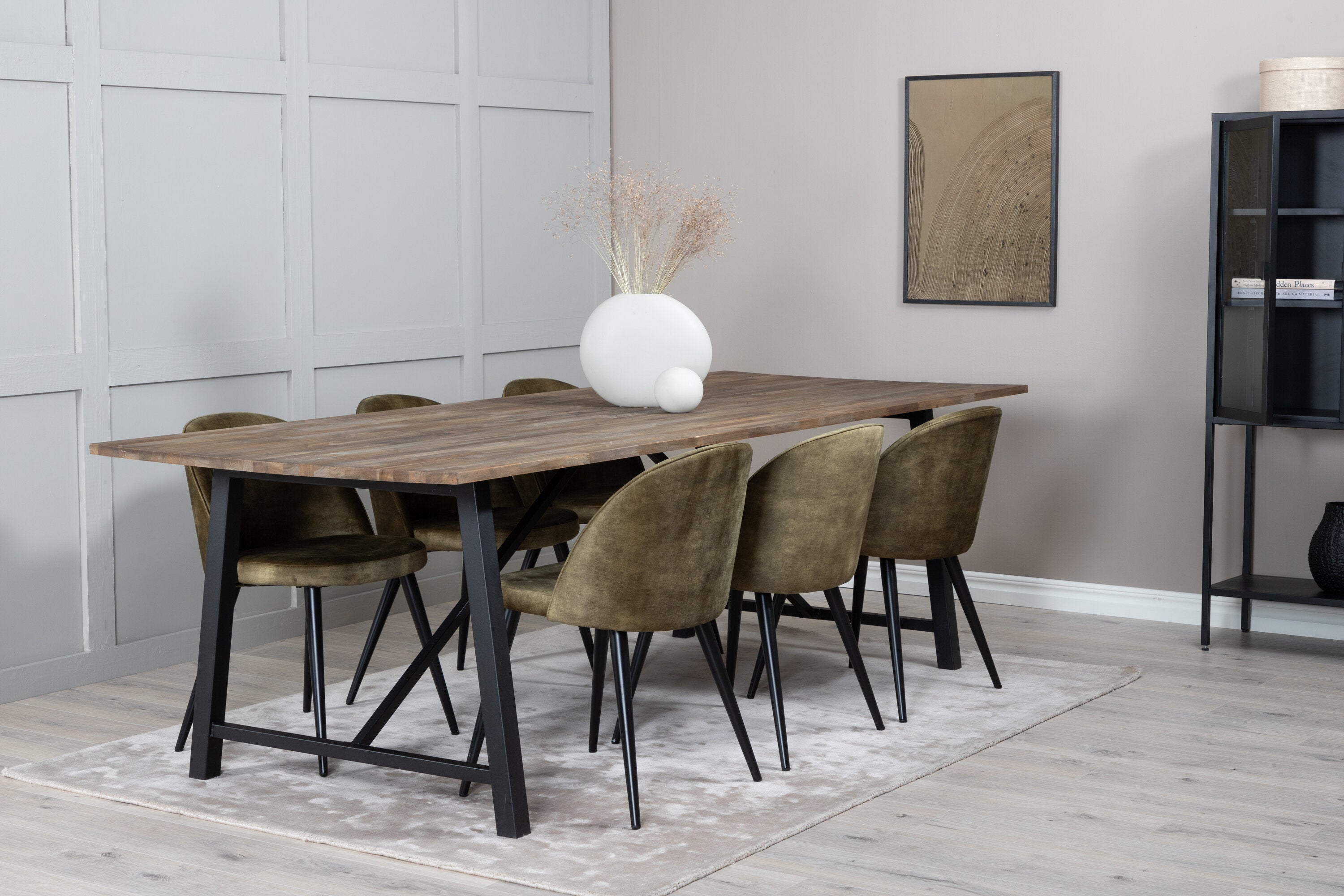 Jídelní stůl Malang - 250*100*H76 - Tmavý týk / Black+Velvet Jídelní křeslo - Černé nohy - Dusty Green Velvet_6