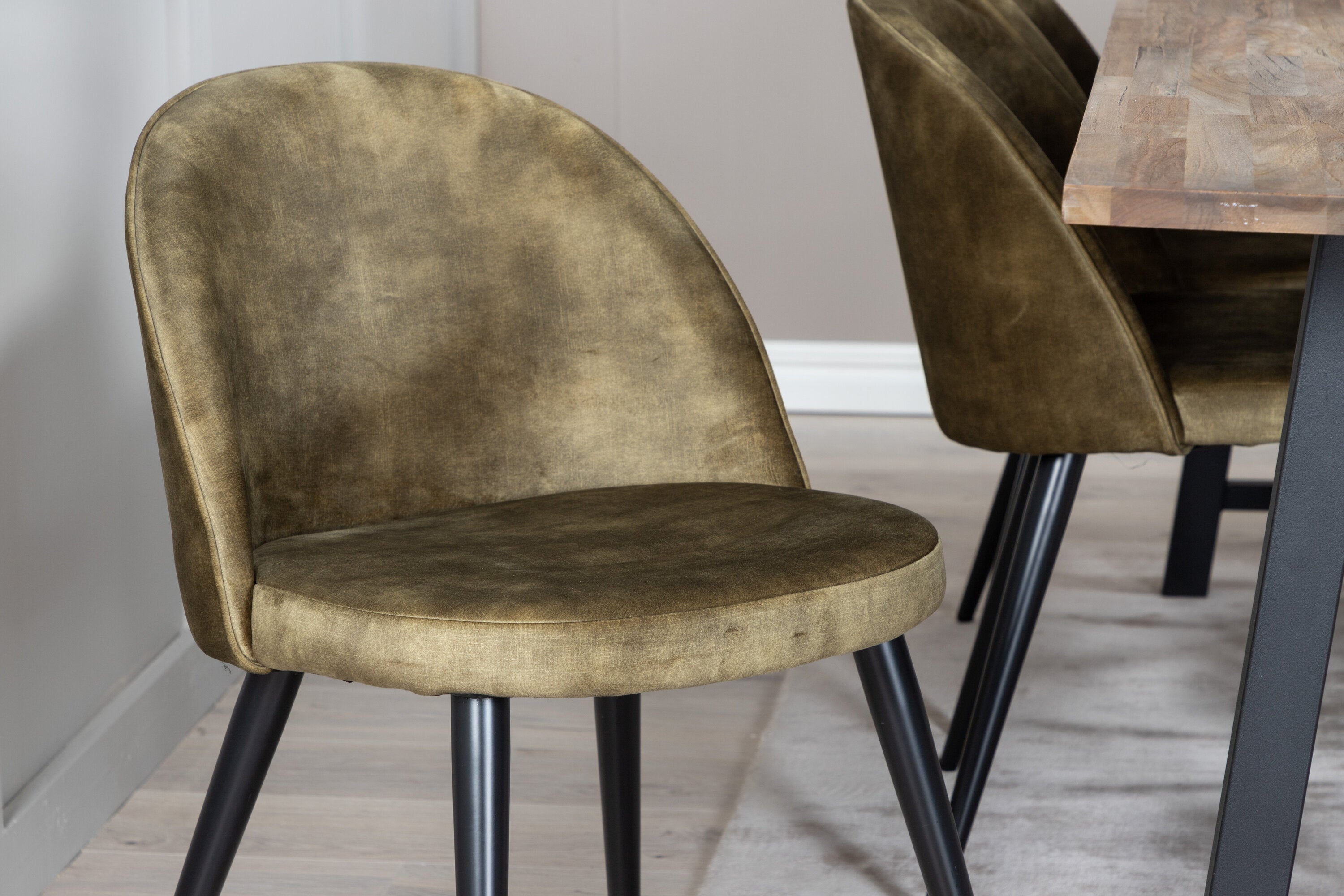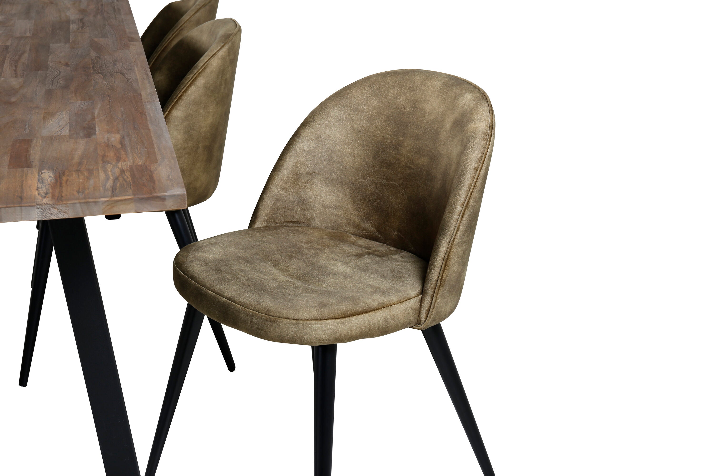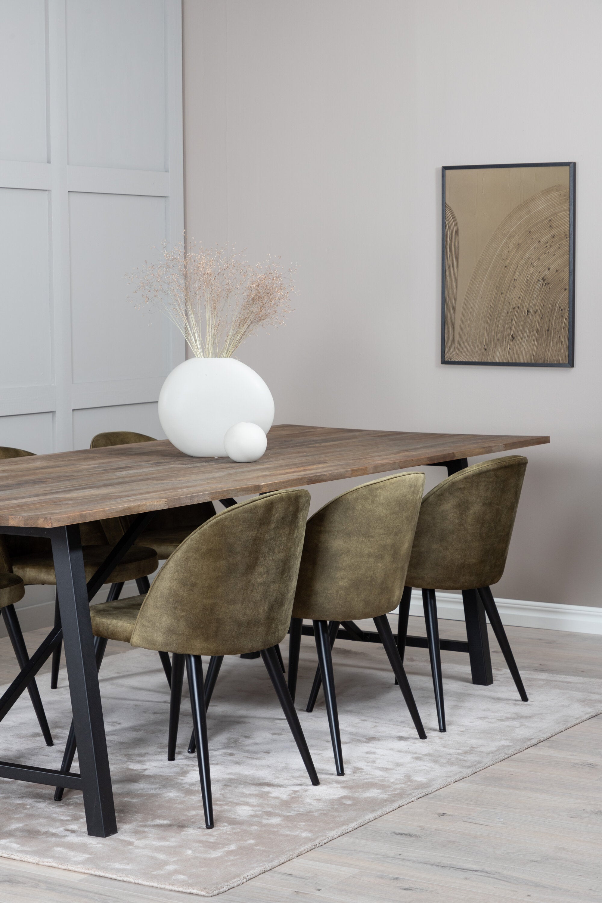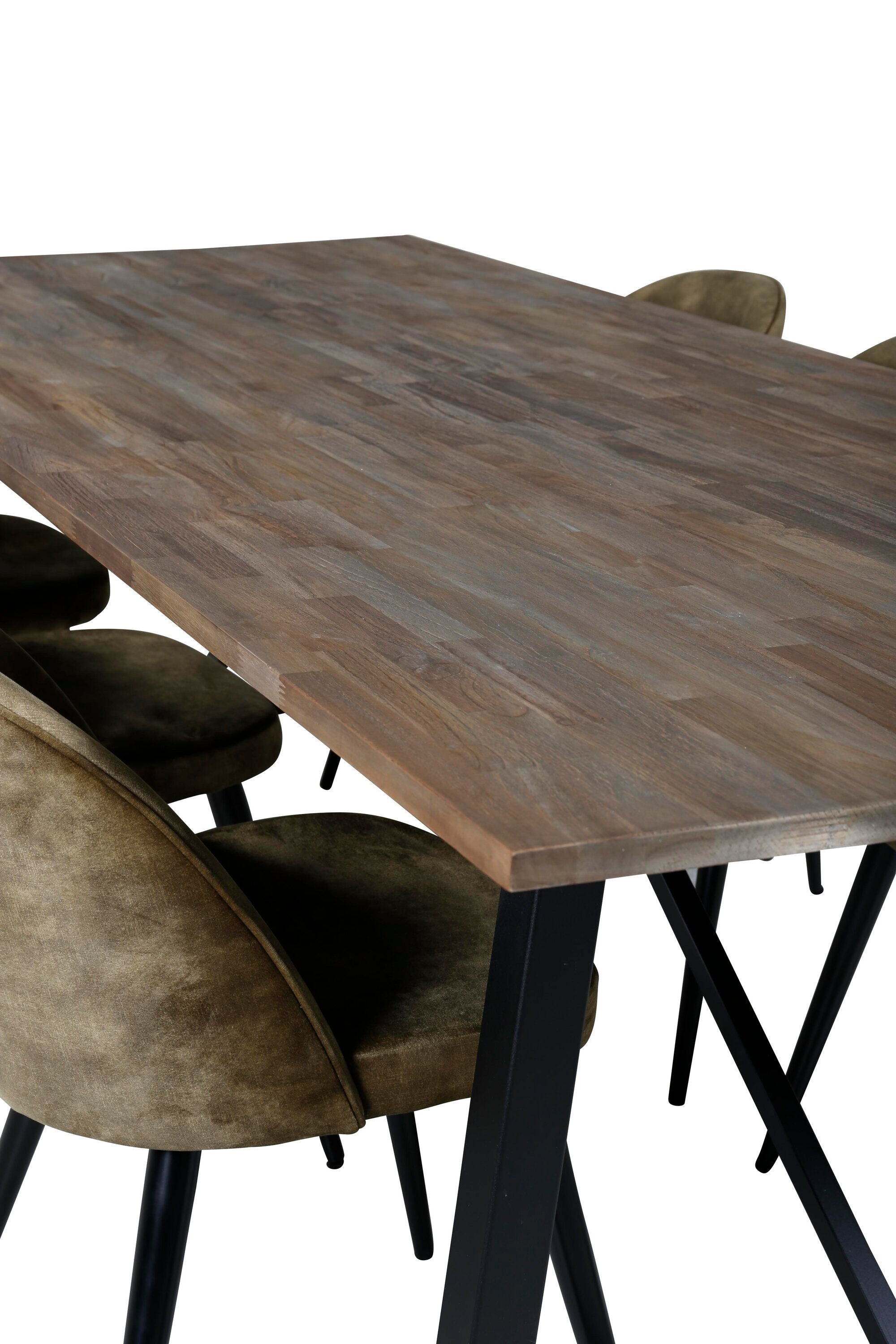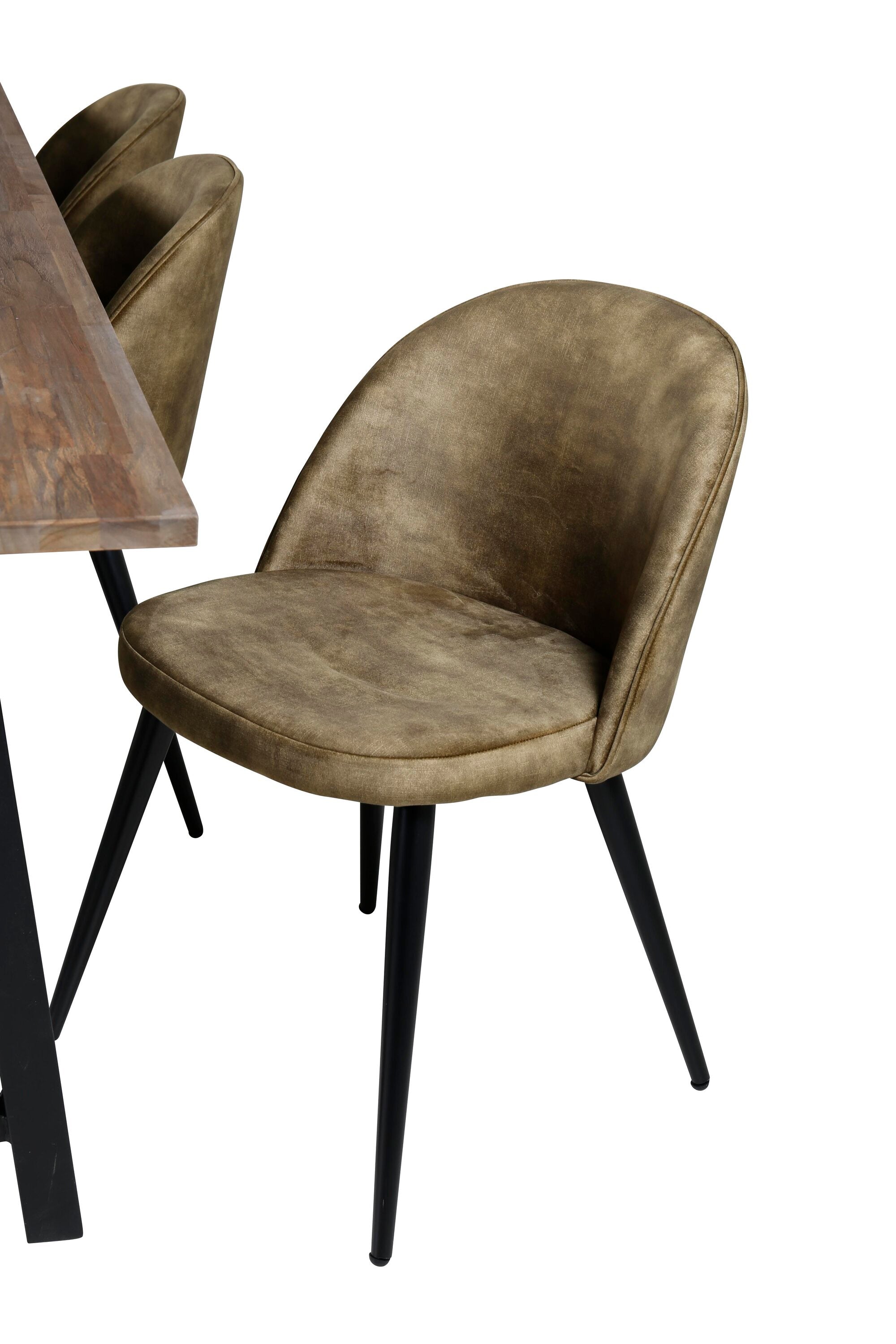Jídelní stůl Malang - 250*100*H76 - Tmavý týk / Black+Velvet Jídelní křeslo - Černé nohy - Dusty Green Velvet_6