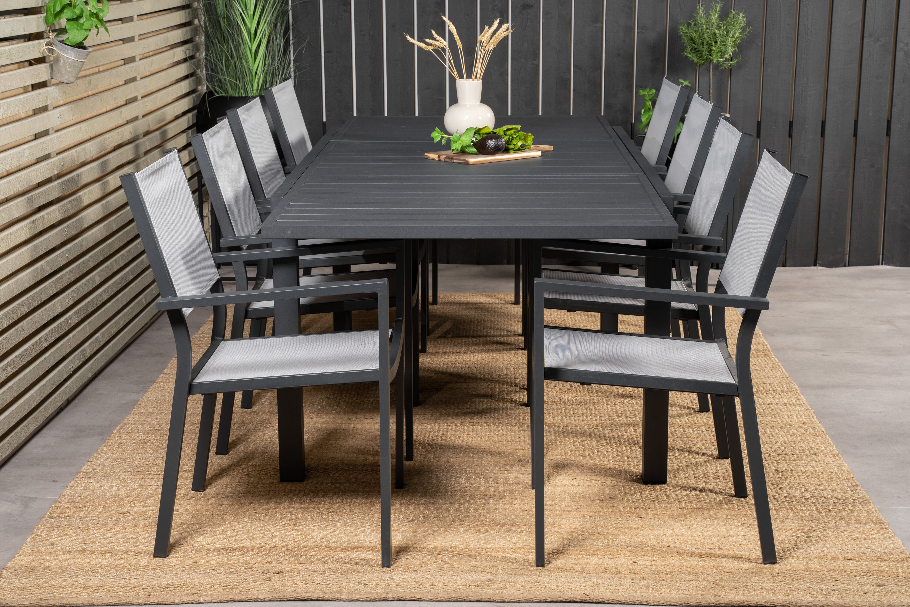Jídelní stůl Marbella 160/240*100*H75 - Černá + křeslo Copacabana (stohovatelné) - Černá Alu / šedá Textilene_8