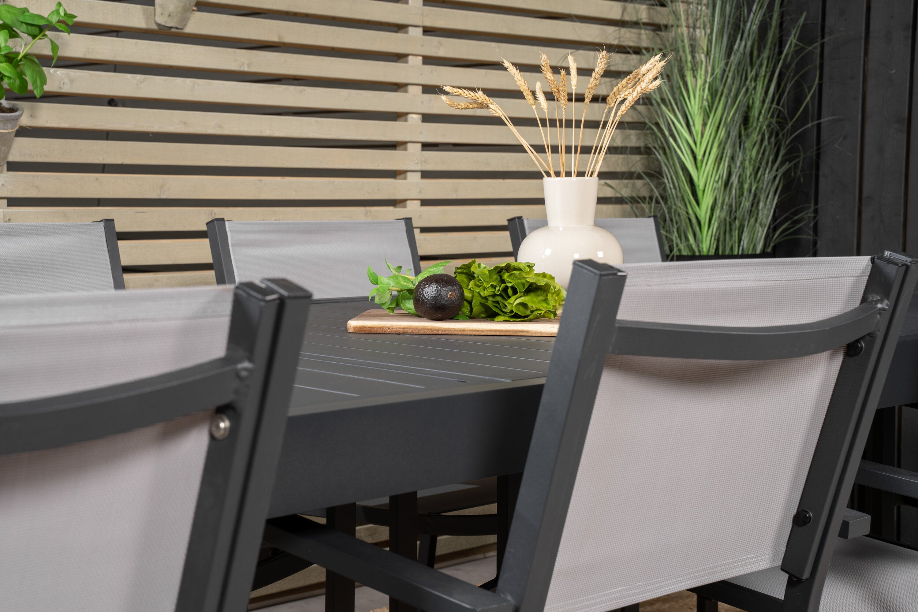 Jídelní stůl Marbella spolu s jídelními židlemi Copacabana vám poskytne skupinu jídel, která se hodí na každou terasu nebo terasu. Stůl je rozkládací a poskytuje příležitosti pro větší pozvánky na večeři!