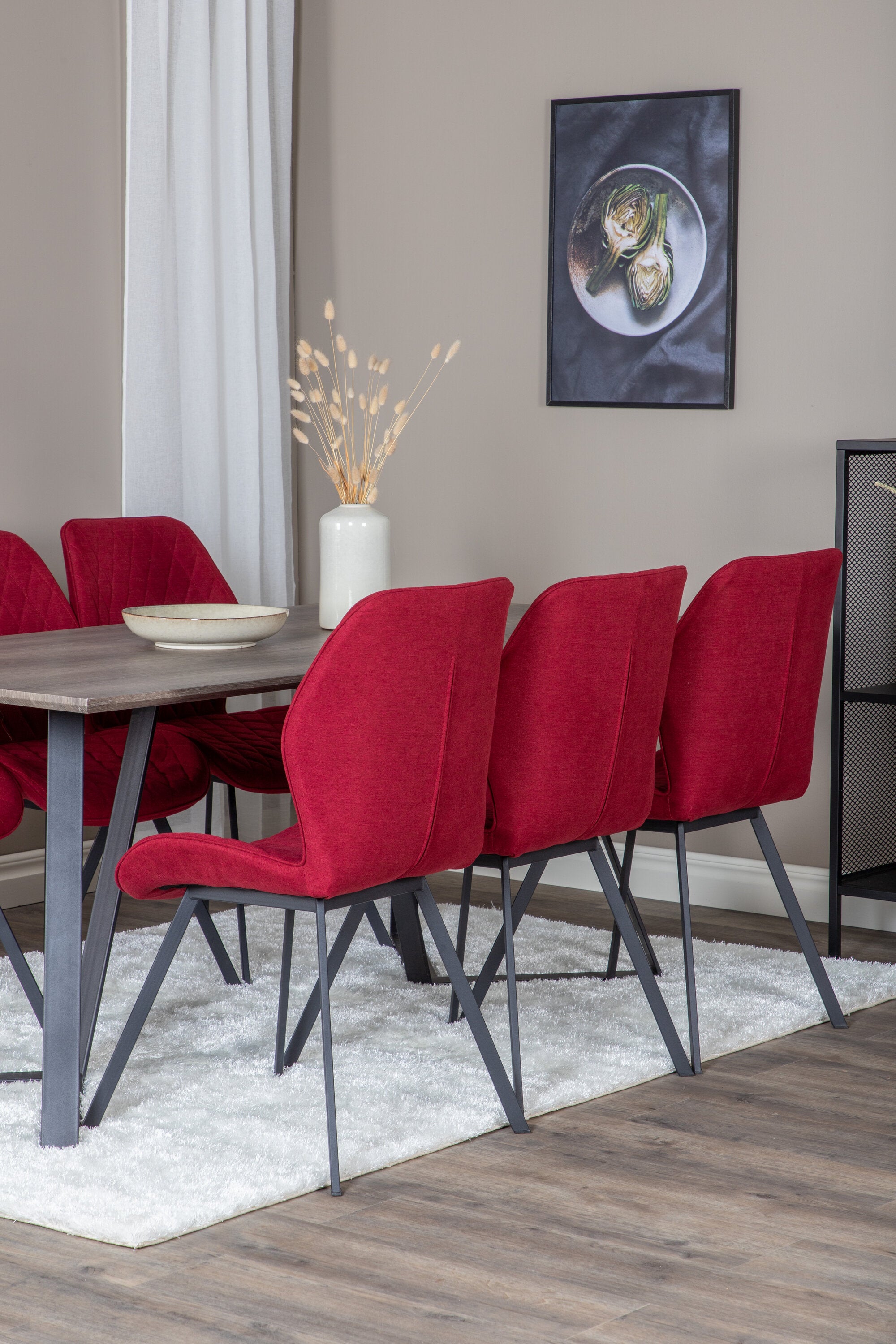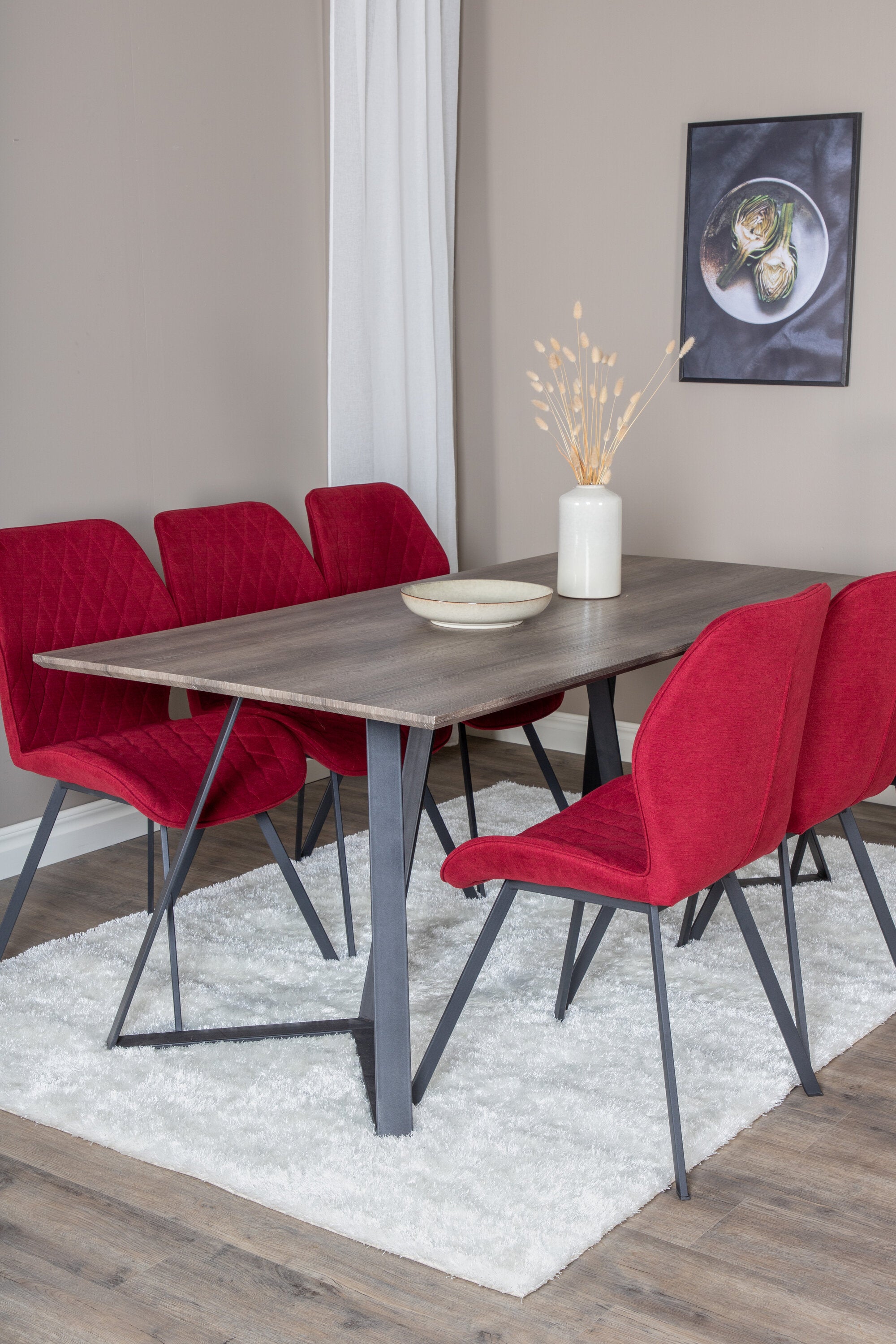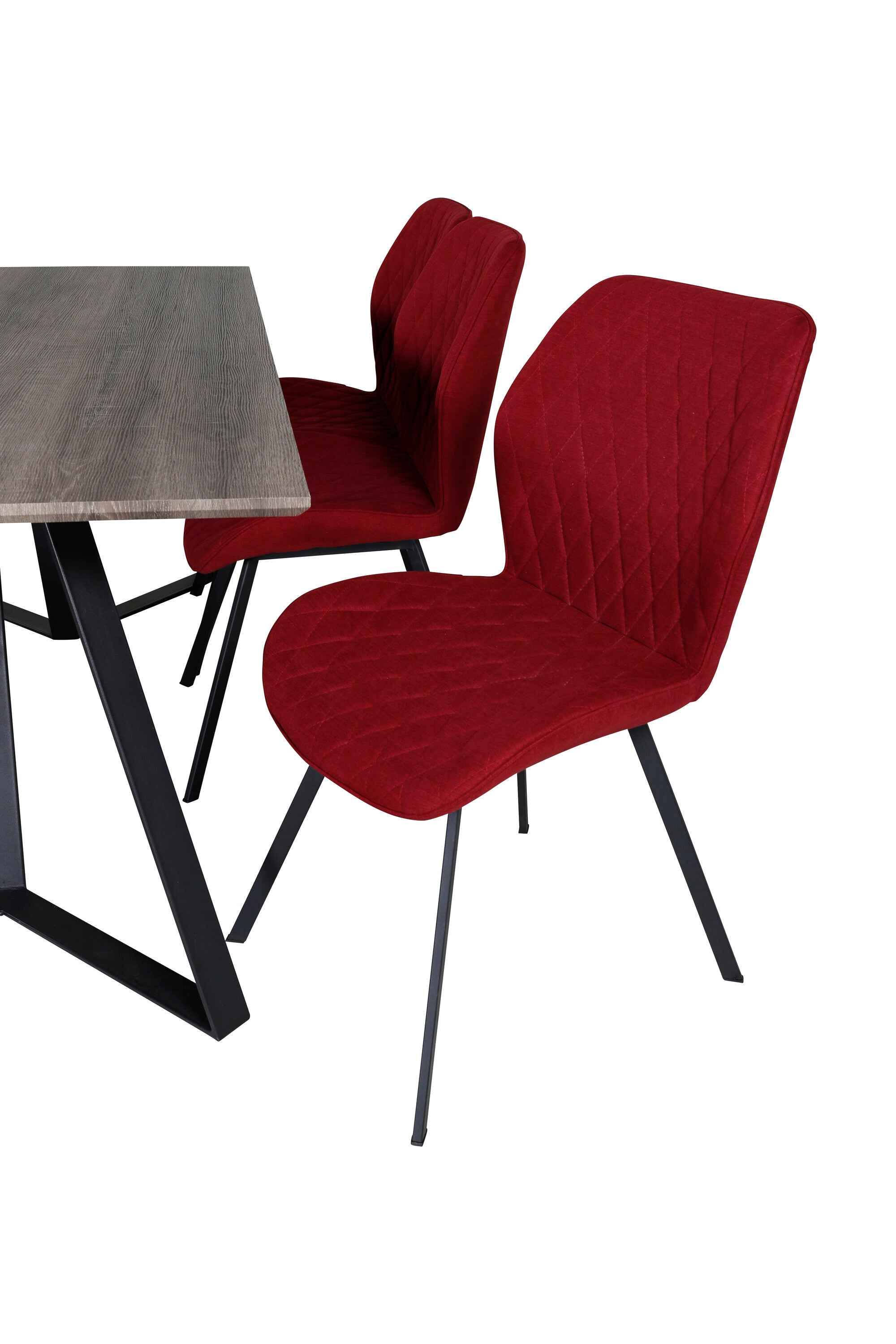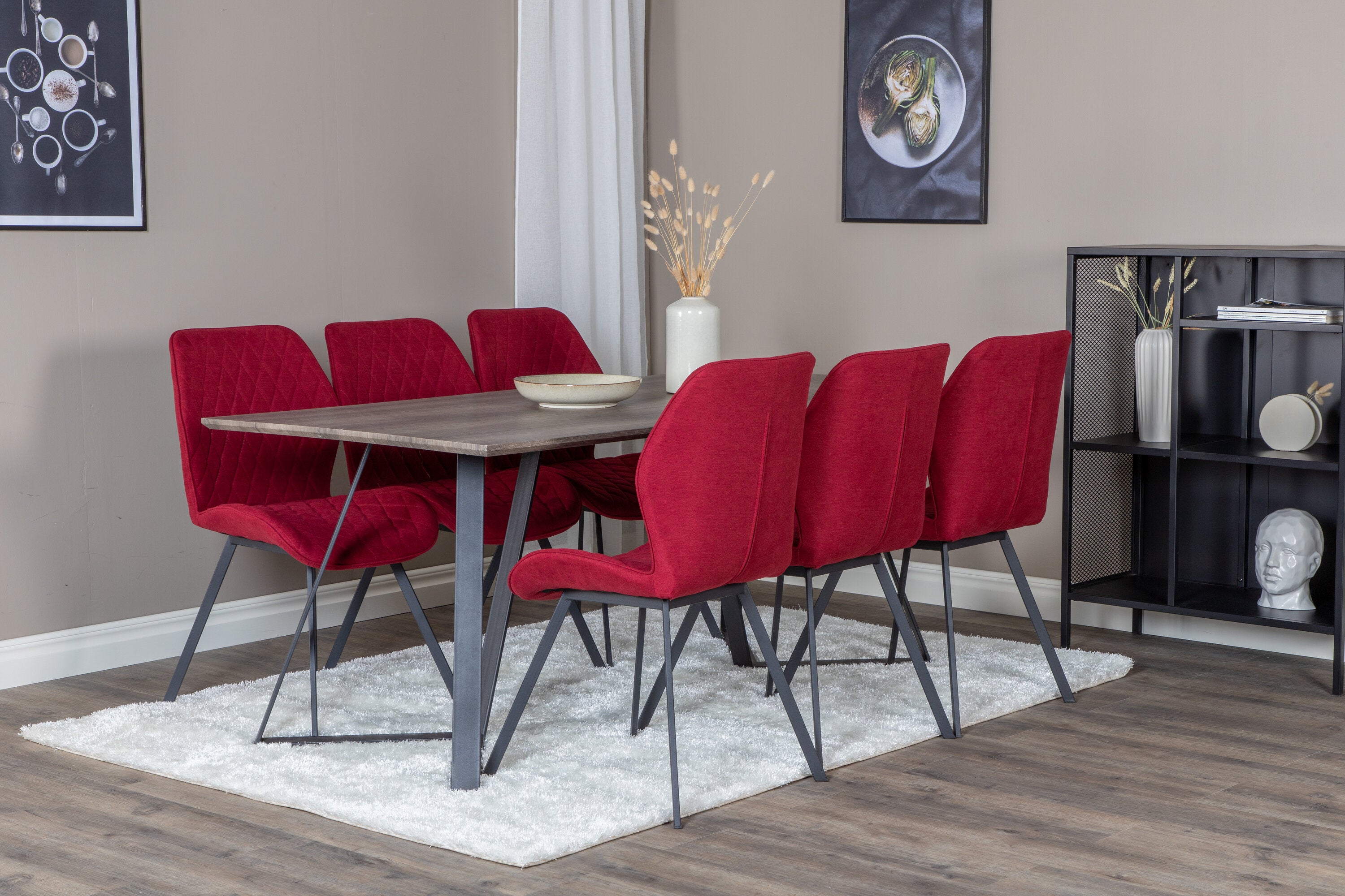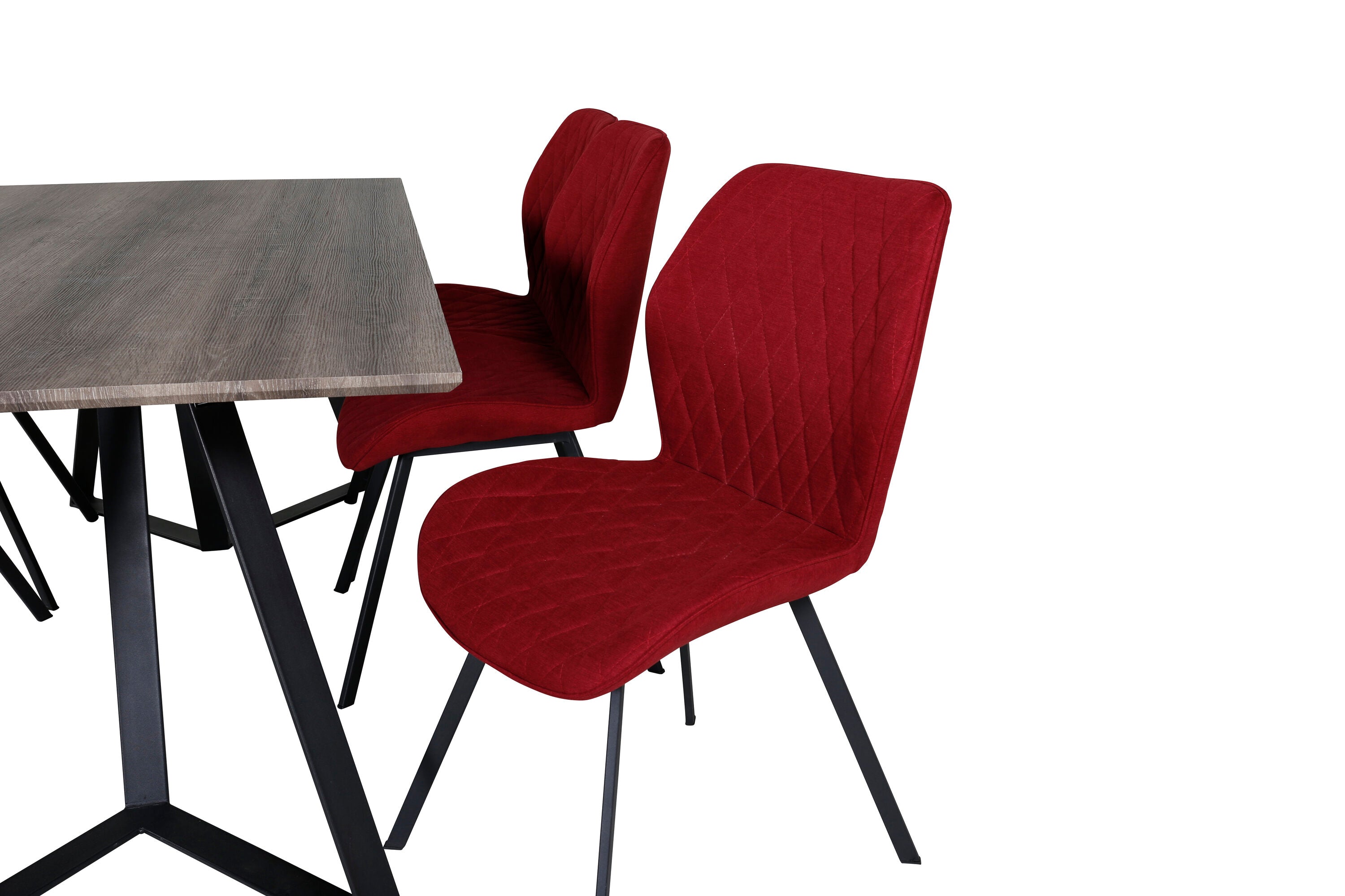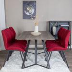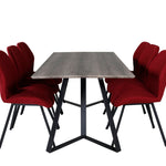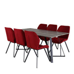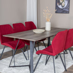 Jídelní stůl Marina - 180*90*H75 - Šedá / Černá + Jídelní židle Gemma - Černé nohy - Červená látka_6