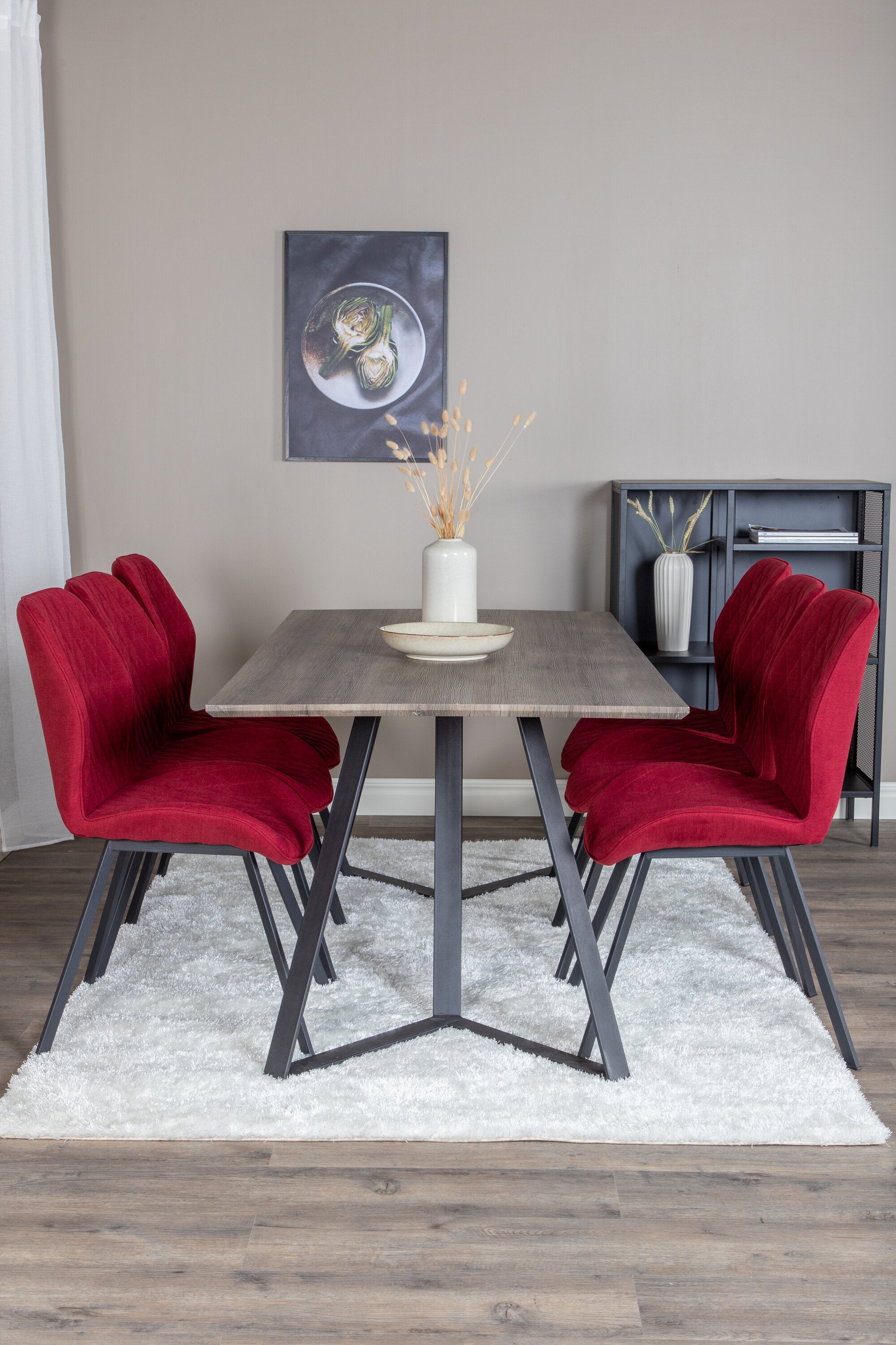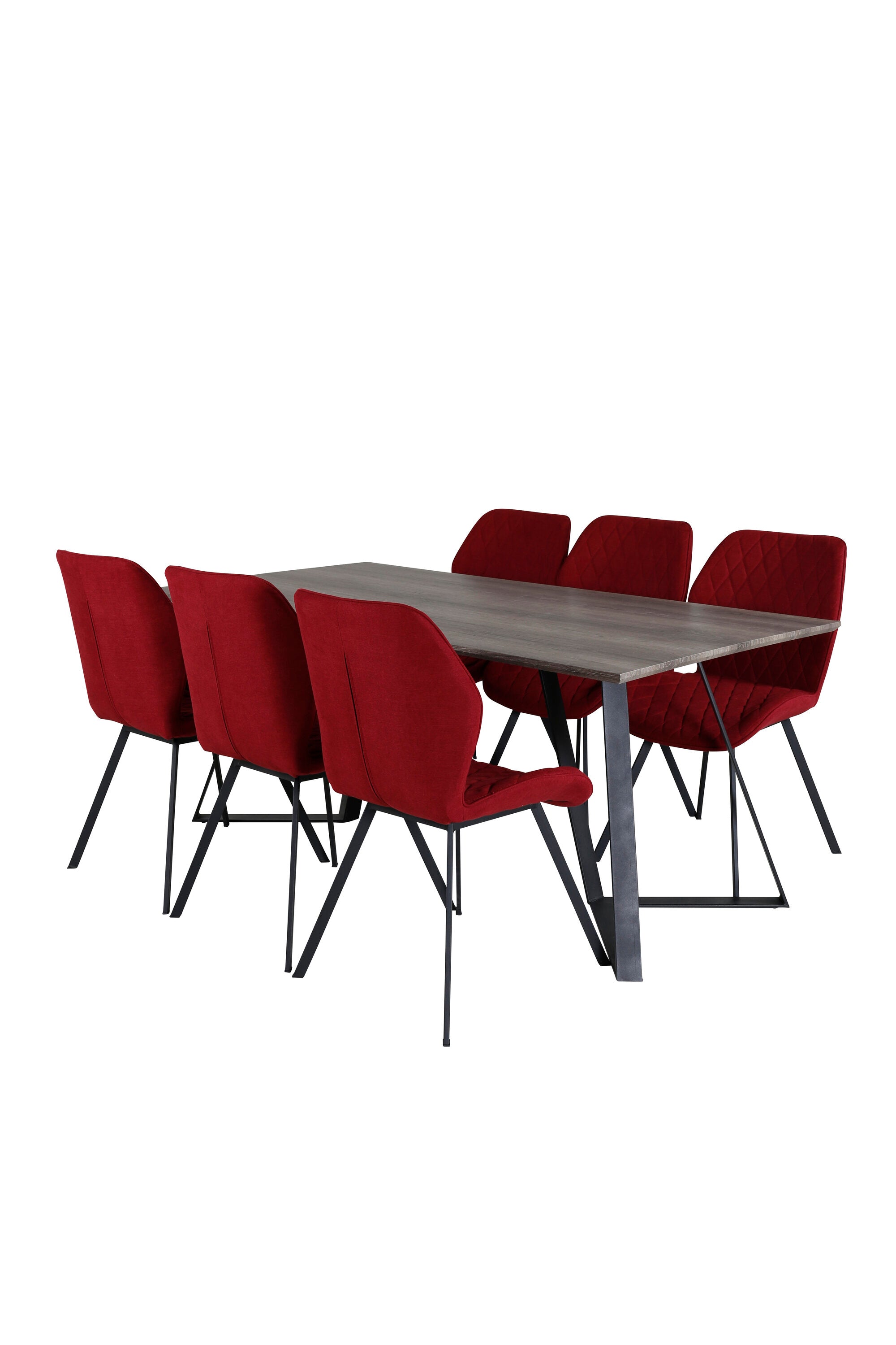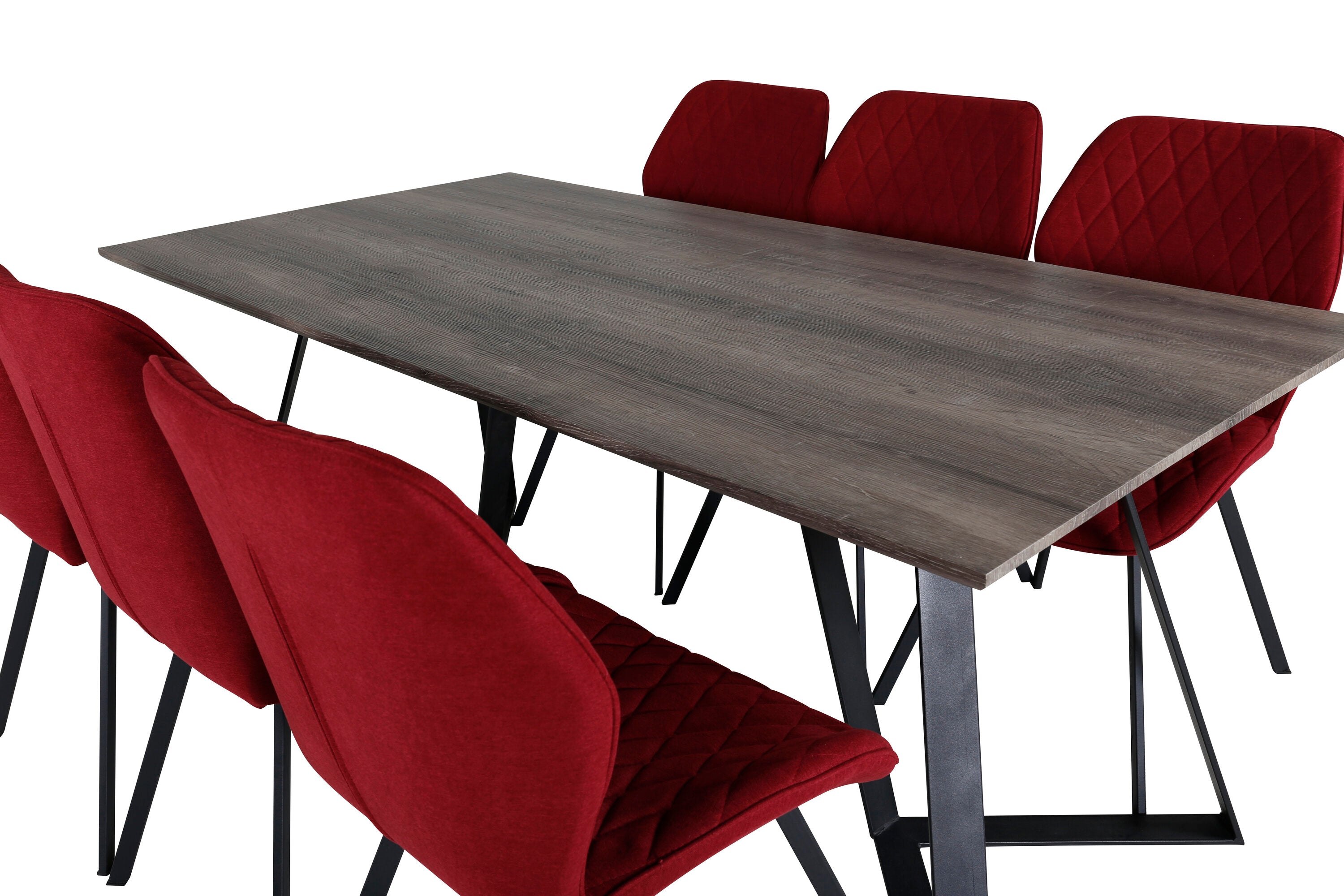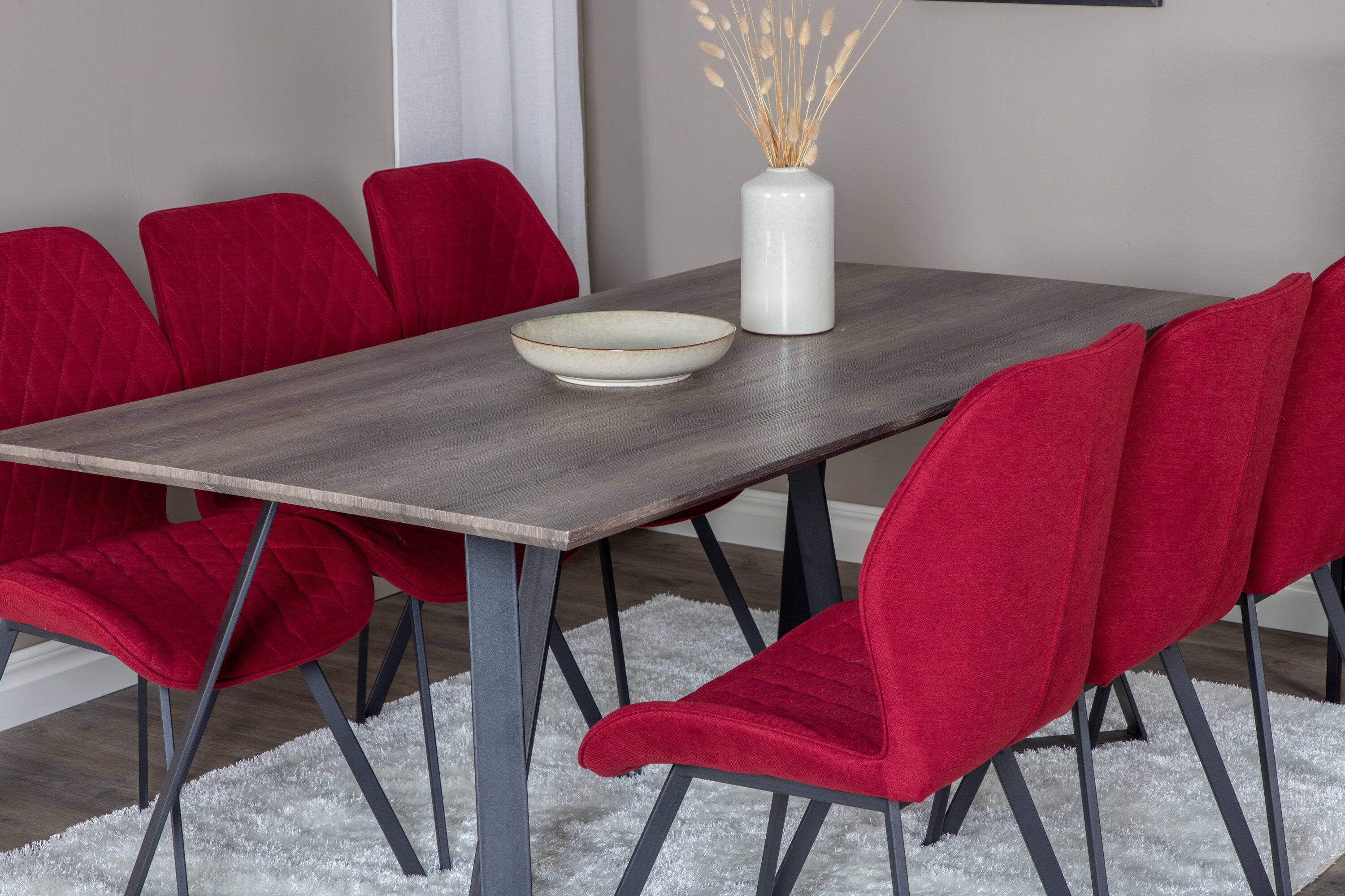 Jídelní stůl Marina - 180*90*H75 - Šedá / Černá + Jídelní židle Gemma - Černé nohy - Červená látka_6