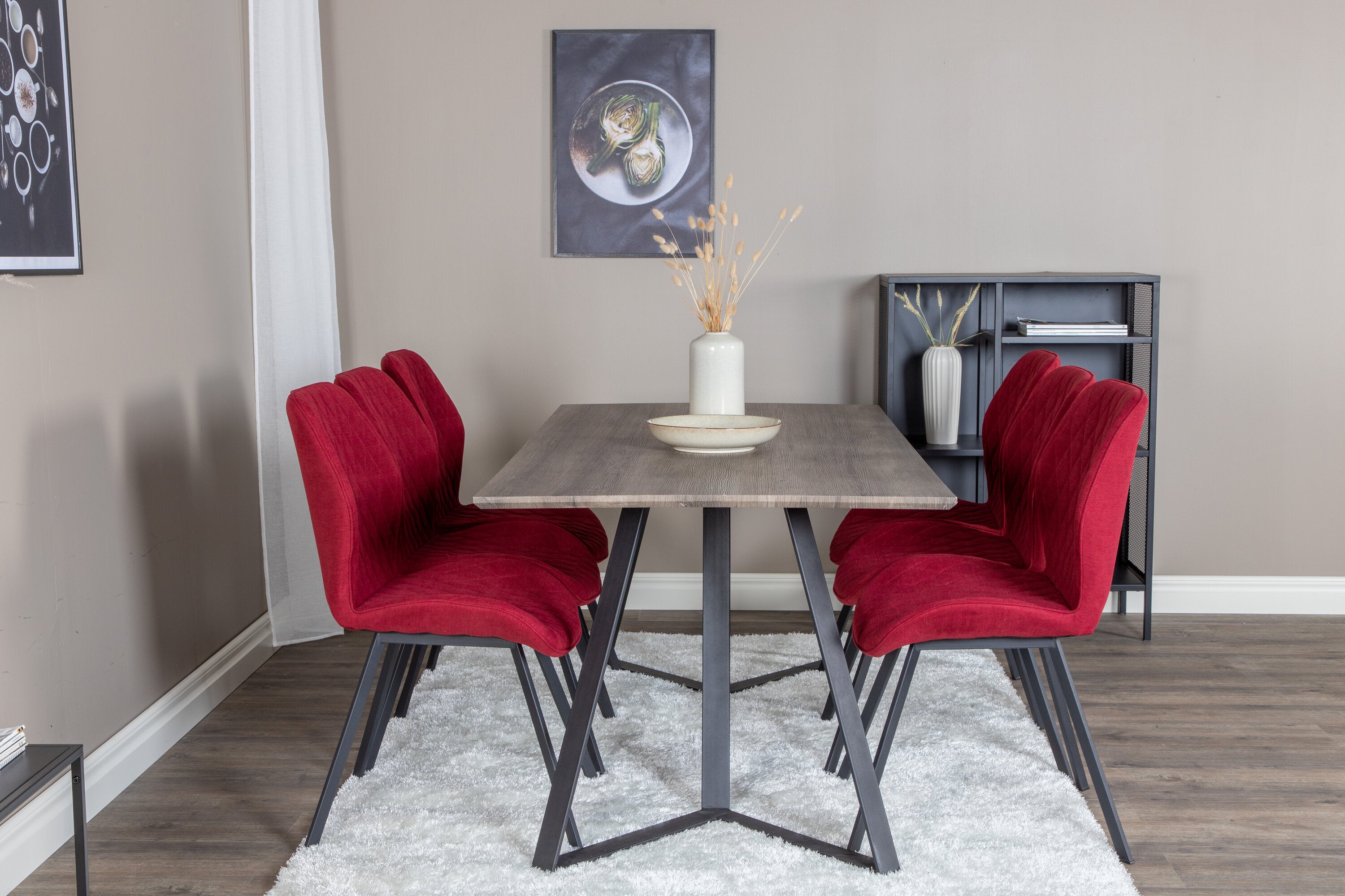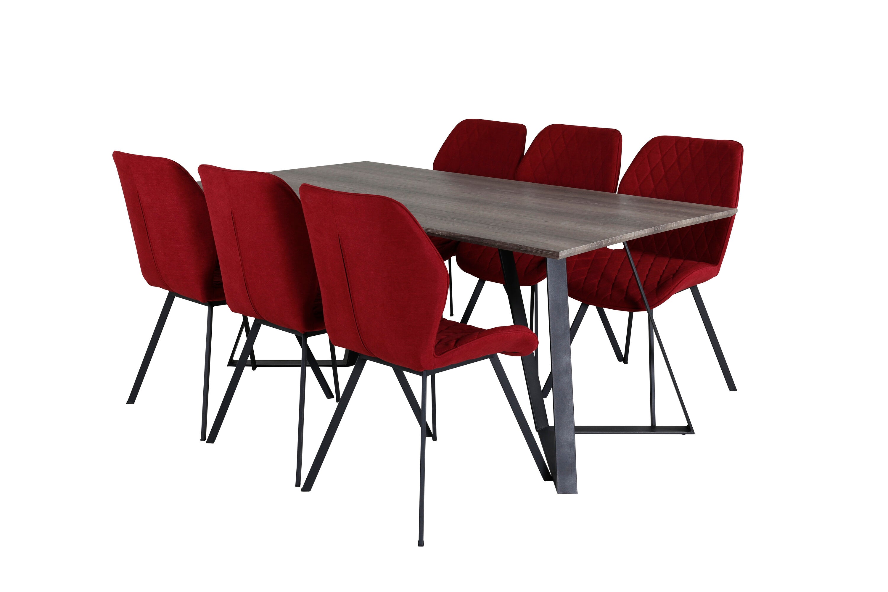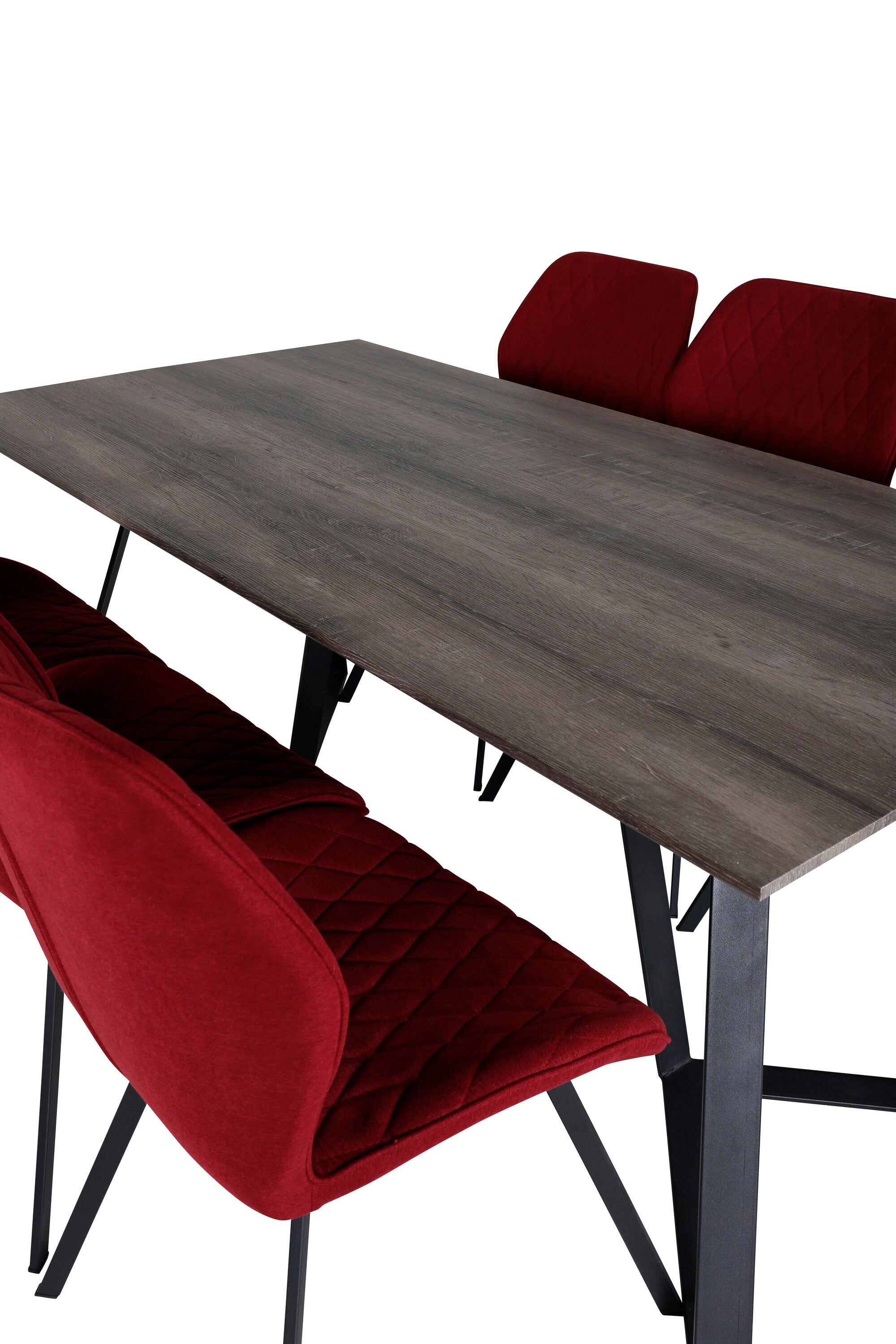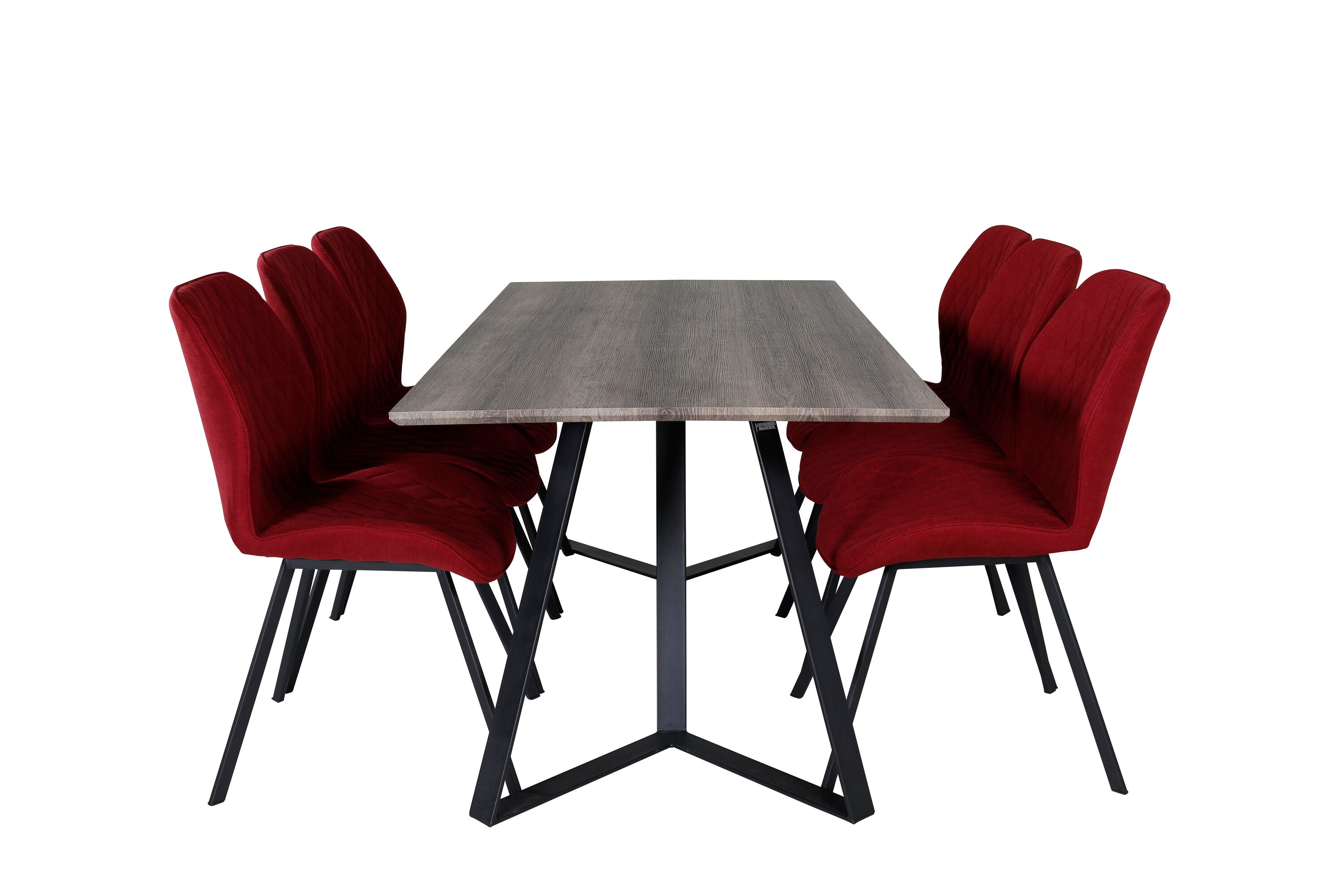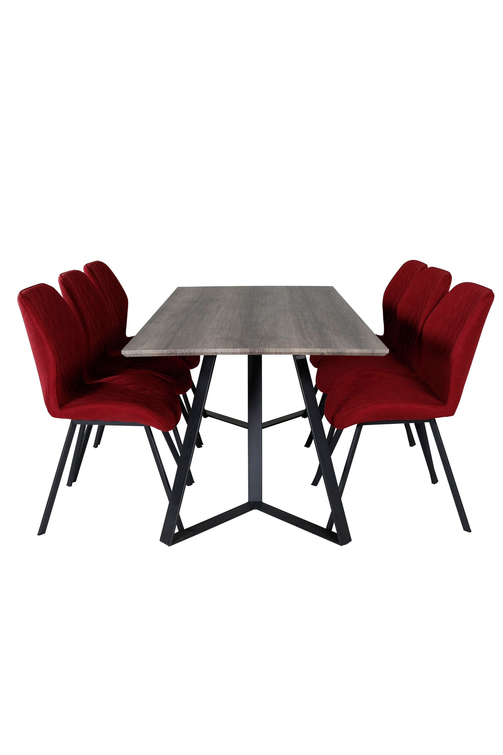 Jídelní stůl Marina - 180*90*H75 - Šedá / Černá + Jídelní židle Gemma - Černé nohy - Červená látka_6