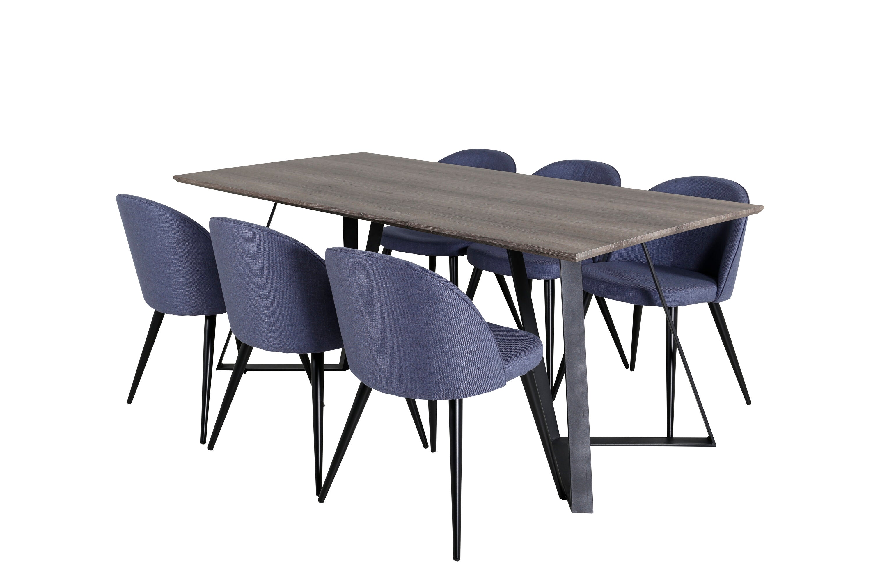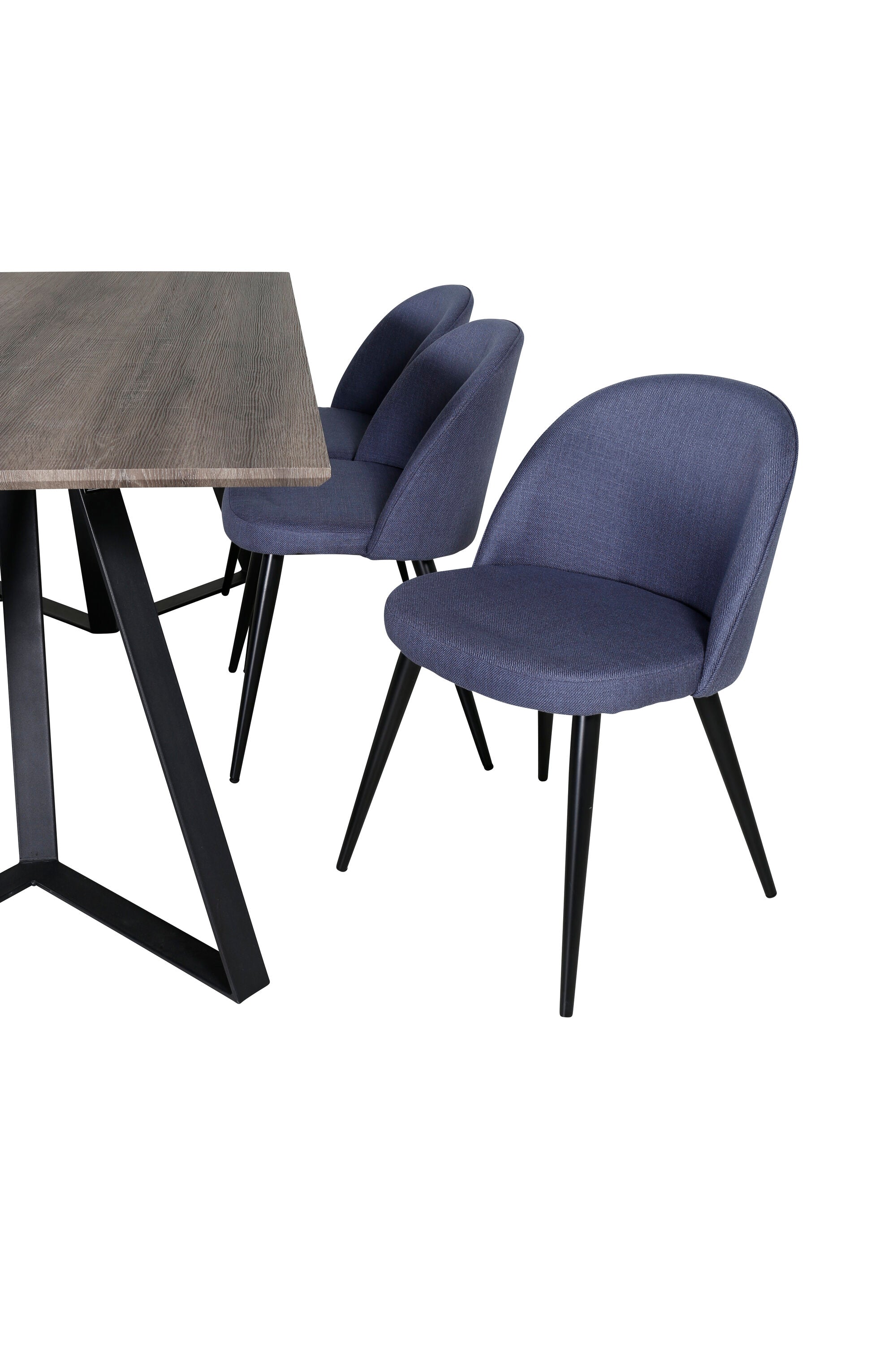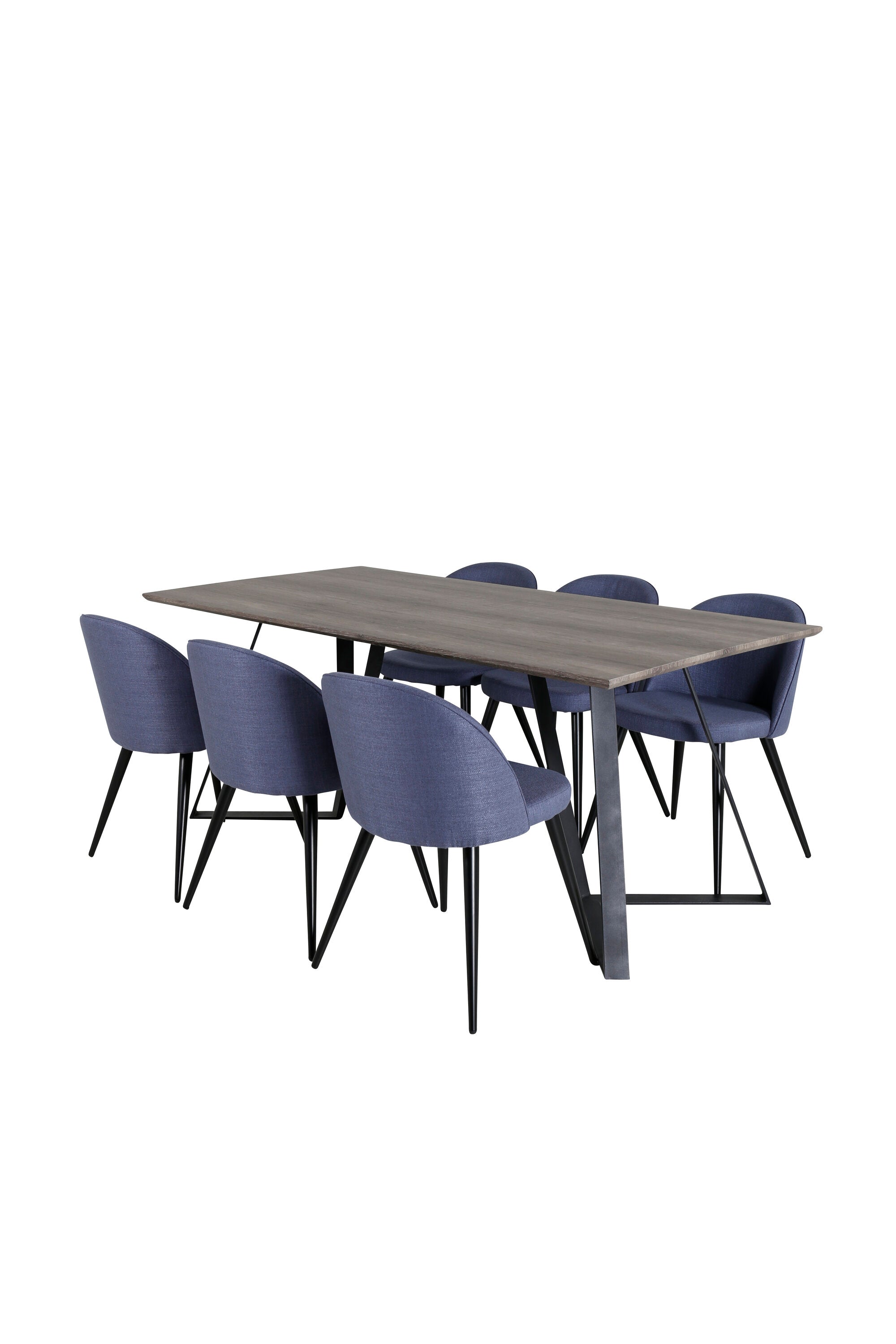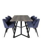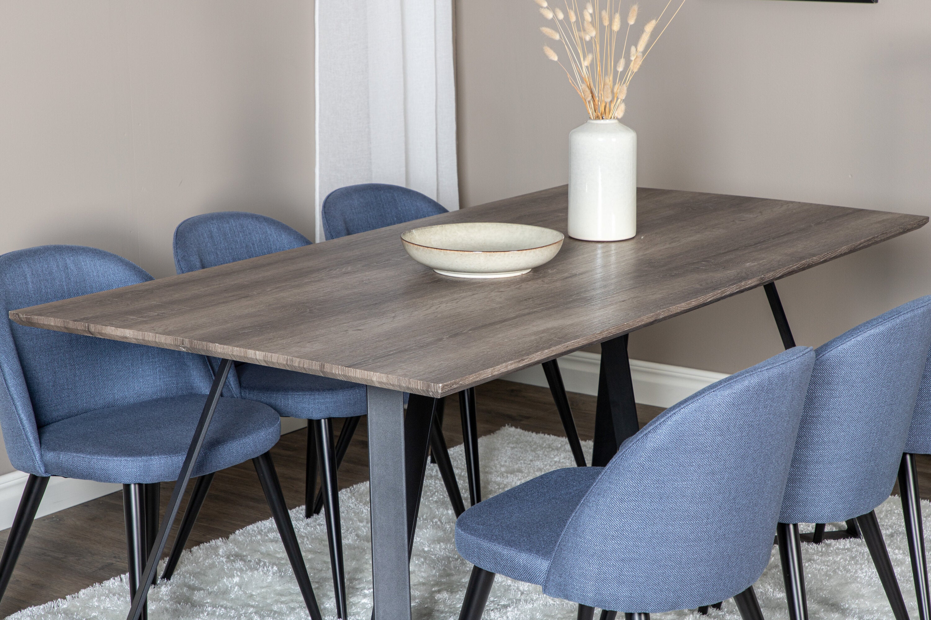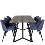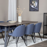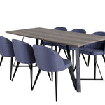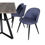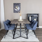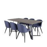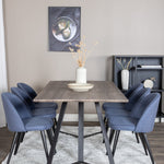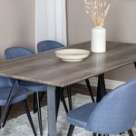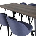 Jídelní stůl Marina - 180*90*H75 - Šedá / Černá + Sametová jídelní židle - Černé nohy - Modrá látka_6