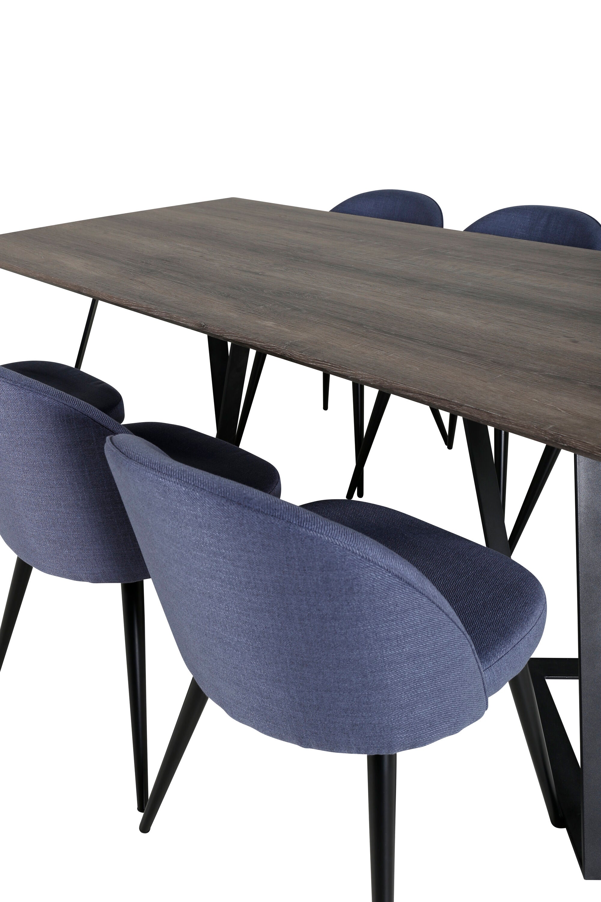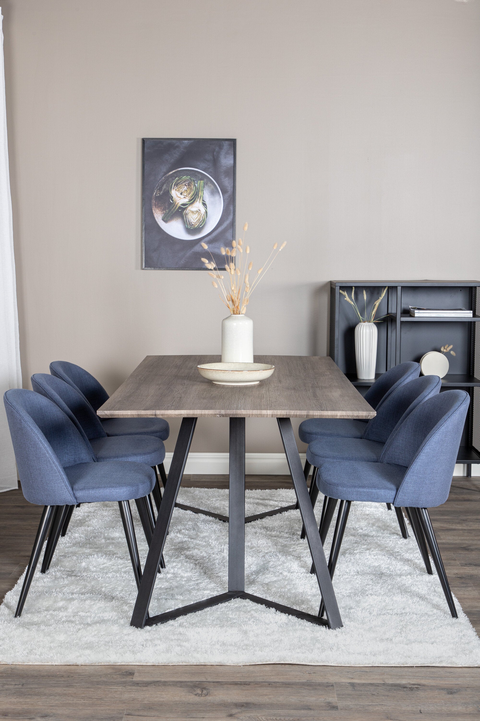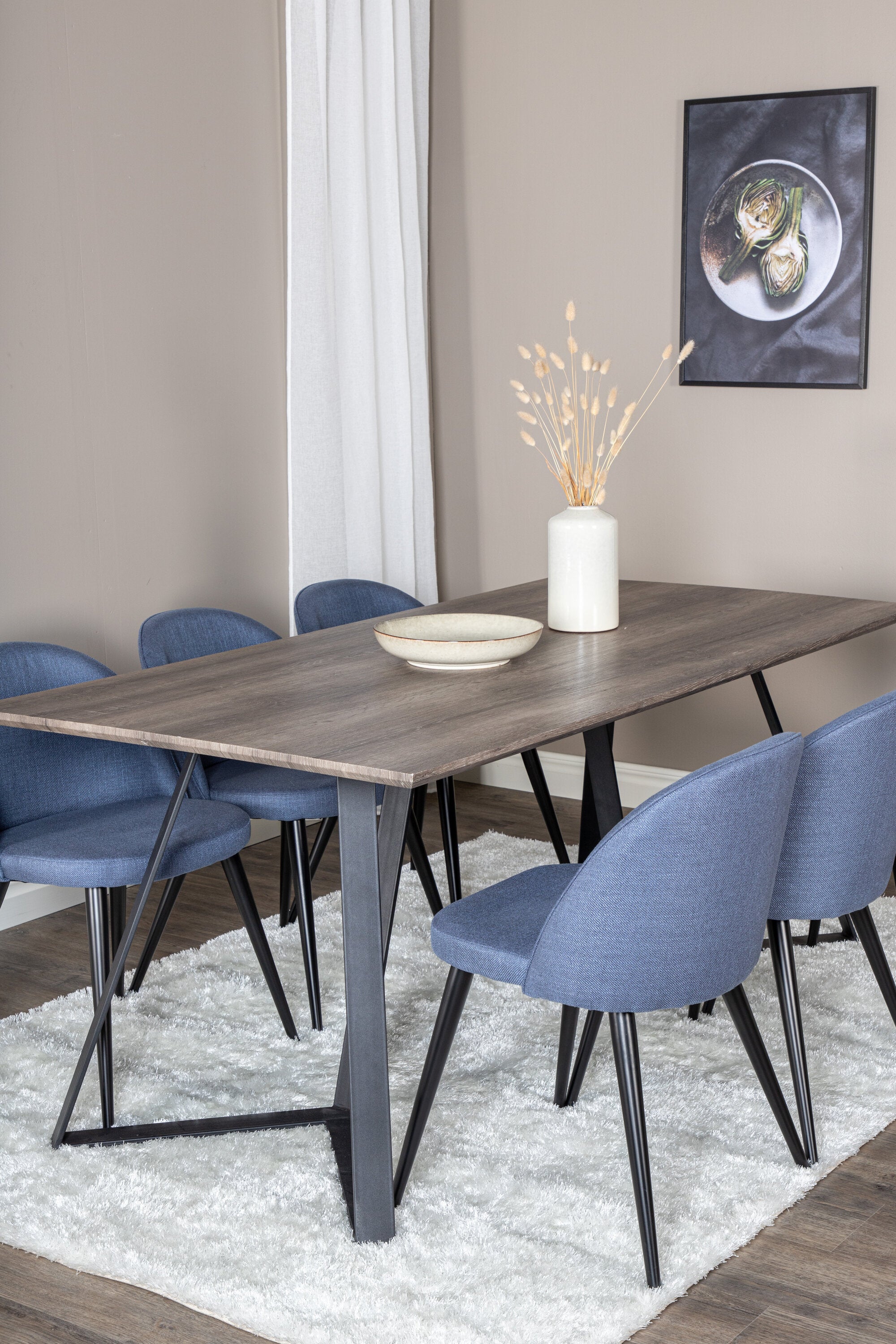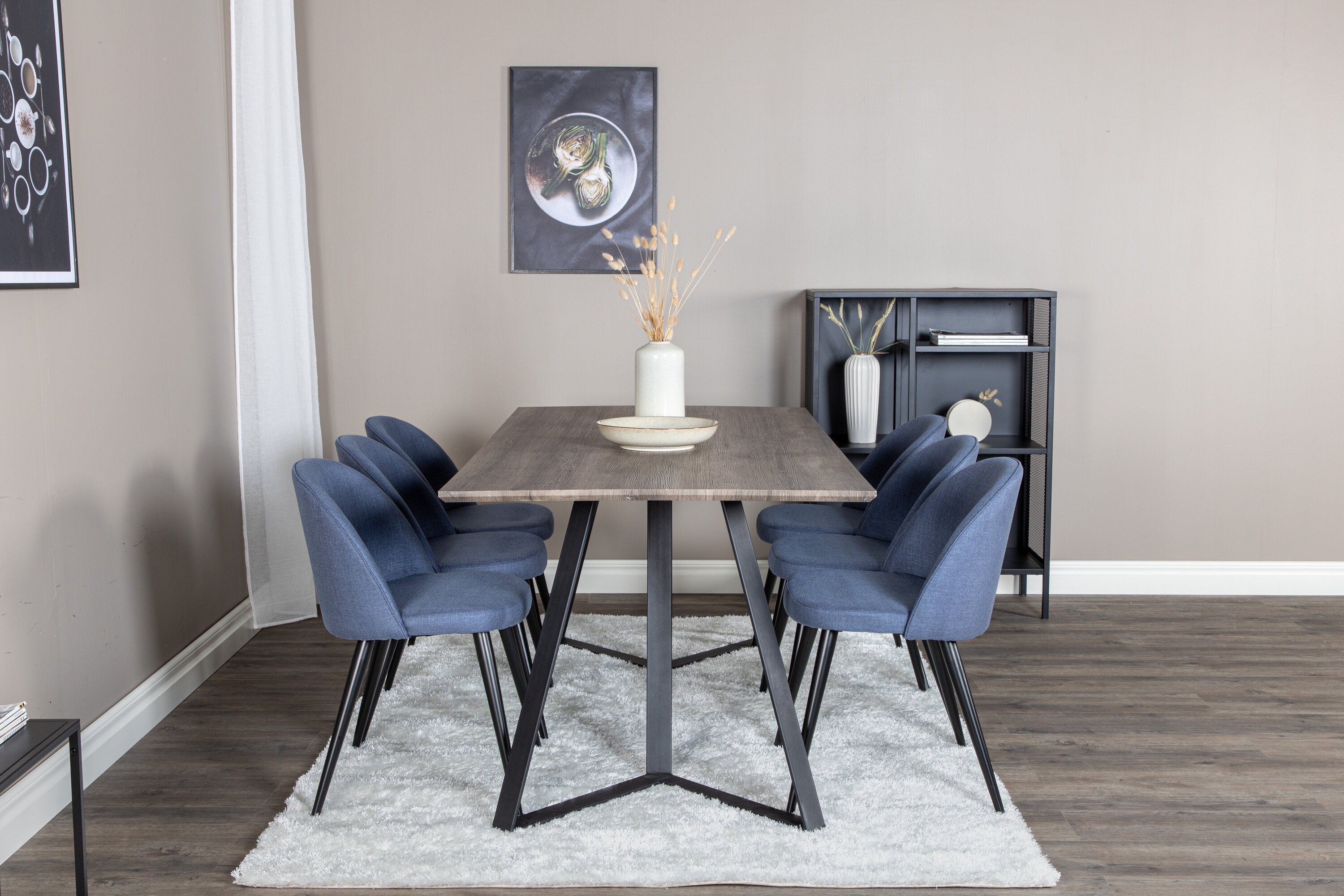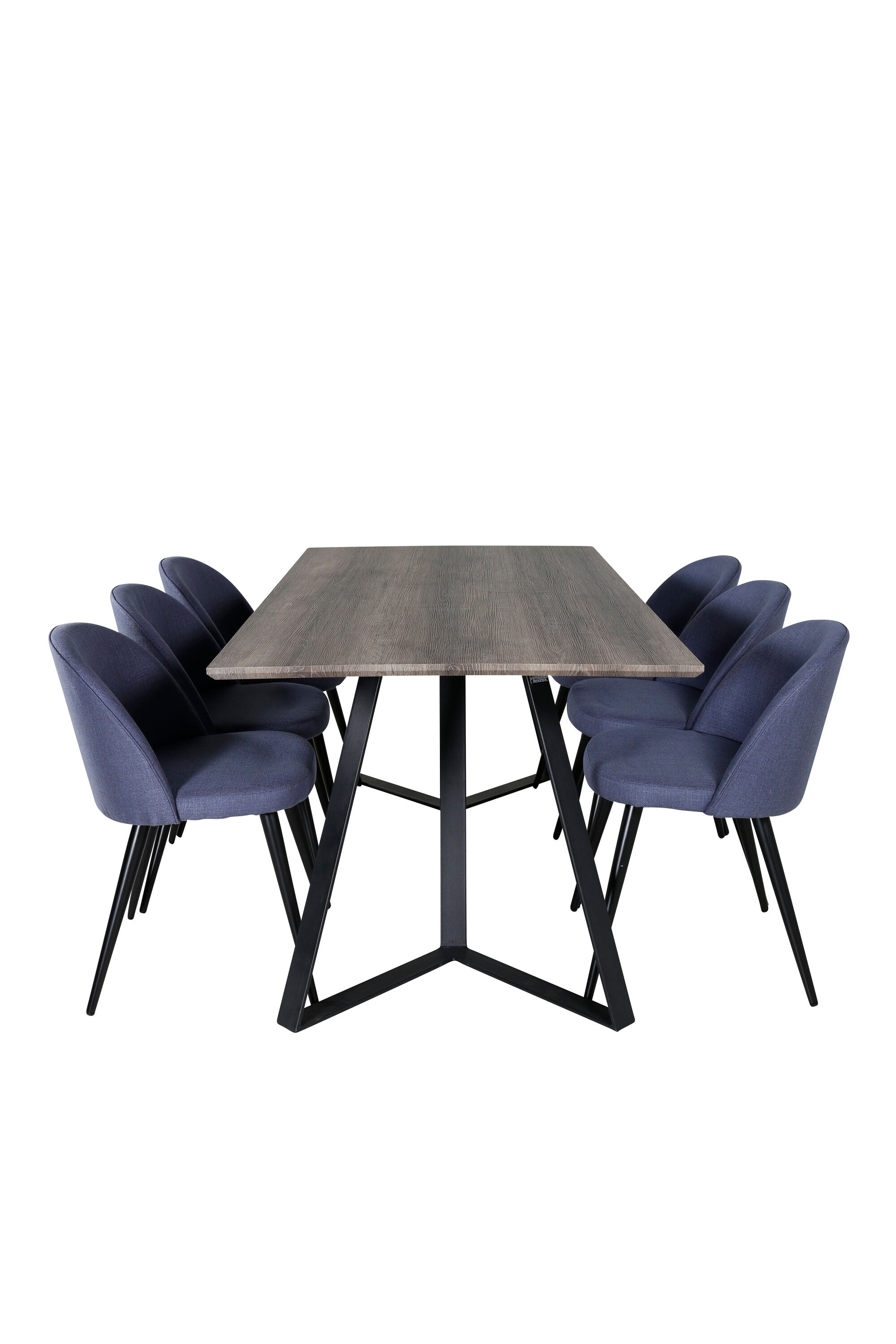 Jídelní stůl Marina - 180*90*H75 - Šedá / Černá + Sametová jídelní židle - Černé nohy - Modrá látka_6