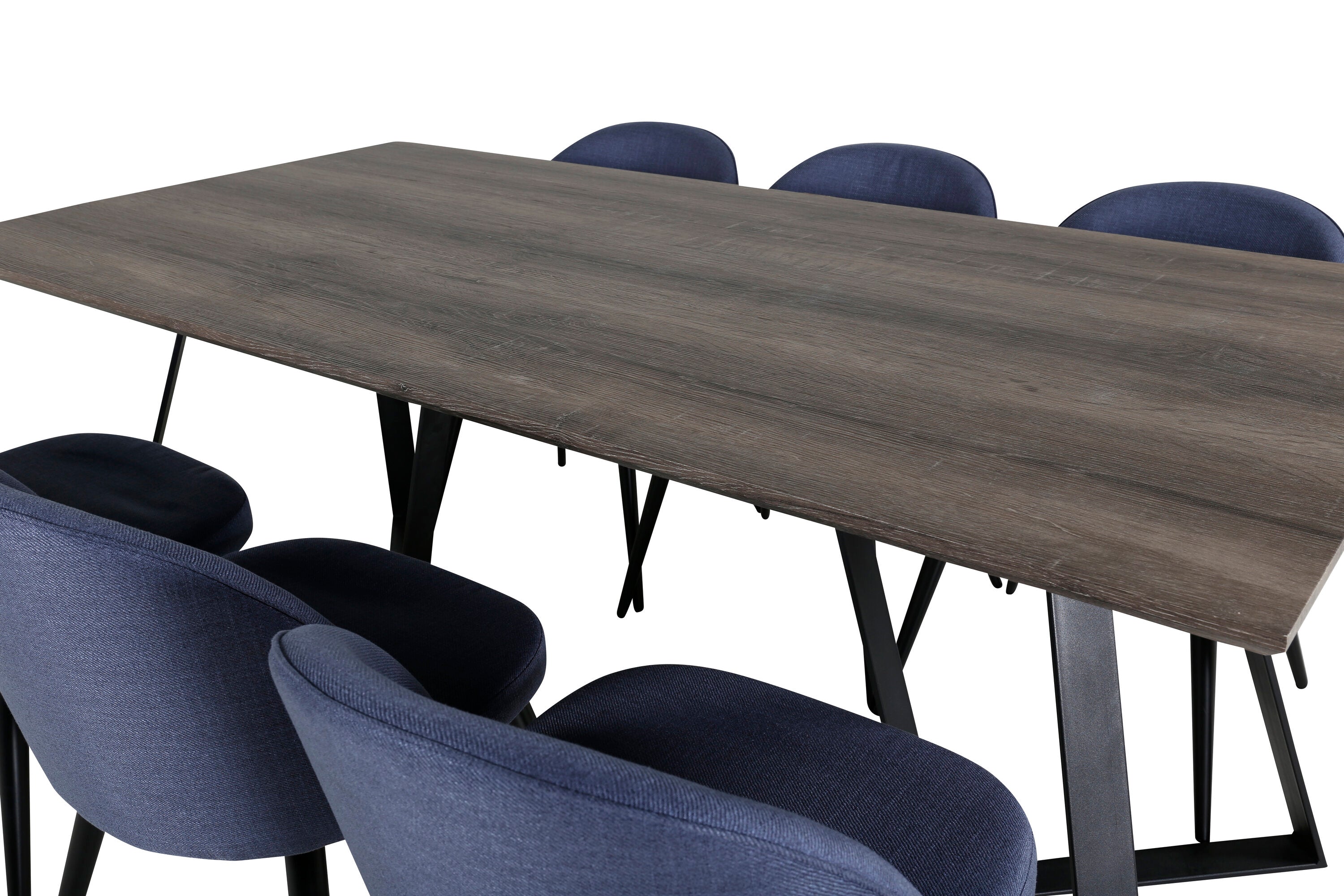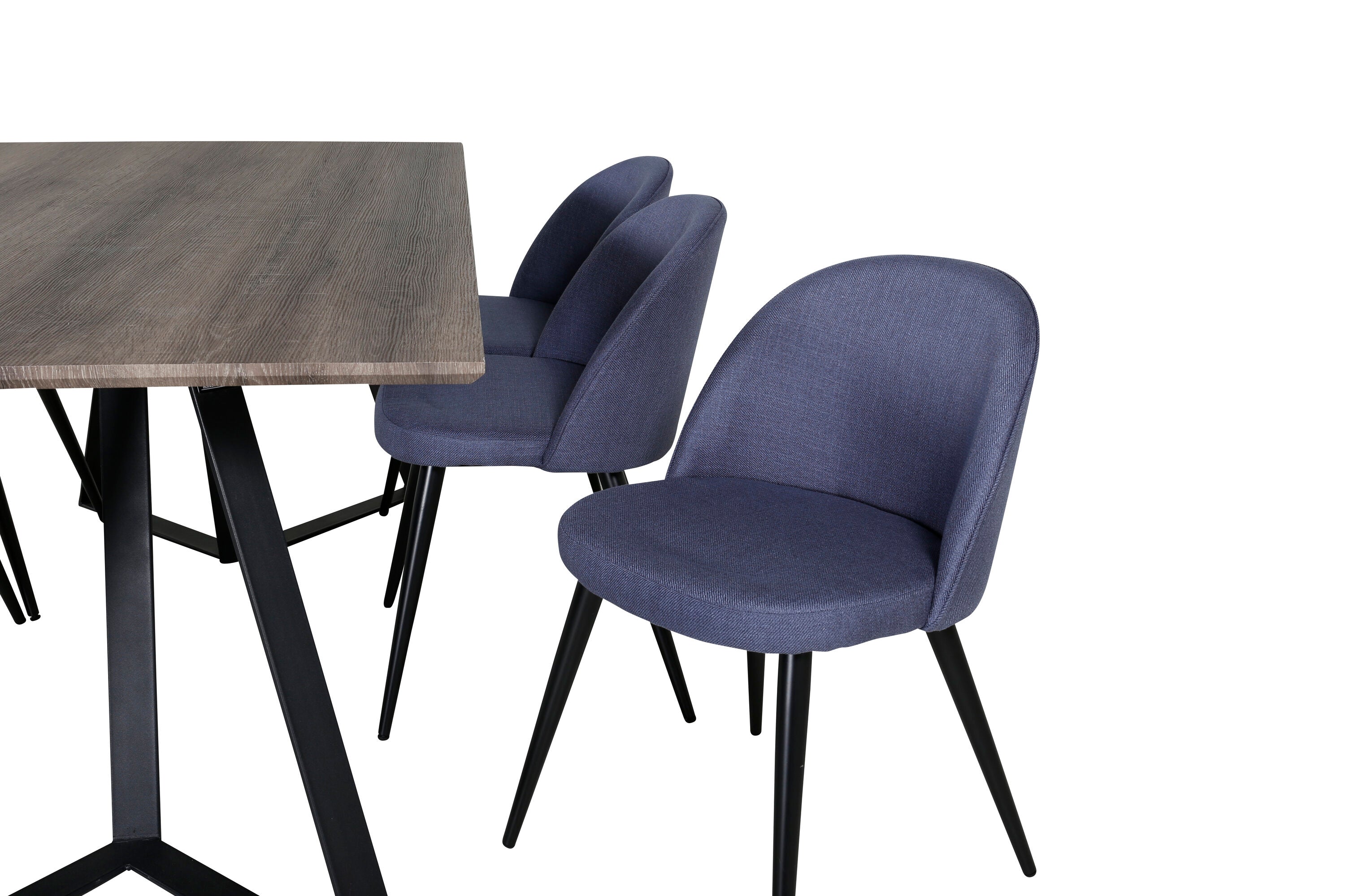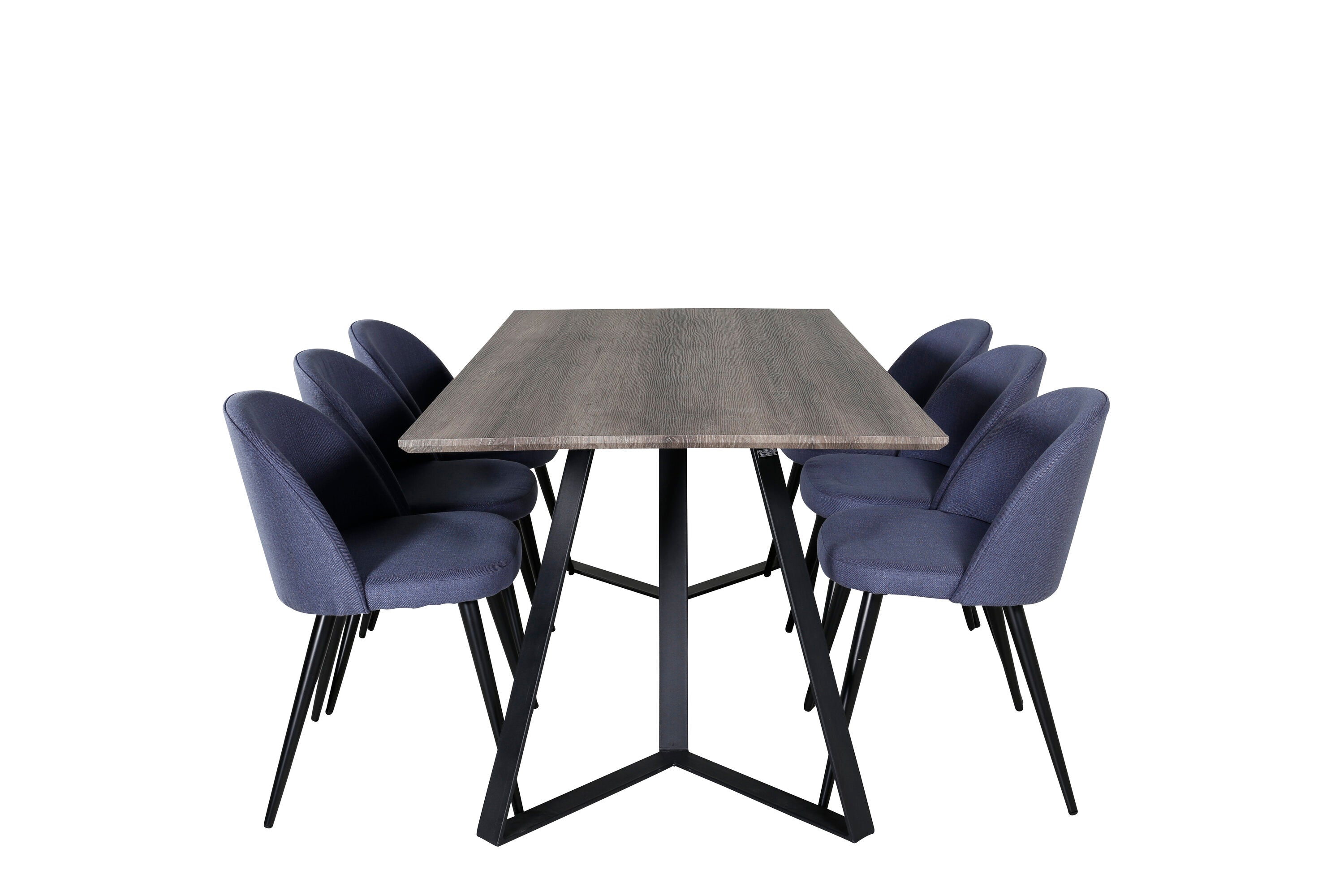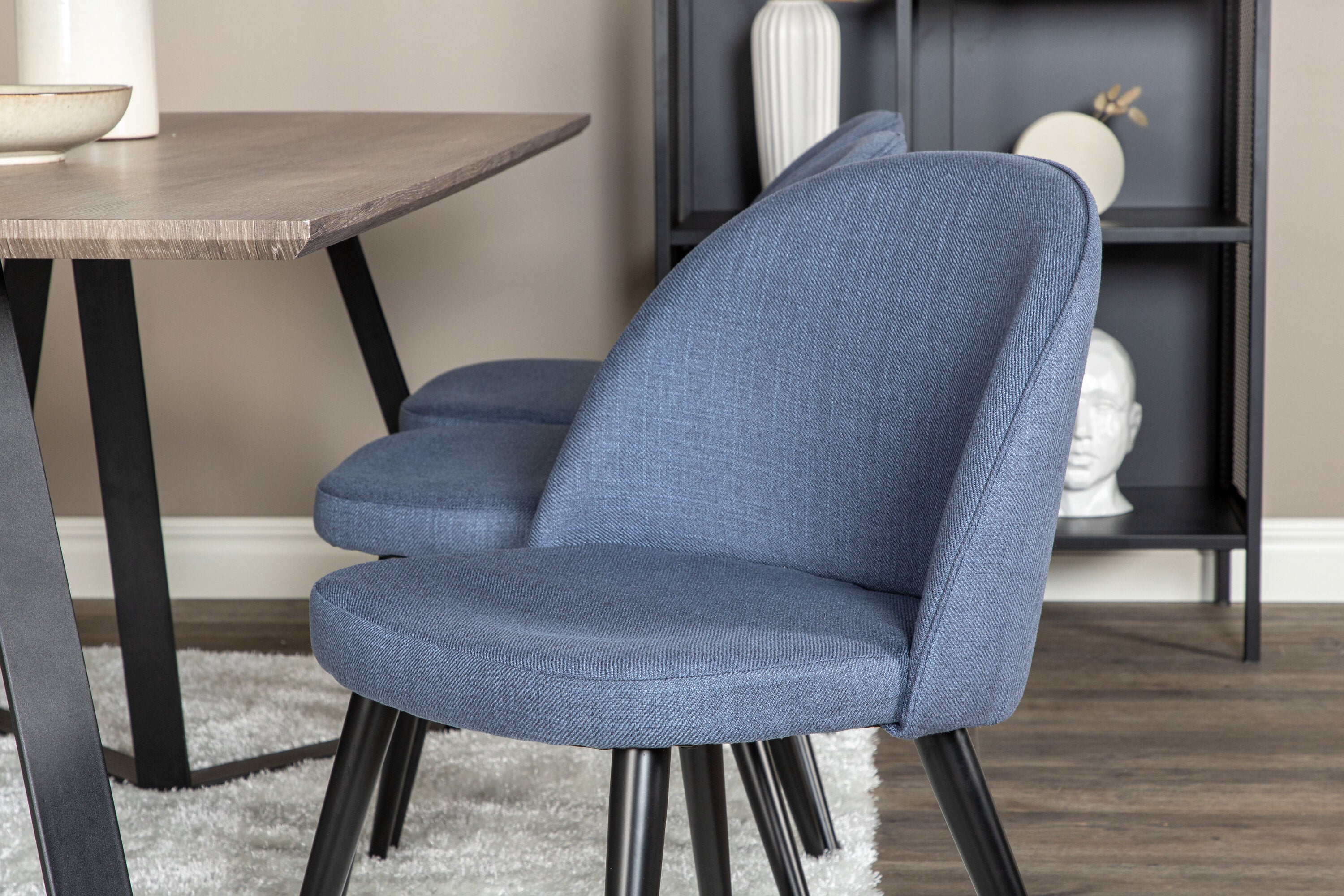 Jídelní stůl Marina - 180*90*H75 - Šedá / Černá + Sametová jídelní židle - Černé nohy - Modrá látka_6
