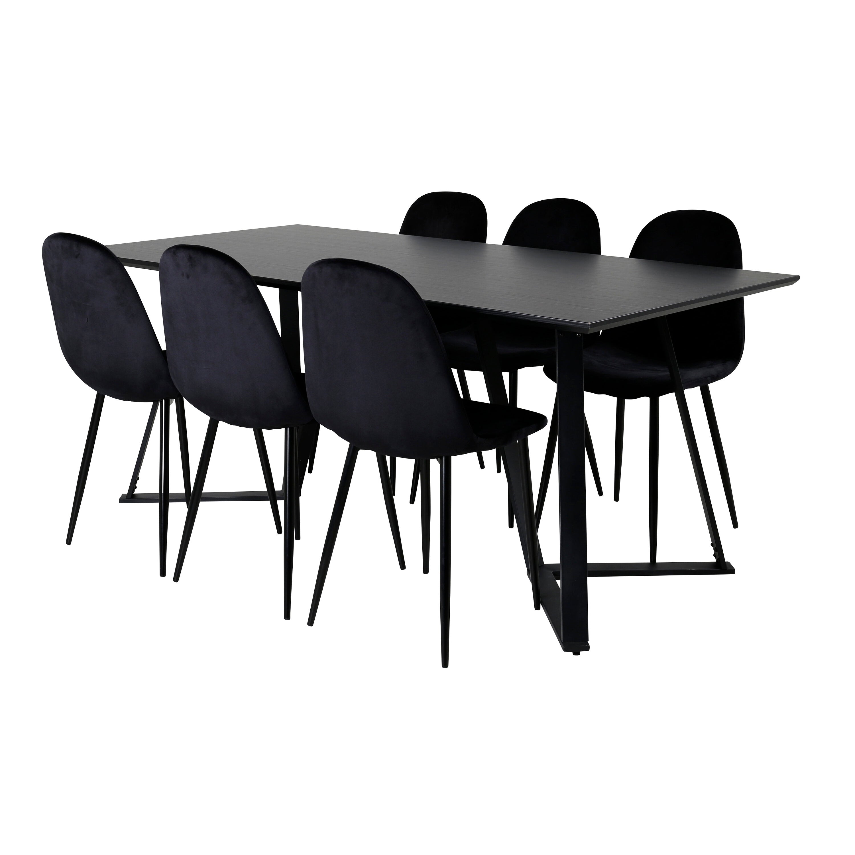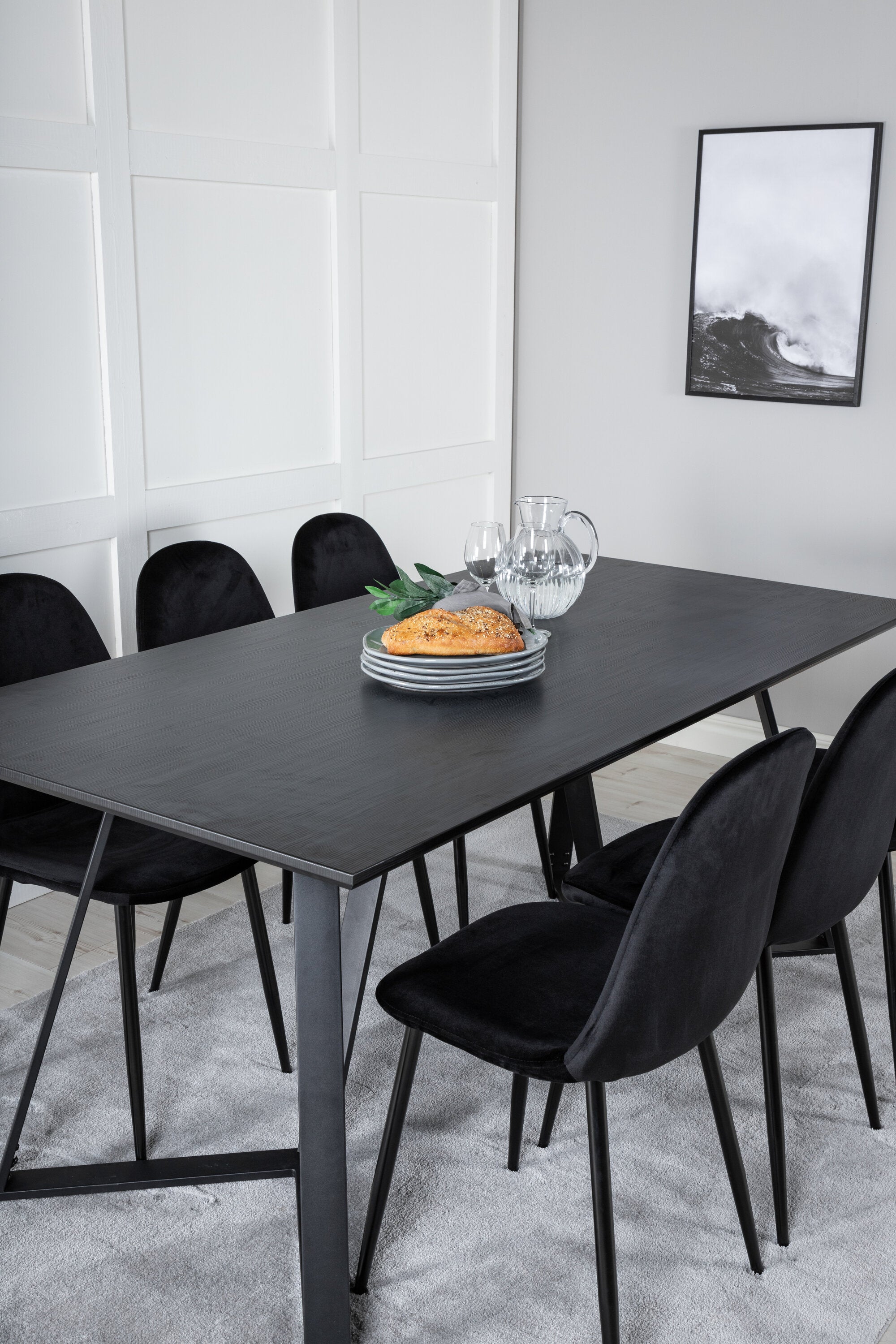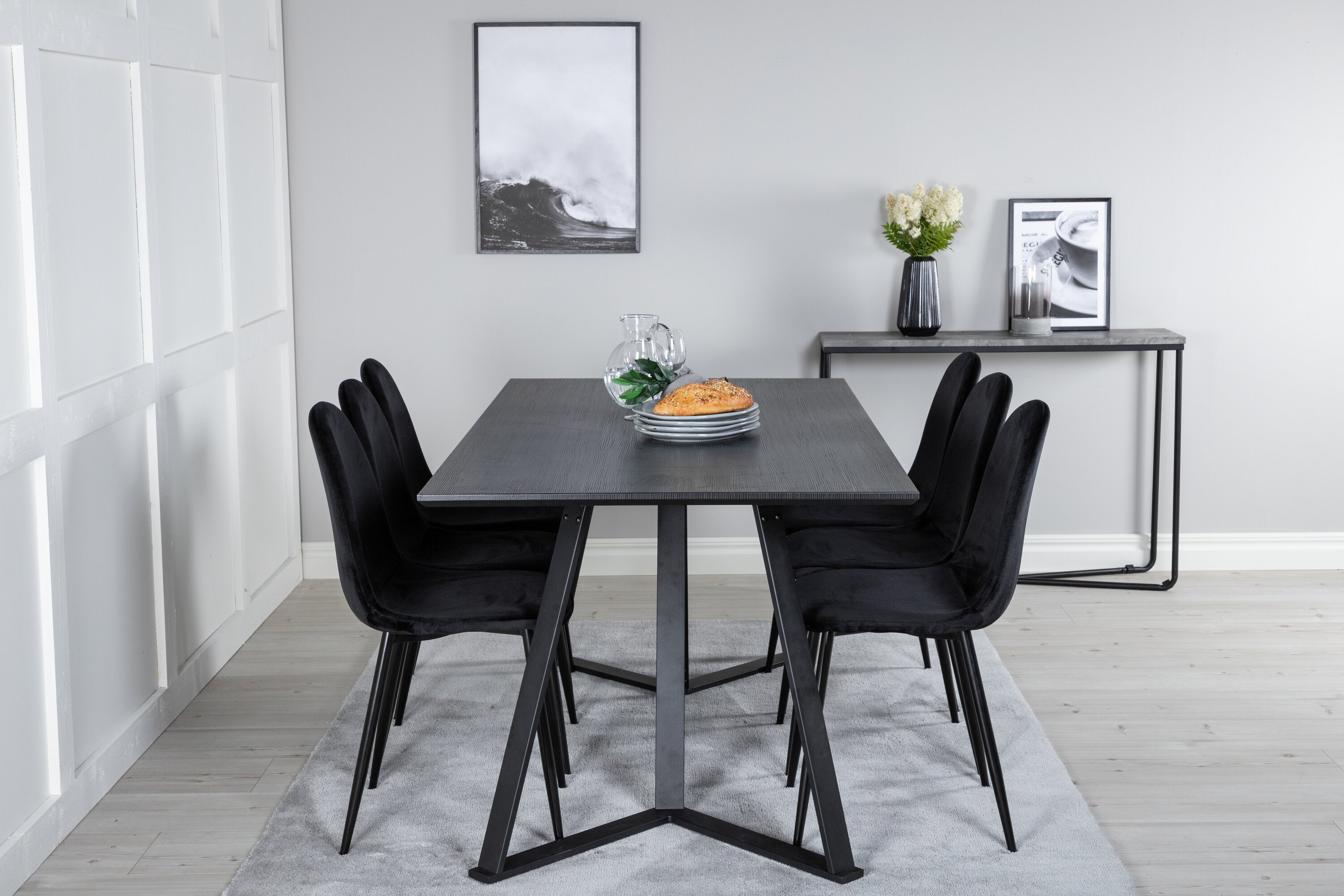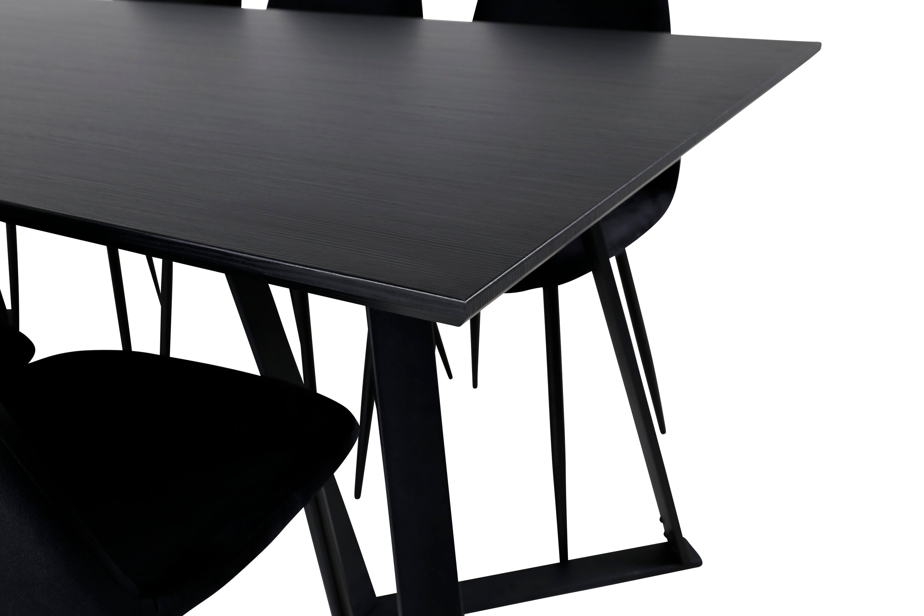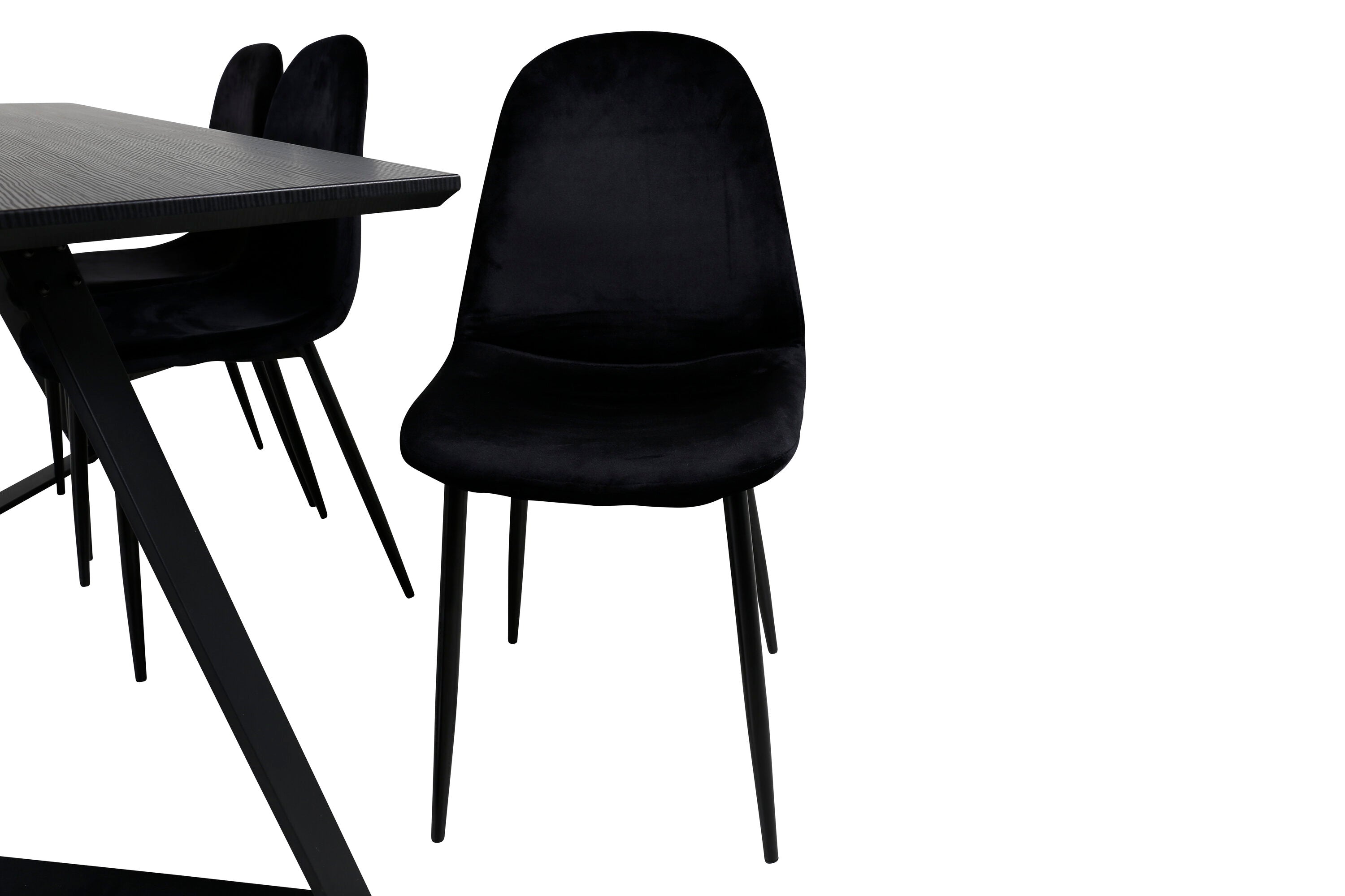 Jídelní stůl Marina - černá deska / černé nohy + jídelní židle Polar - černé nohy /