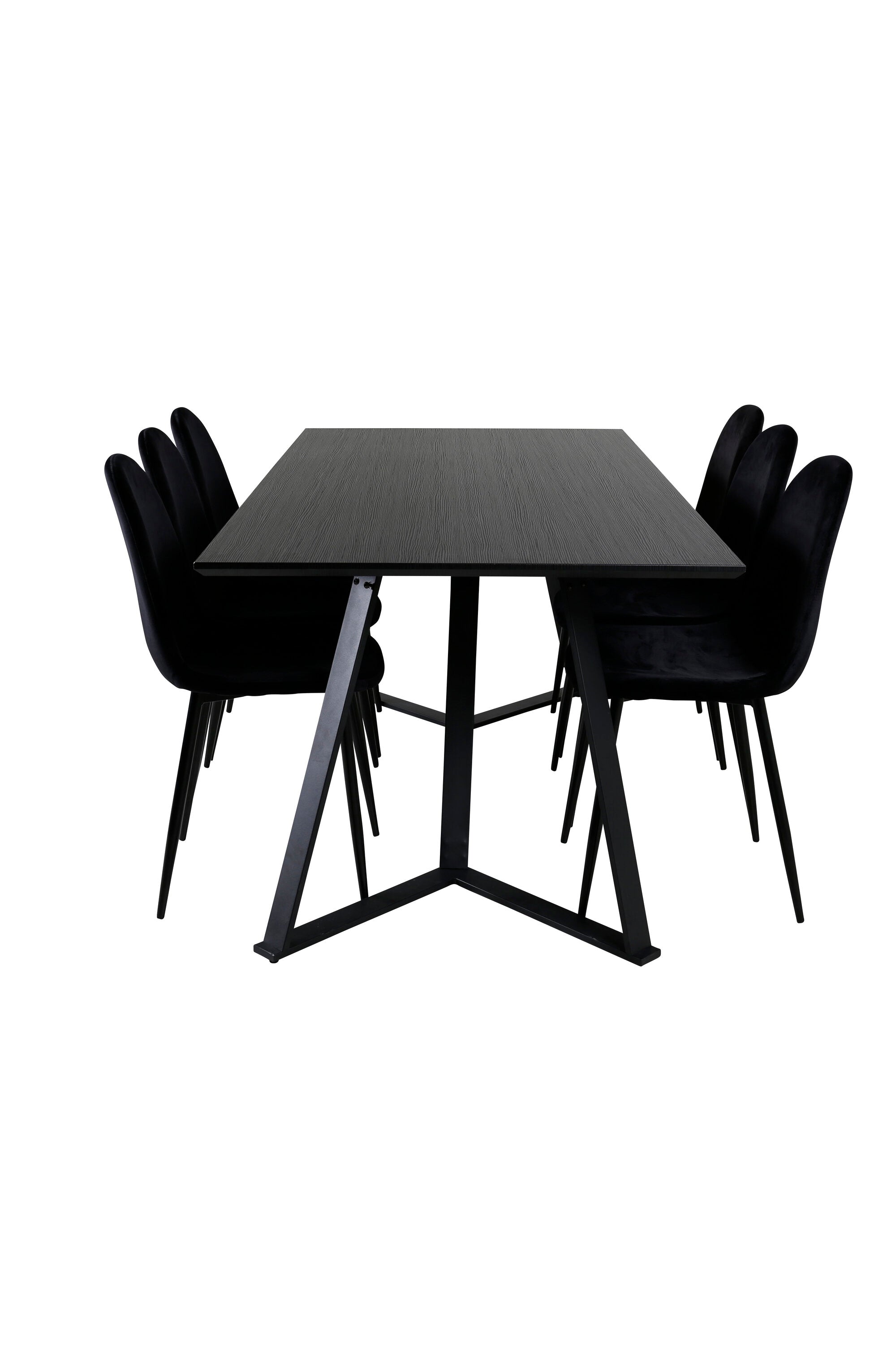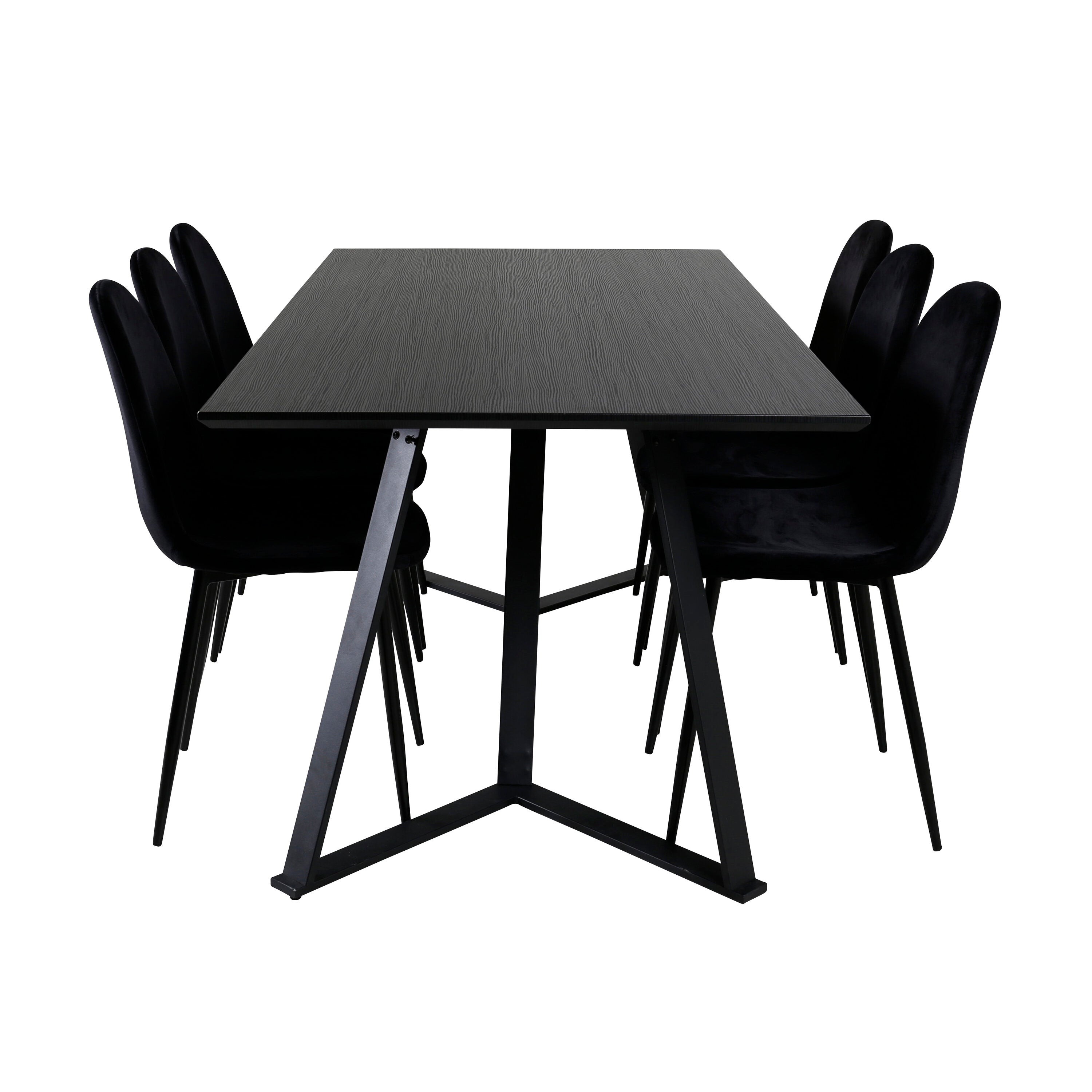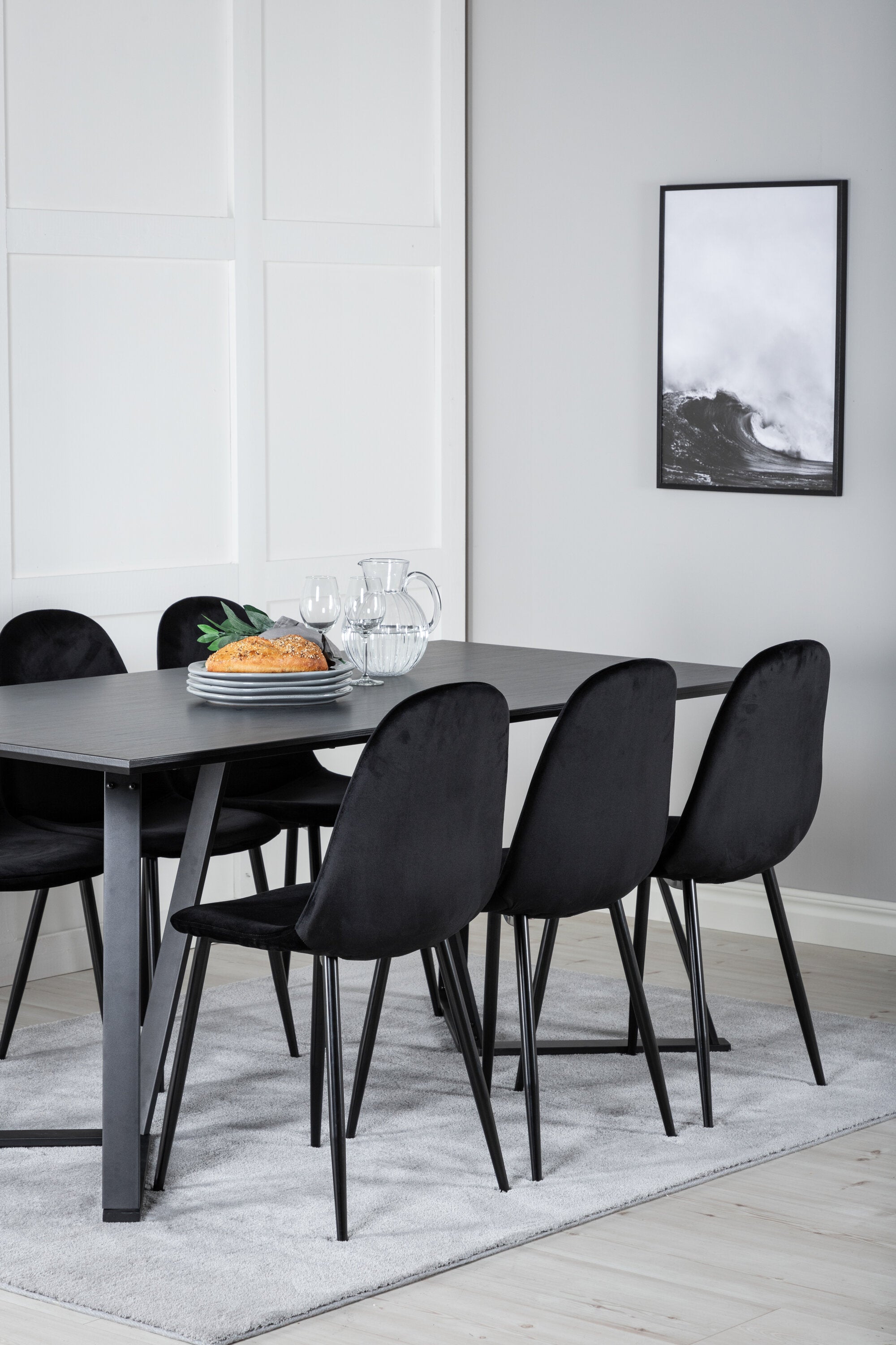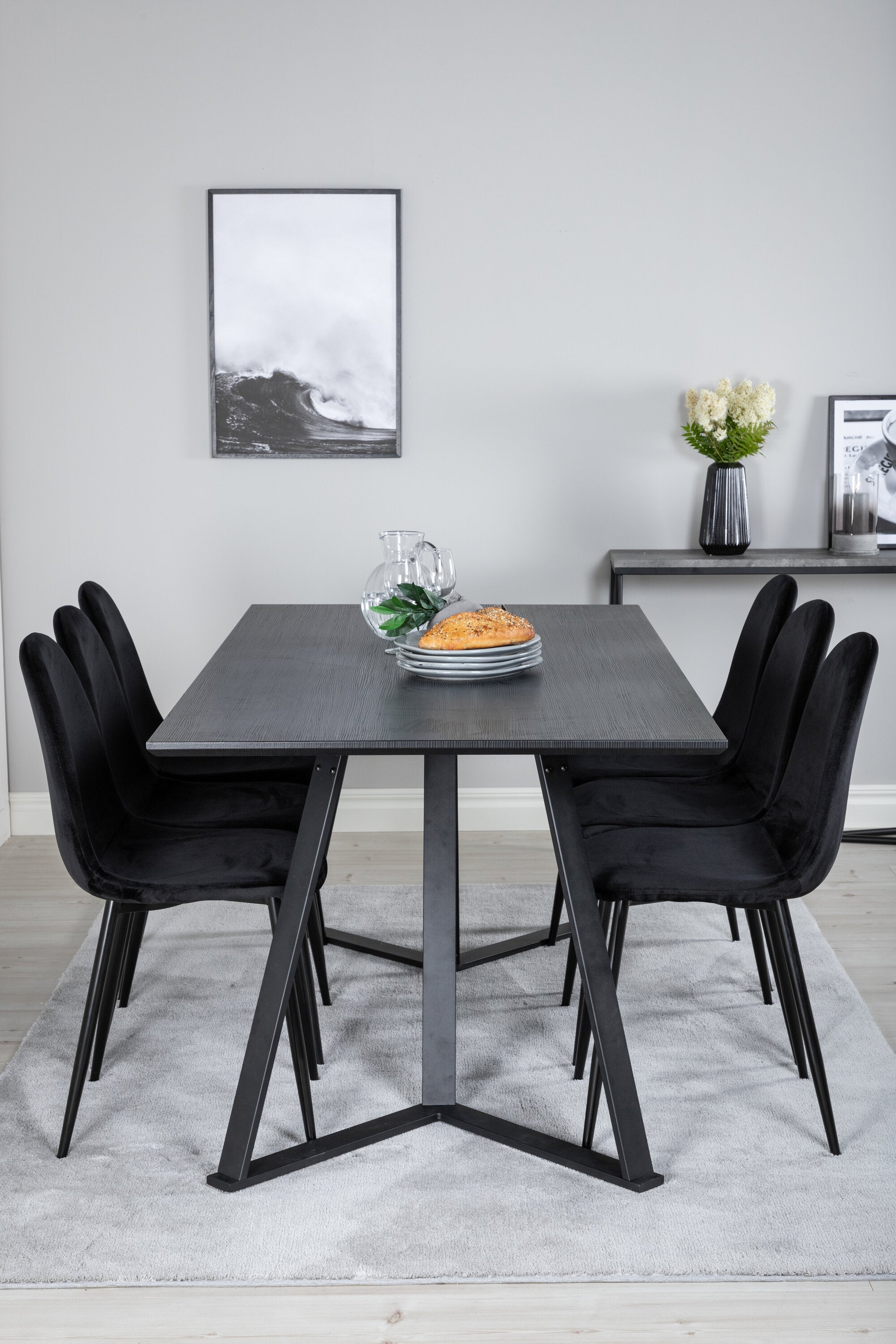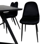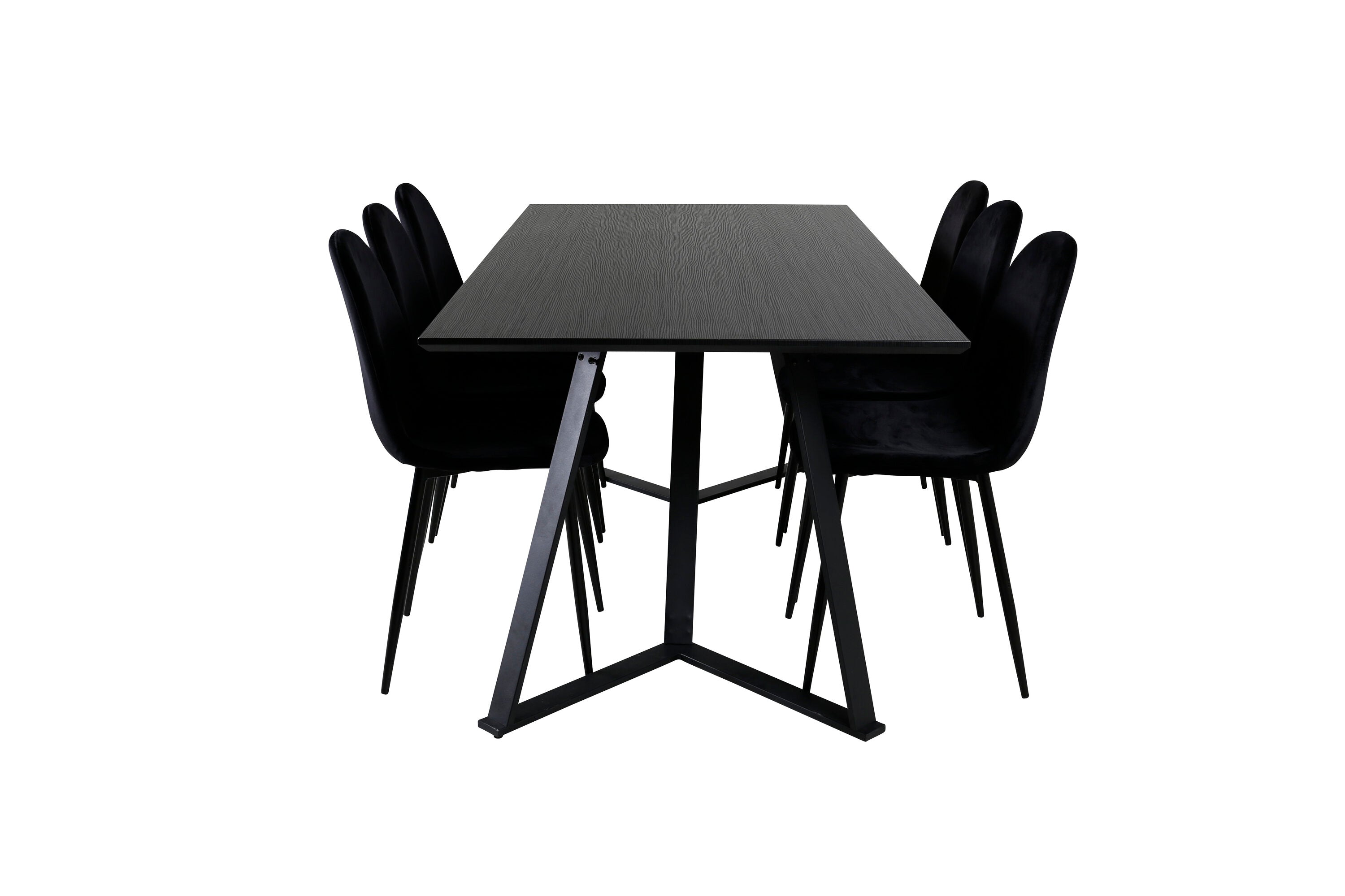 Jídelní stůl Marina - černá deska / černé nohy + jídelní židle Polar - černé nohy /