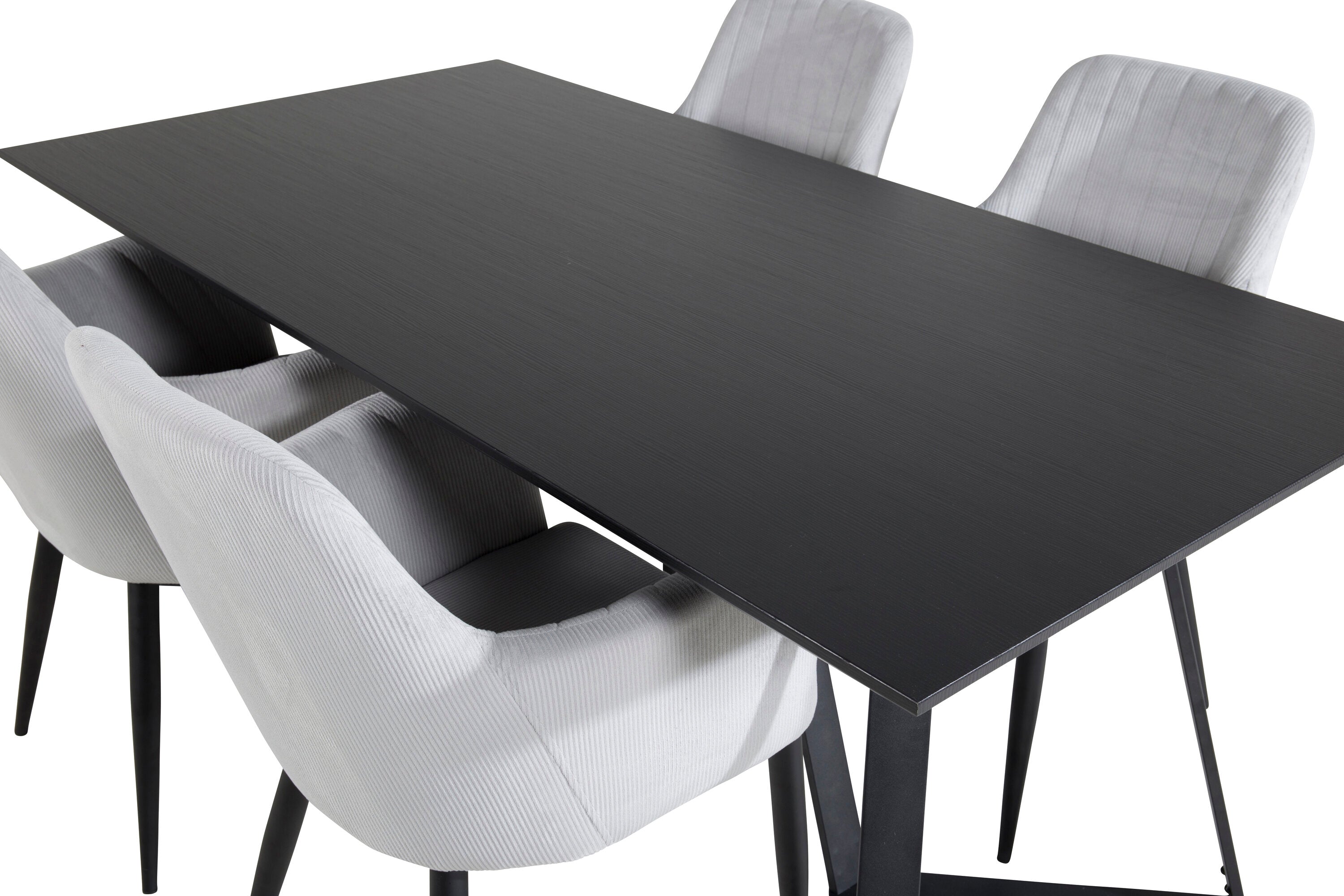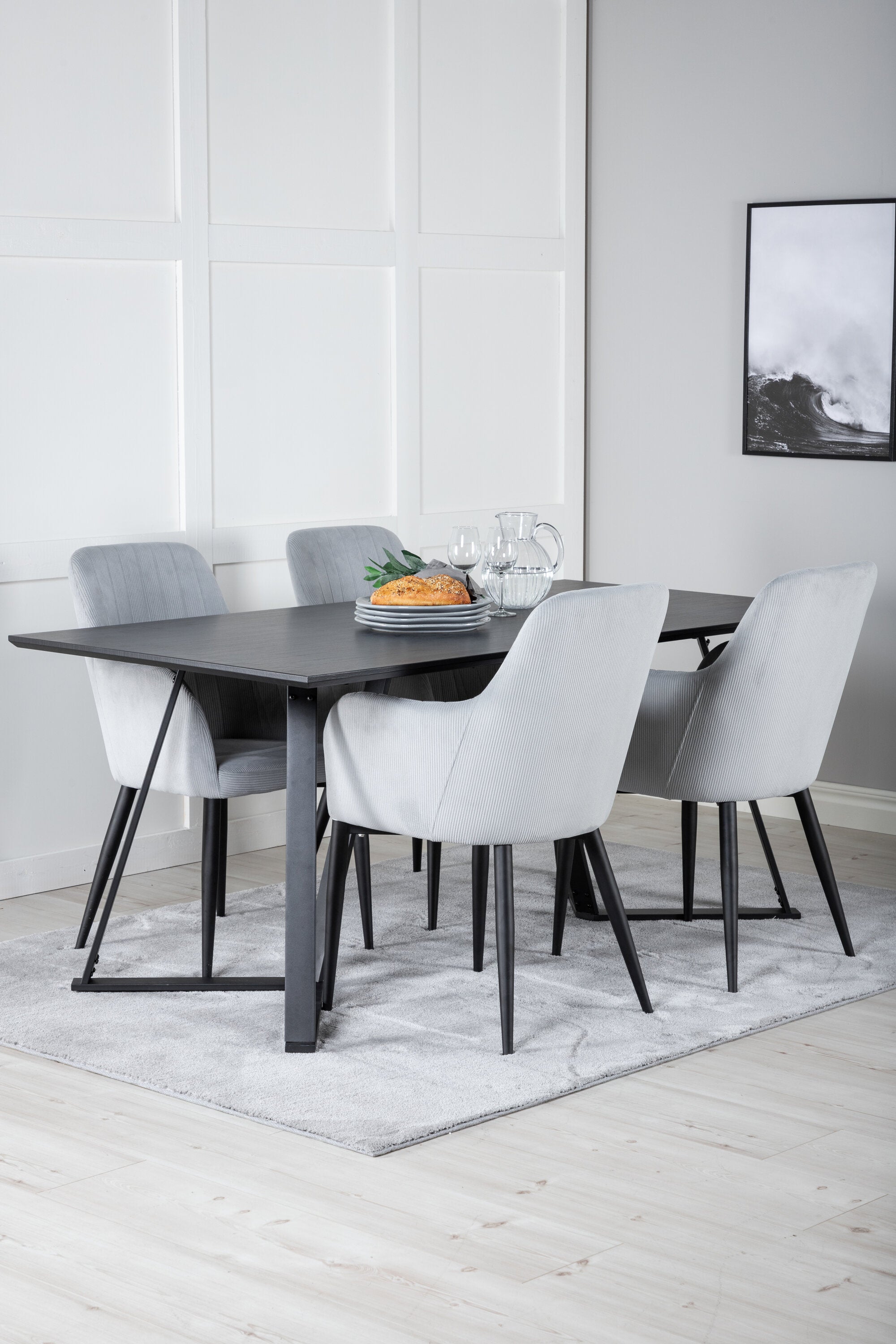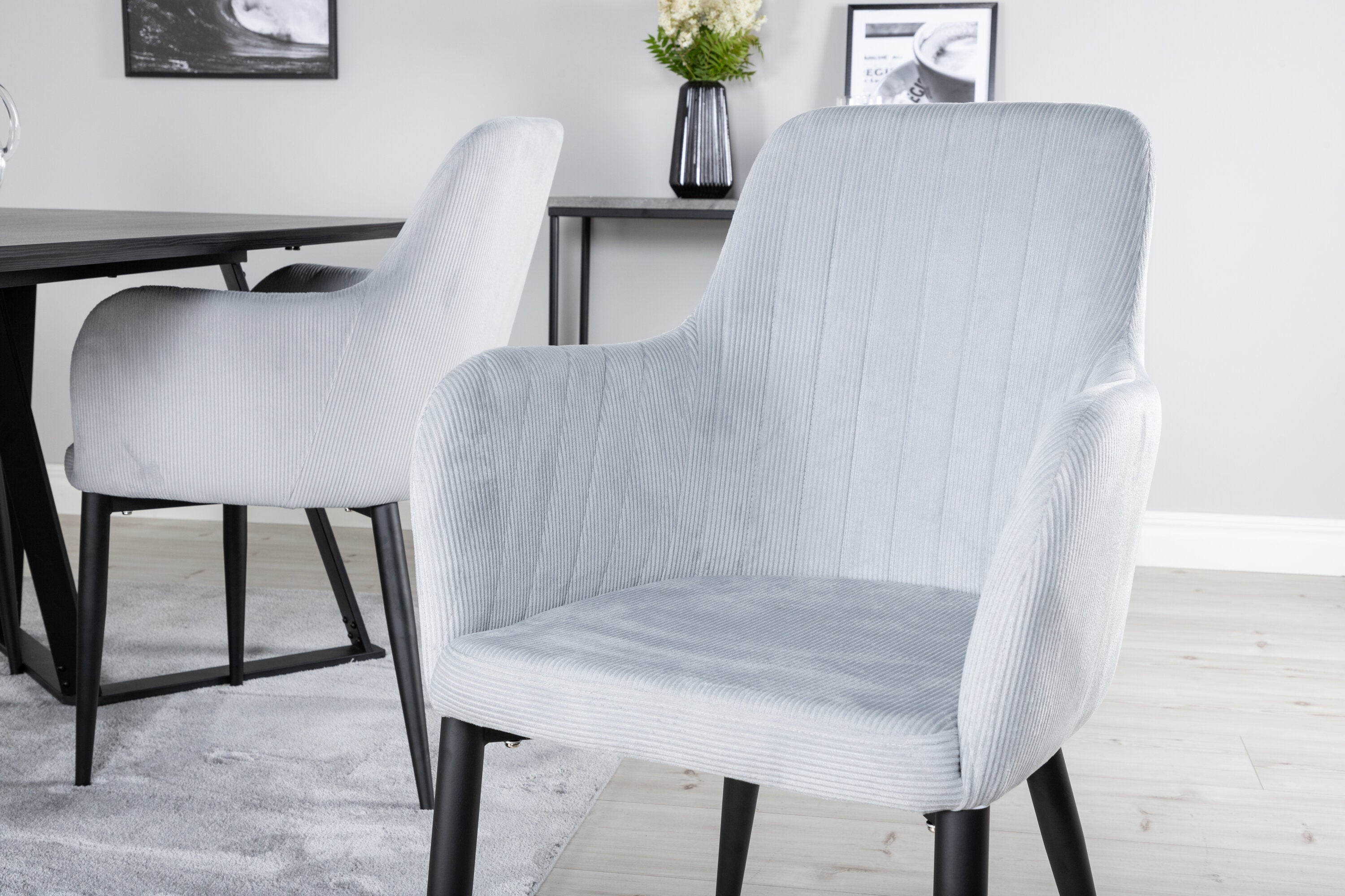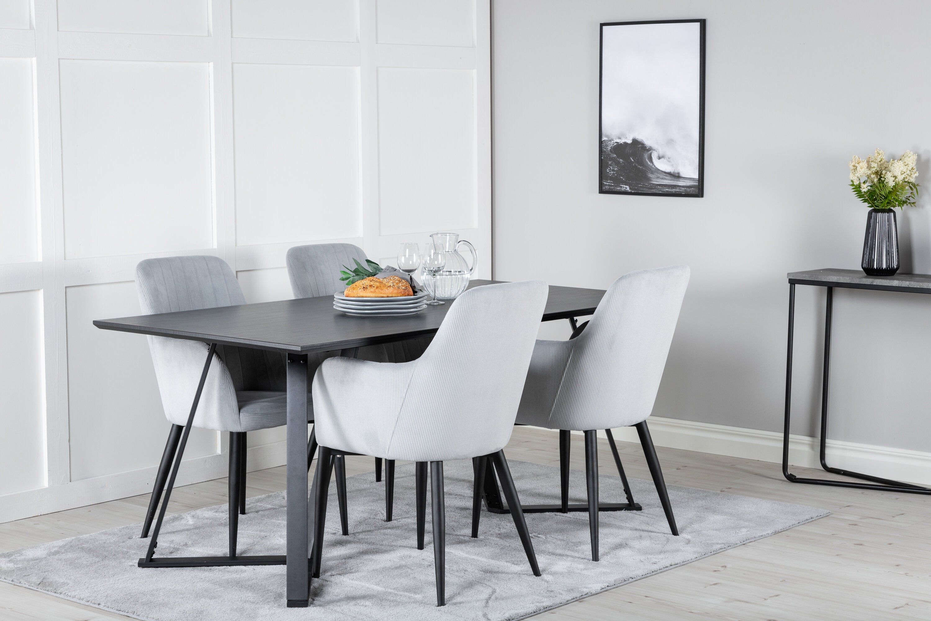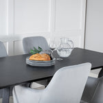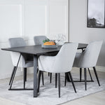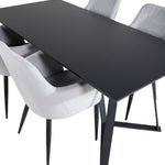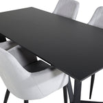 Jídelní stůl Marina - černá deska / černé nohy + komfortní jídelní židle - černé nohy / světle šedý manšestr _4