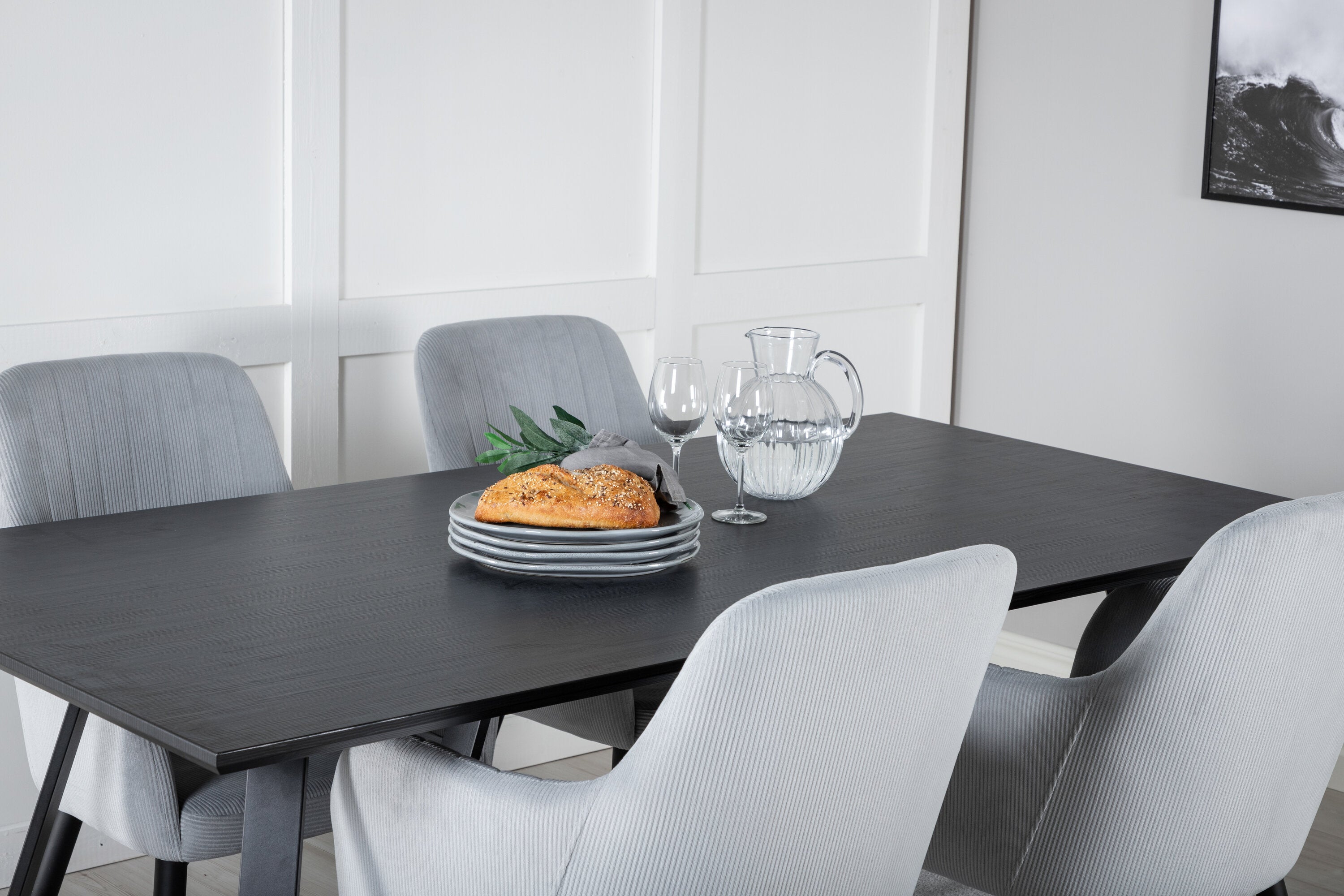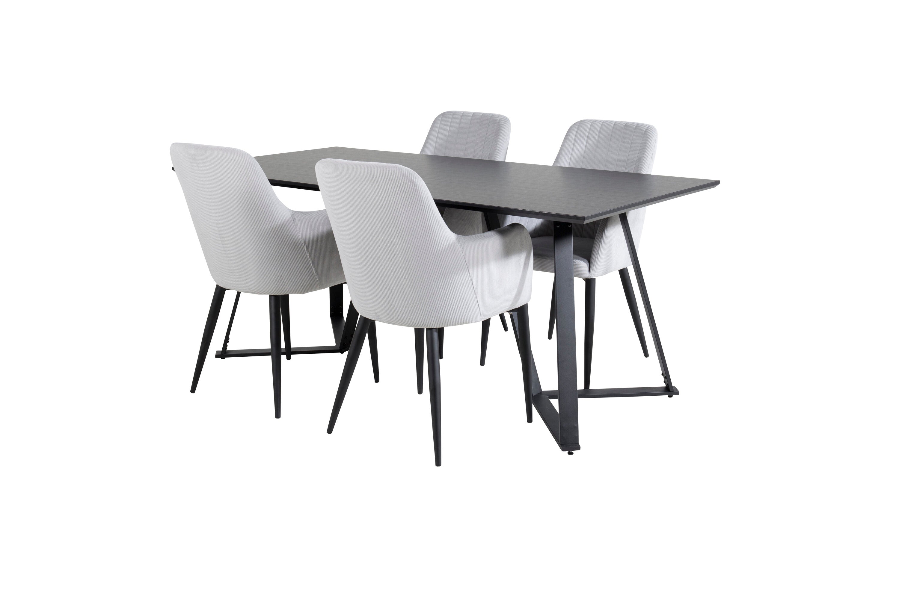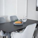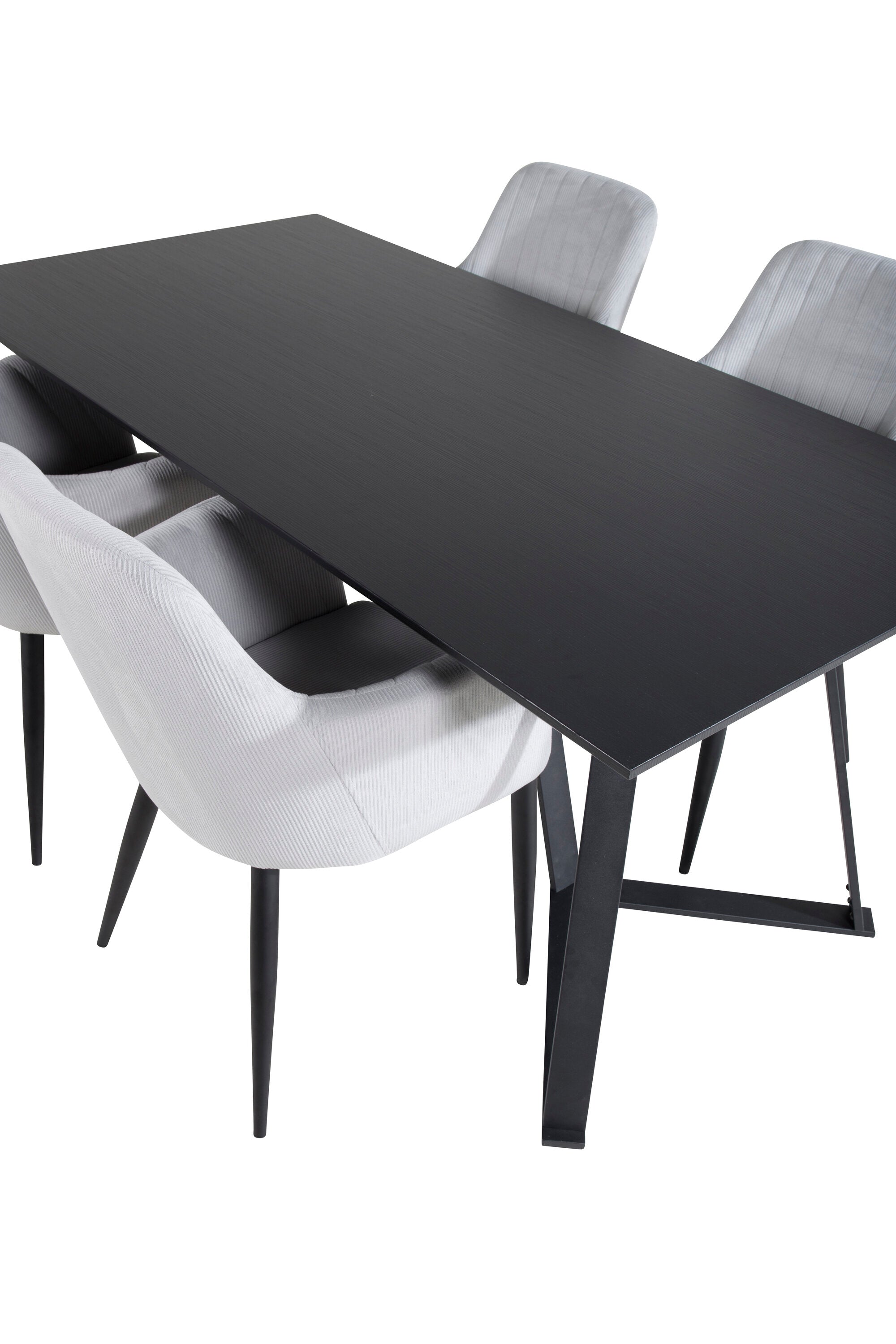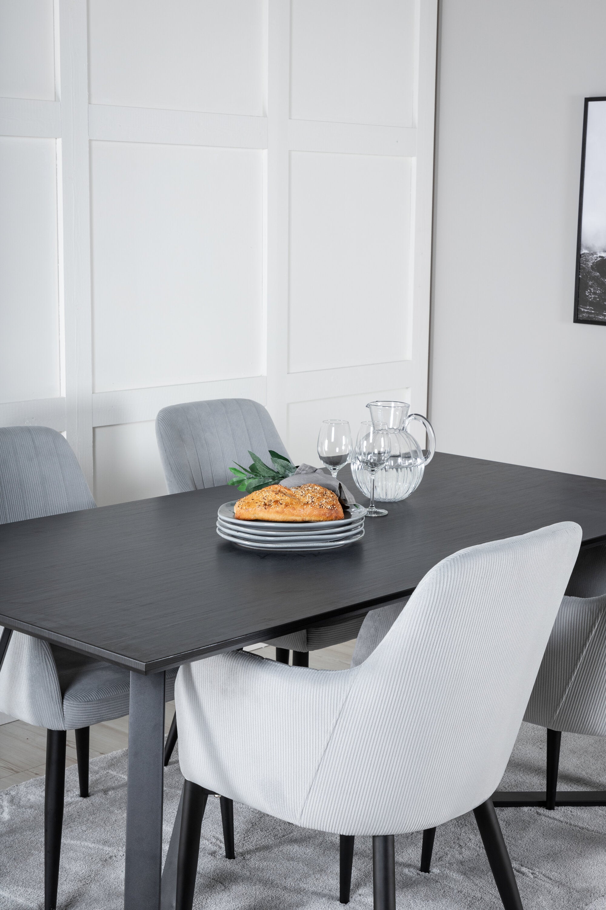Jídelní stůl Marina - černá deska / černé nohy + komfortní jídelní židle - černé nohy / světle šedý manšestr _4