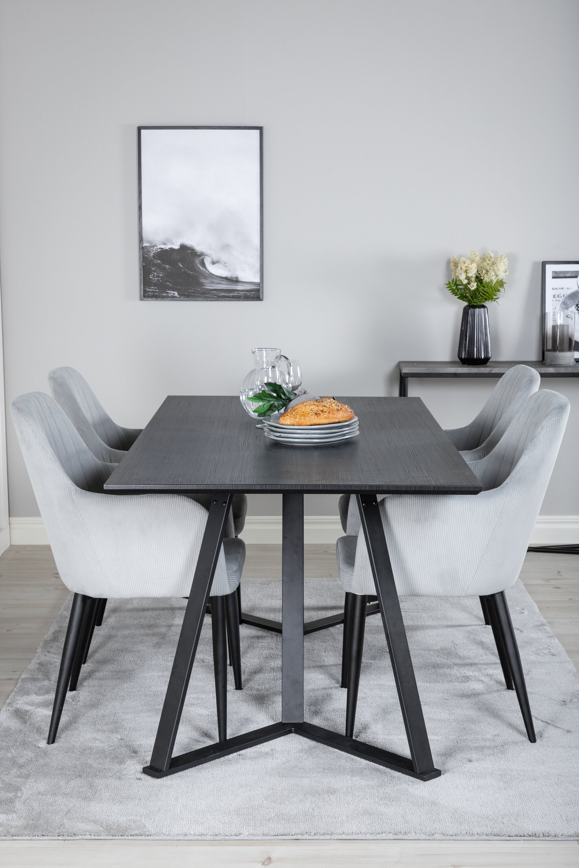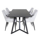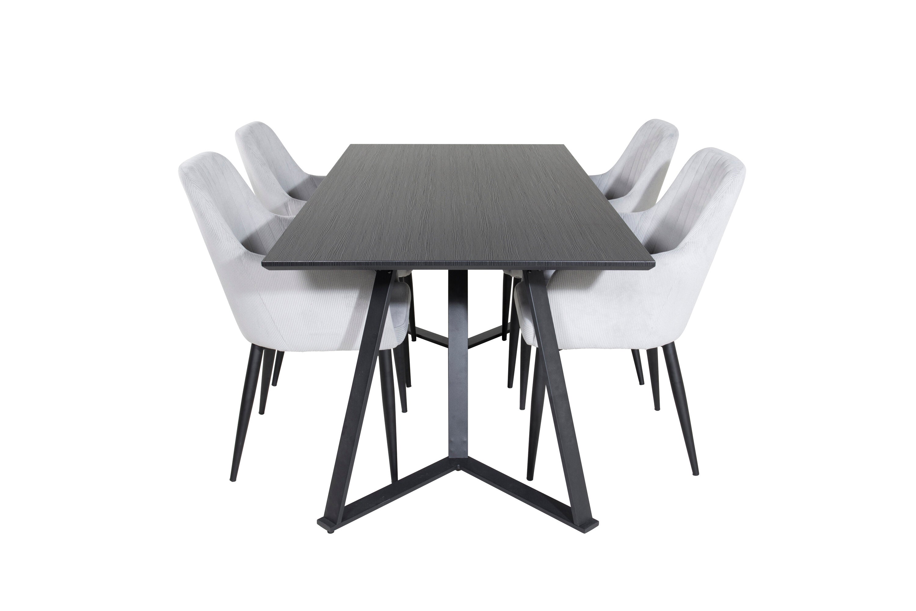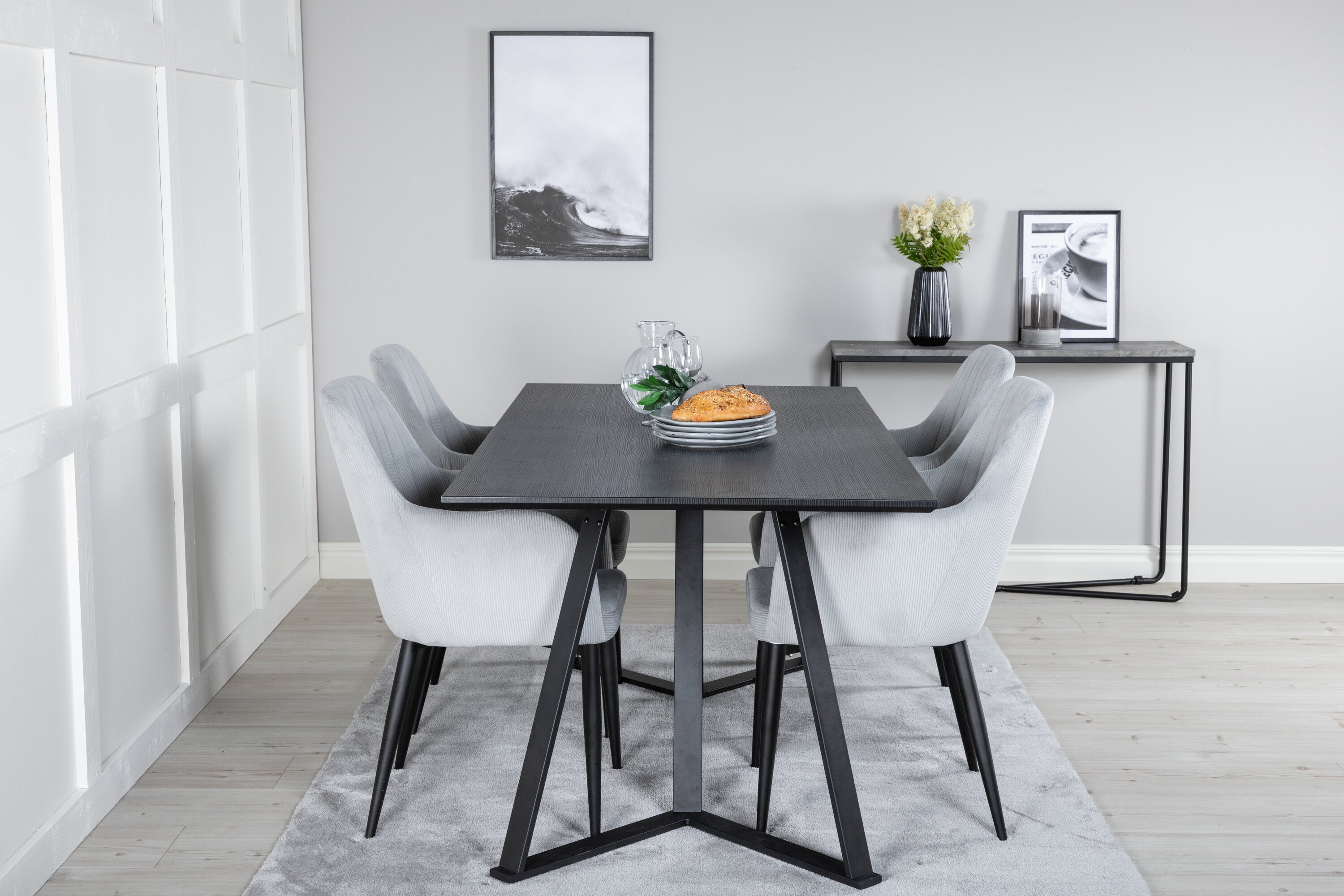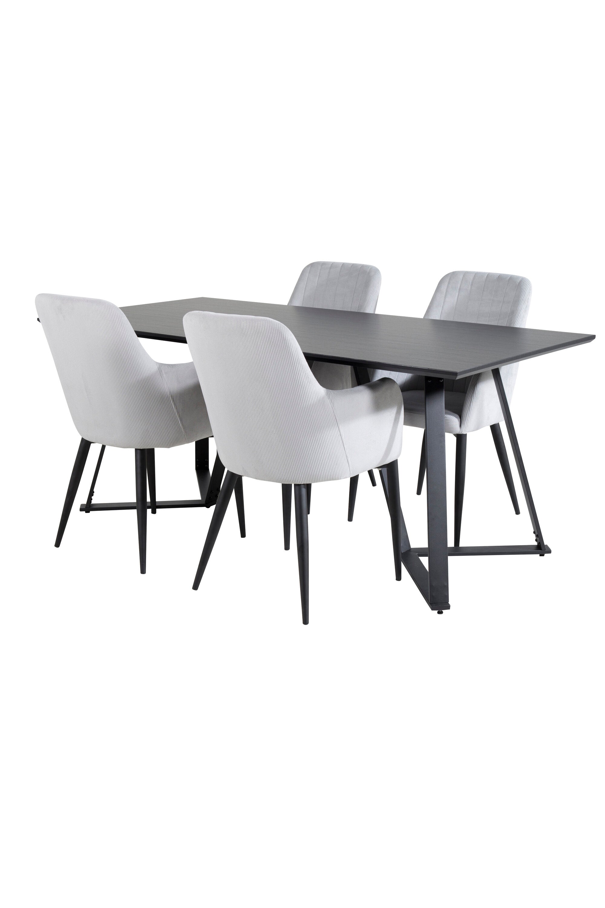 Jídelní stůl Marina - černá deska / černé nohy + komfortní jídelní židle - černé nohy / světle šedý manšestr _4