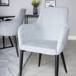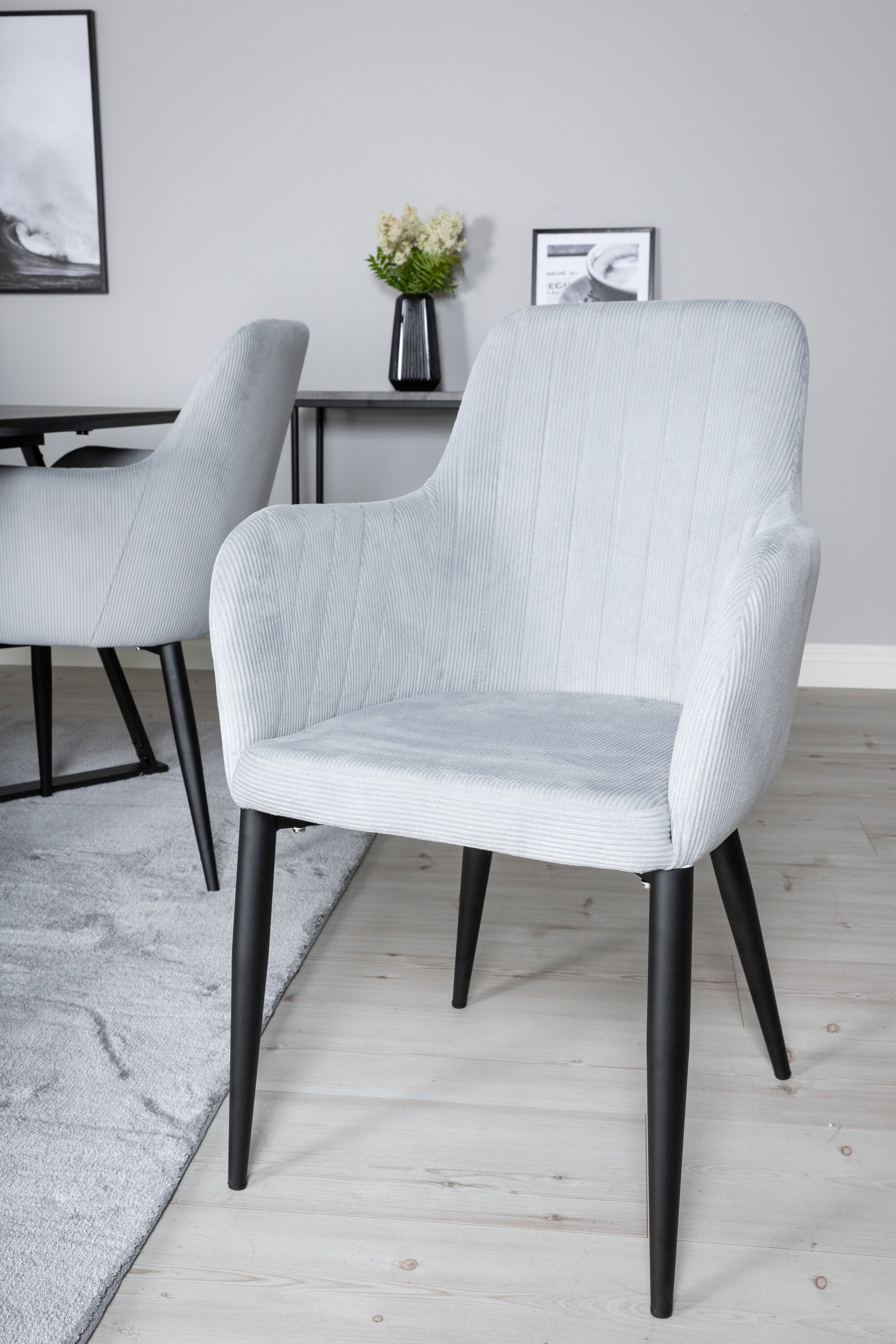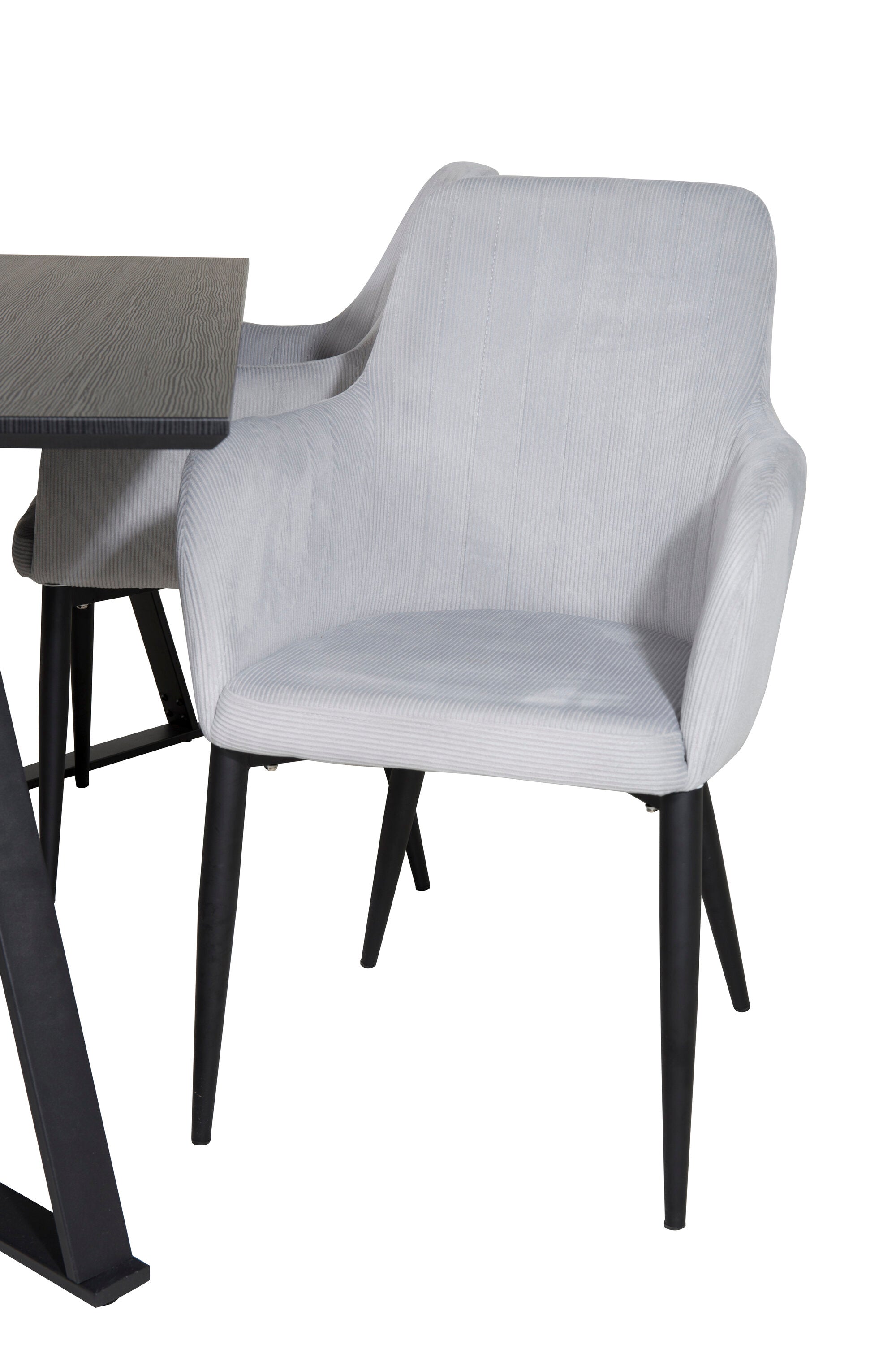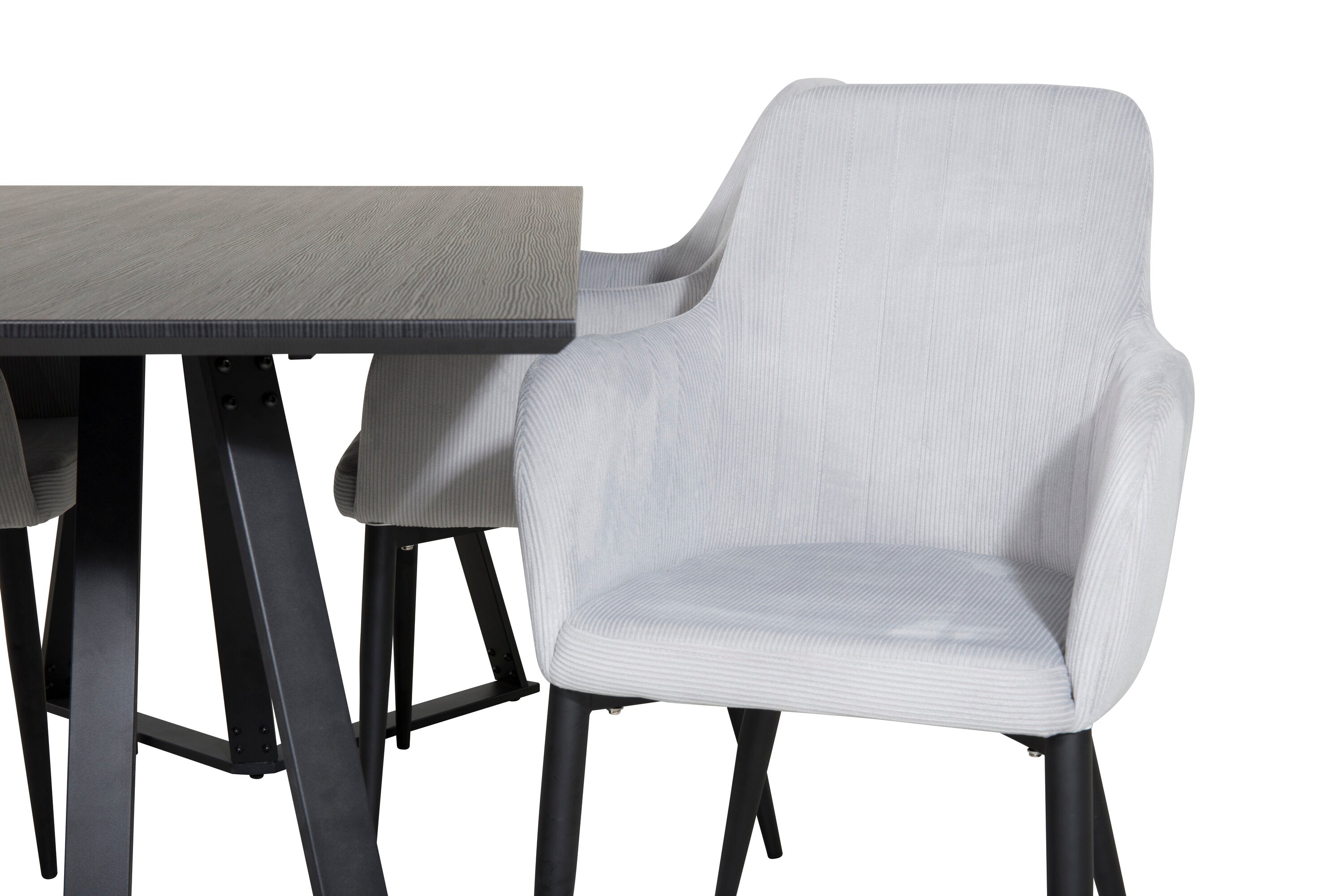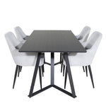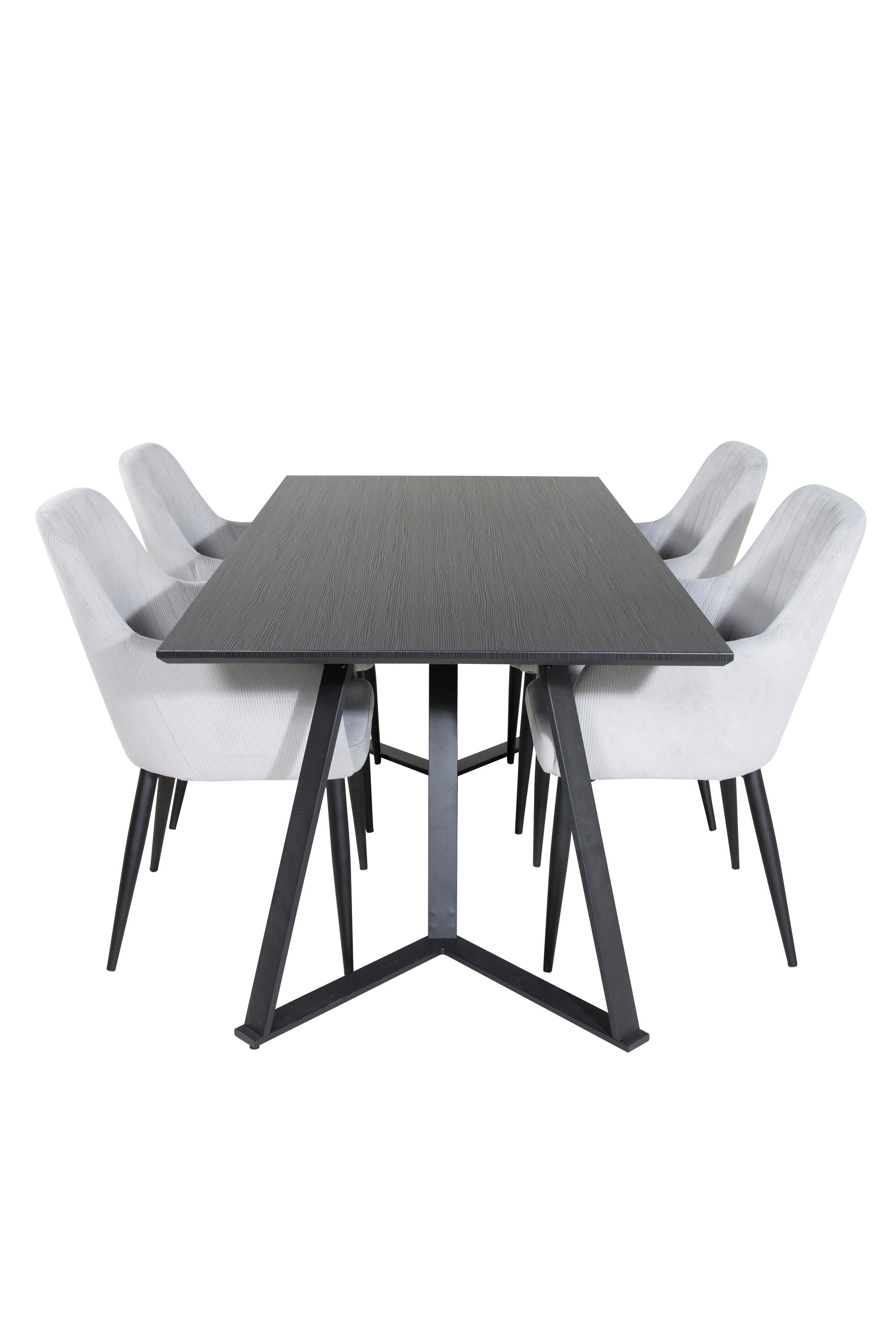 Jídelní stůl Marina - černá deska / černé nohy + komfortní jídelní židle - černé nohy / světle šedý manšestr _4