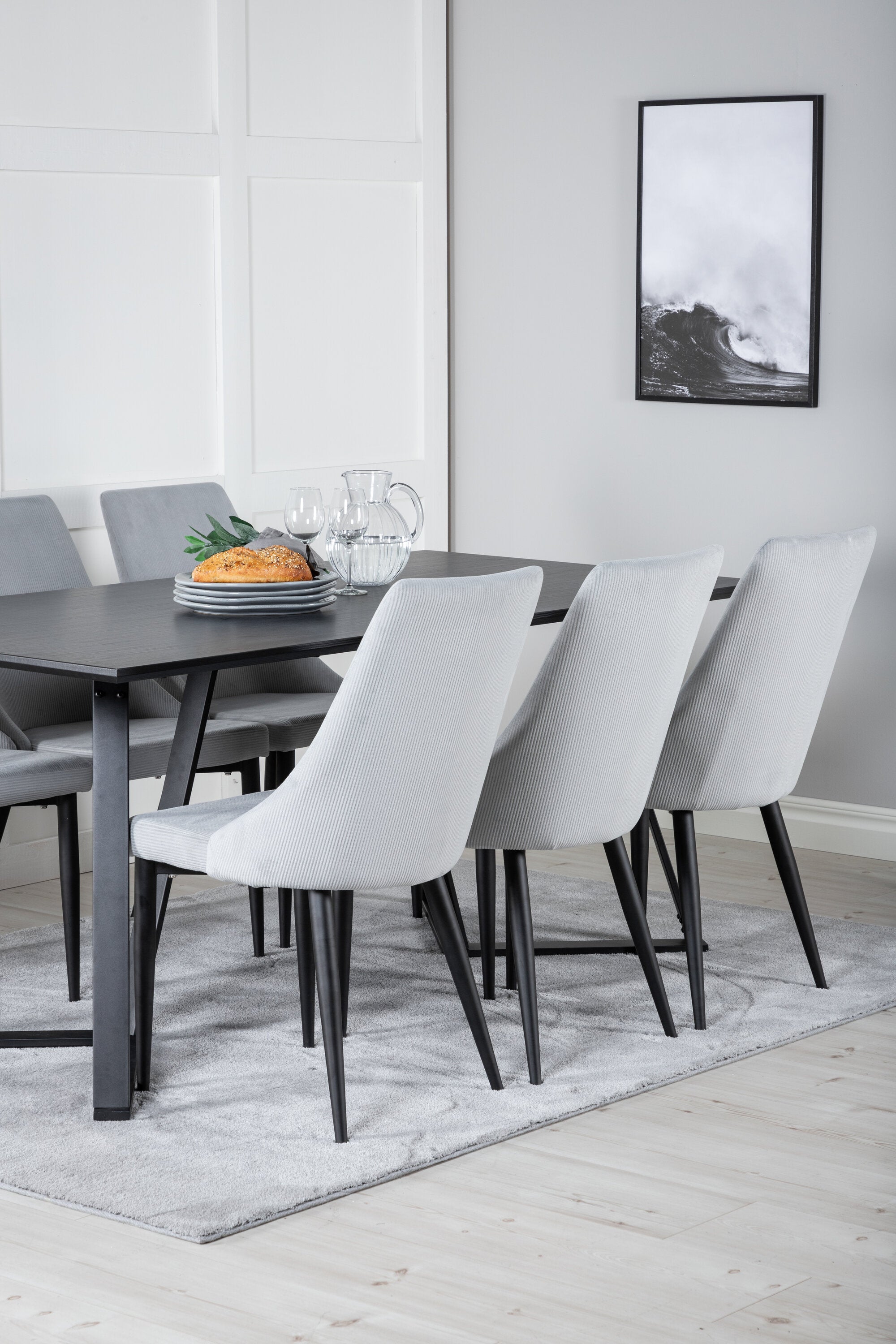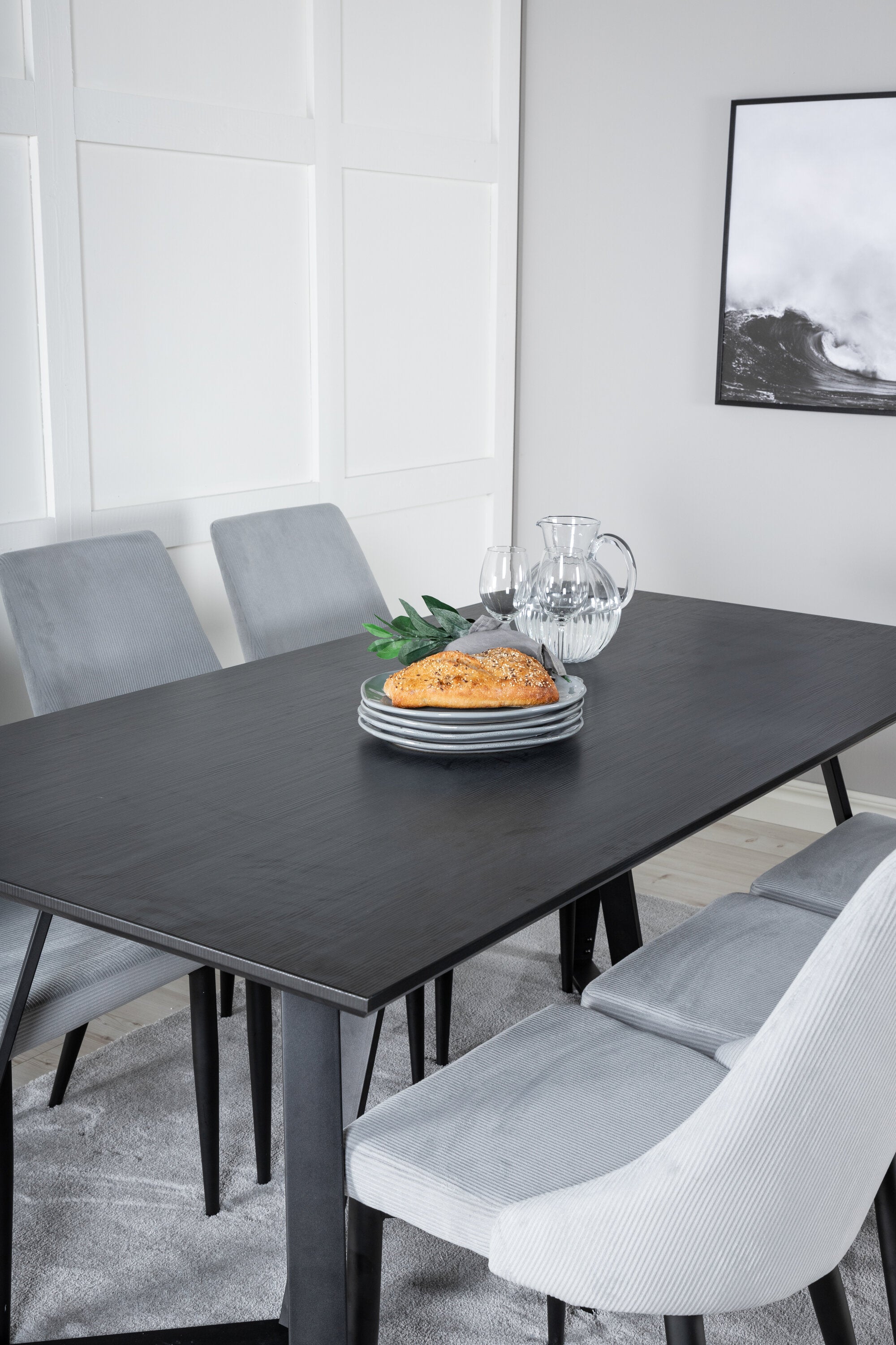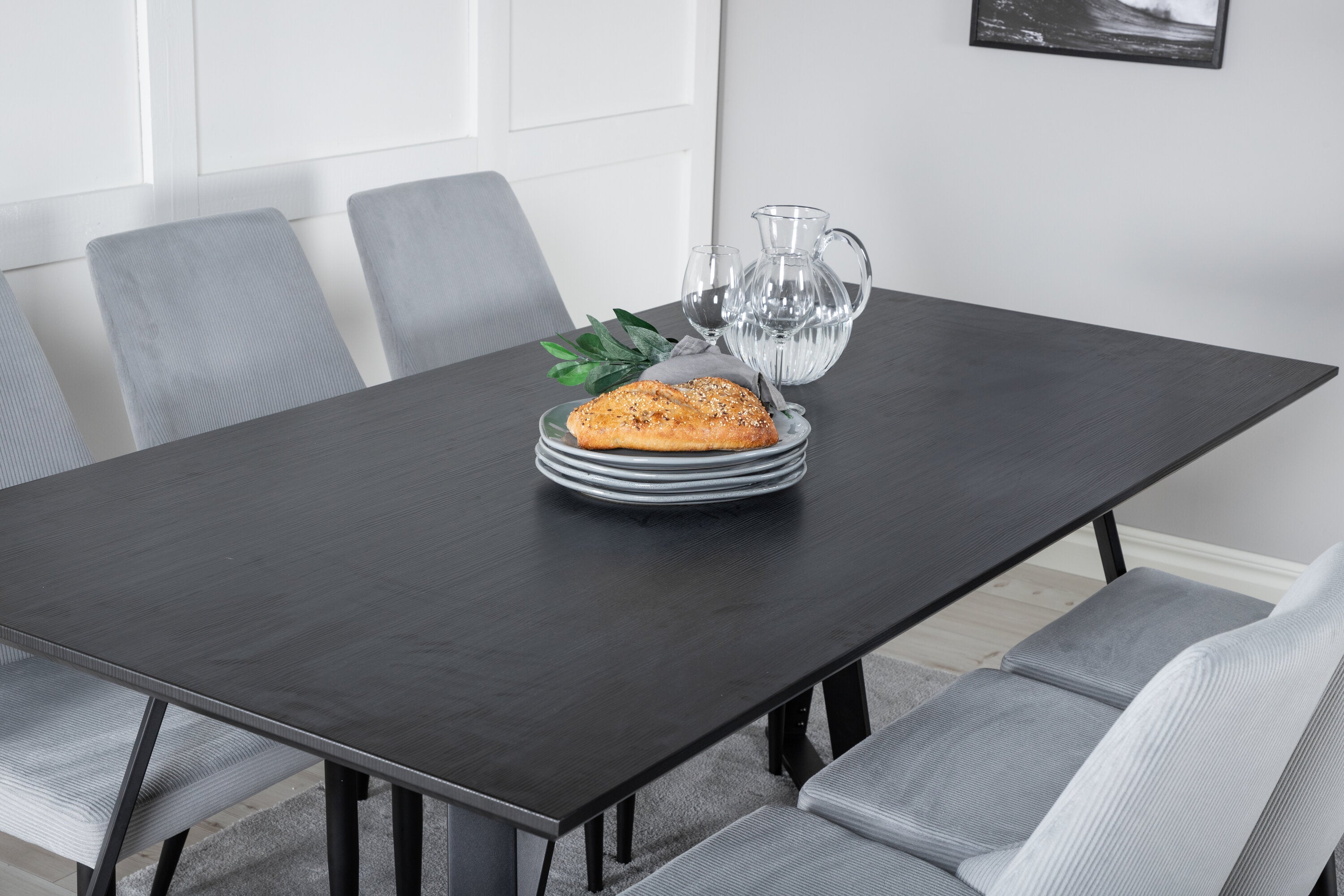 Jídelní stůl Marina - černá deska / černé nohy + Leon 2.0 Polar Grey - ČERNÉ nohy _6