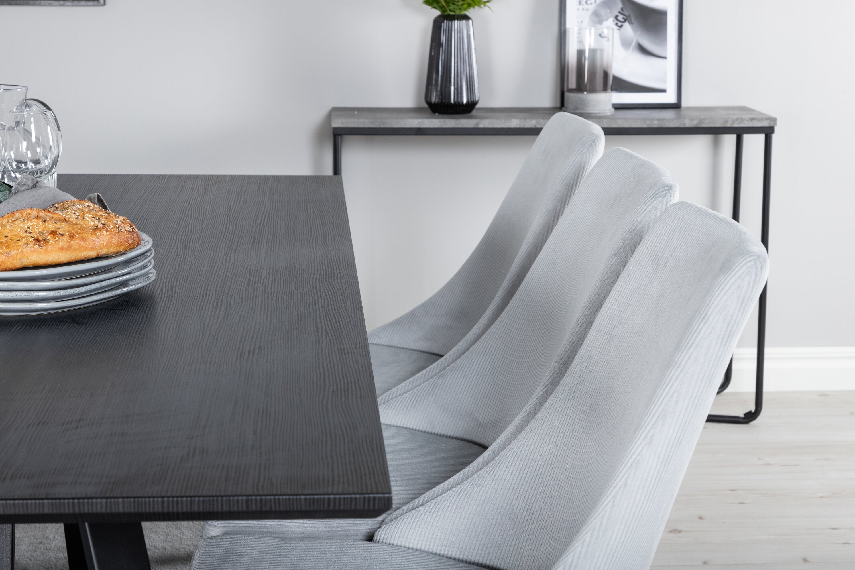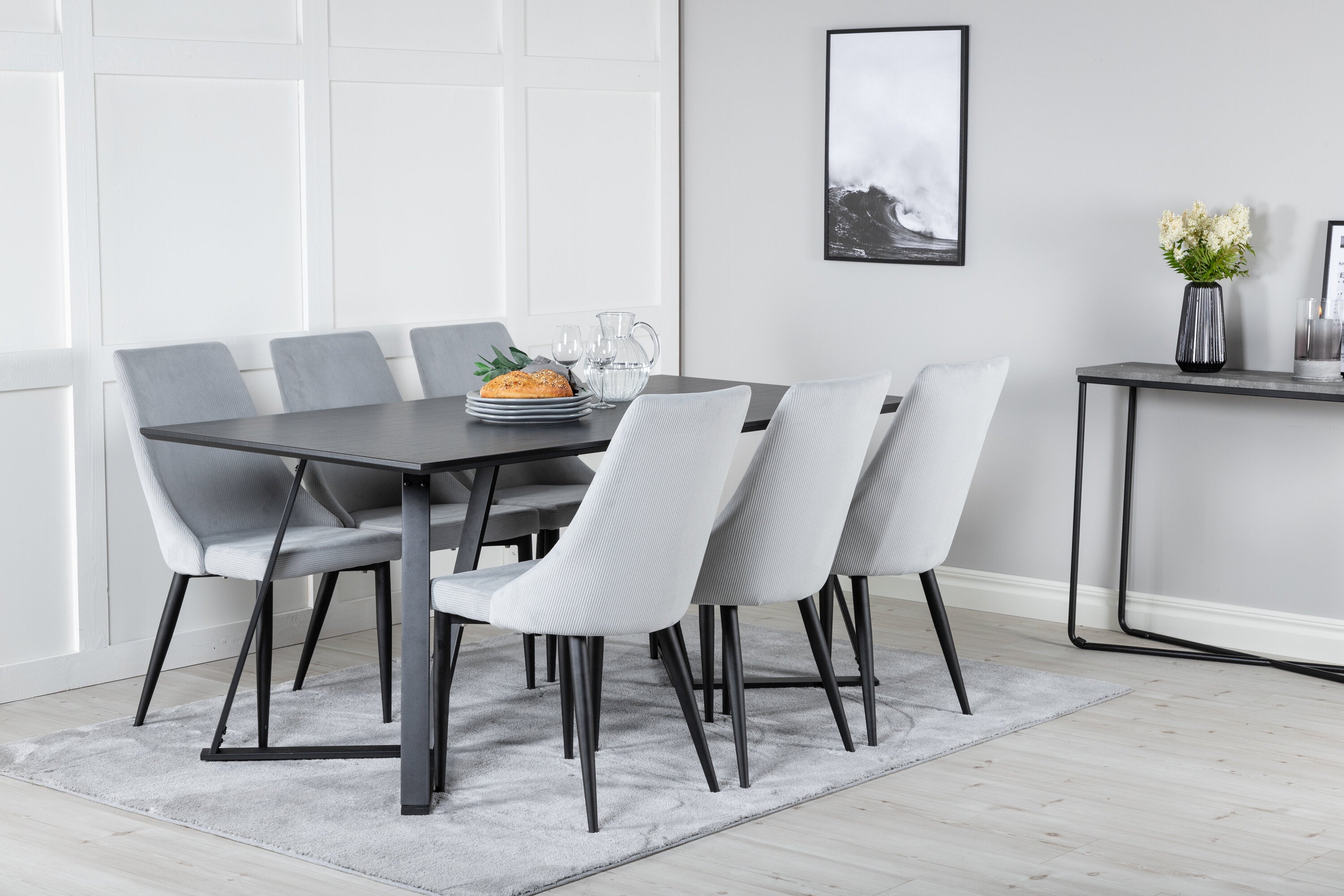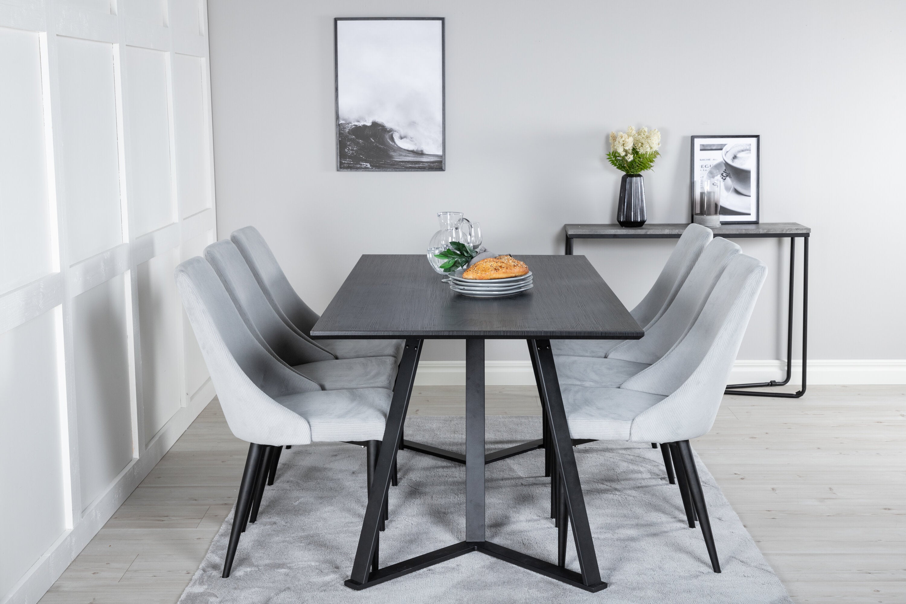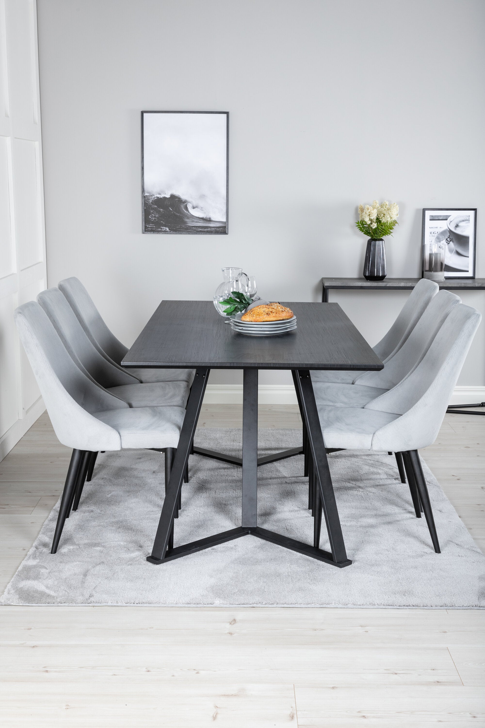 Jídelní stůl Marina - černá deska / černé nohy + Leon 2.0 Polar Grey - ČERNÉ nohy _6