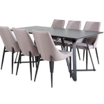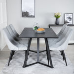 Stylový jídelní stůl marina s MDF deskou stolu a ozdobným kovovým spodním prádlem je zde kombinován s jídelními židlemi Leone. Vytvořte něco elegantního a společenského s prostorem pro dobré jídlo a socializaci!