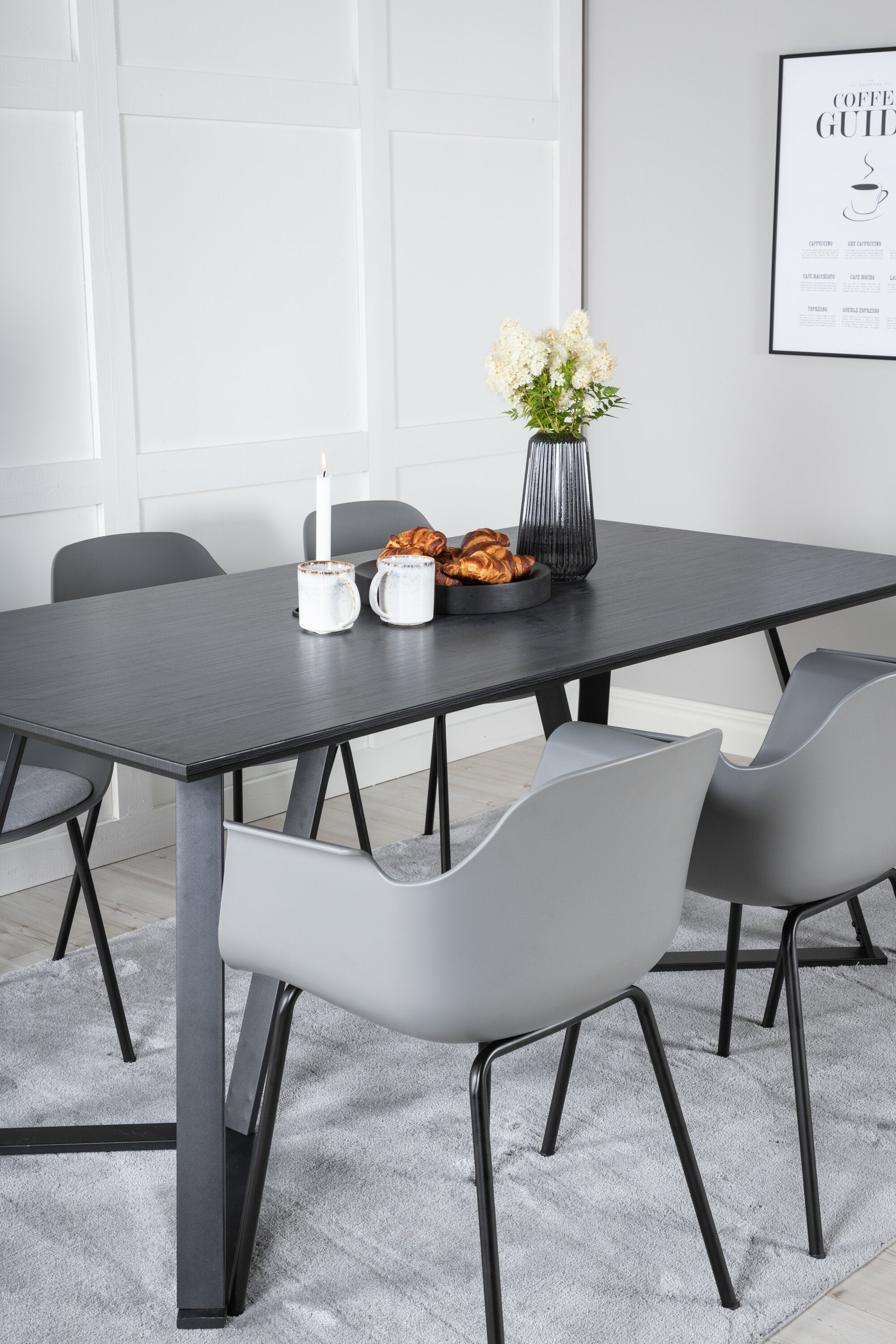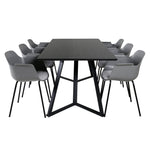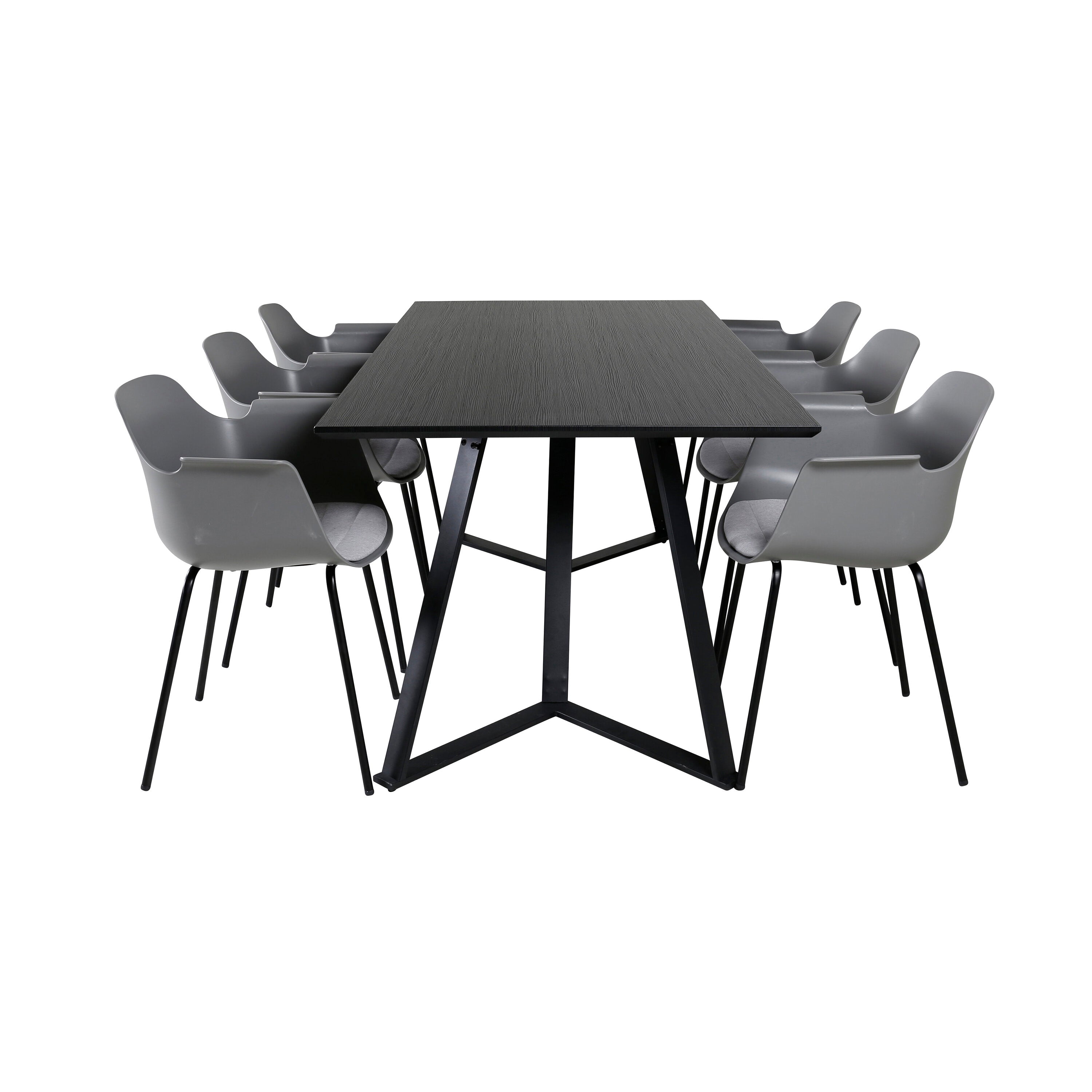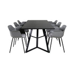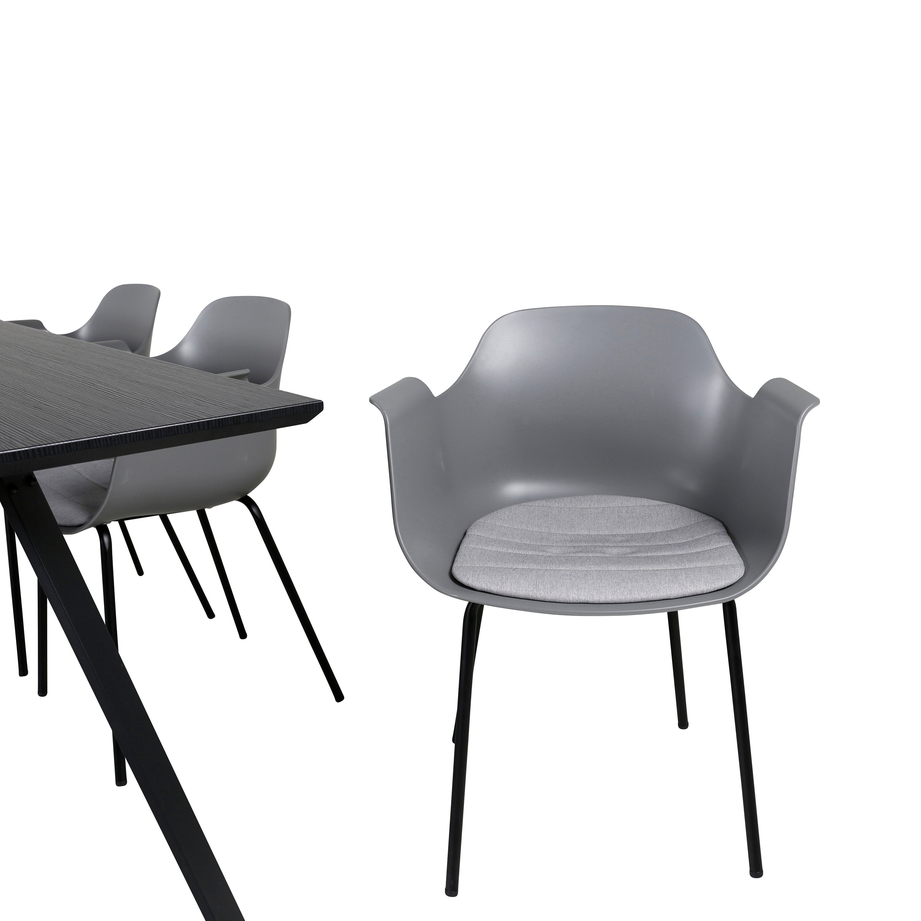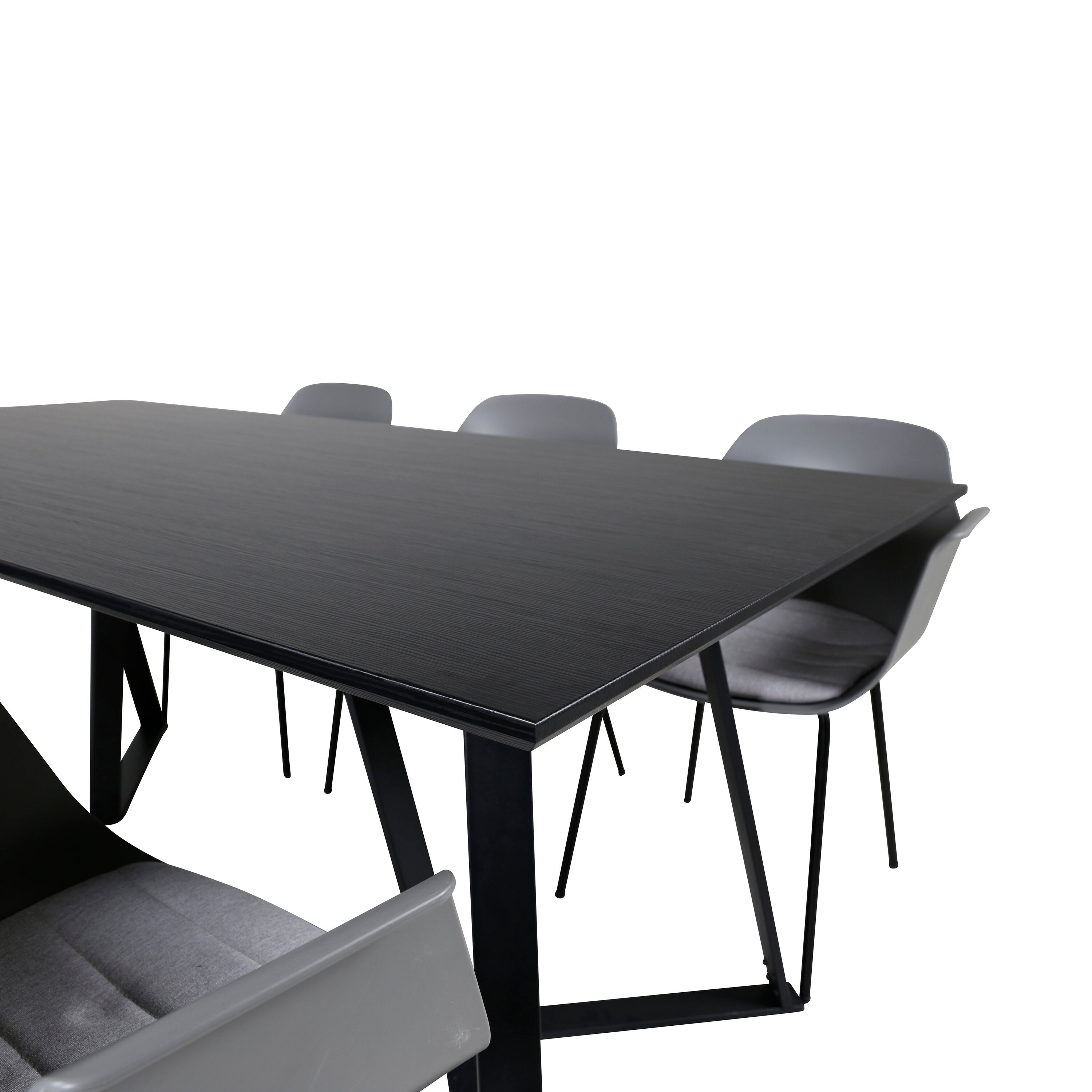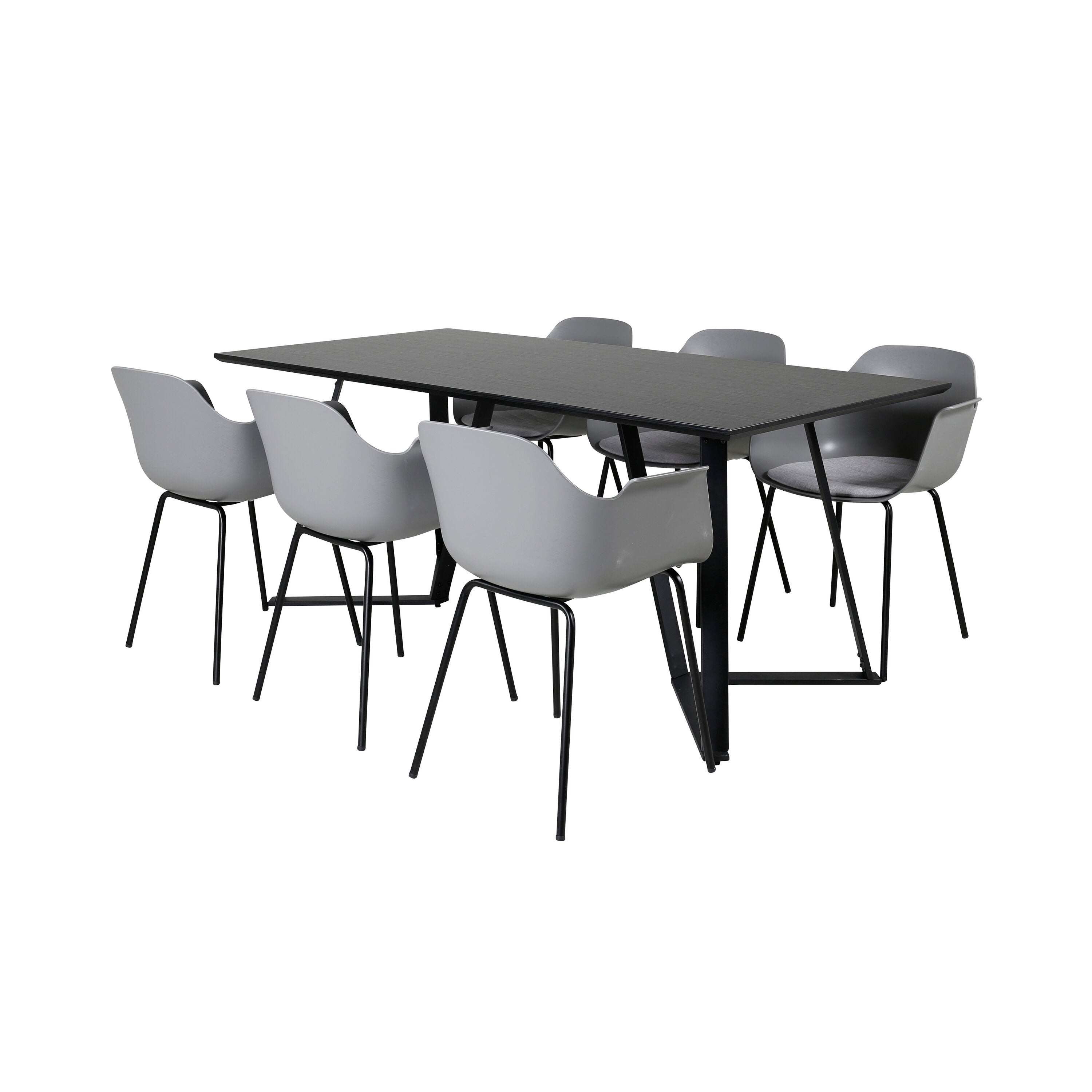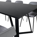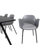 Jídelní stůl Marina - černá deska / černé nohy - pohodlná plastová jídelní židle - černé nohy - šedý plast 6
