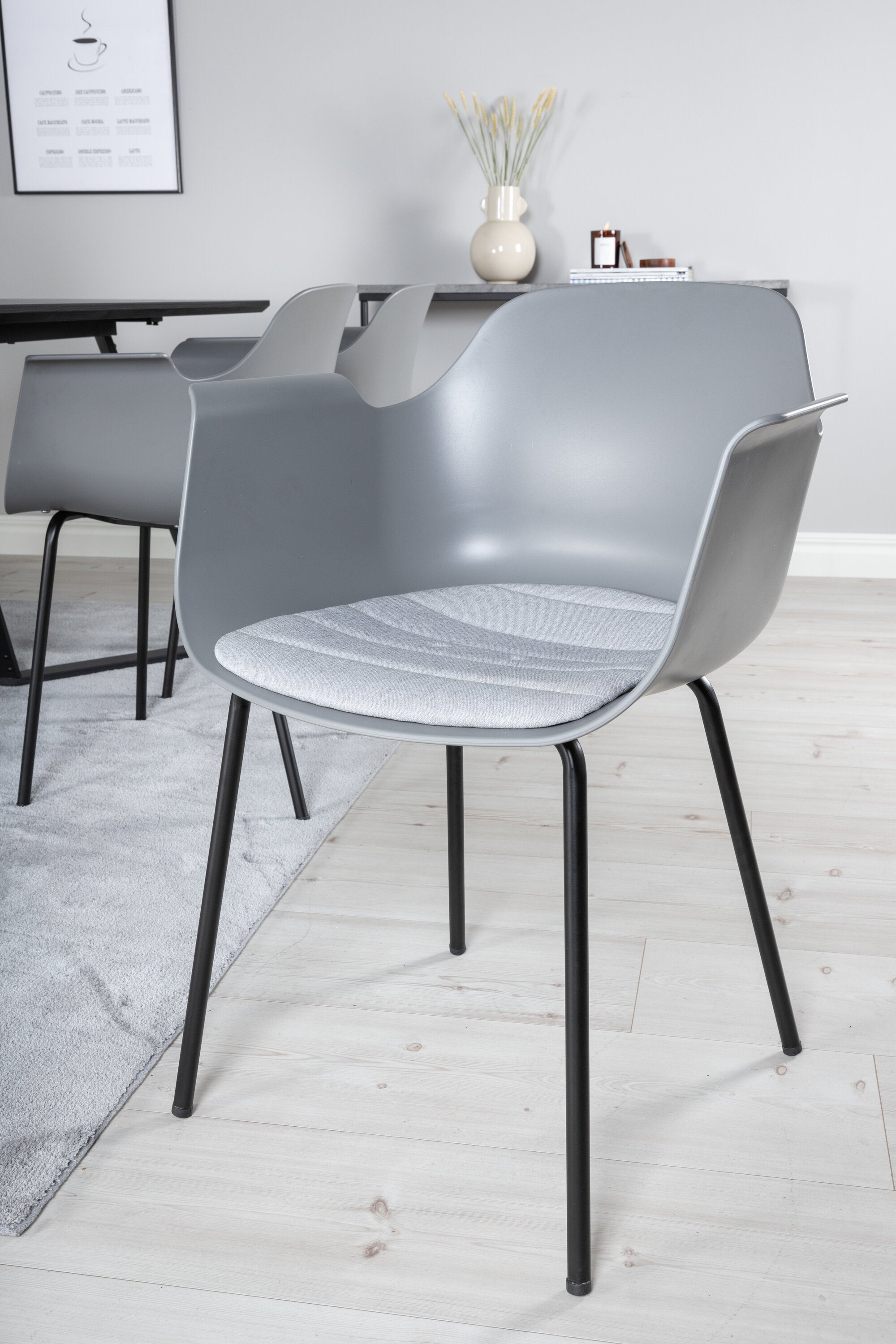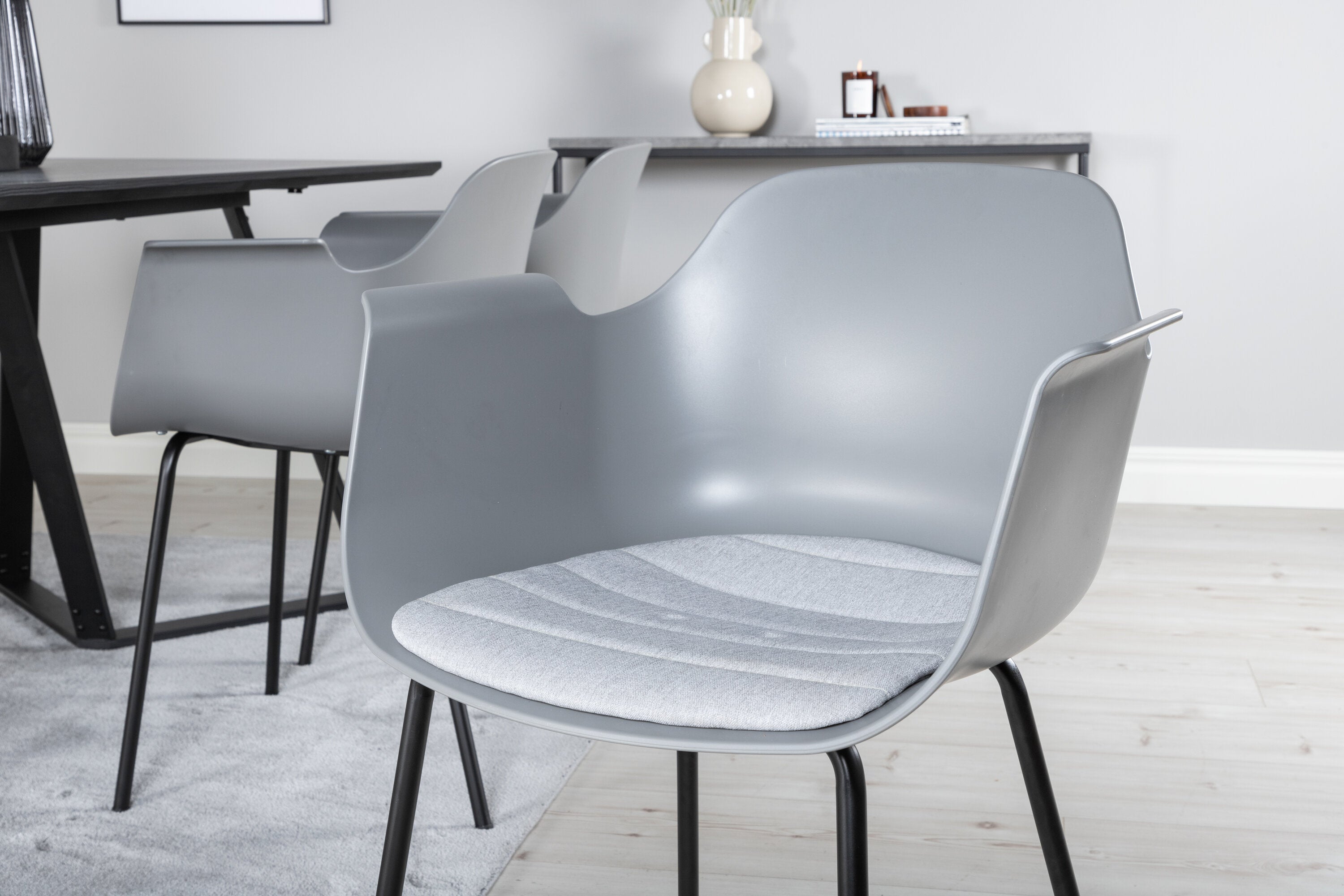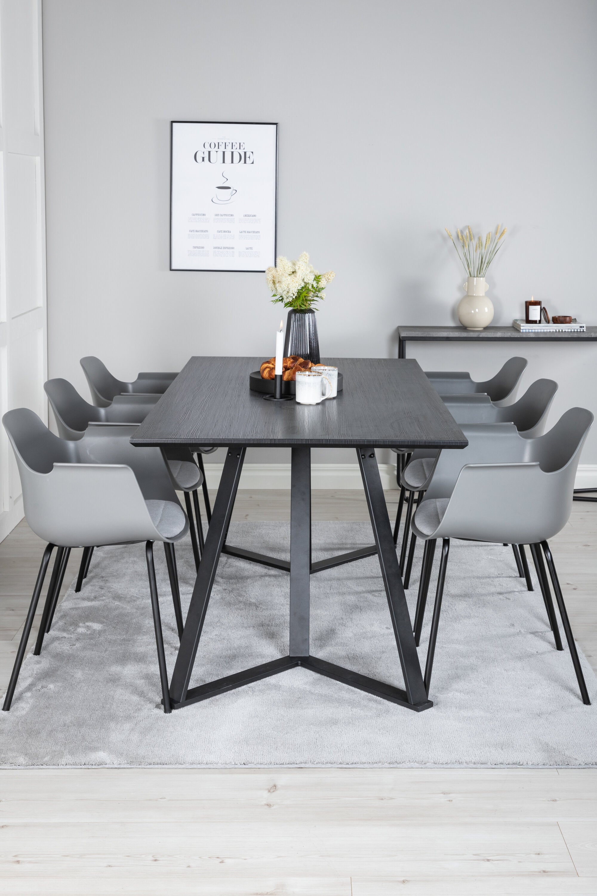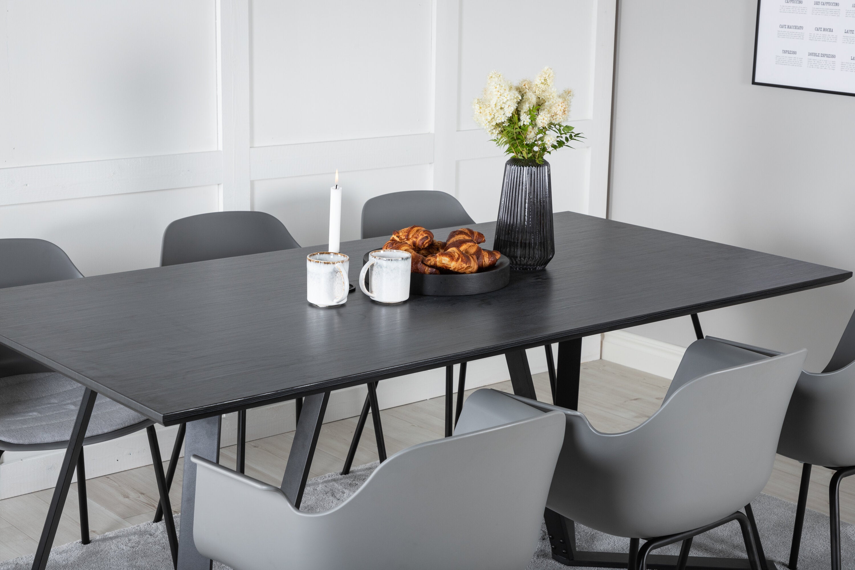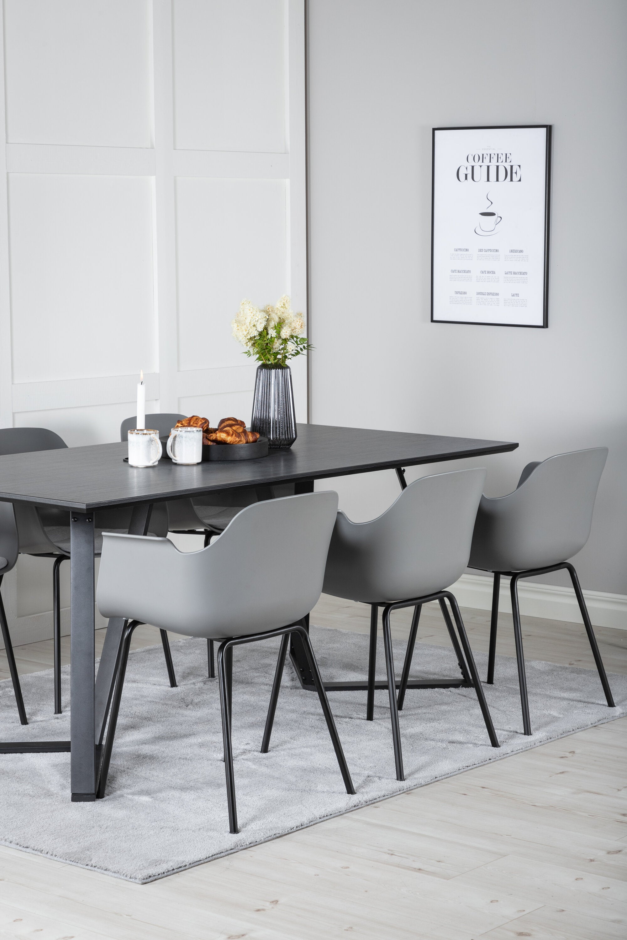 Jídelní stůl Marina - černá deska / černé nohy - pohodlná plastová jídelní židle - černé nohy - šedý plast 6