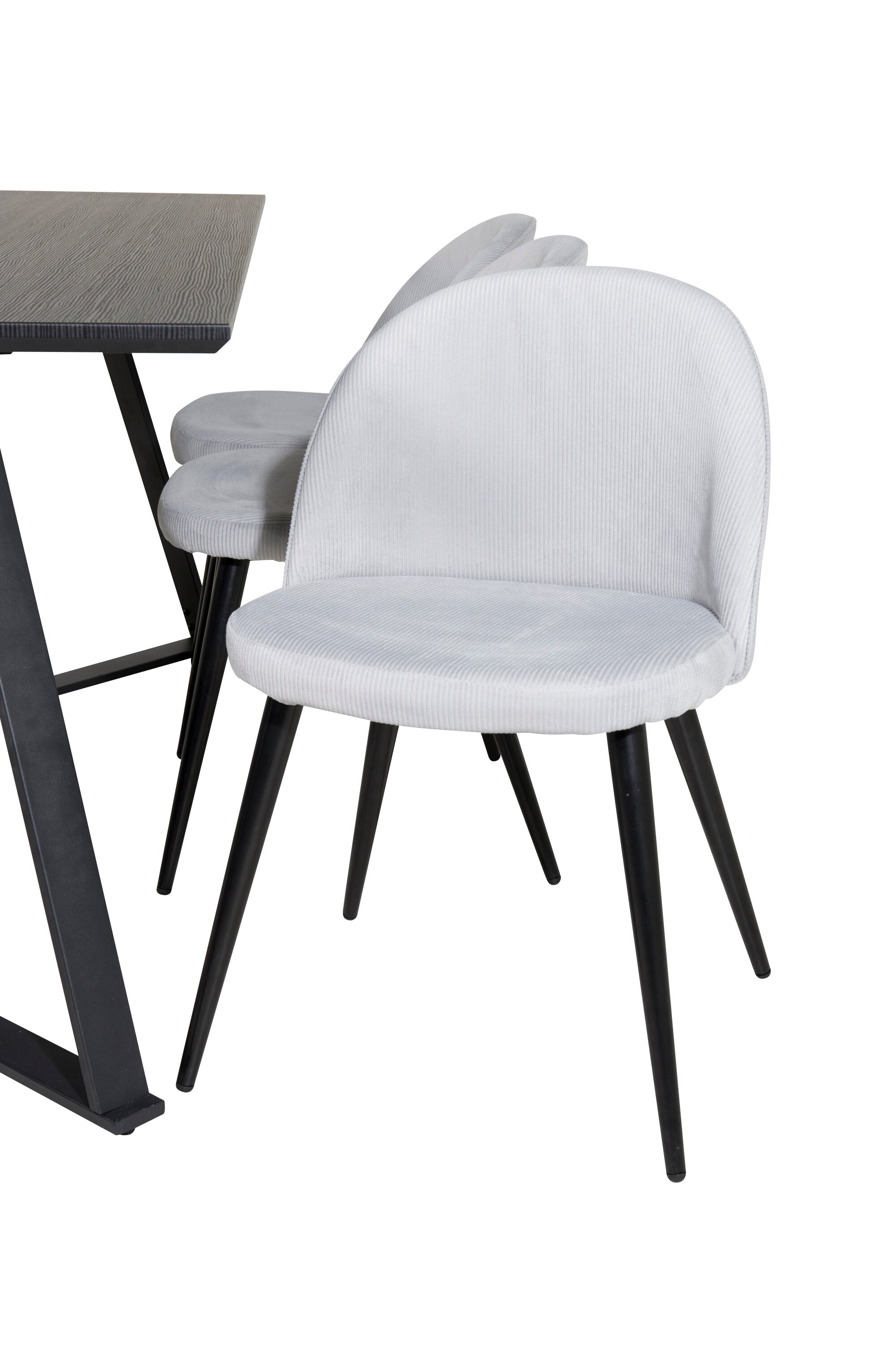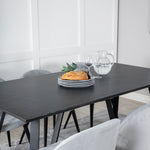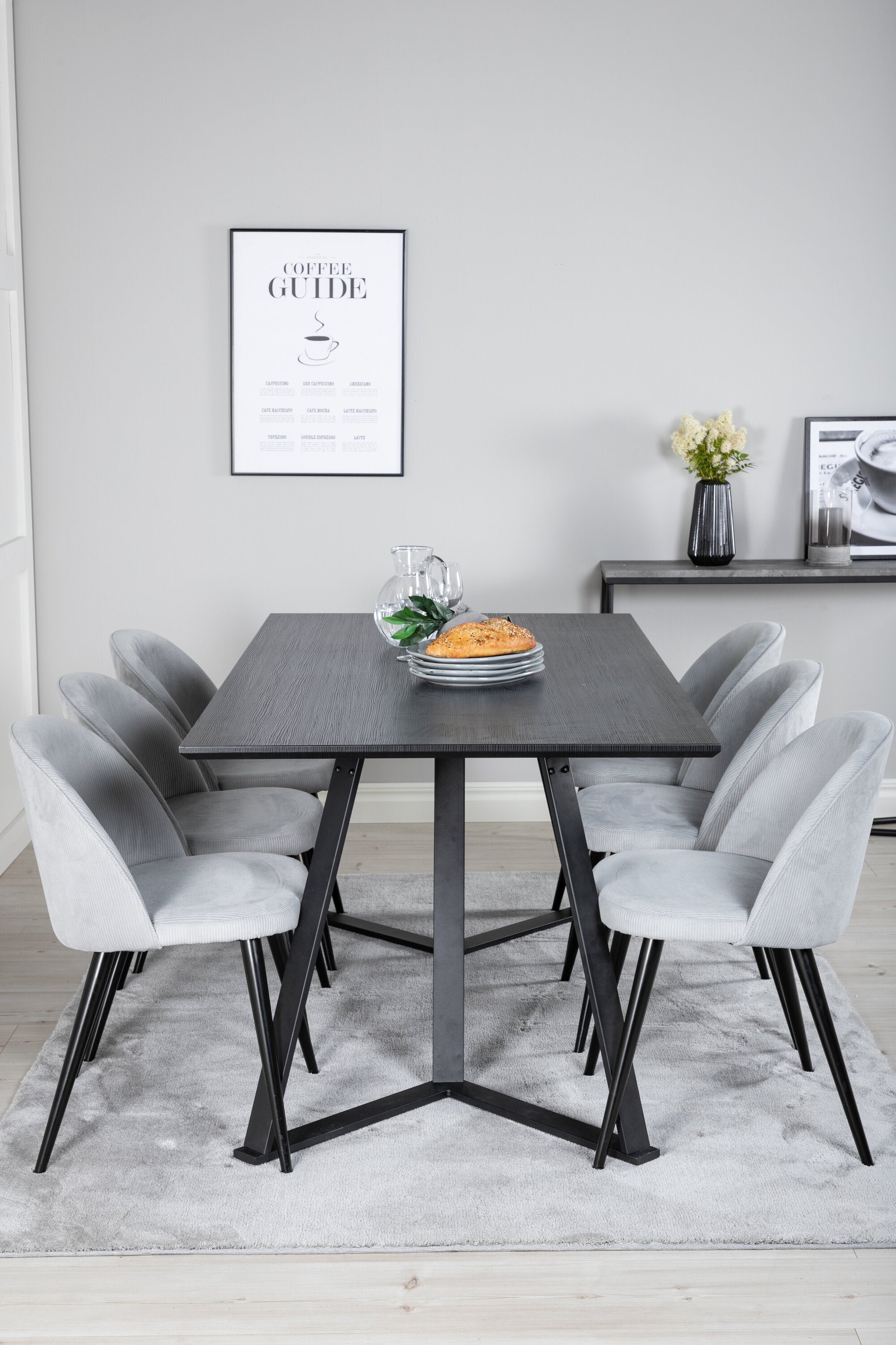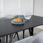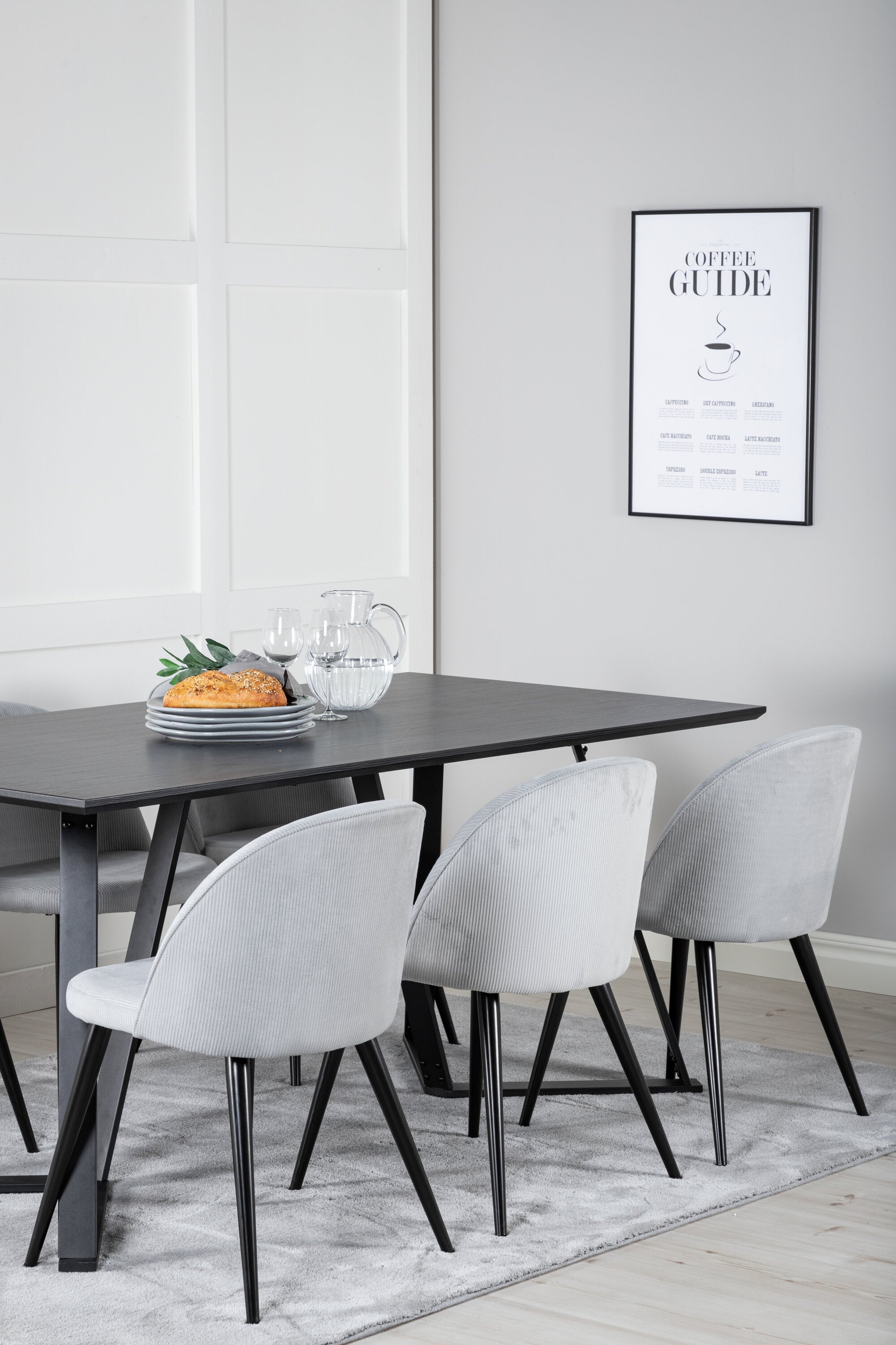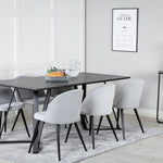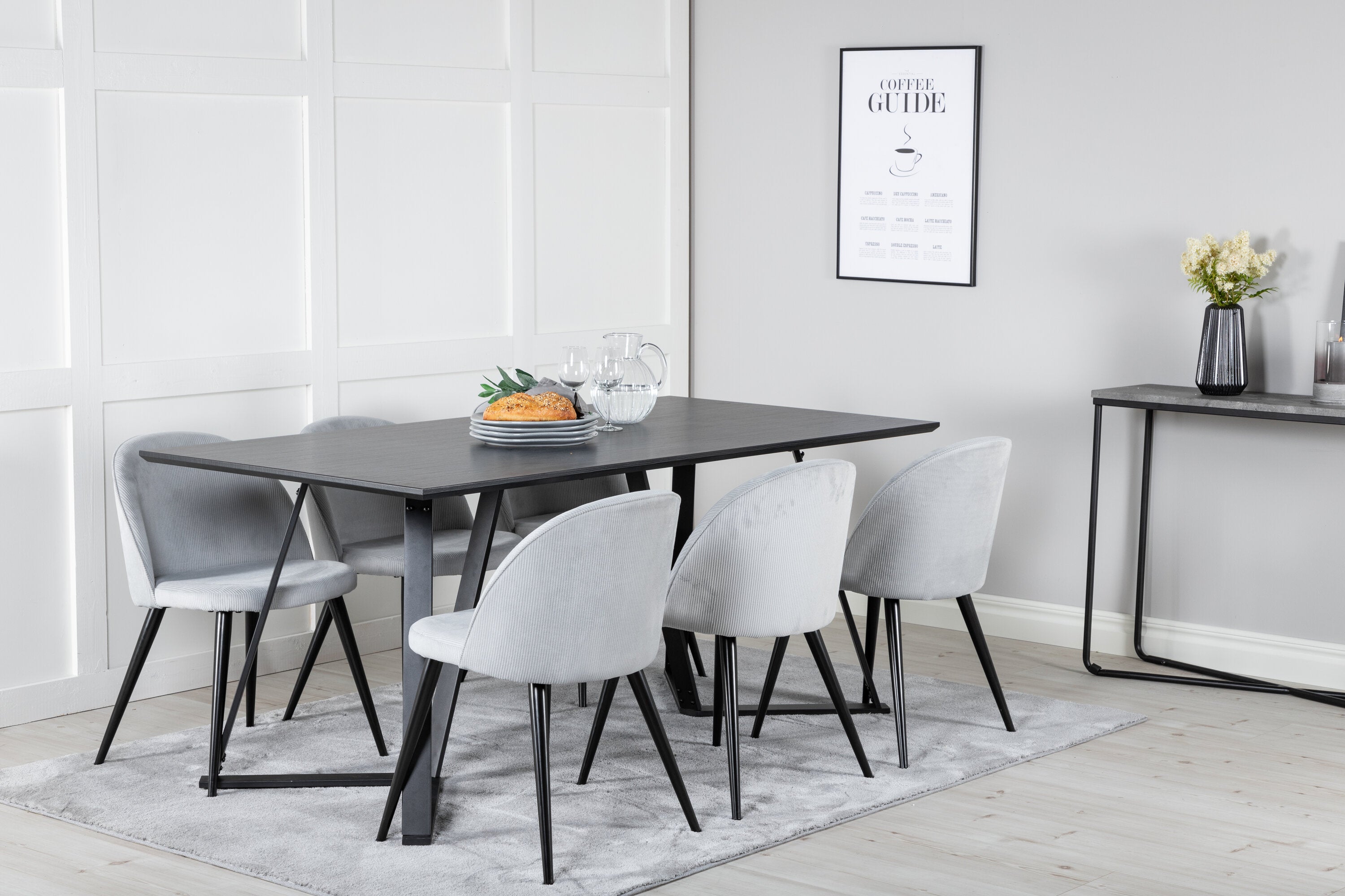 Jídelní stůl Marina - černá deska / černé nohy + sametová jídelní židle manšestr - světle šedá / černá_6